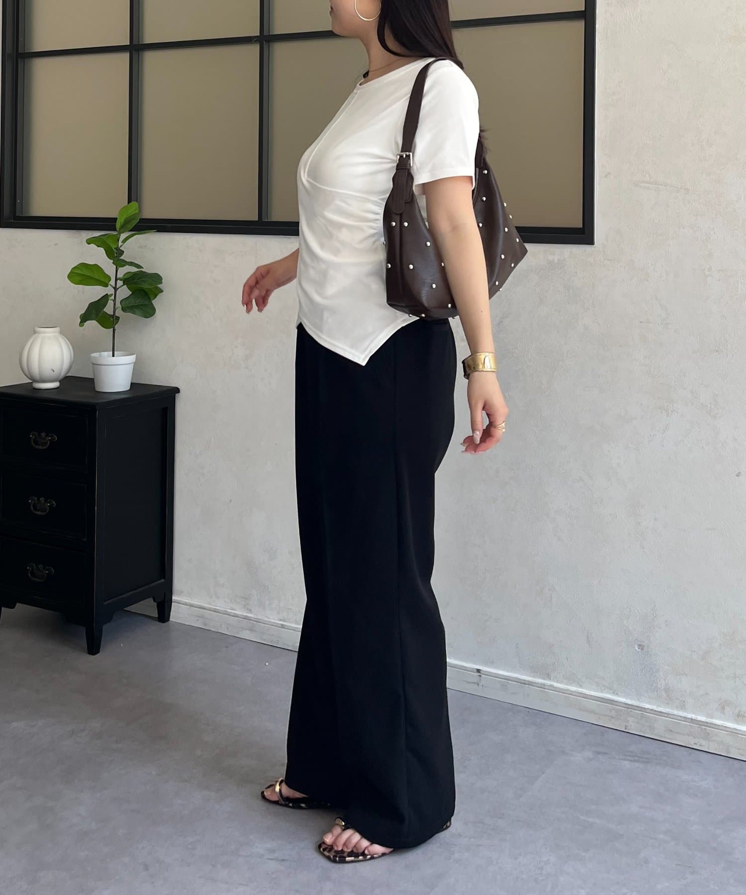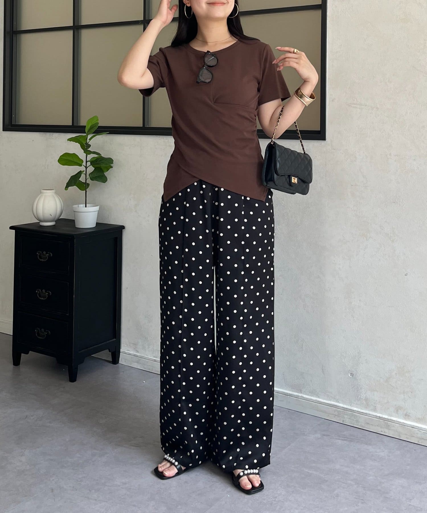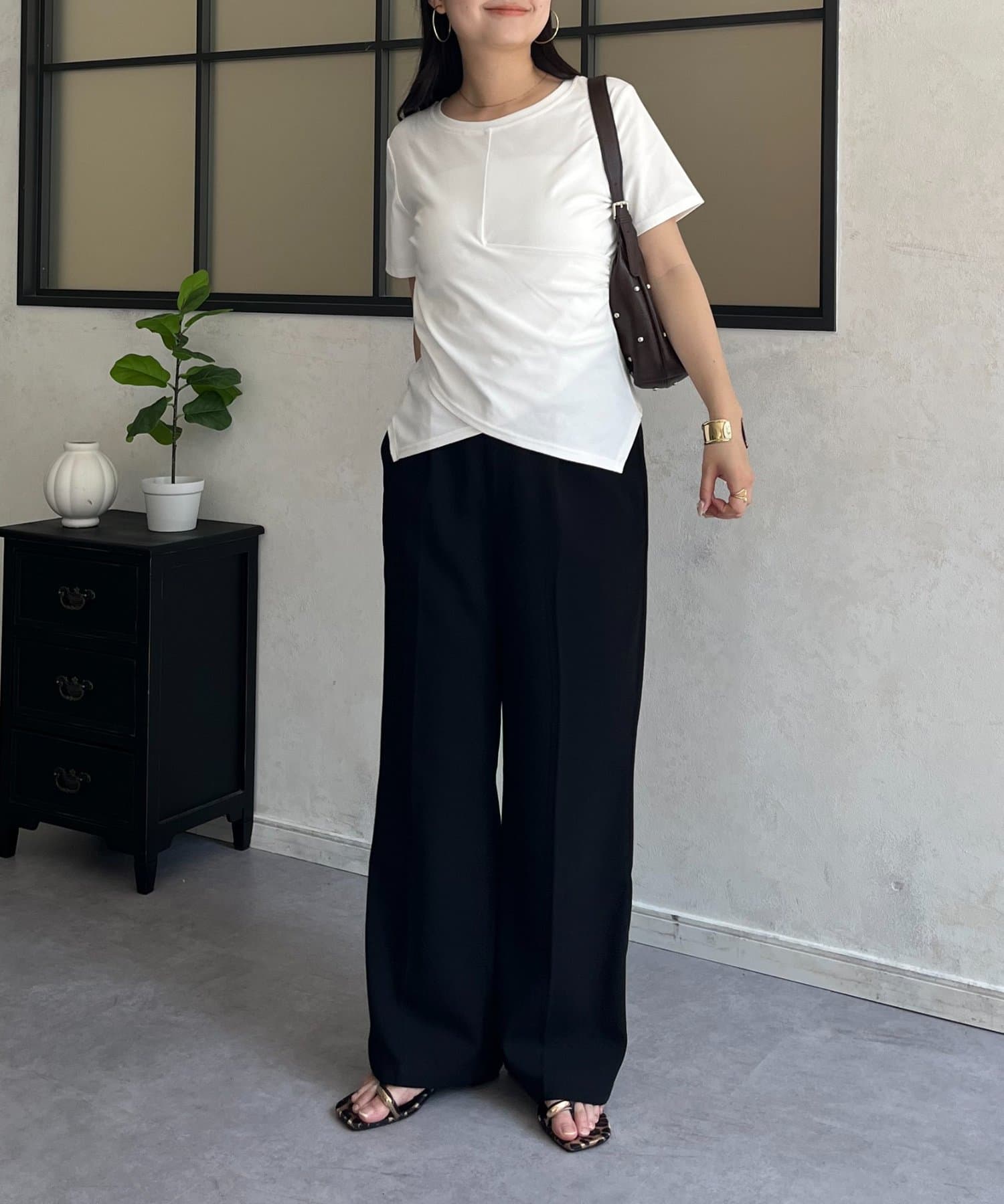 ●ウエスト部分のクロスデザインが、気になるお腹周りをさりげなくカバー