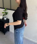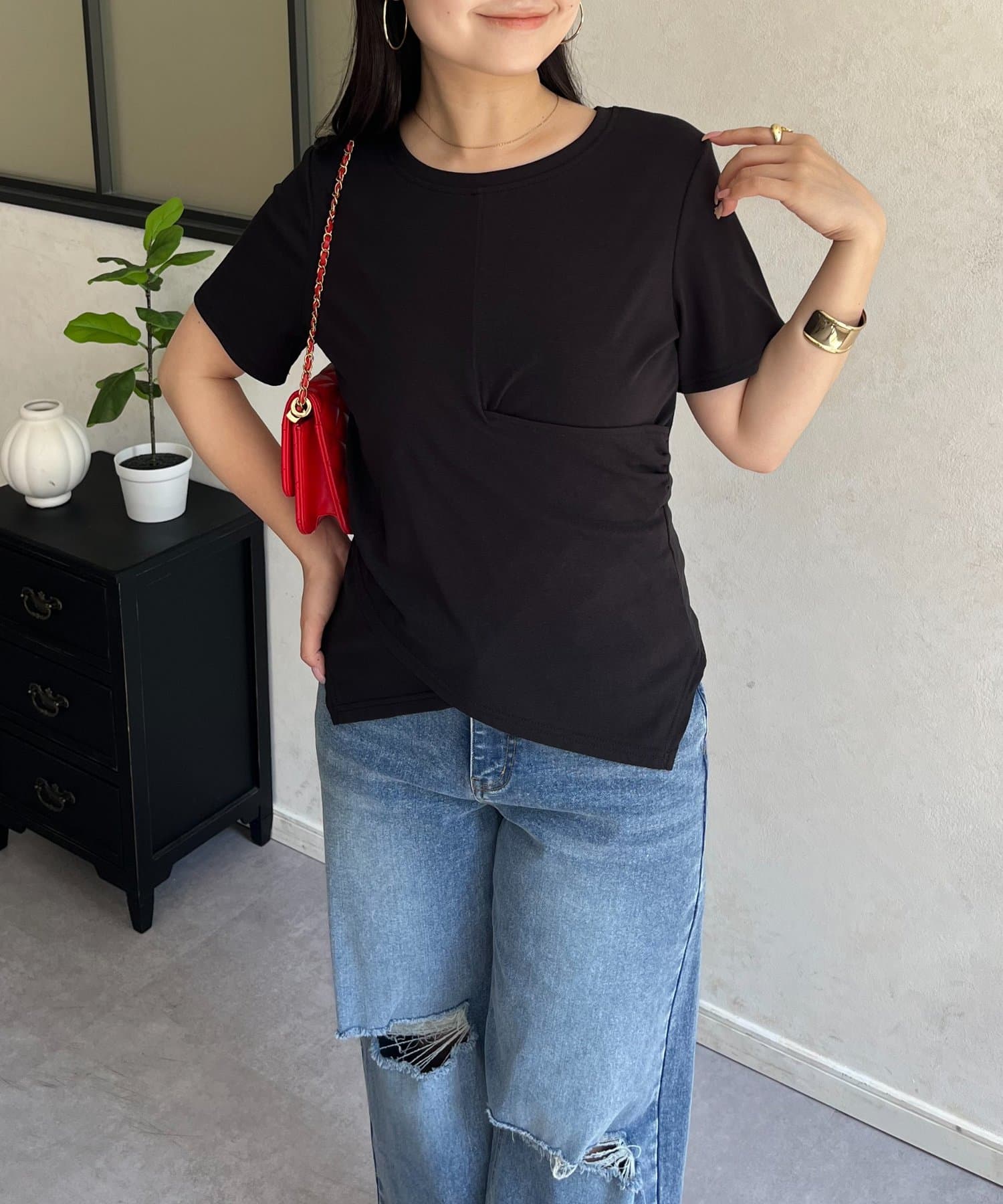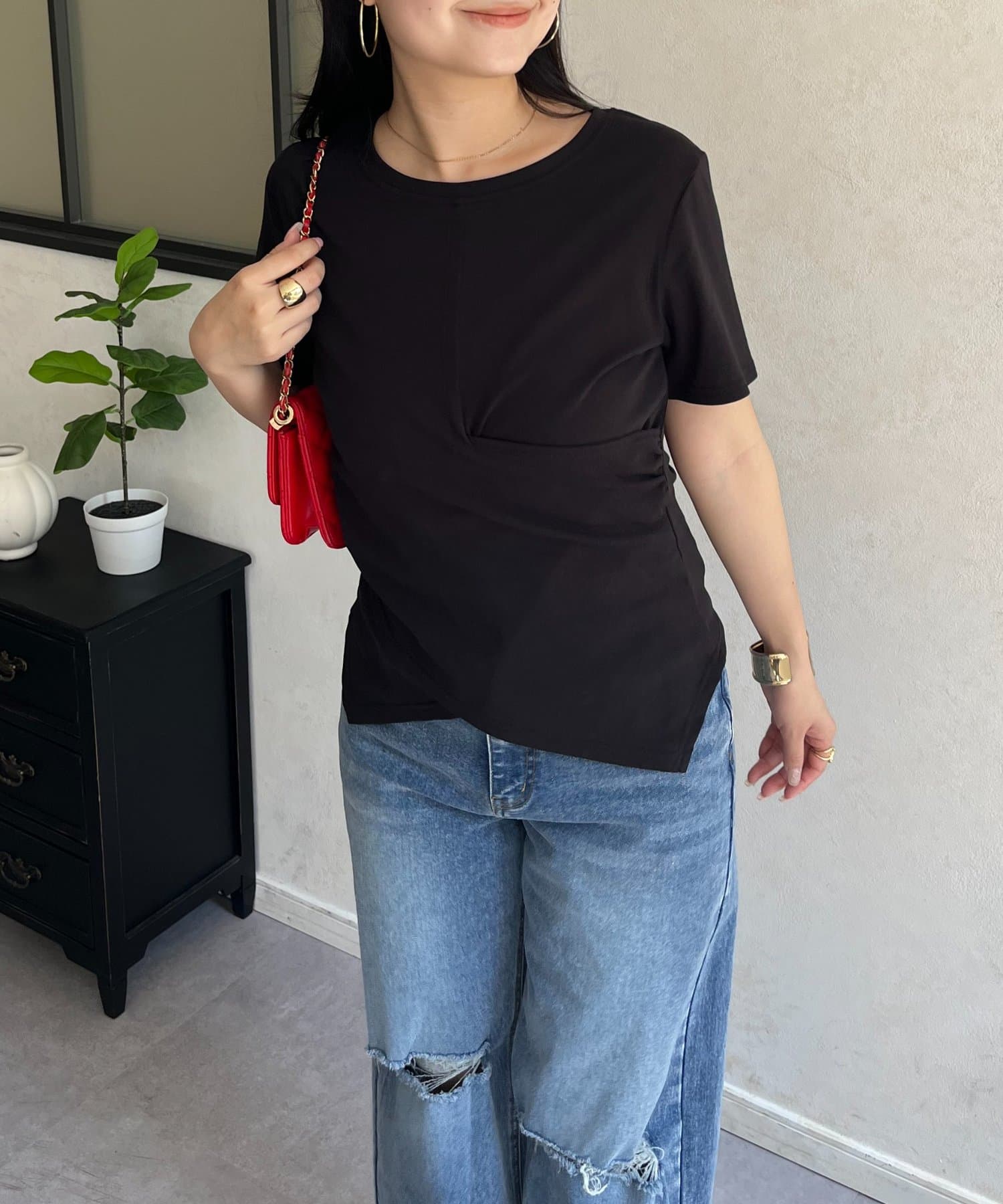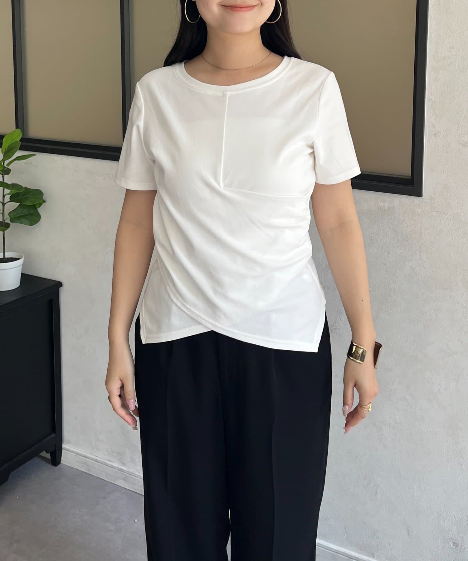 ●ウエスト部分のクロスデザインが、気になるお腹周りをさりげなくカバー