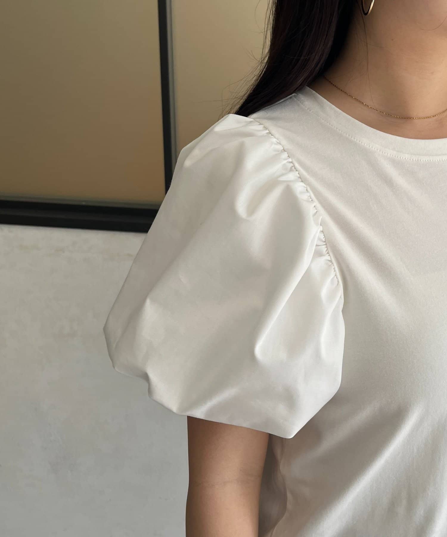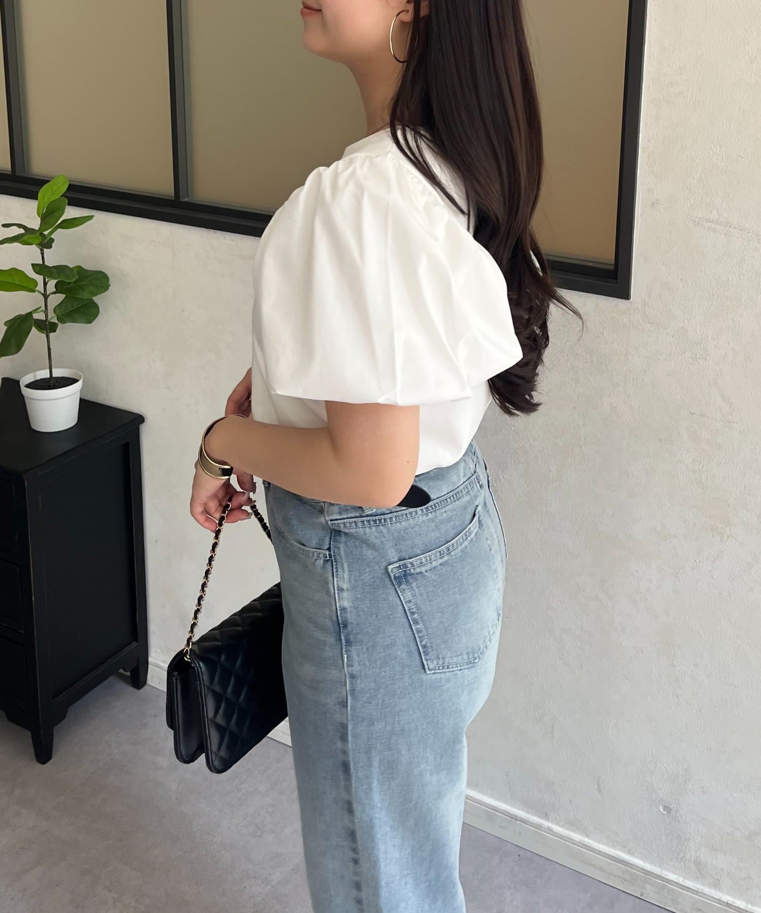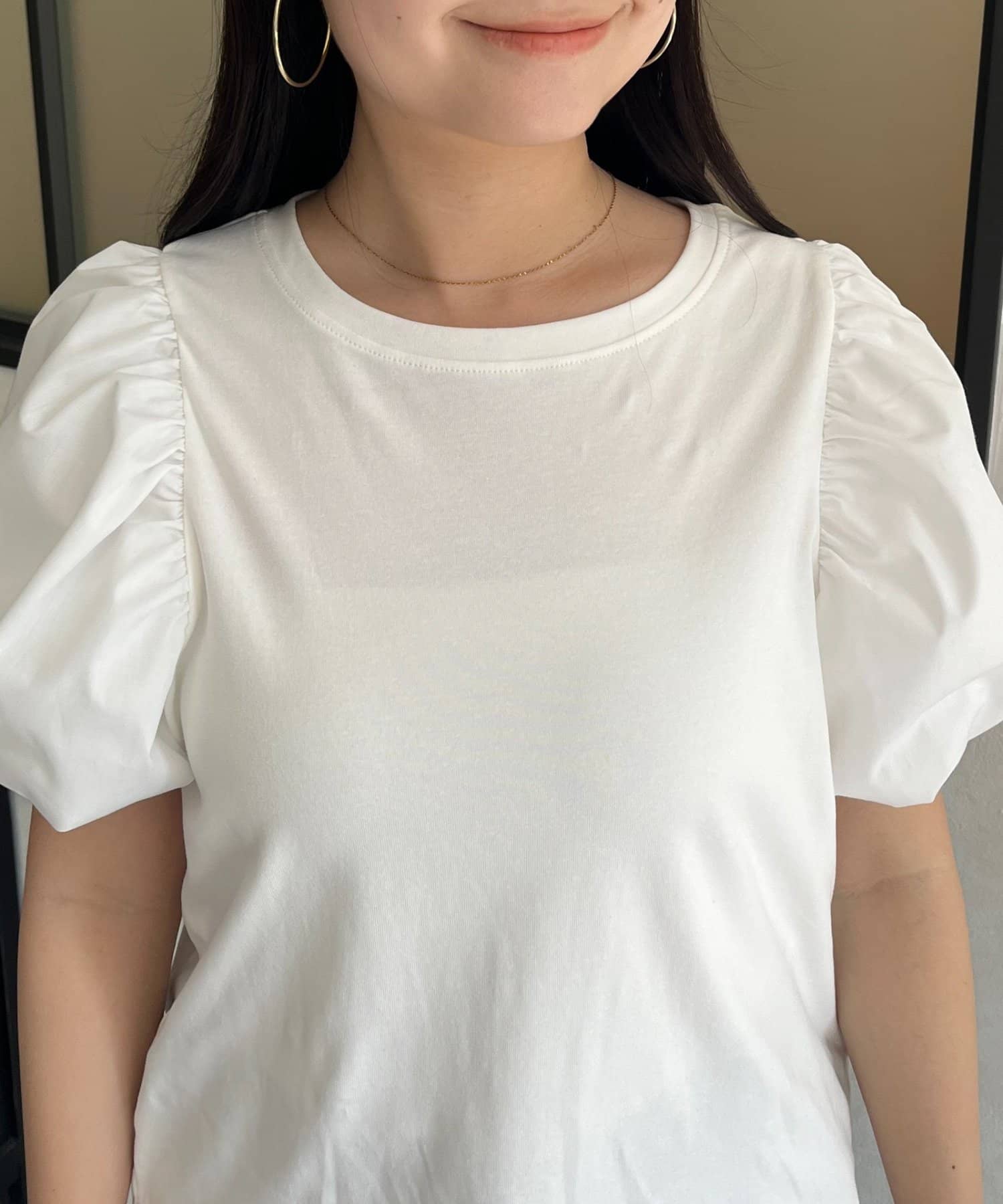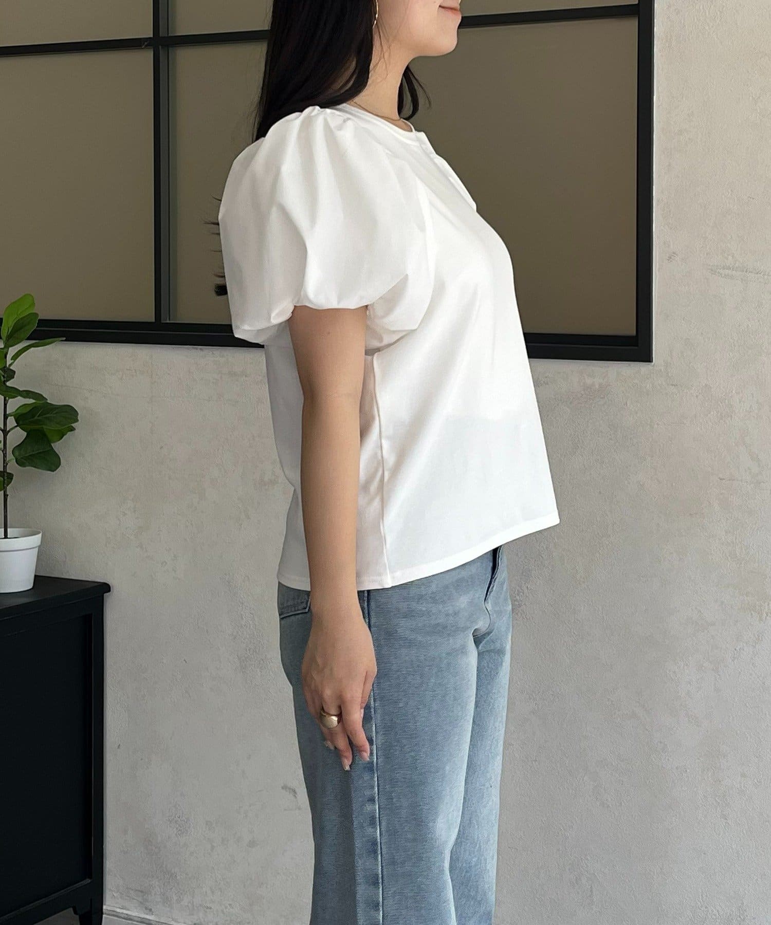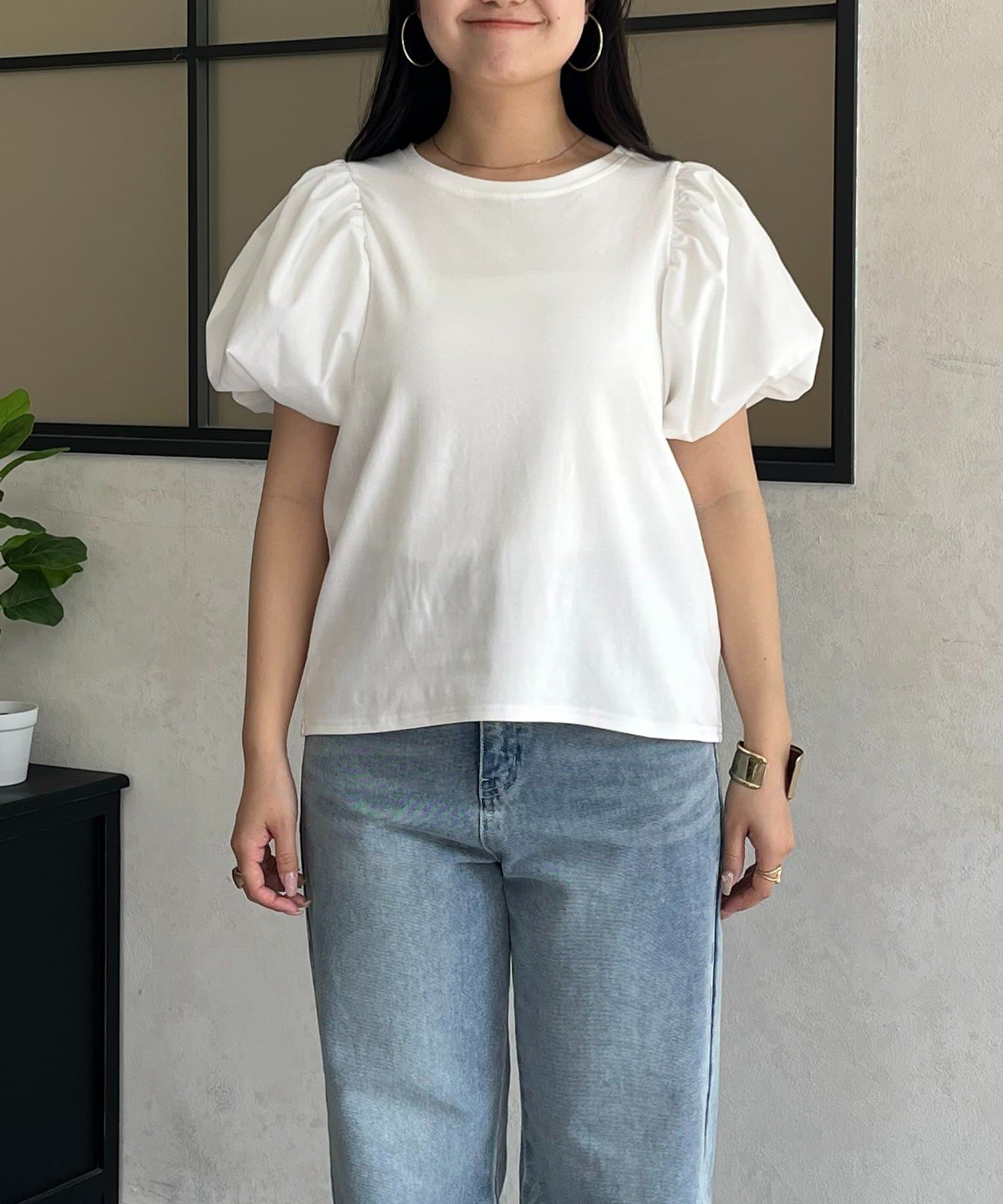 ●ふんわりとしたボリュームのパフスリーブが、気になる二の腕をさりげなくカバー