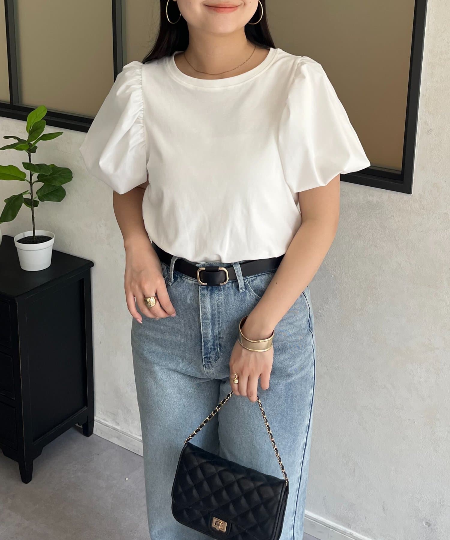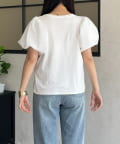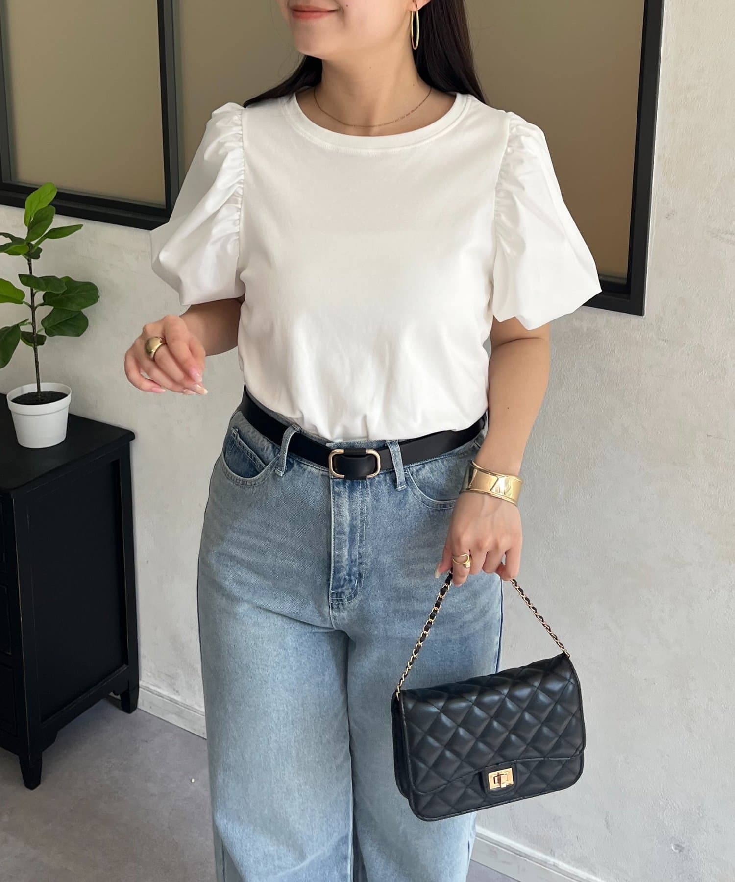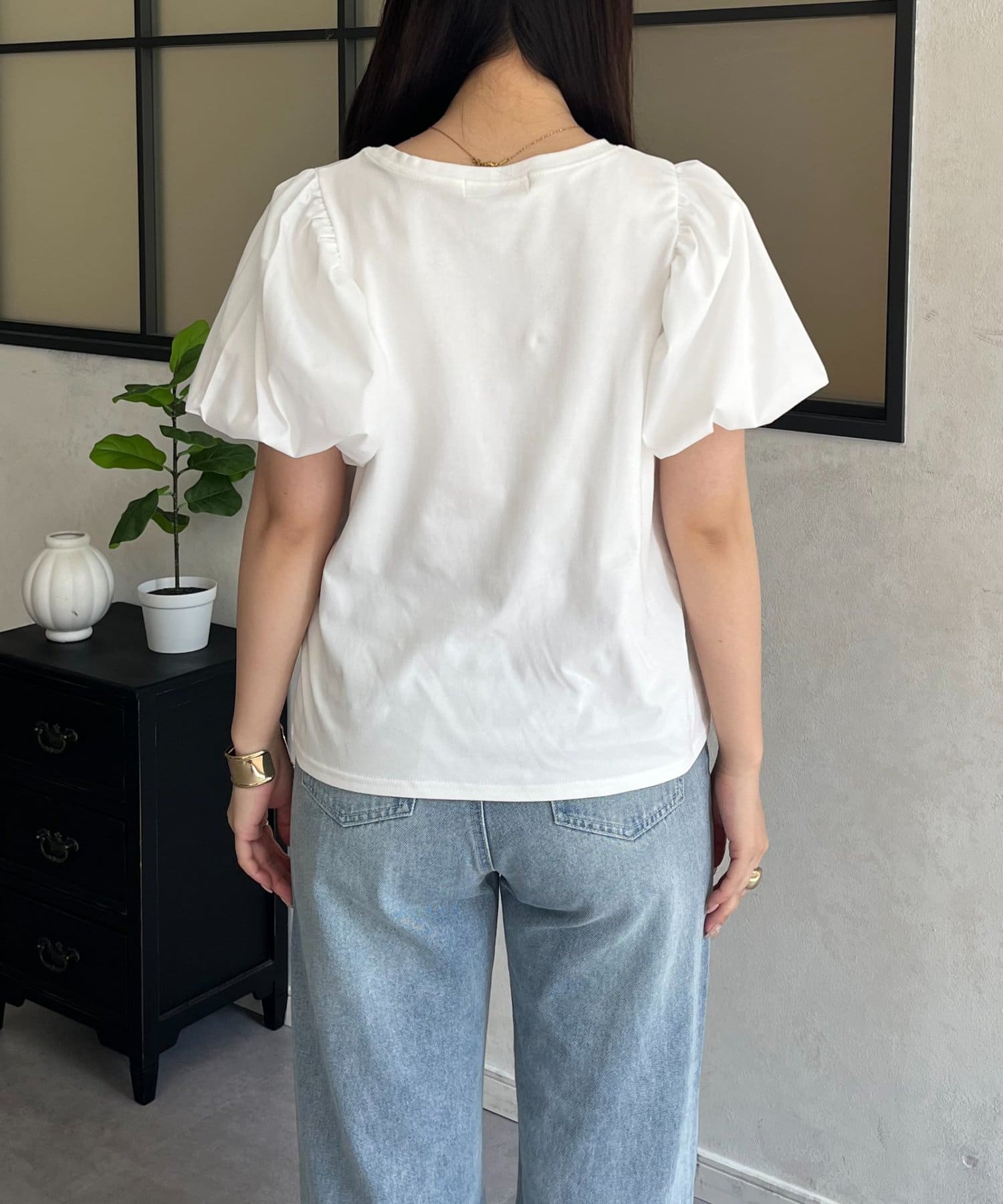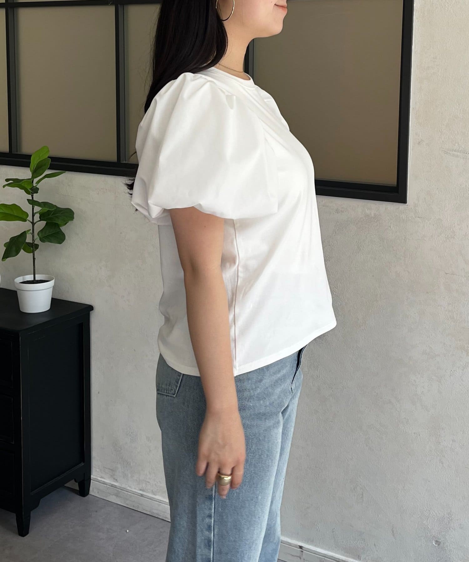●ふんわりとしたボリュームのパフスリーブが、気になる二の腕をさりげなくカバー