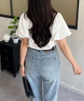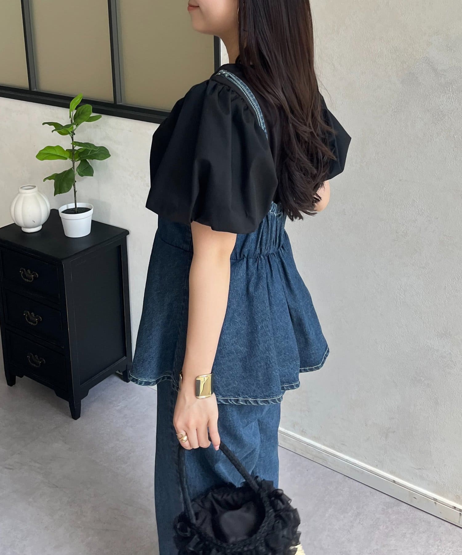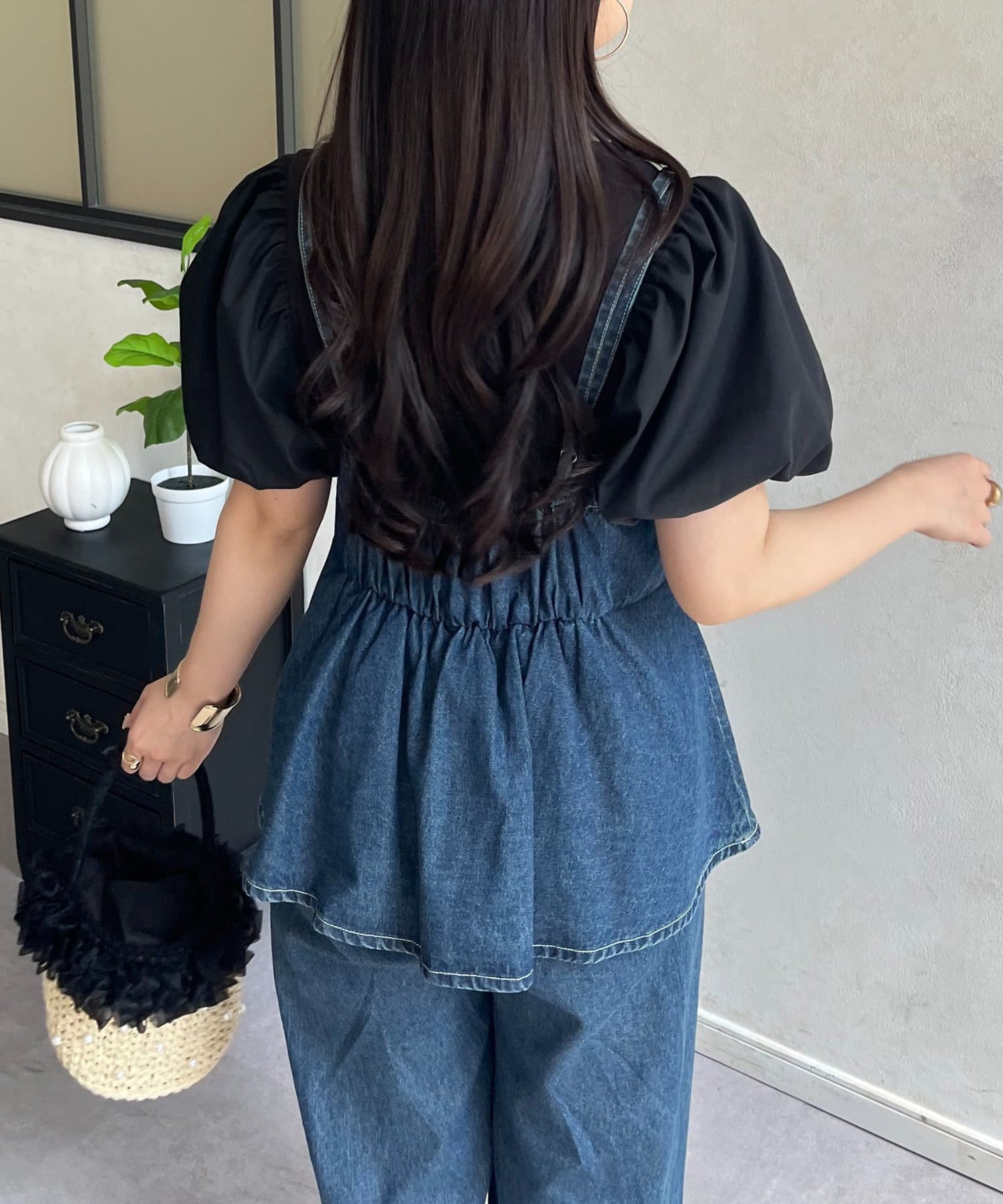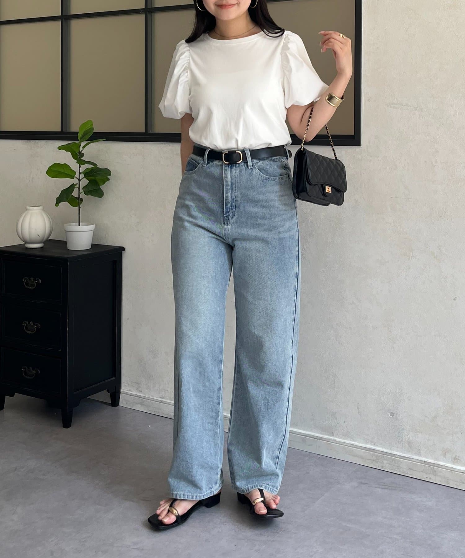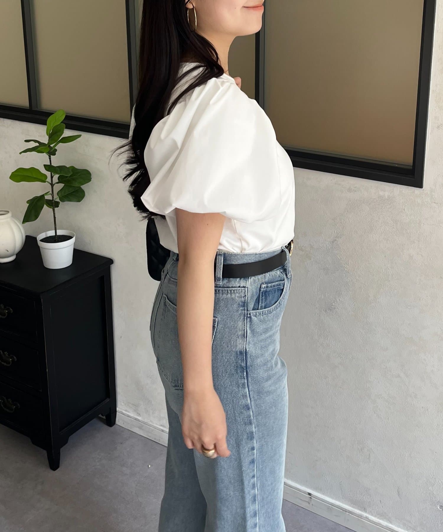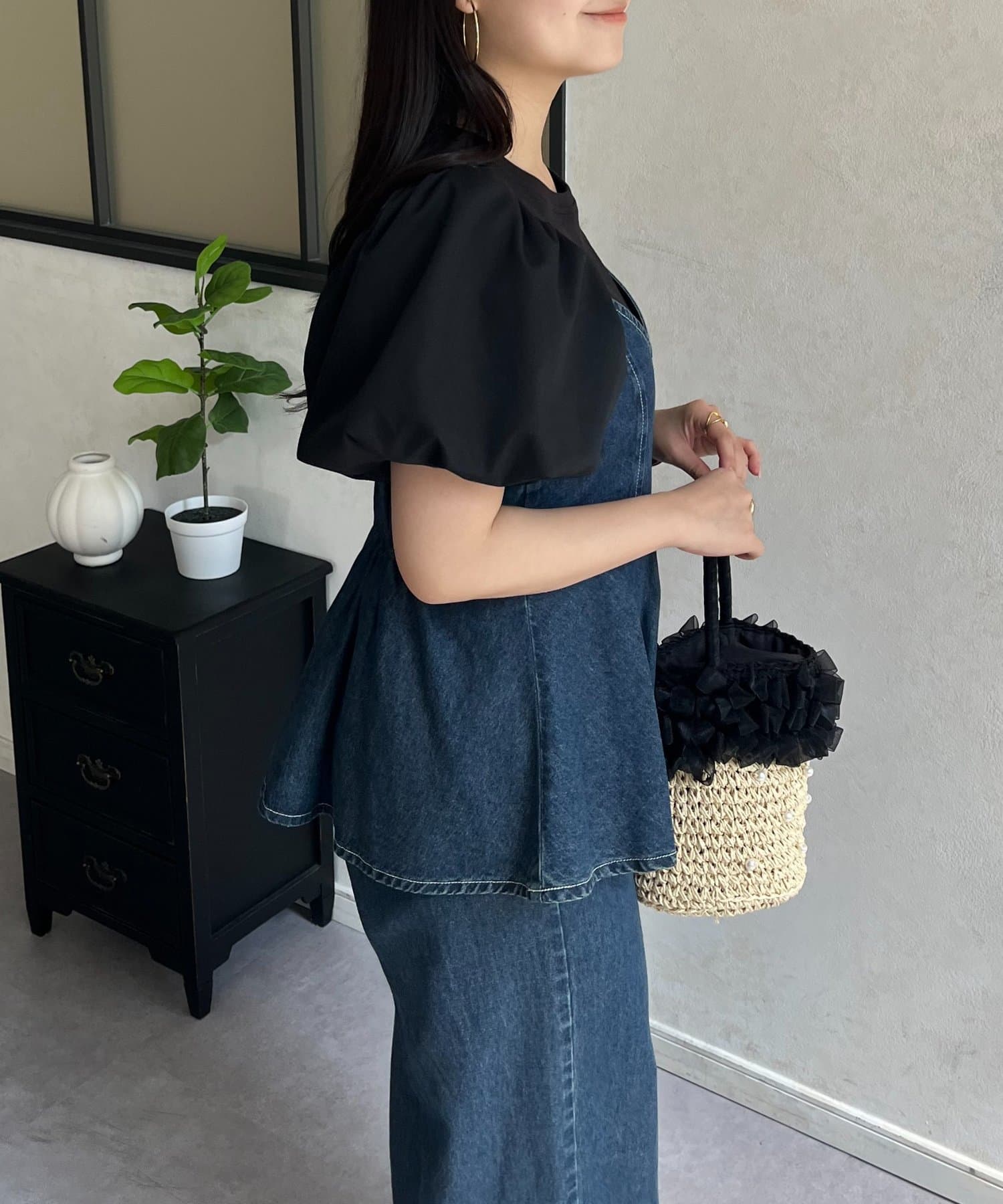 ●ふんわりとしたボリュームのパフスリーブが、気になる二の腕をさりげなくカバー