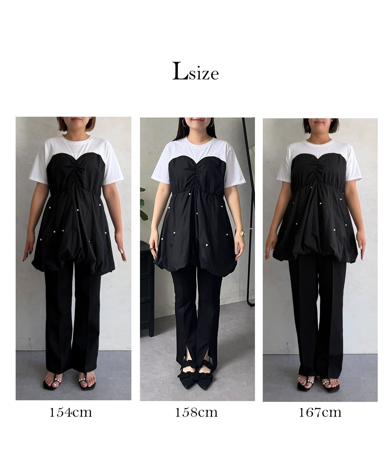 TOP > prose verse > レディース > トップス > Tシャツ/カットソー > 裾バルーンパールビスチェドッキングTシャツ