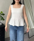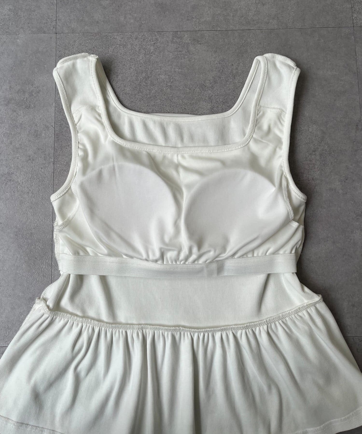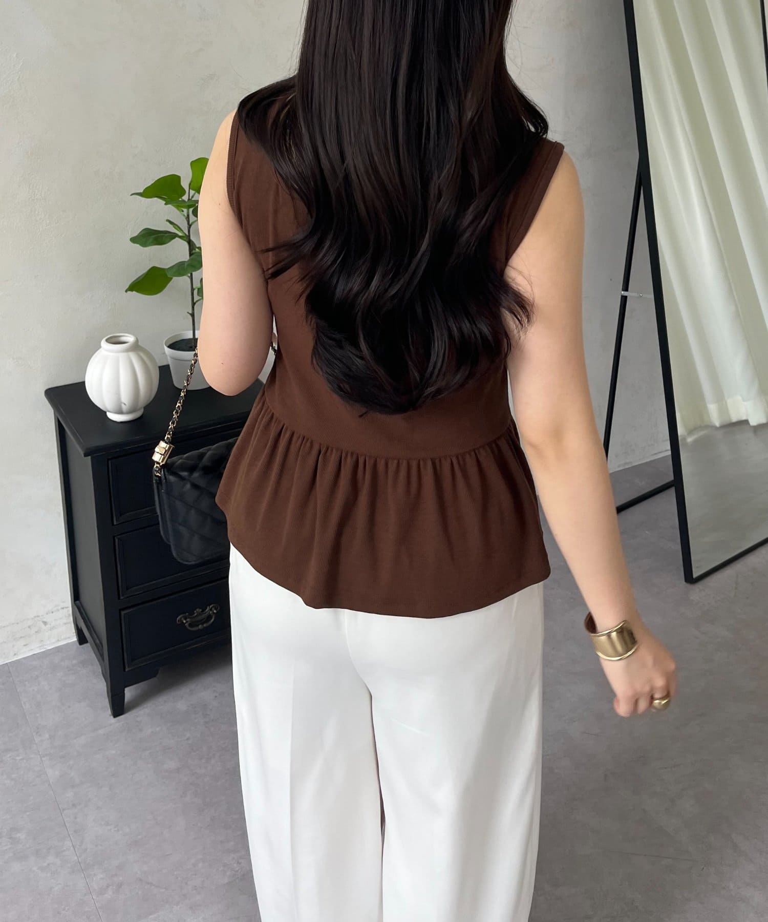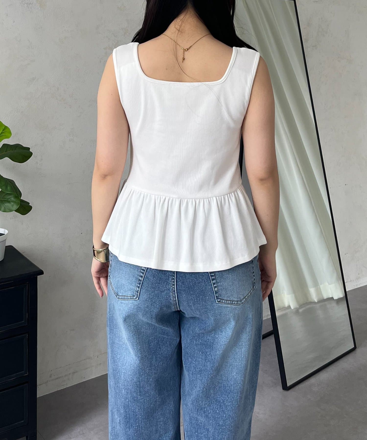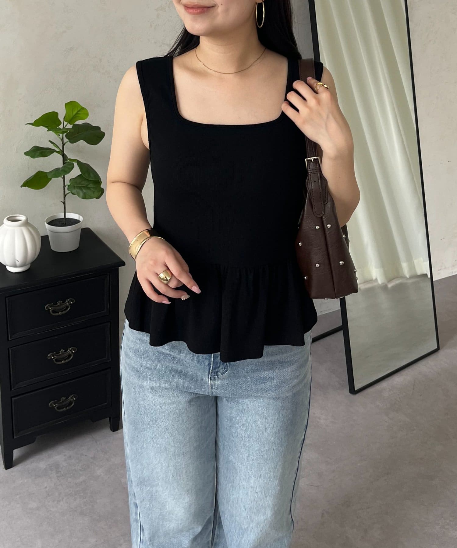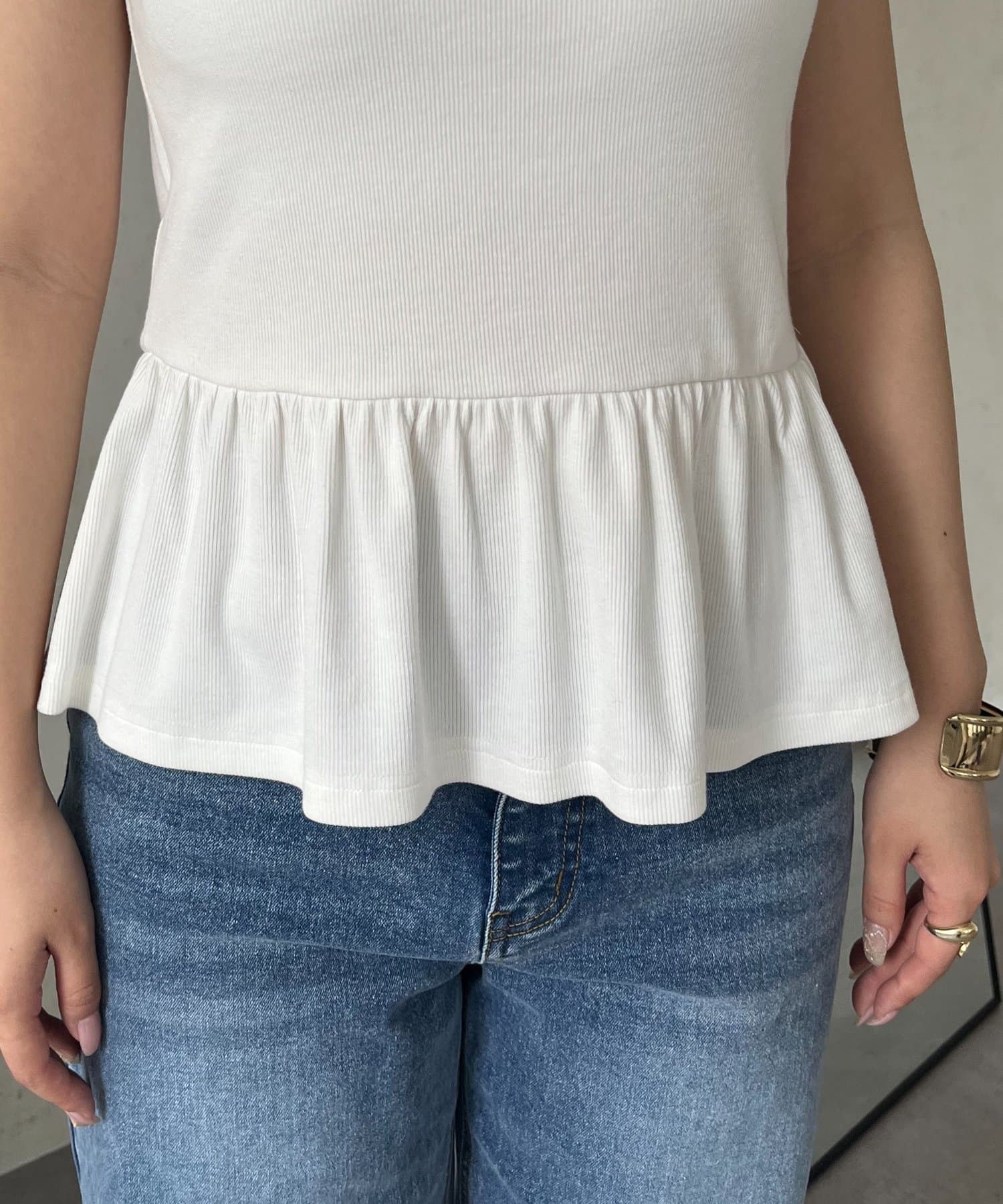 1枚で着映える、楽ちんきれい見え。カップ付きペプラムリブタンクトップ