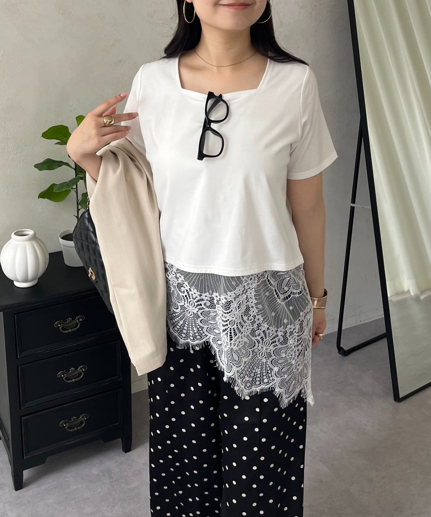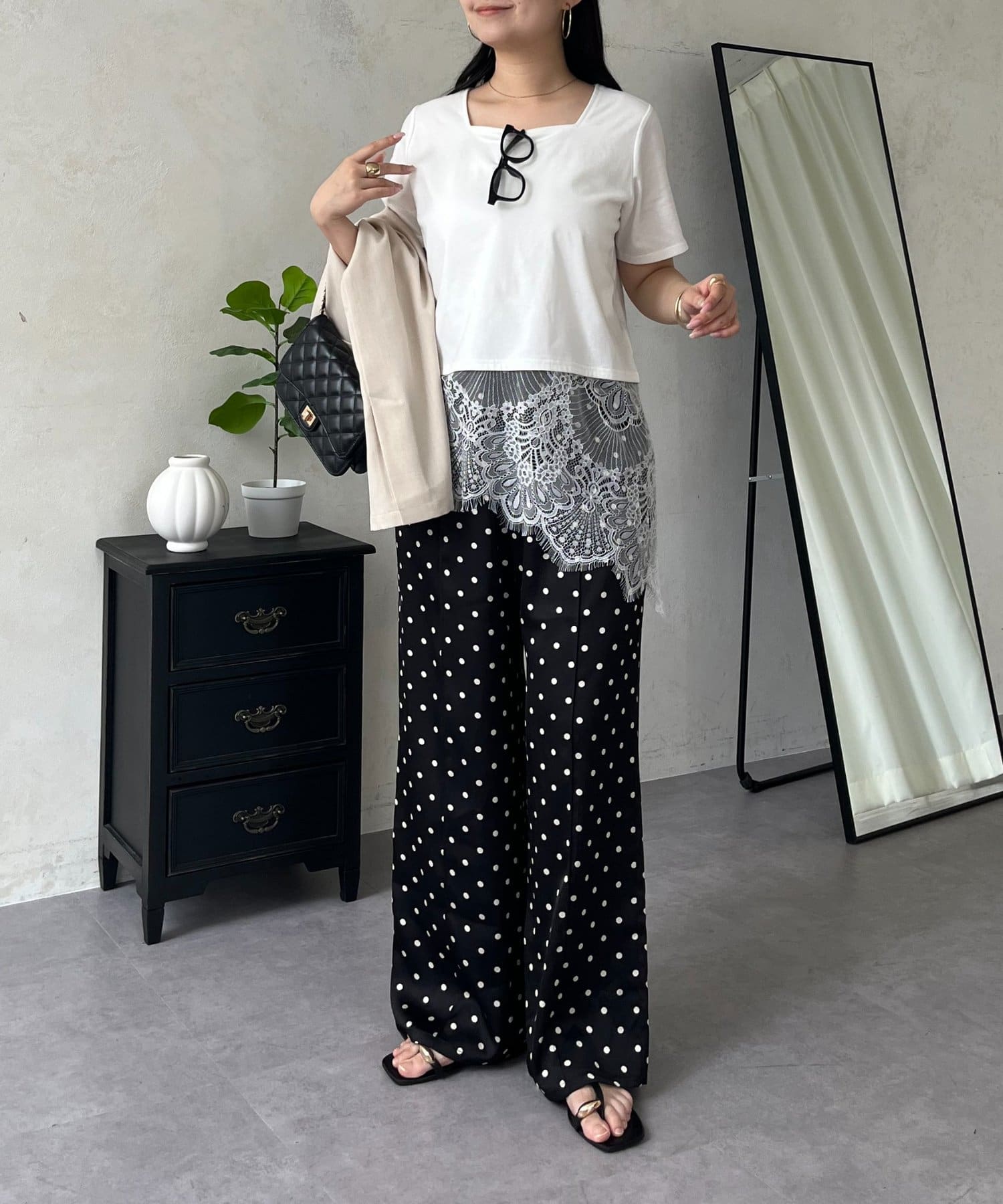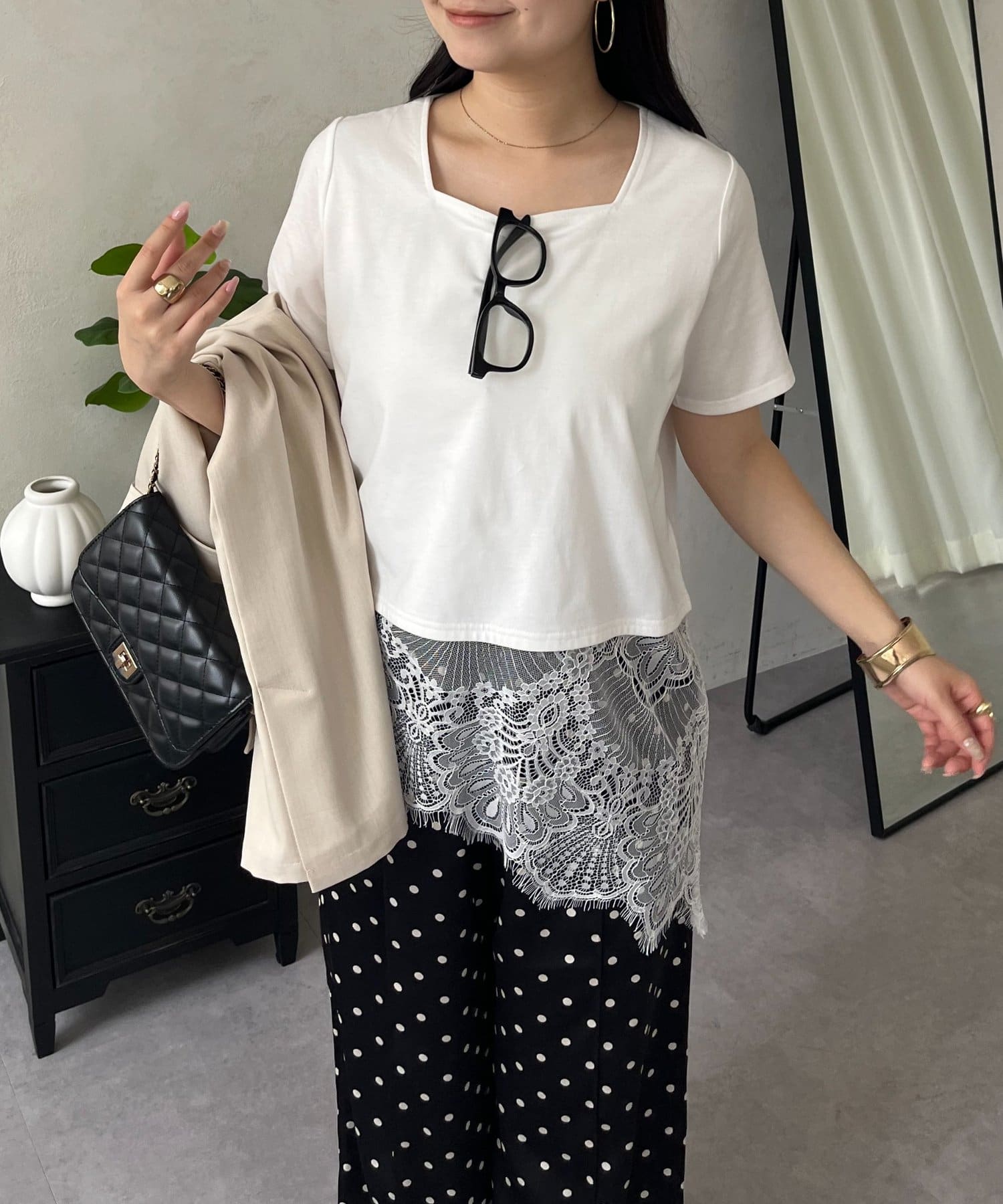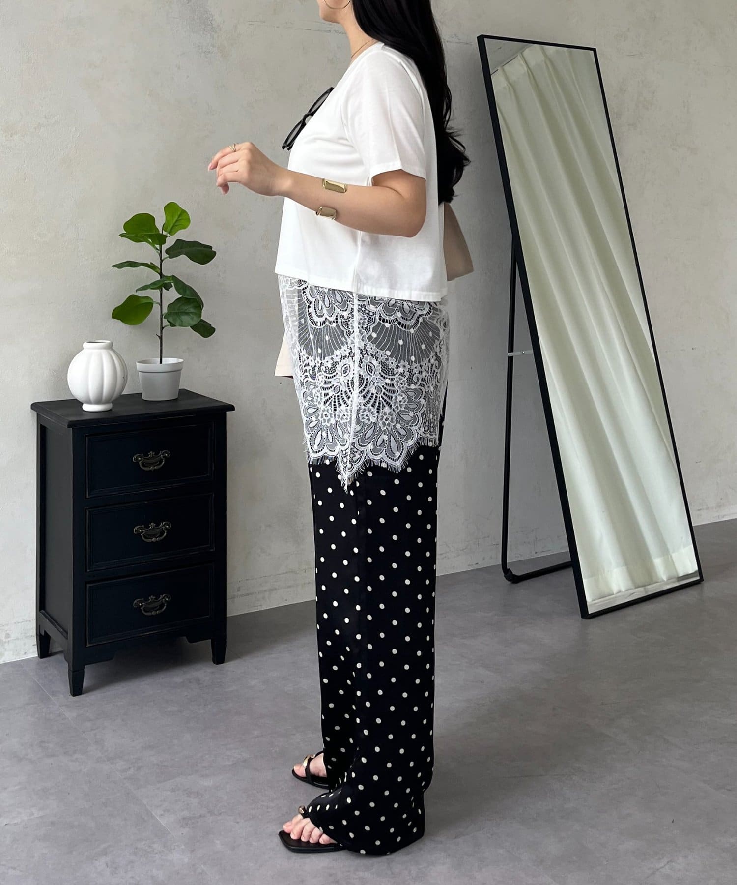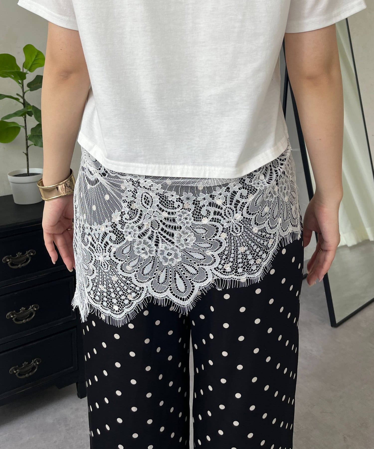 ●裾レースが、コーディネートに上品な甘さと華やかさをプラス