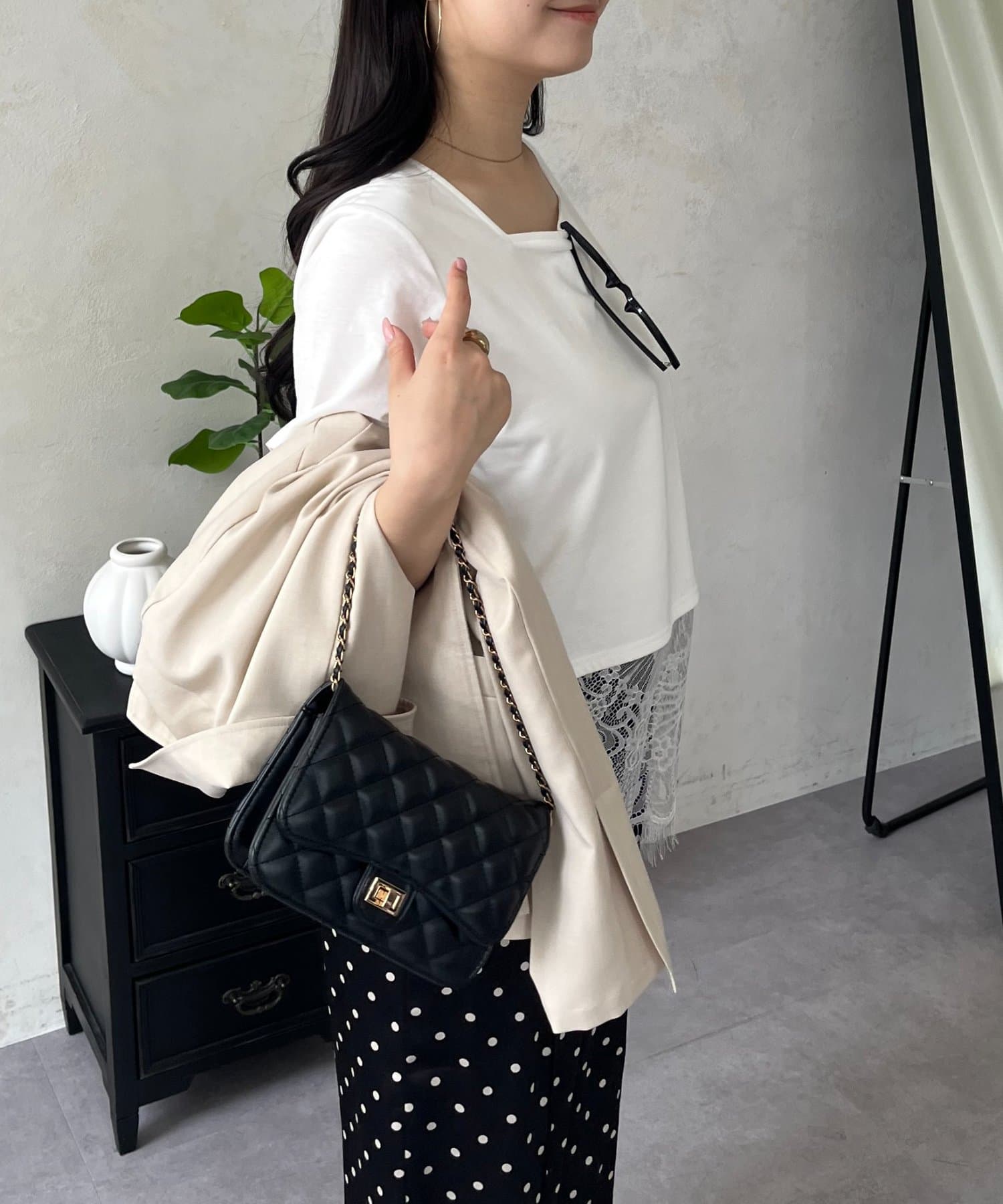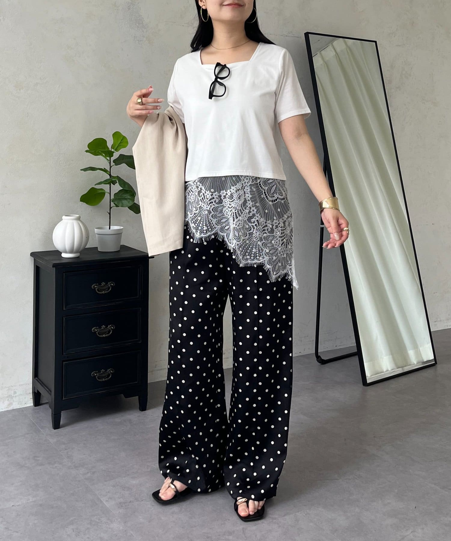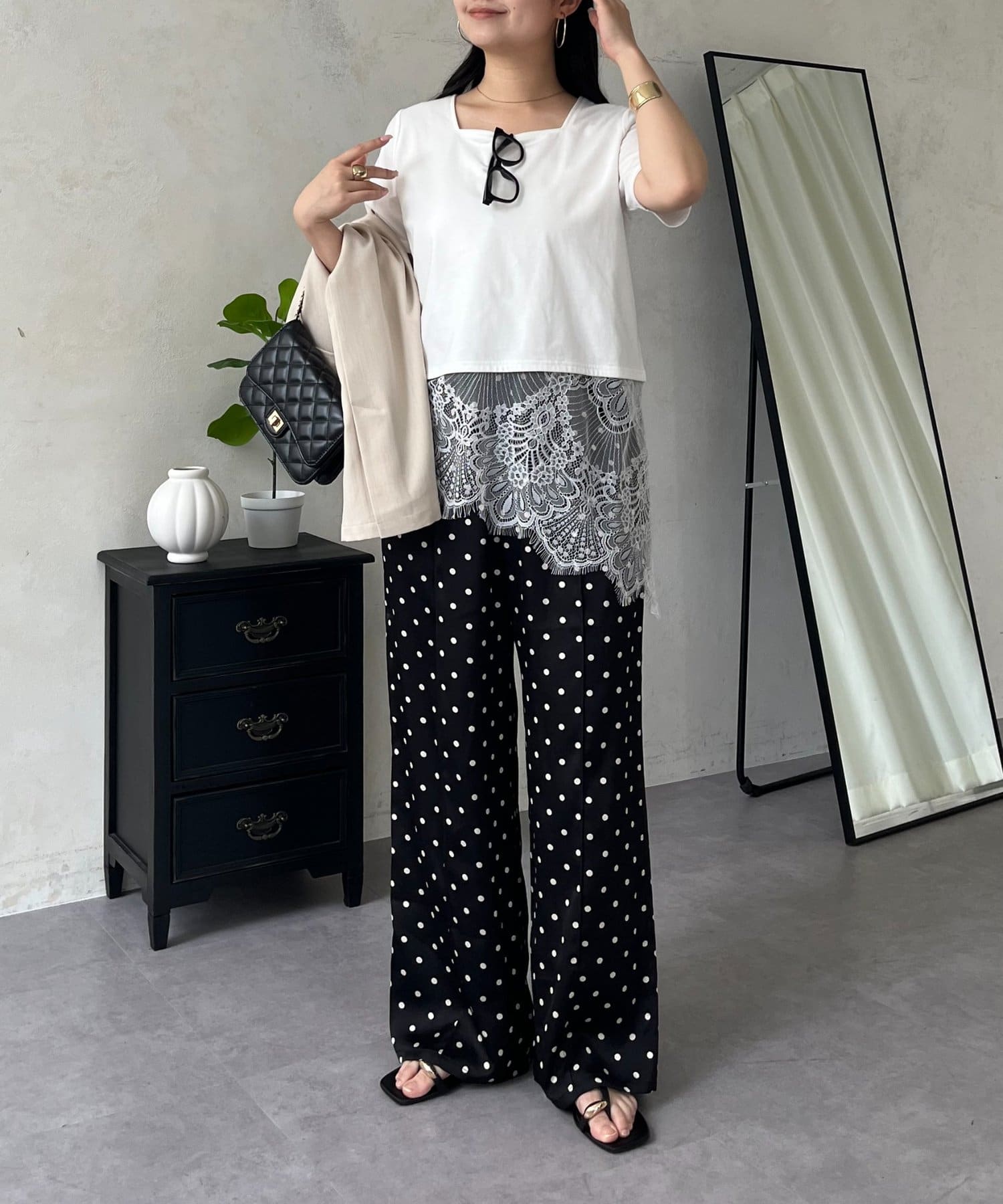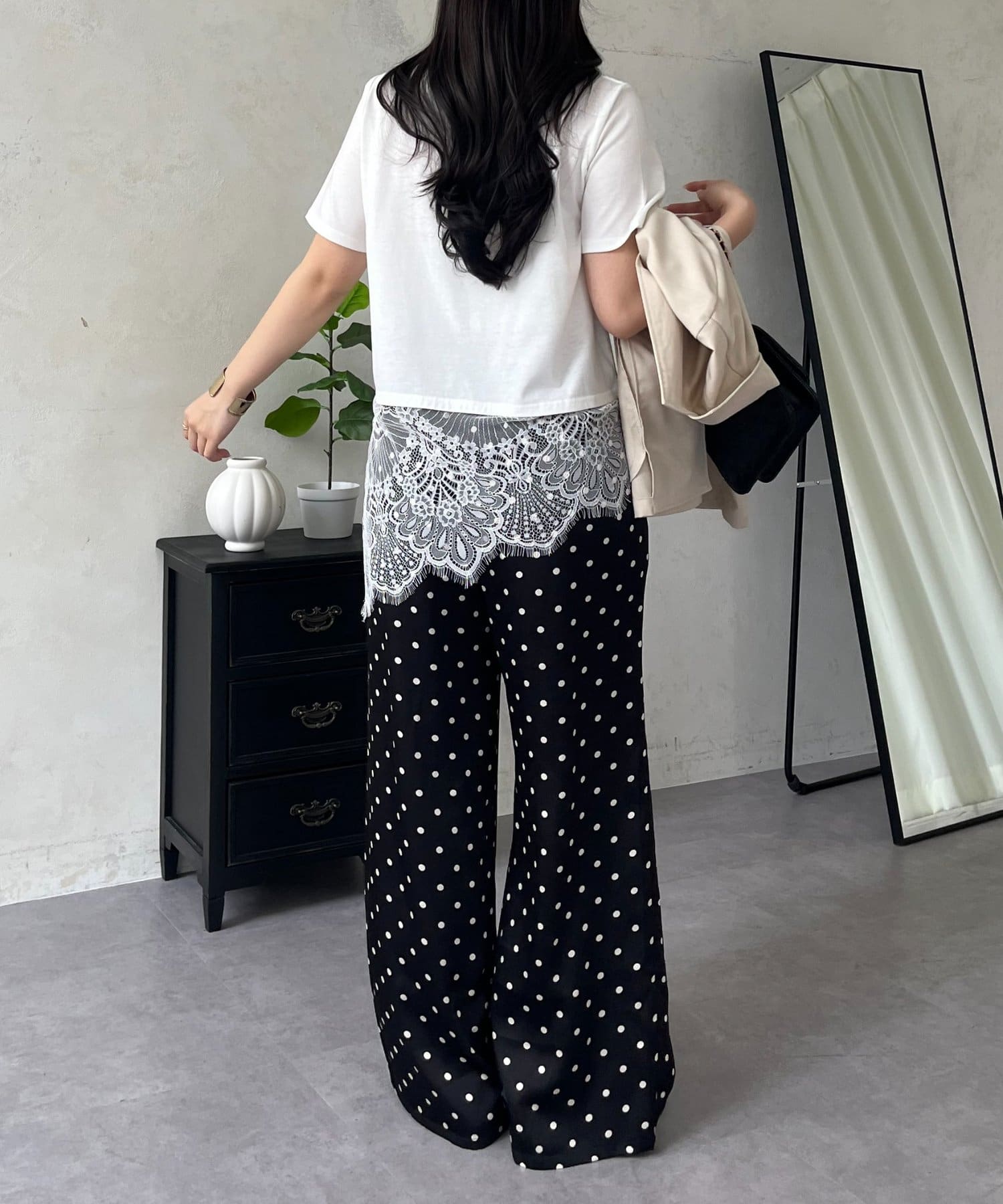 ●裾レースが、コーディネートに上品な甘さと華やかさをプラス