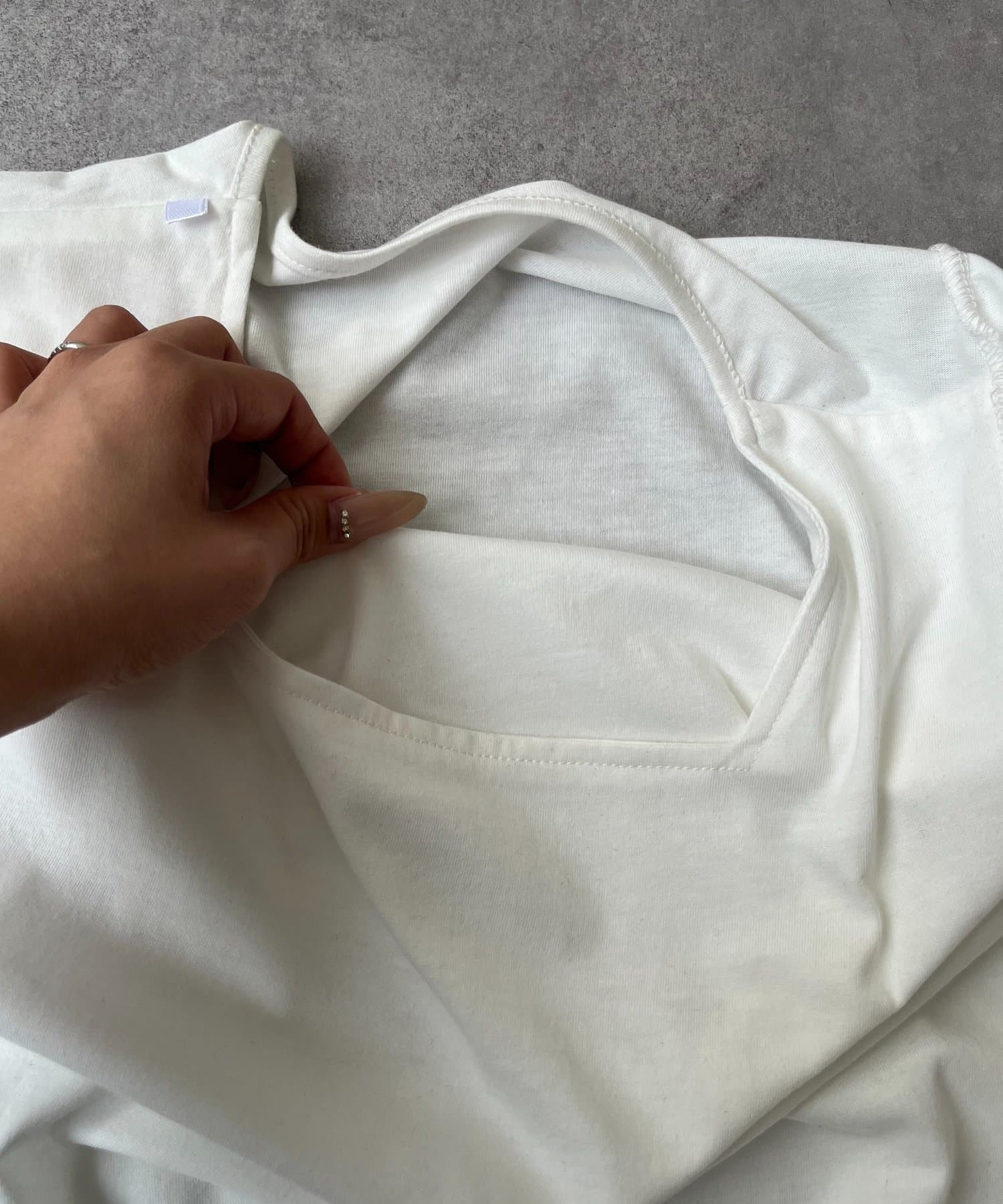 ●デコルテラインを美しく見せる、すっきりとしたスクエアネックデザイン