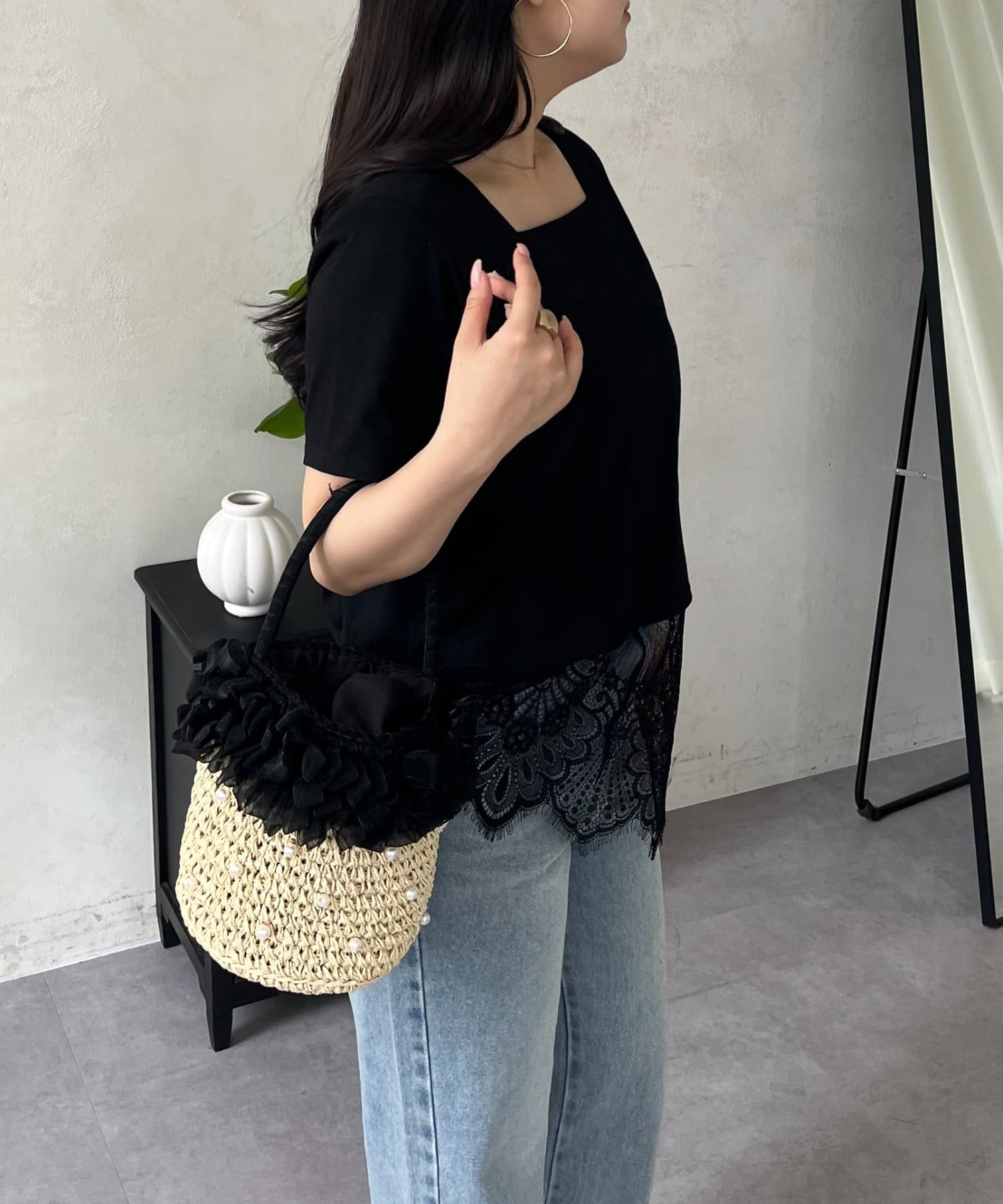 一枚で着映える、華やか裾レースの主役級Tシャツ