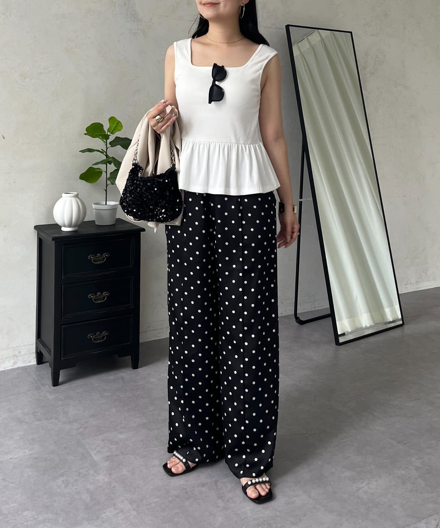 ●甘すぎないランダムなドット柄で、大人可愛いスタイルが完成
