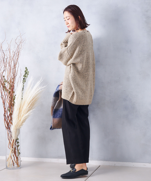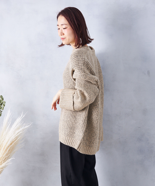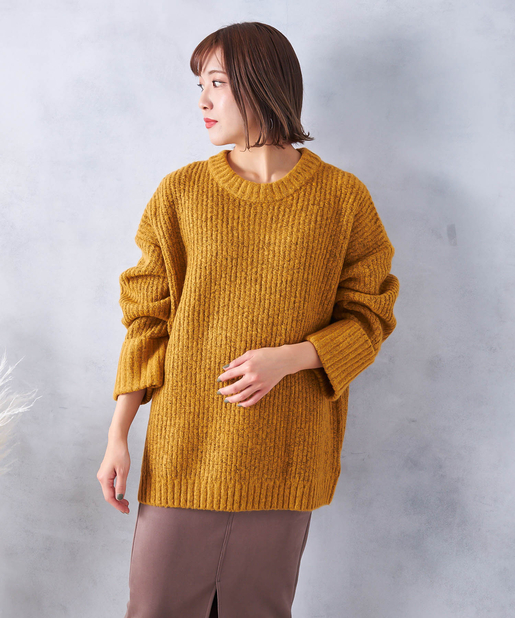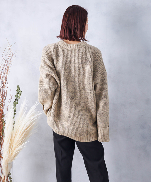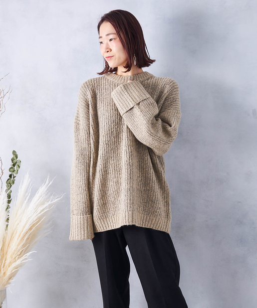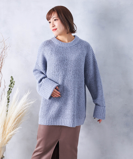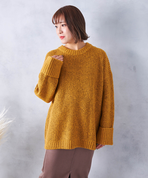 【肌触りふわふわ】オーバーサイズ袖折り返しニット