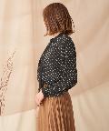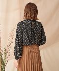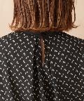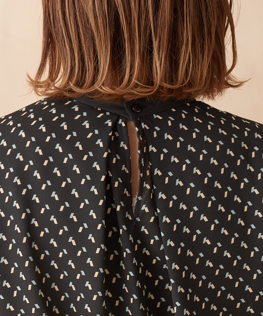 幾何学柄のブラウス。