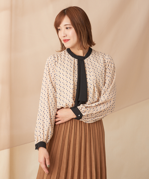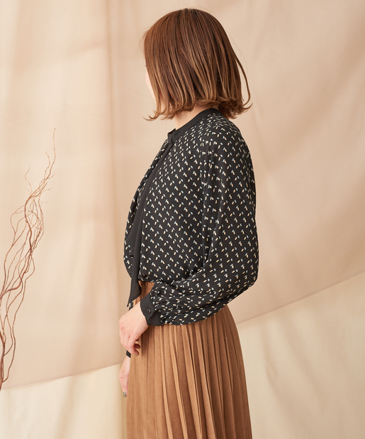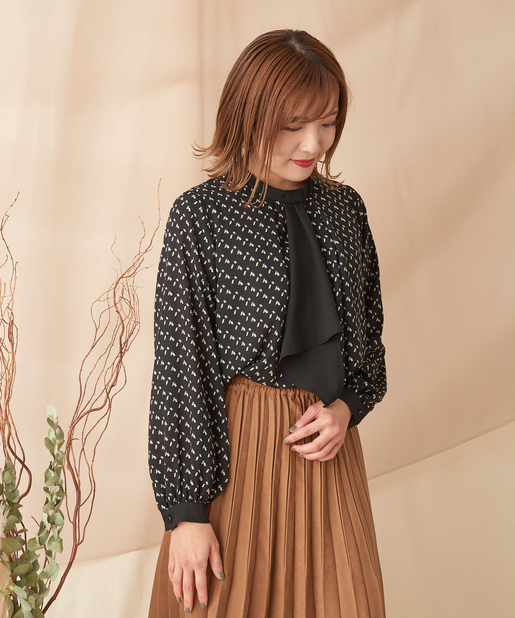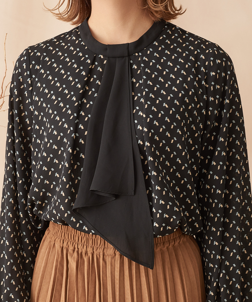 【オン・オフ兼用】幾何柄ボウタイブラウス