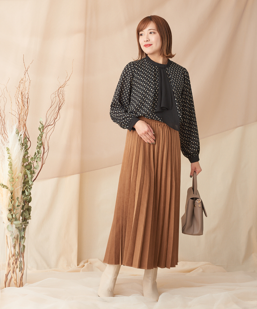 身頃の前後にタックをあしらうことで、しなやかな印象を生み出しています。
