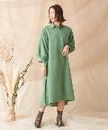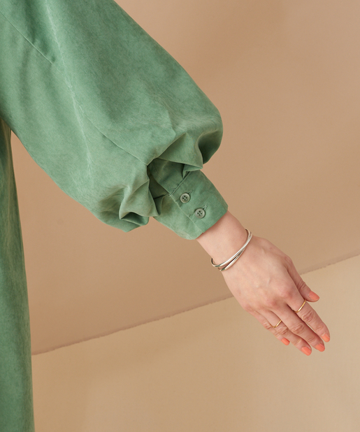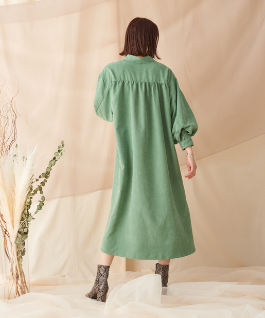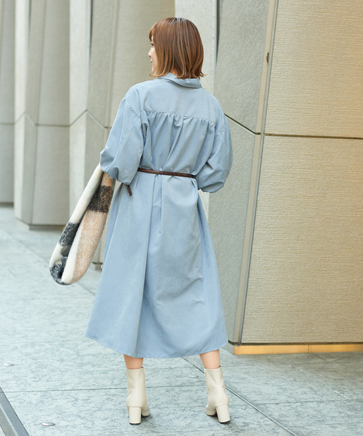 ふんわりとボリュームのある袖が印象的なシャツワンピース。こなれ感のあるゆったりとしたシルエットで、左胸にはポケットを配しています。フロントはボタン留め仕様になっており、後ろ身頃にあしらったタックが柔らかな雰囲気をプラス。リラックスモードで着られるのがうれしい大人のカジュアルアイテムです。