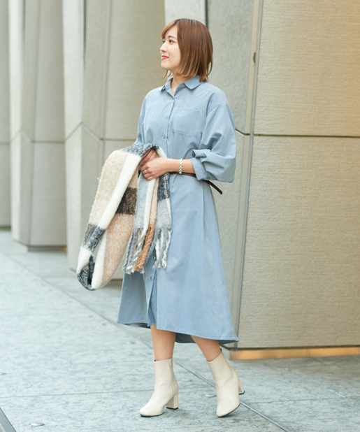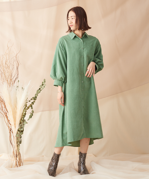 【ゆったりシルエット】袖ボリュームポケット付きシャツワンピース