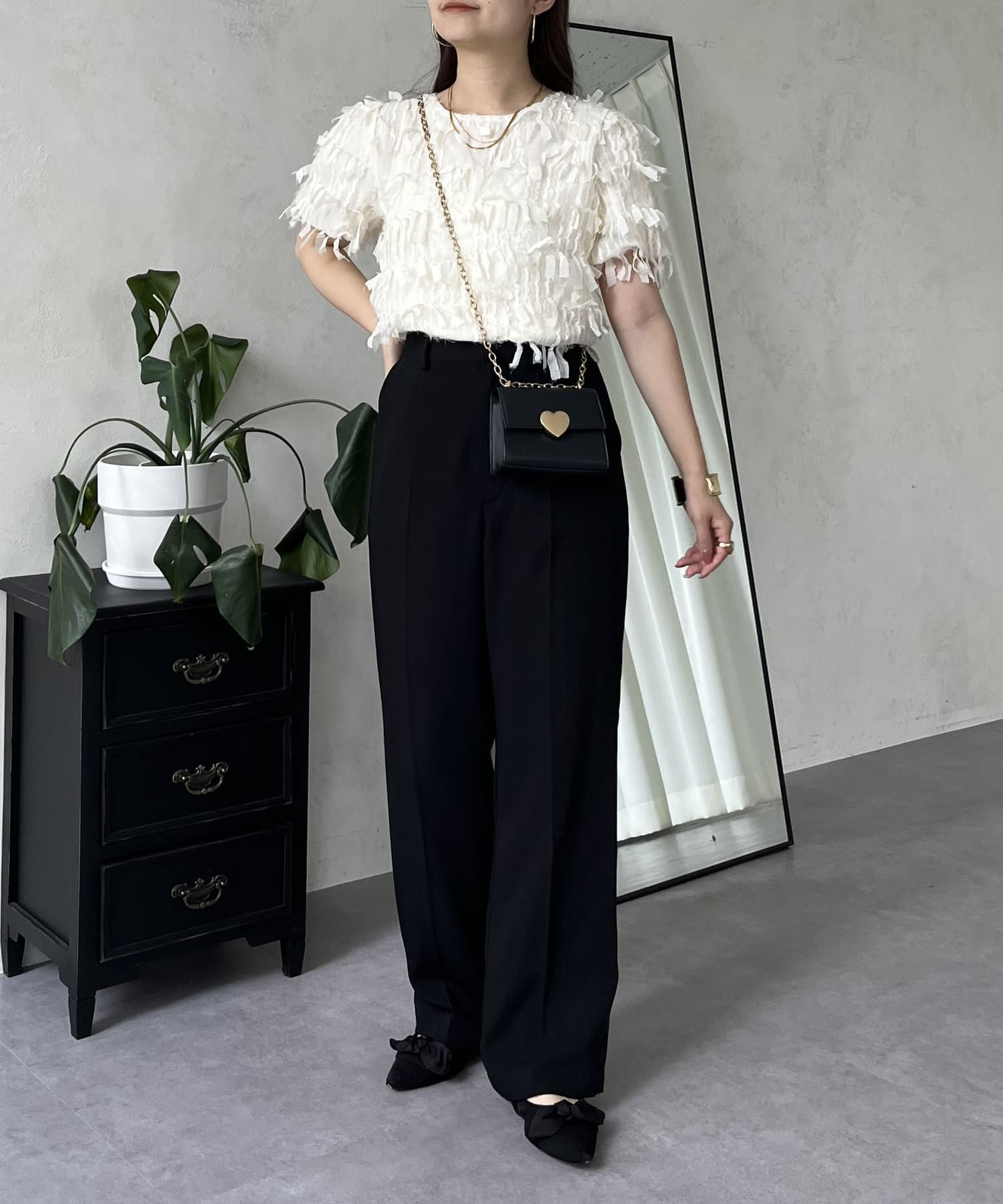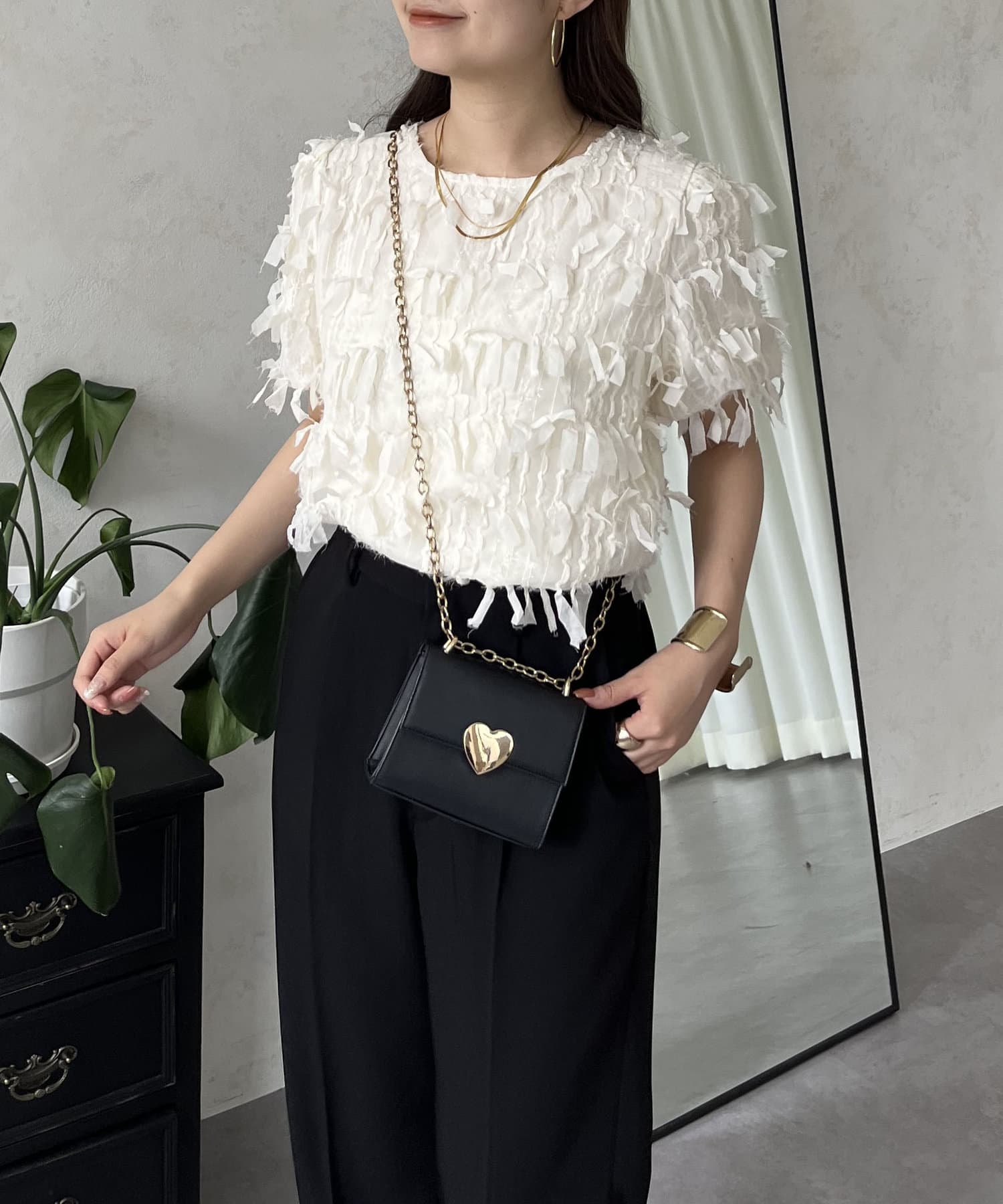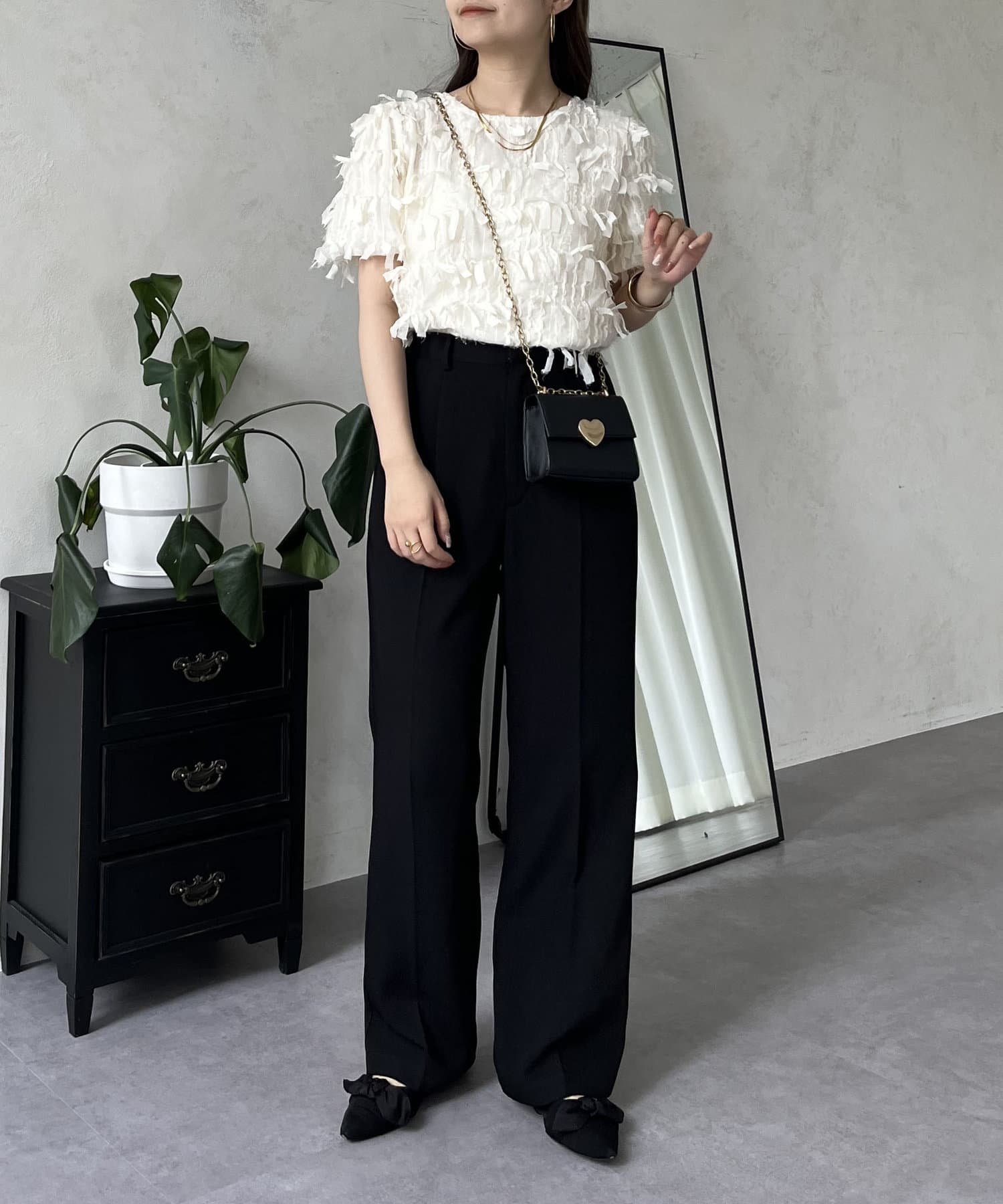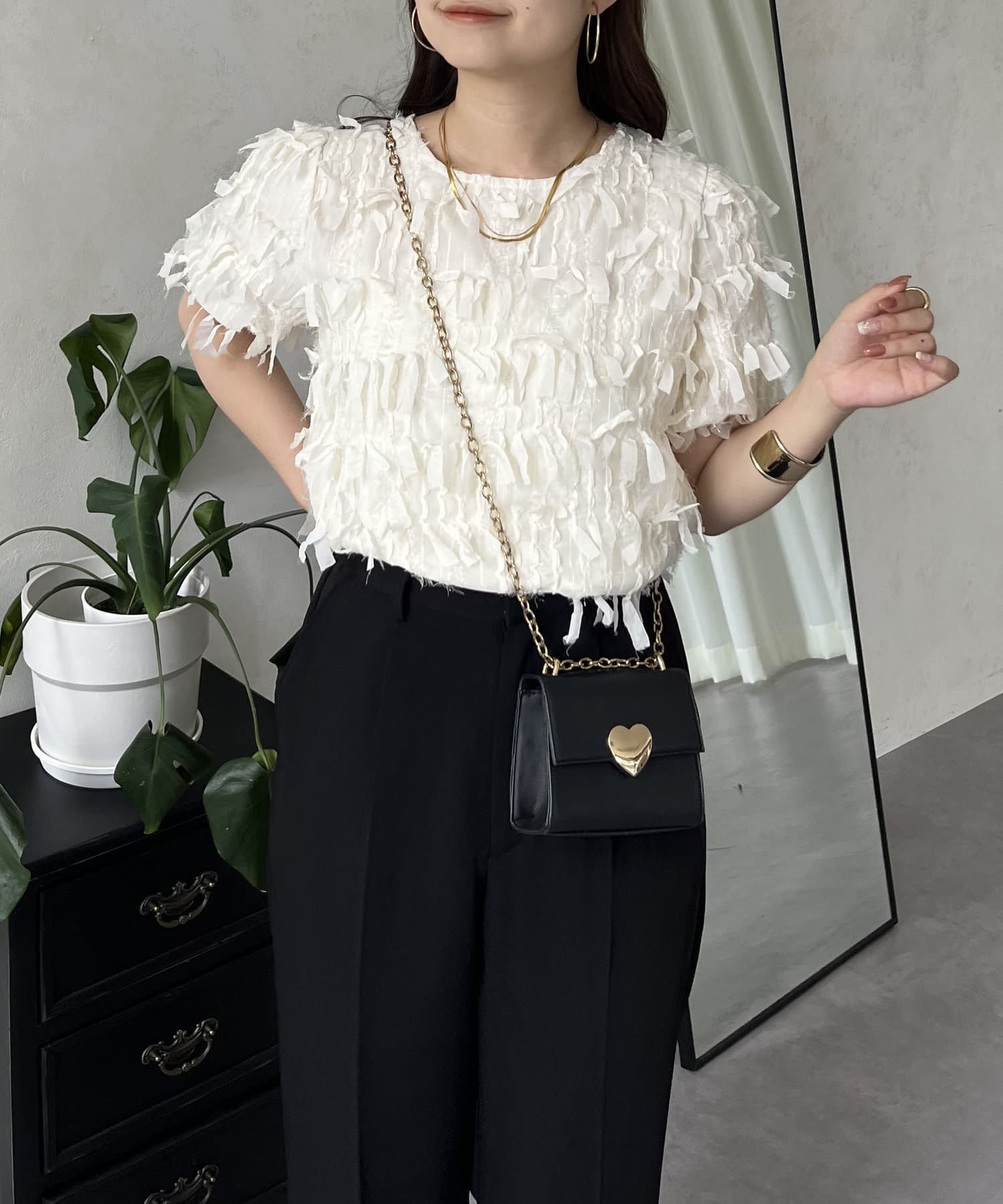 ●今年らしい立体的なフリンジデザインが大人の程よい甘さを引き出してくれるトップス