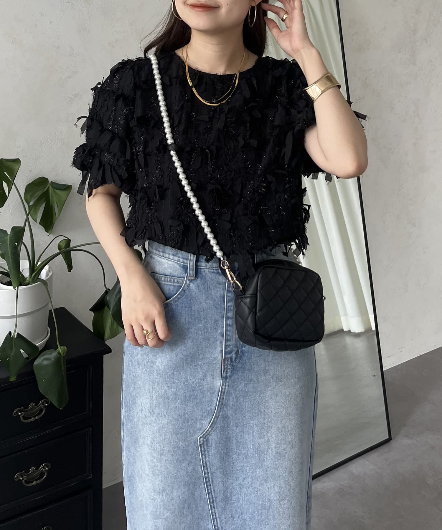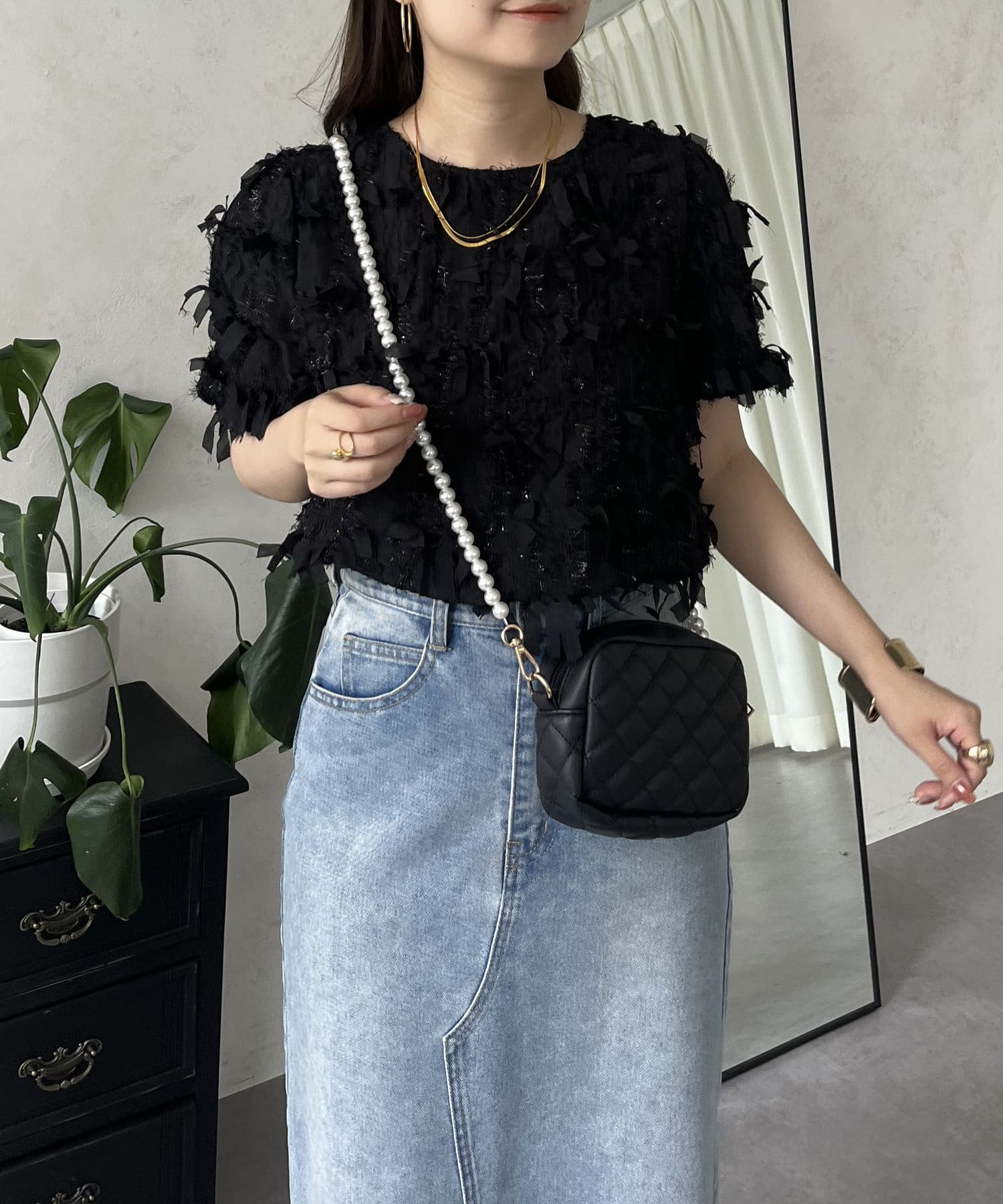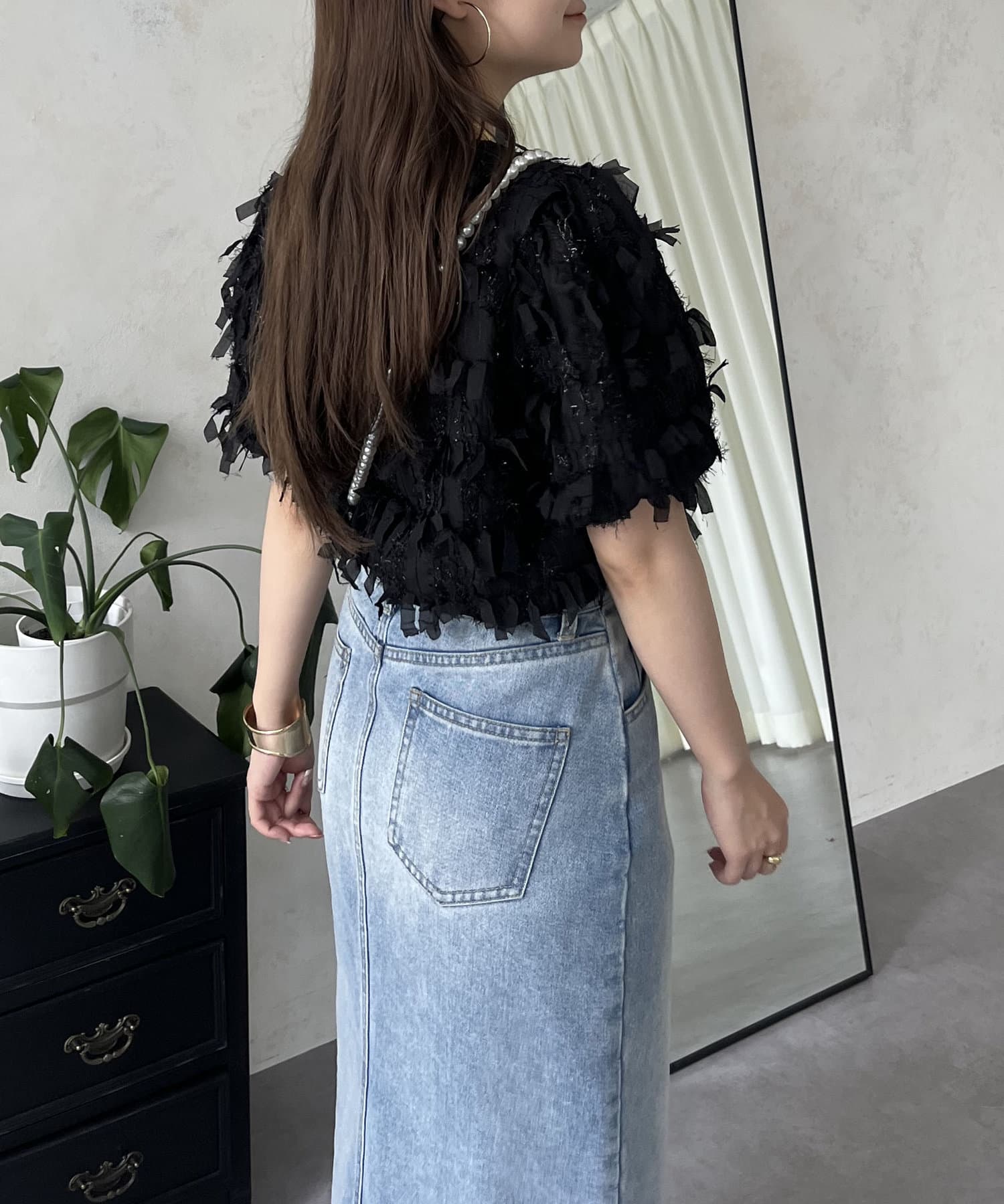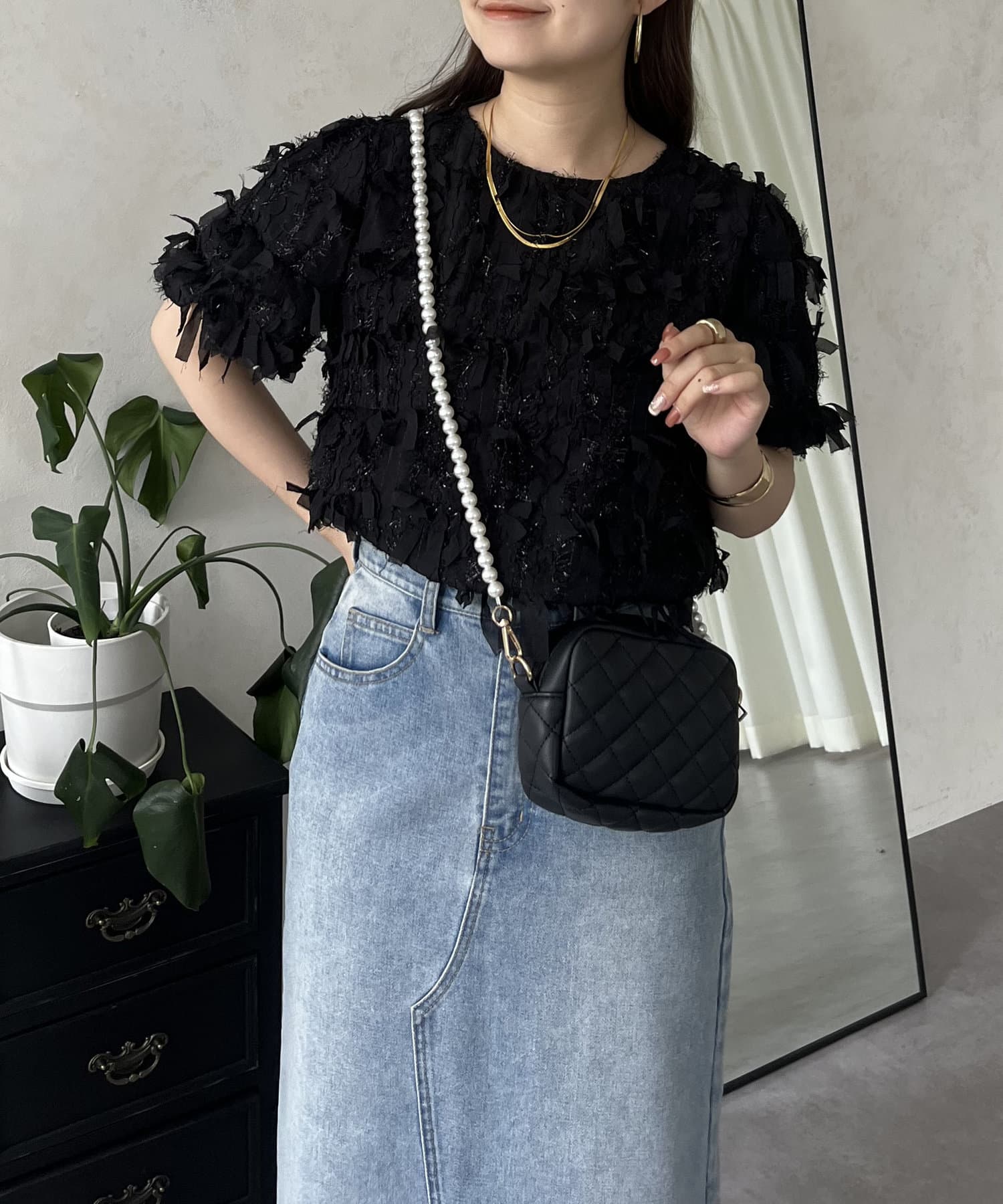 ●今年らしい立体的なフリンジデザインが大人の程よい甘さを引き出してくれるトップス