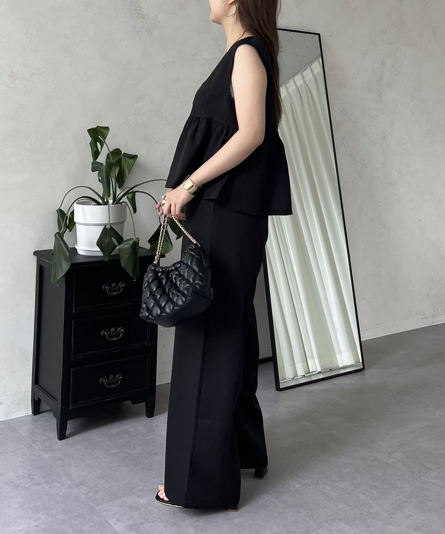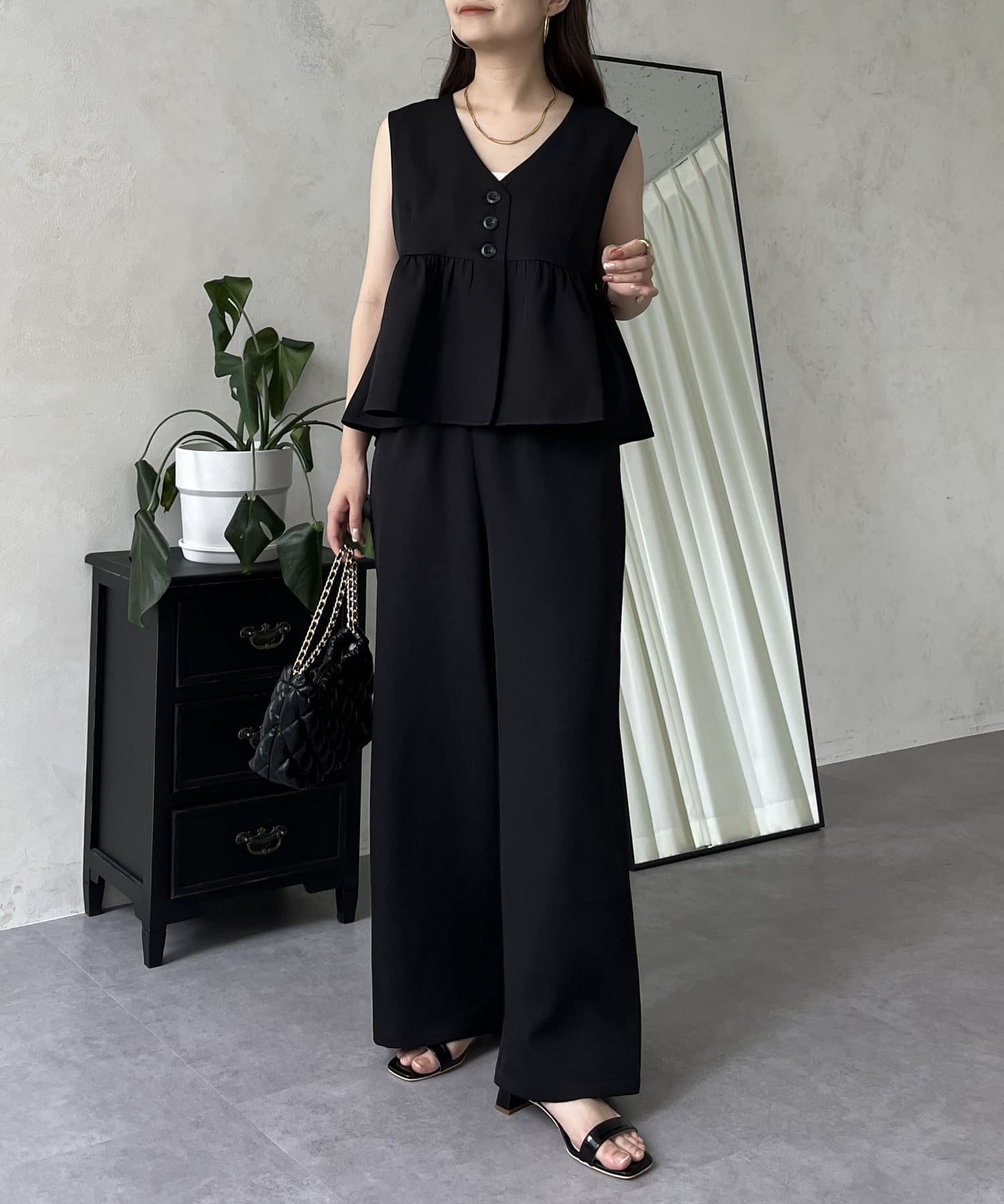 セットアップ/ジレ/ワイドパンツ/ペプラム/大人カジュアル/きれいめ