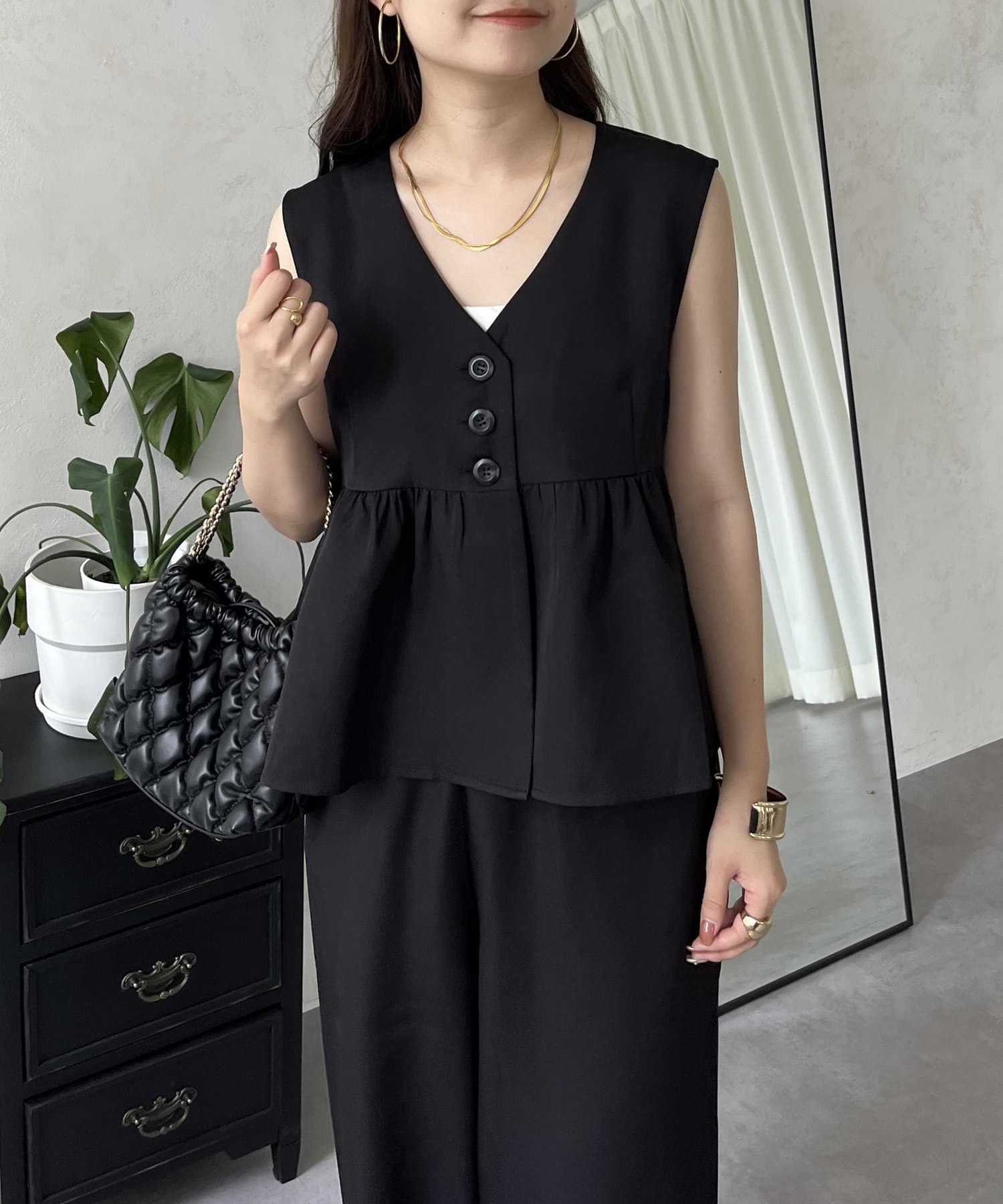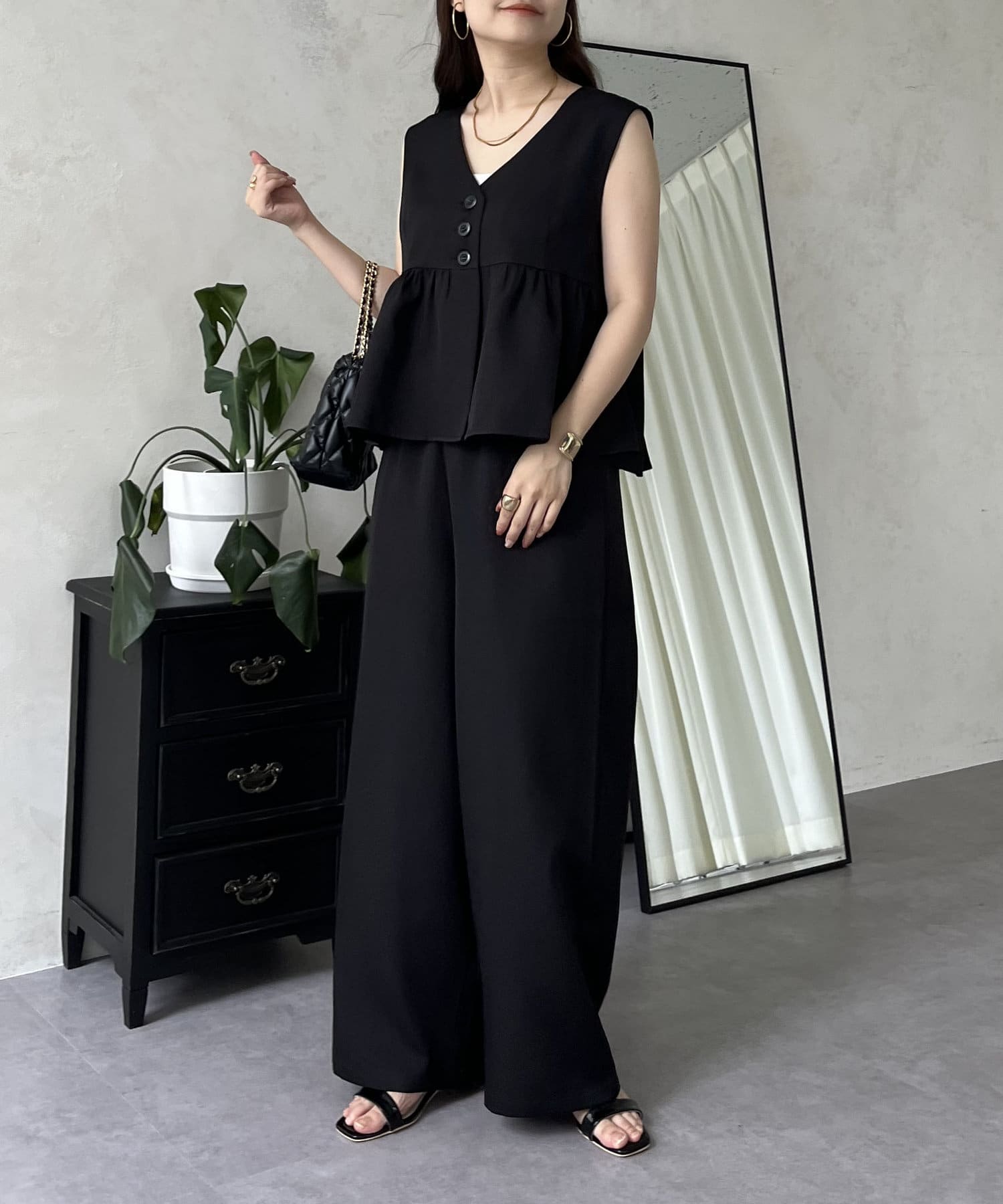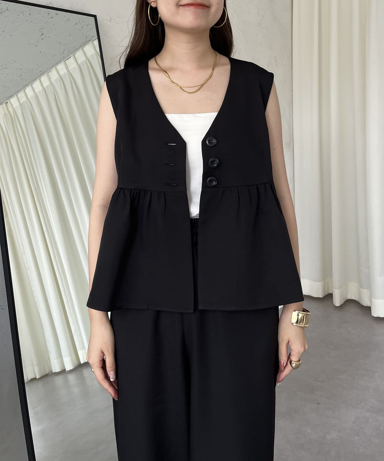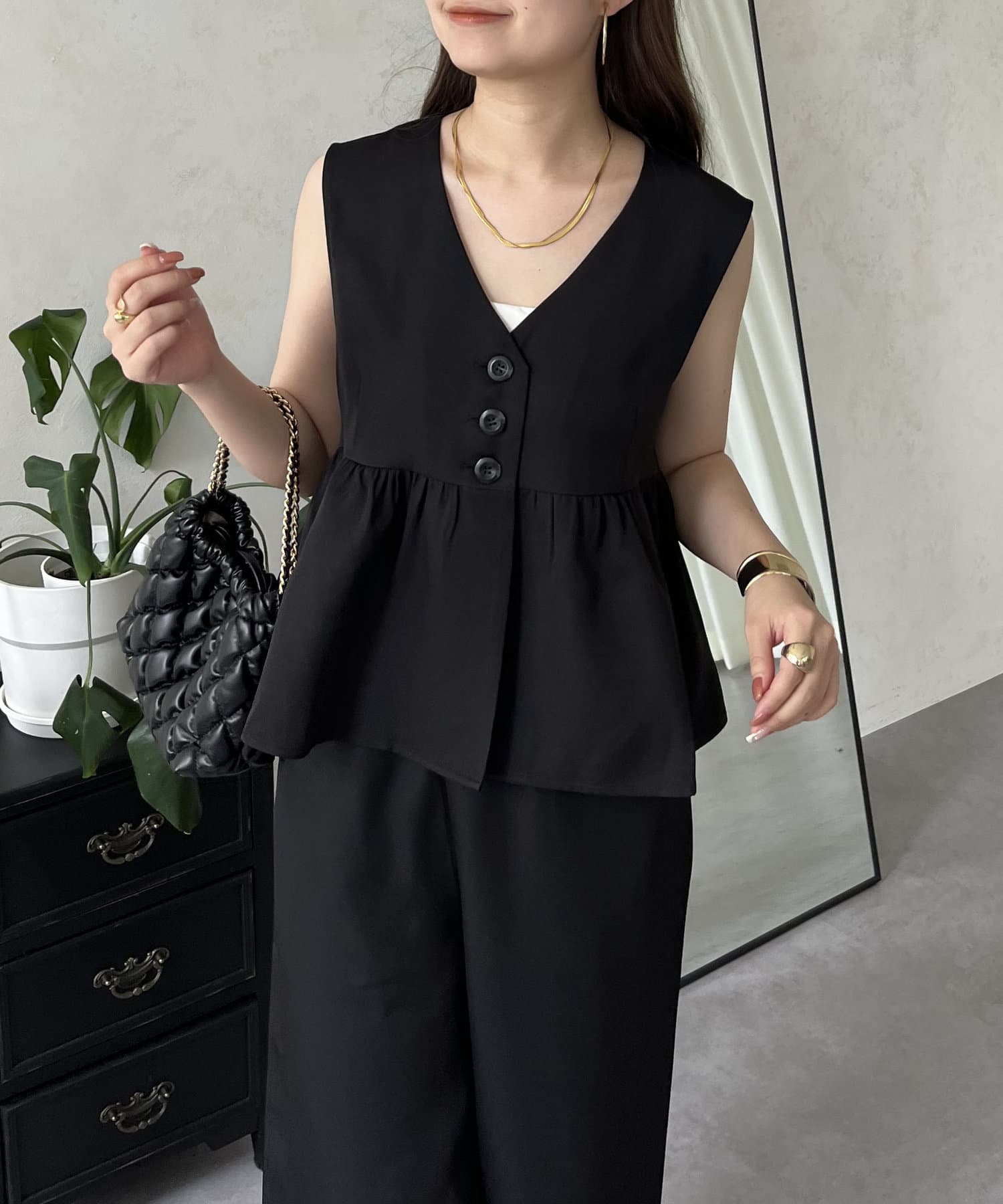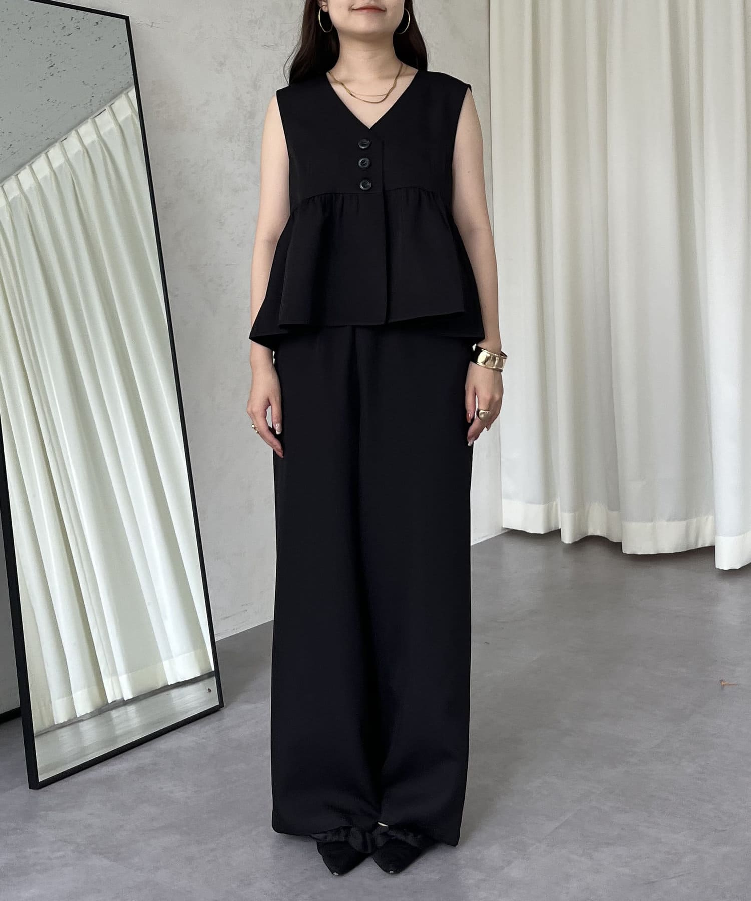 【セットアップ】ショートペプラムジレ×ワイドパンツ