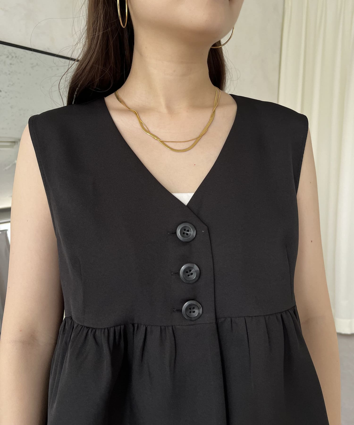 ショートペプラムジレ:着丈53.8 バスト95.8 肩幅38.8
