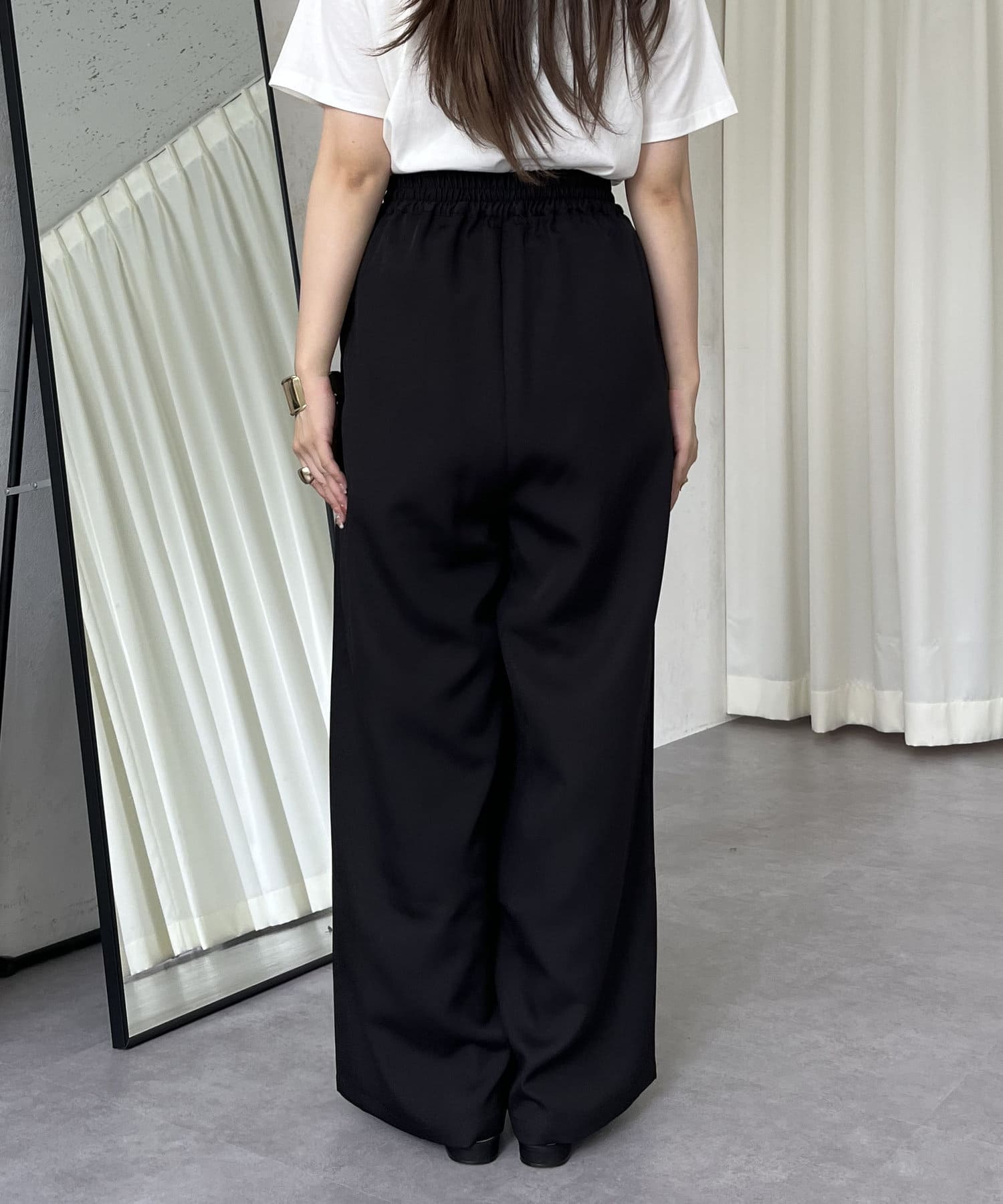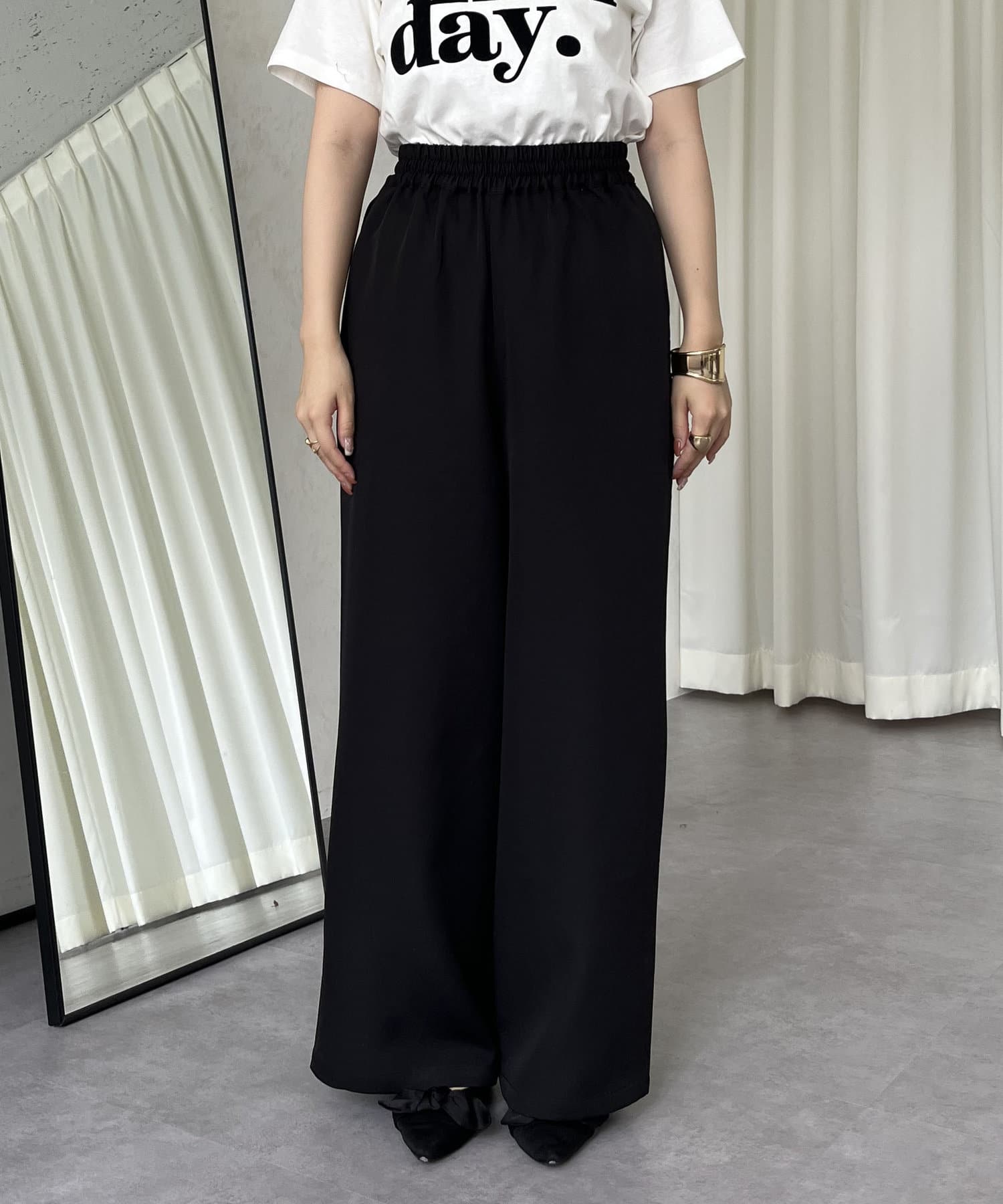 ●ワイドなパンツで身体のラインを拾わず体型カバーンにも◎