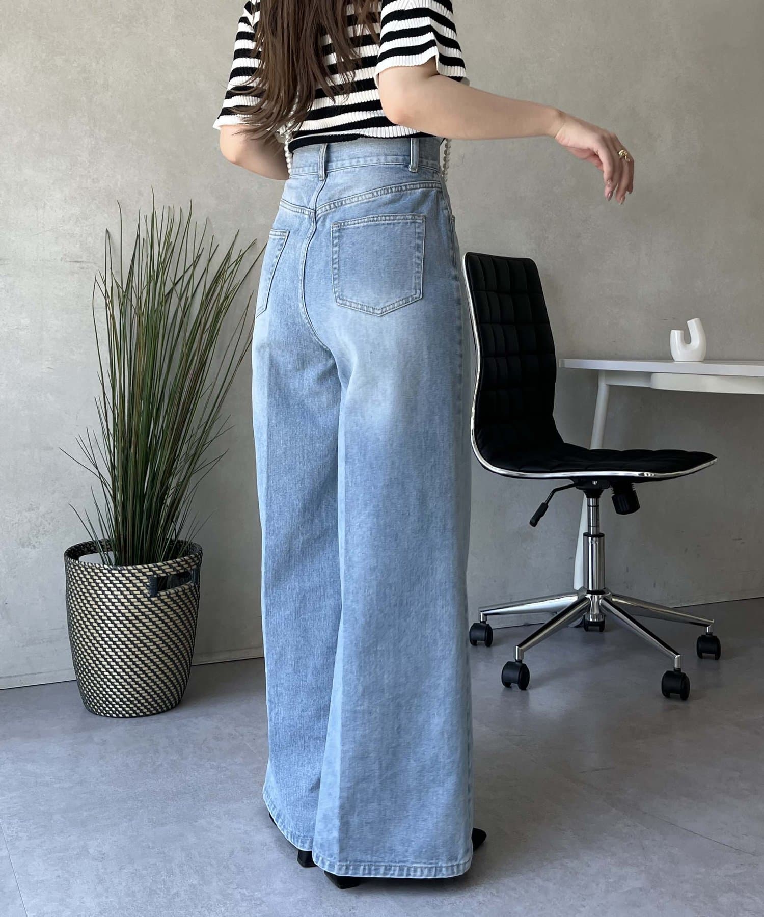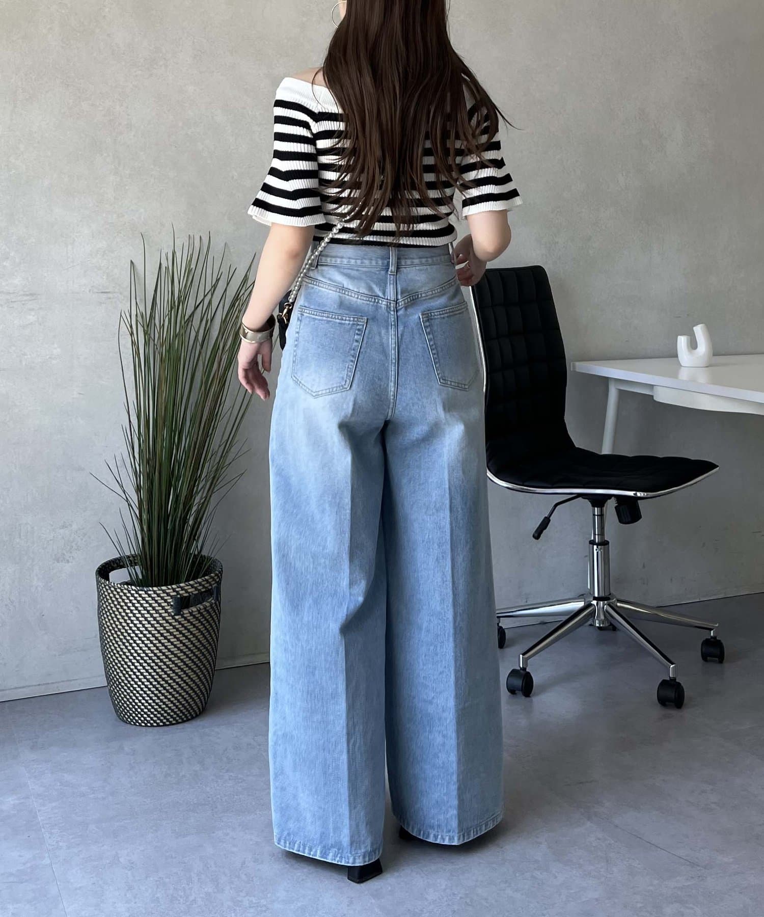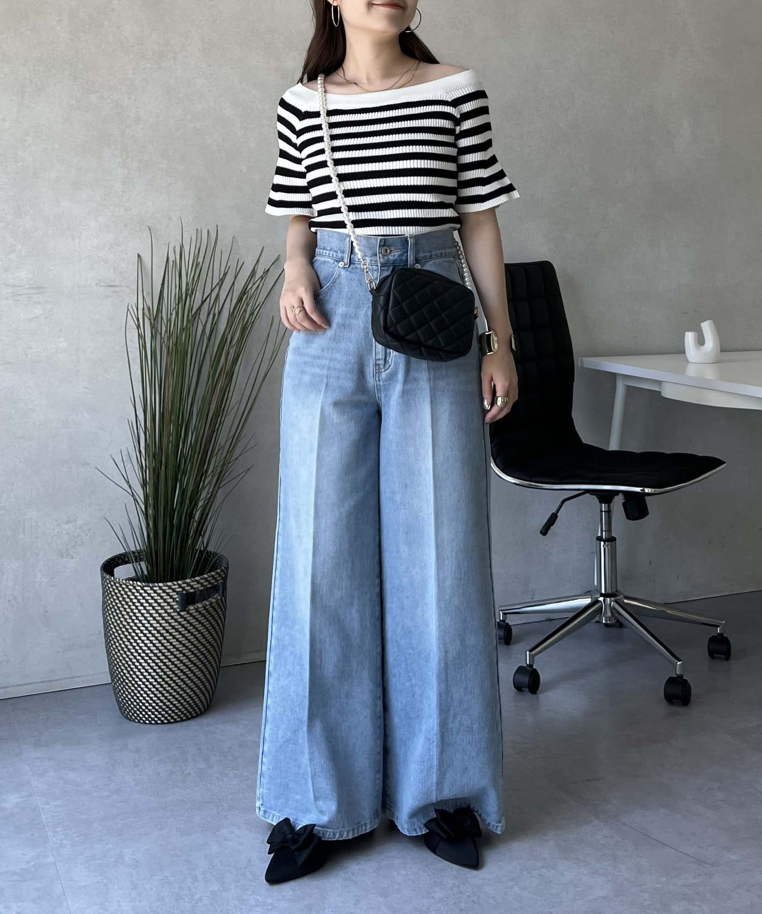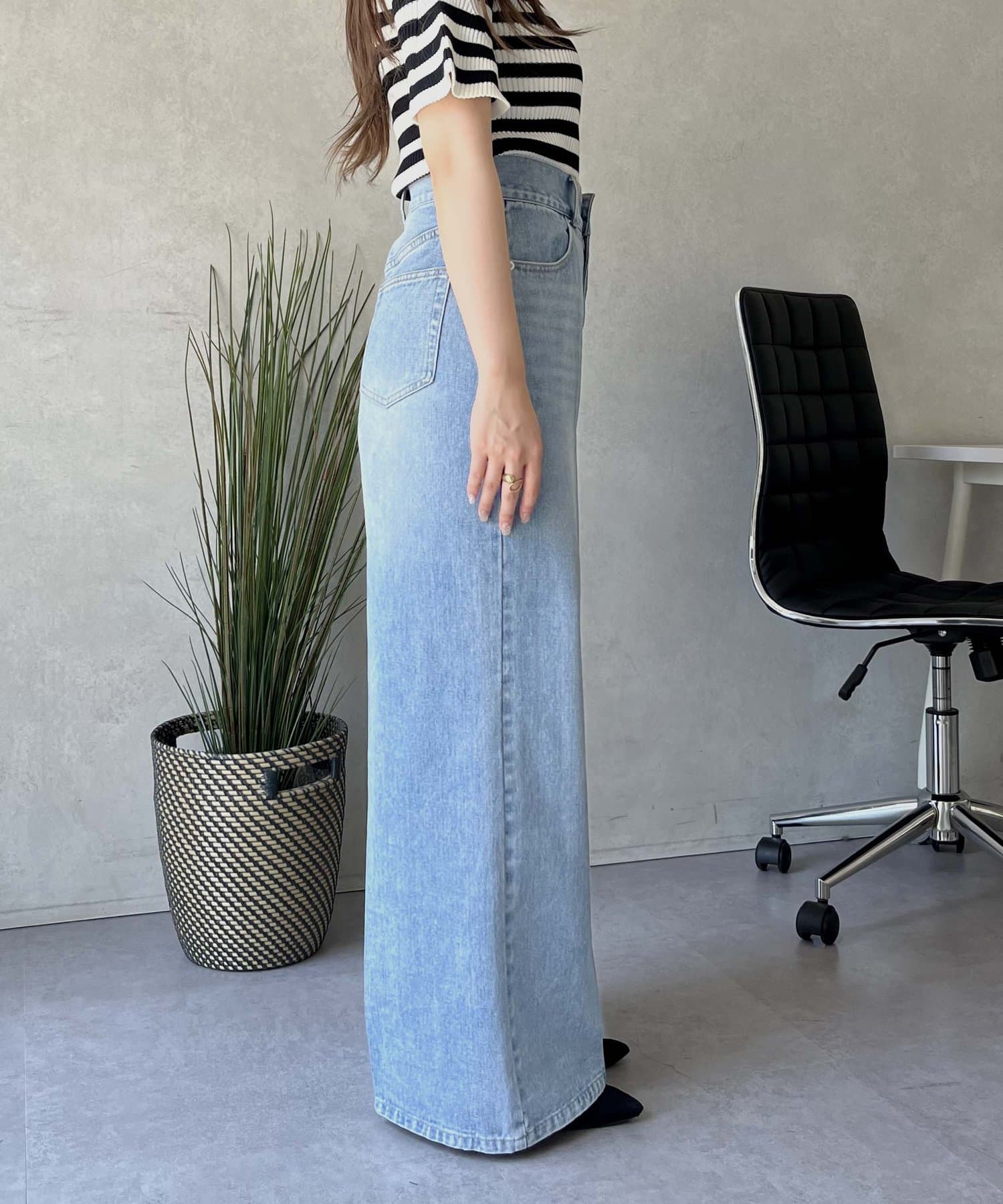 きれいめな雰囲気でワイドシルエットを楽しめるデニムパンツ