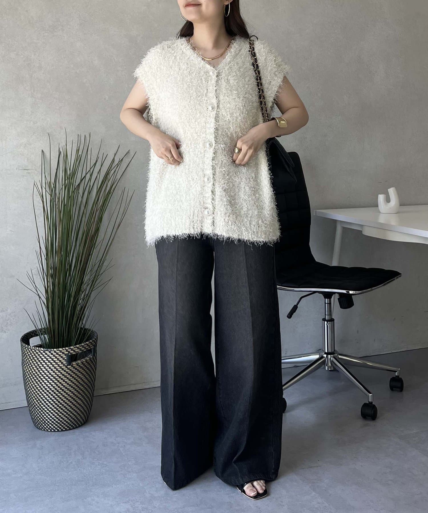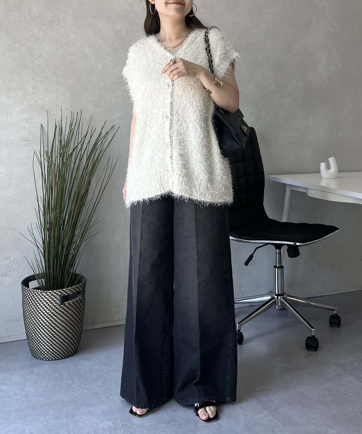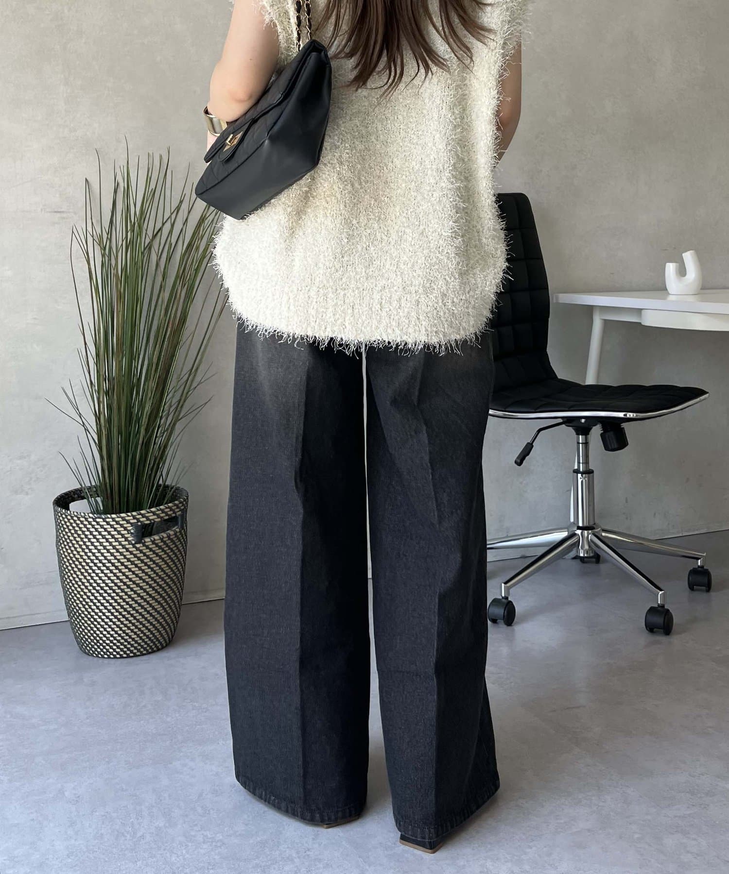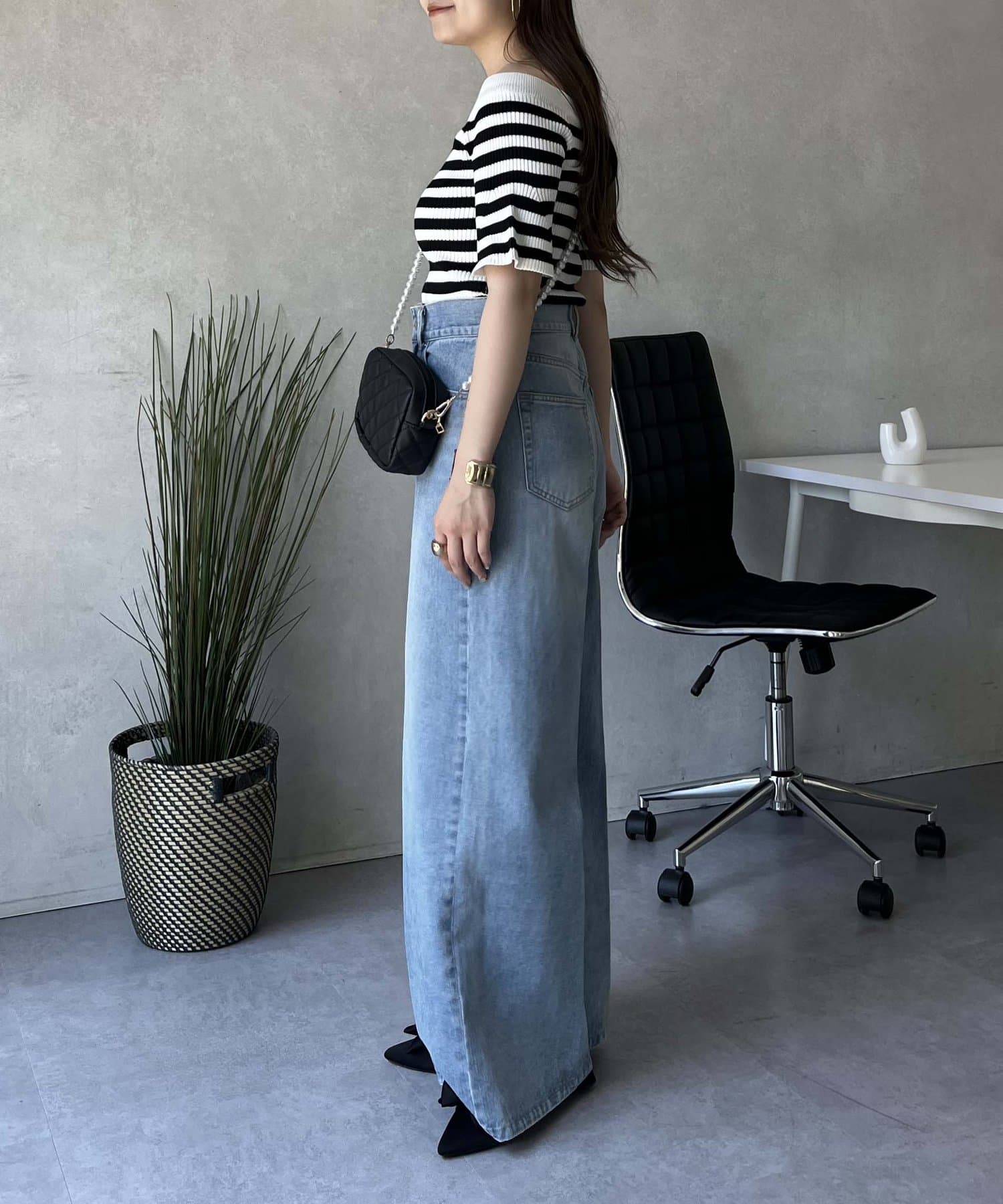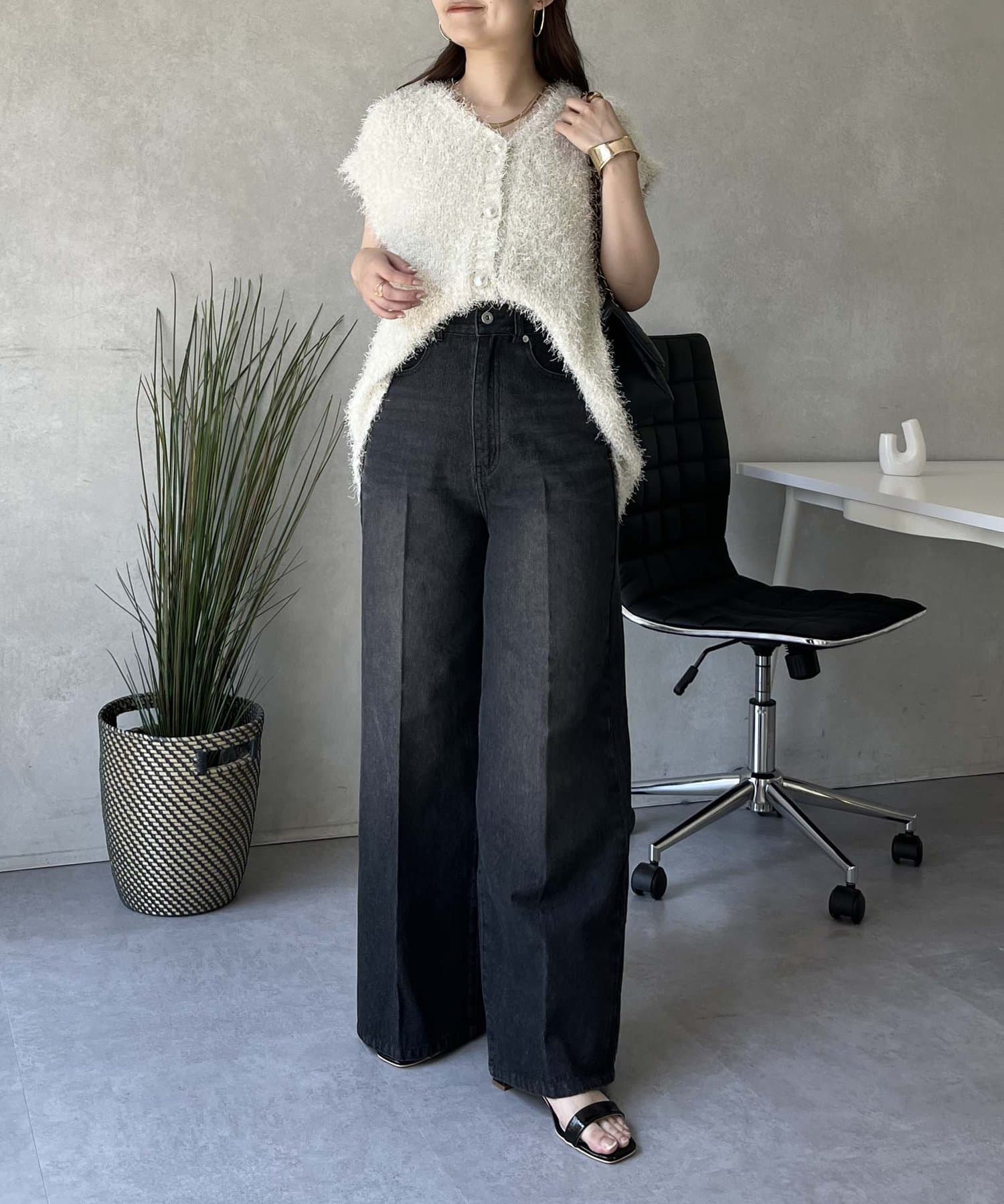 きれいめな雰囲気でワイドシルエットを楽しめるデニムパンツ