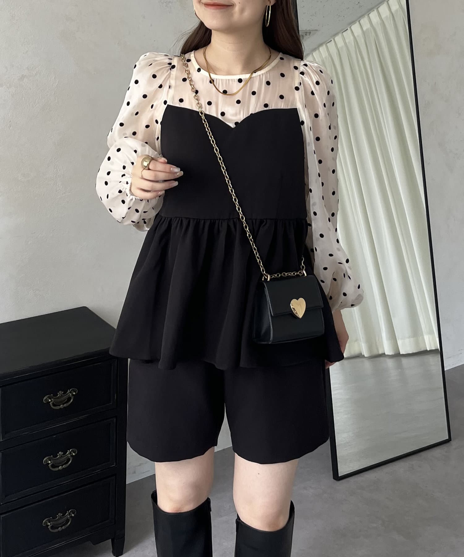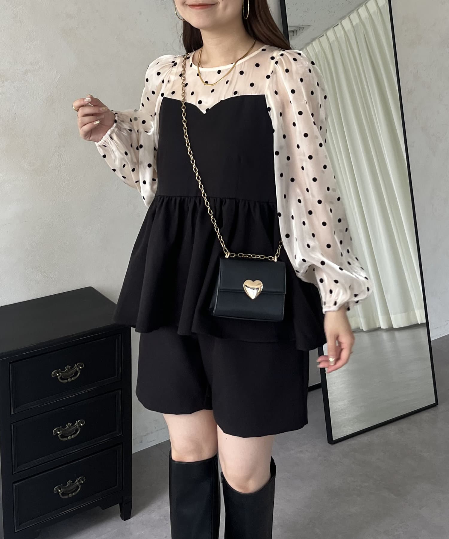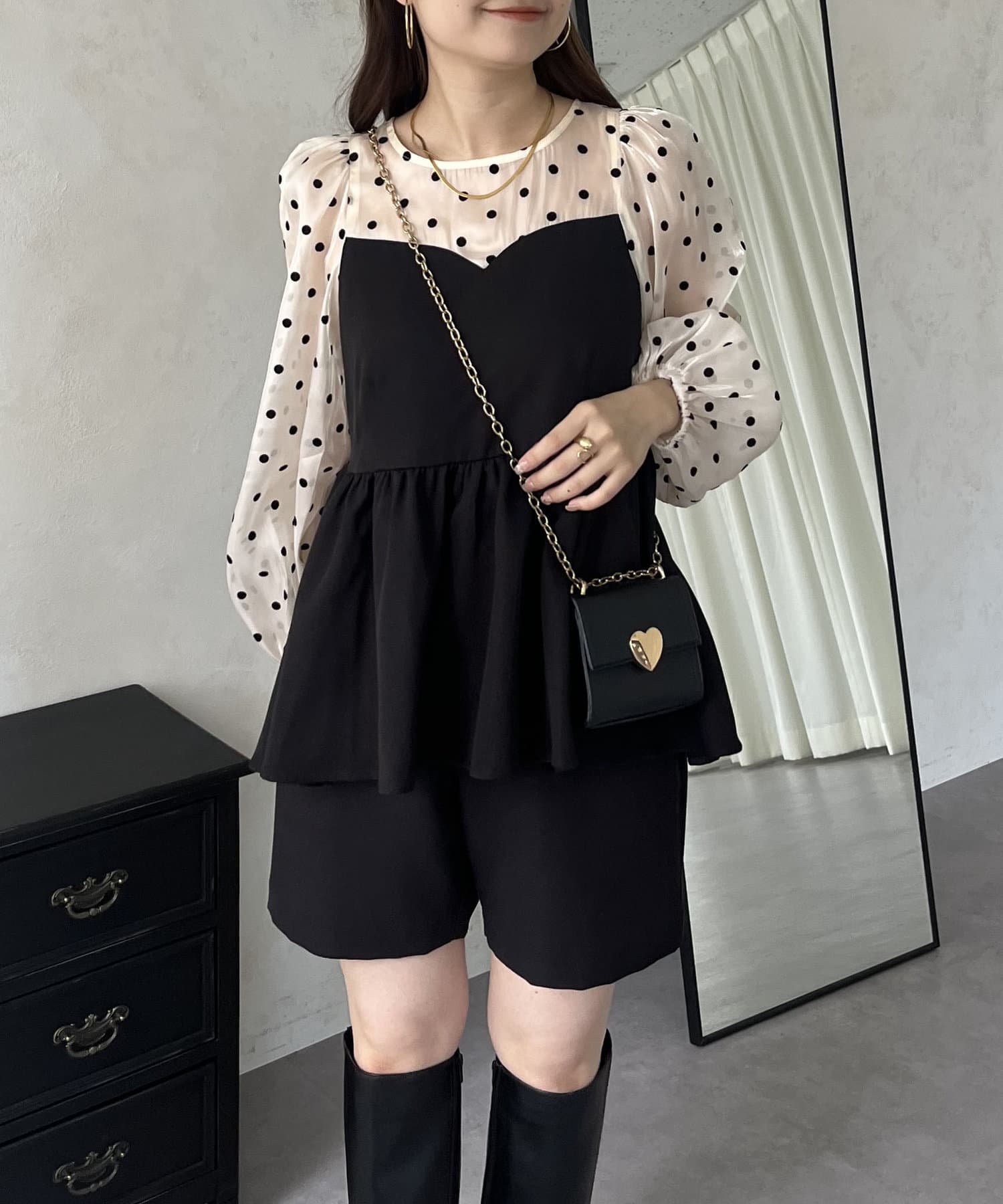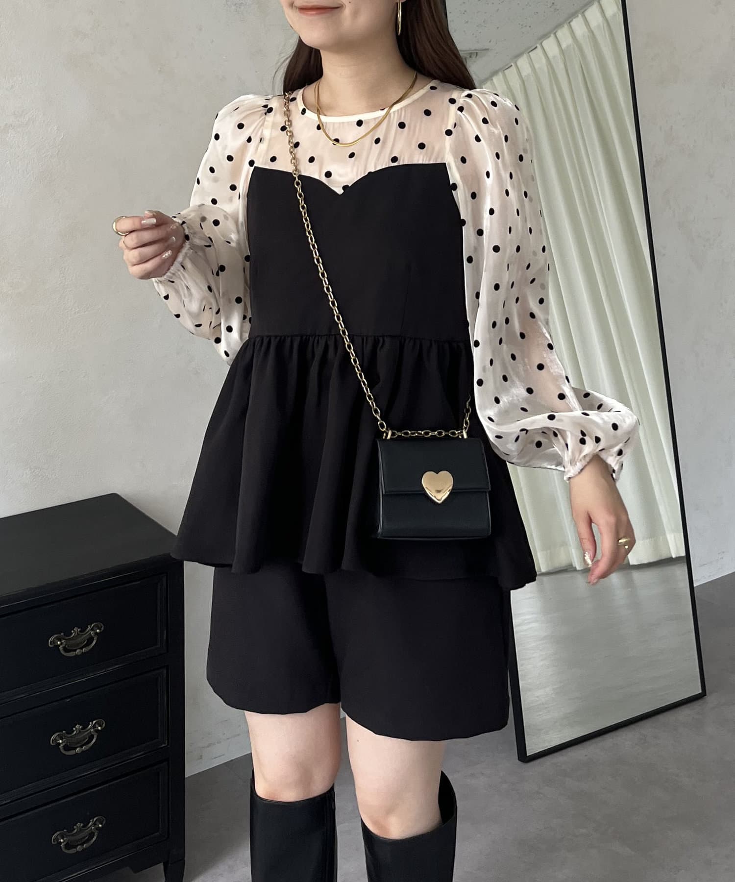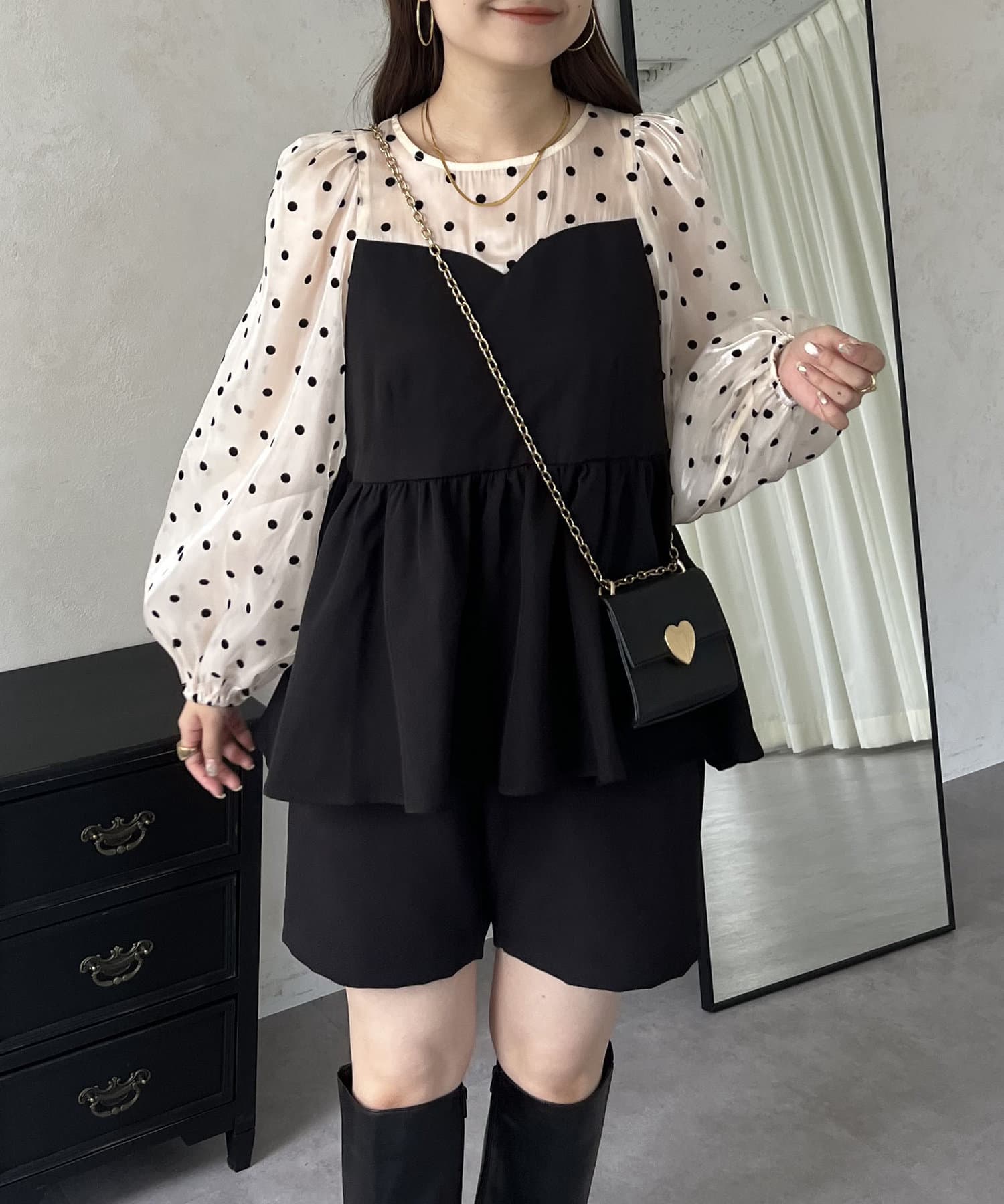 シアードットハートネックビスチェドッキングペプラムブラウス