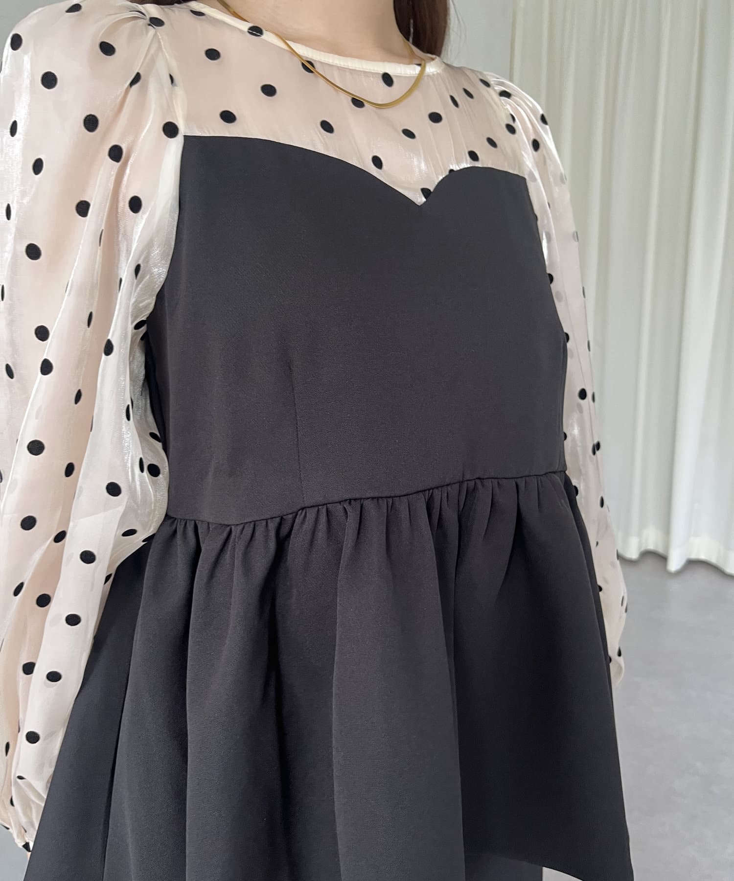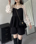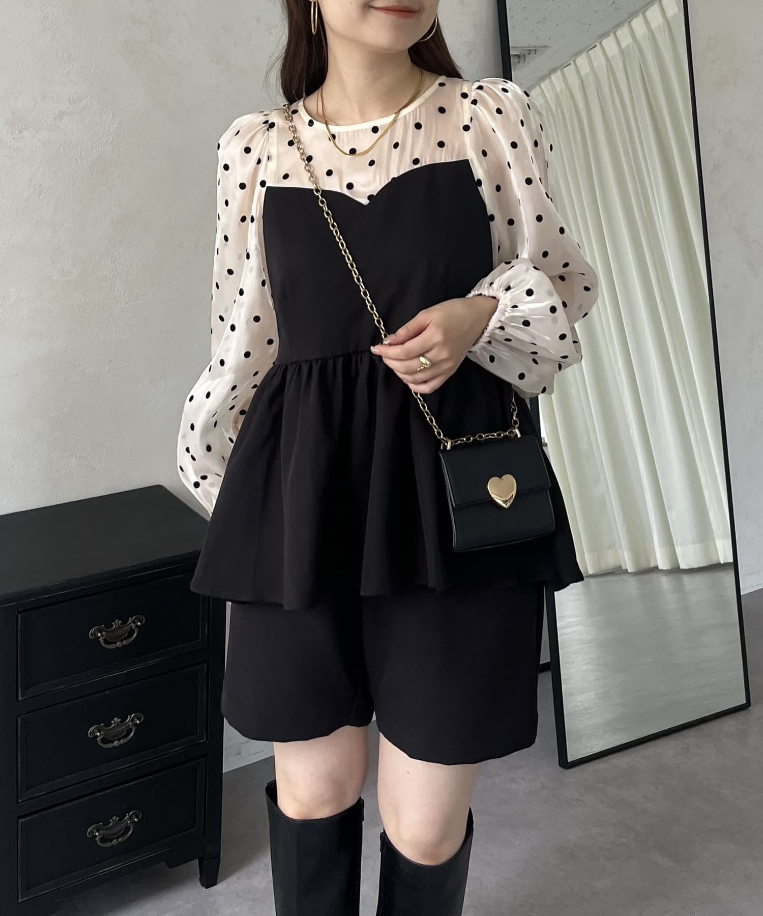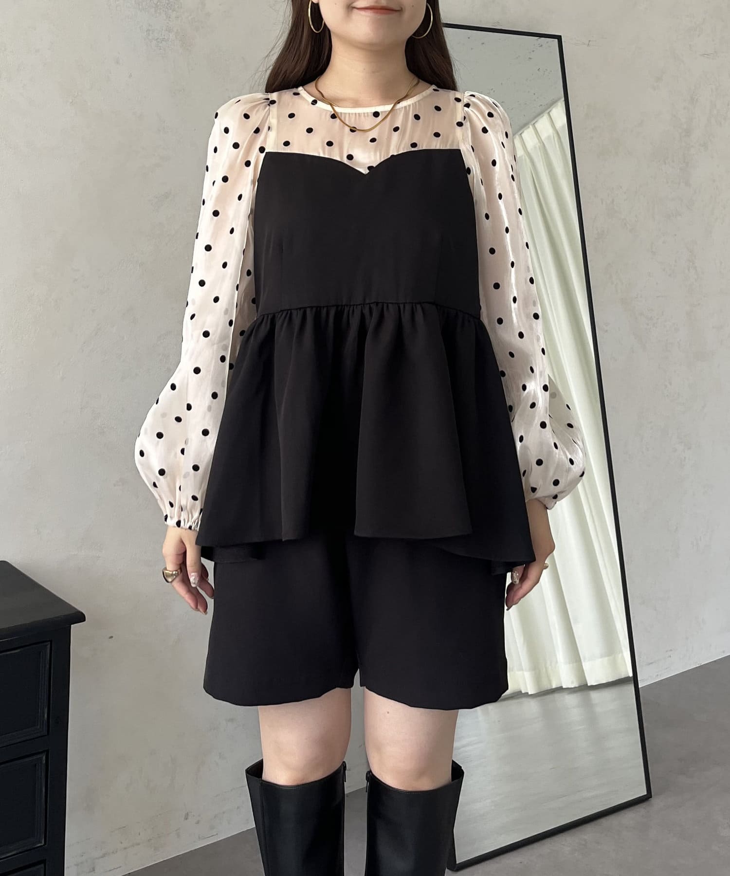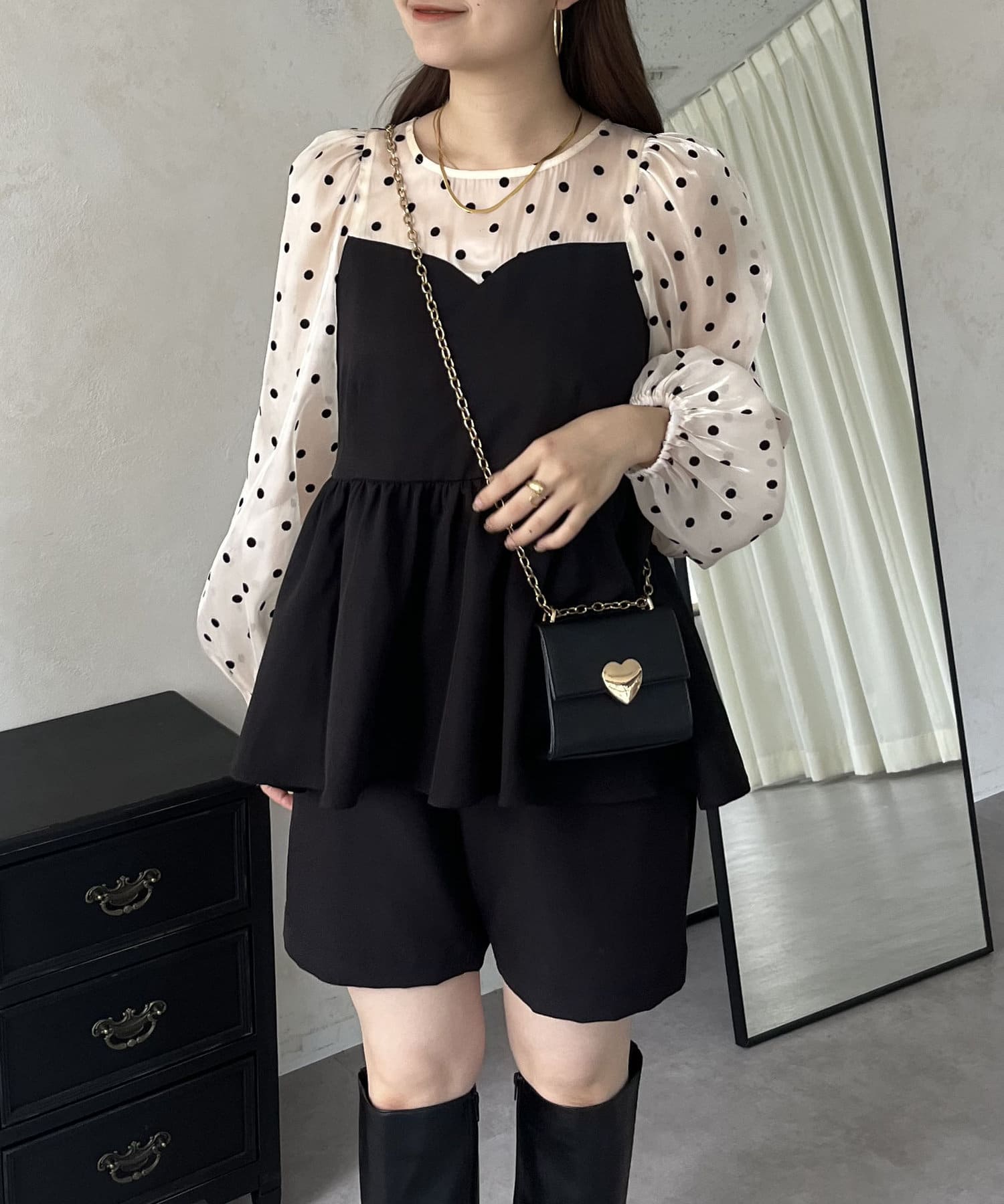 シアードットハートネックビスチェドッキングペプラムブラウス