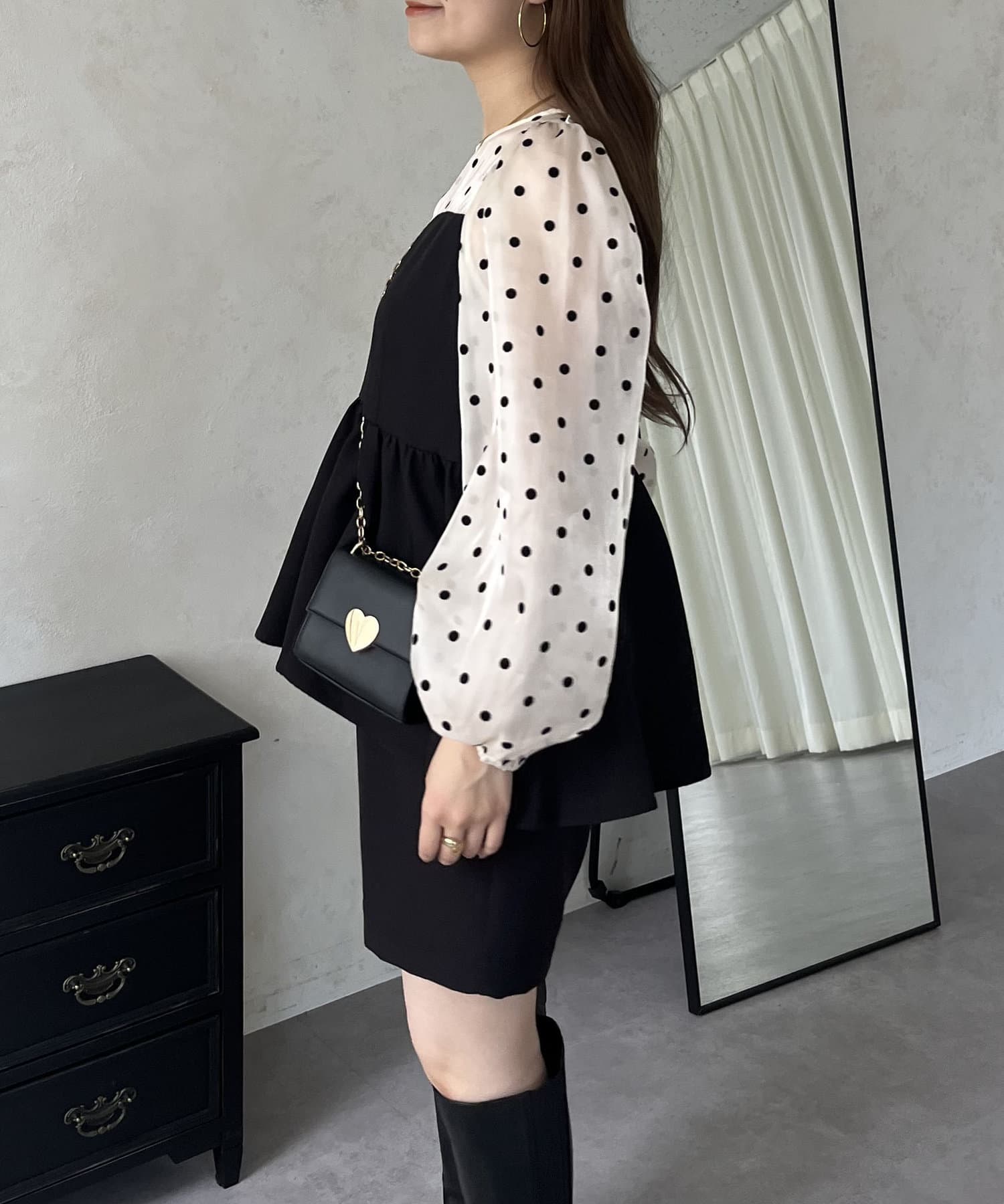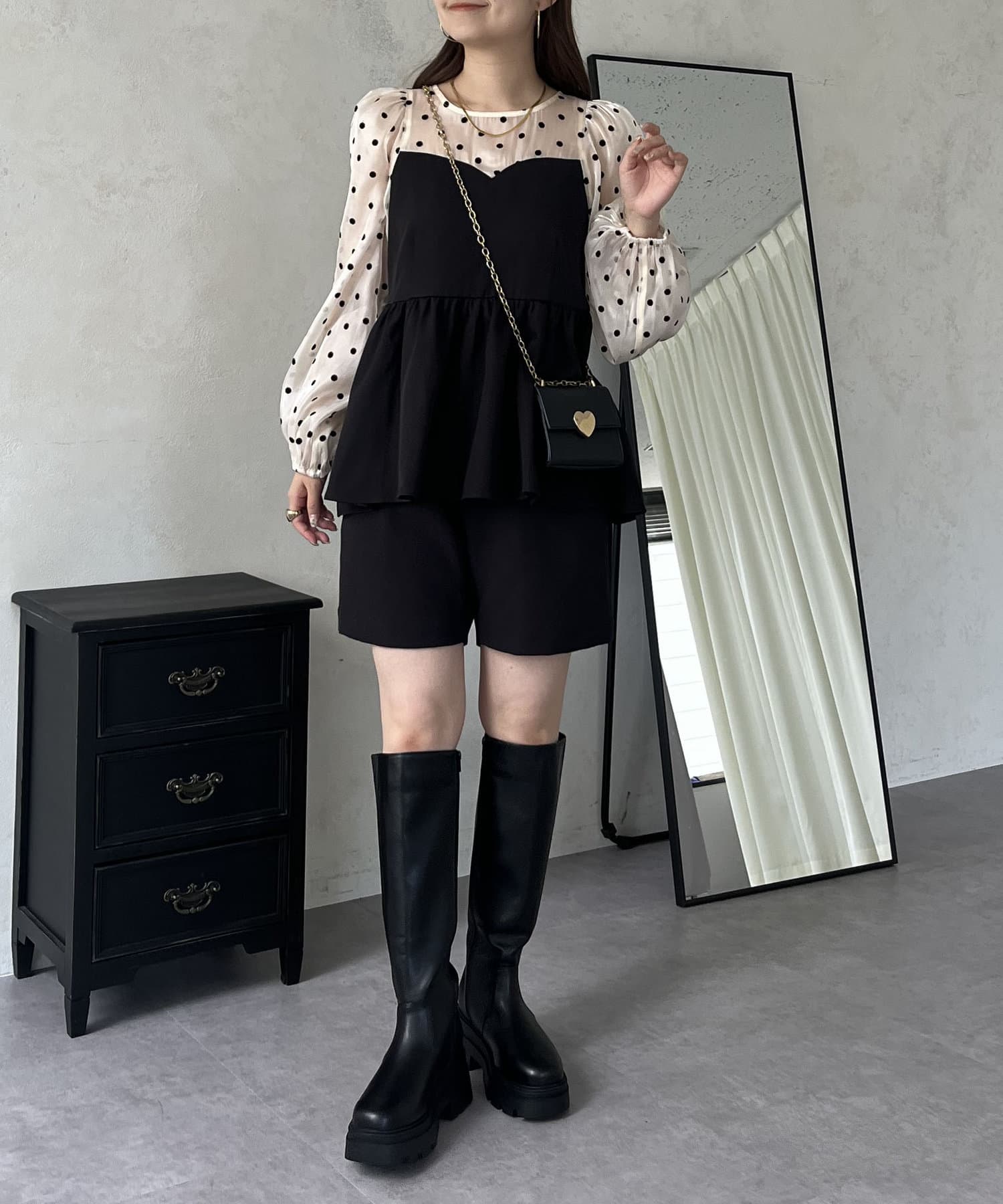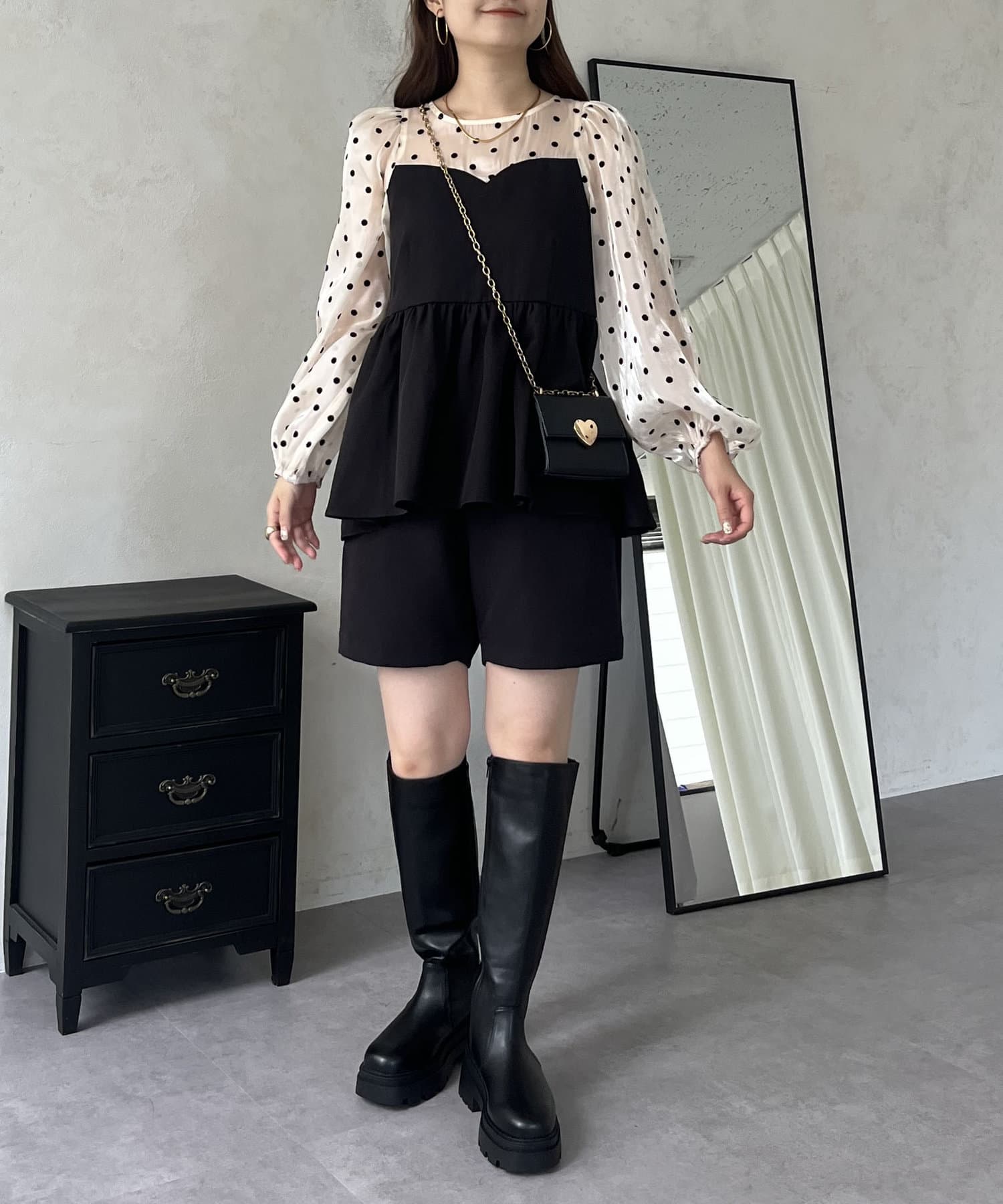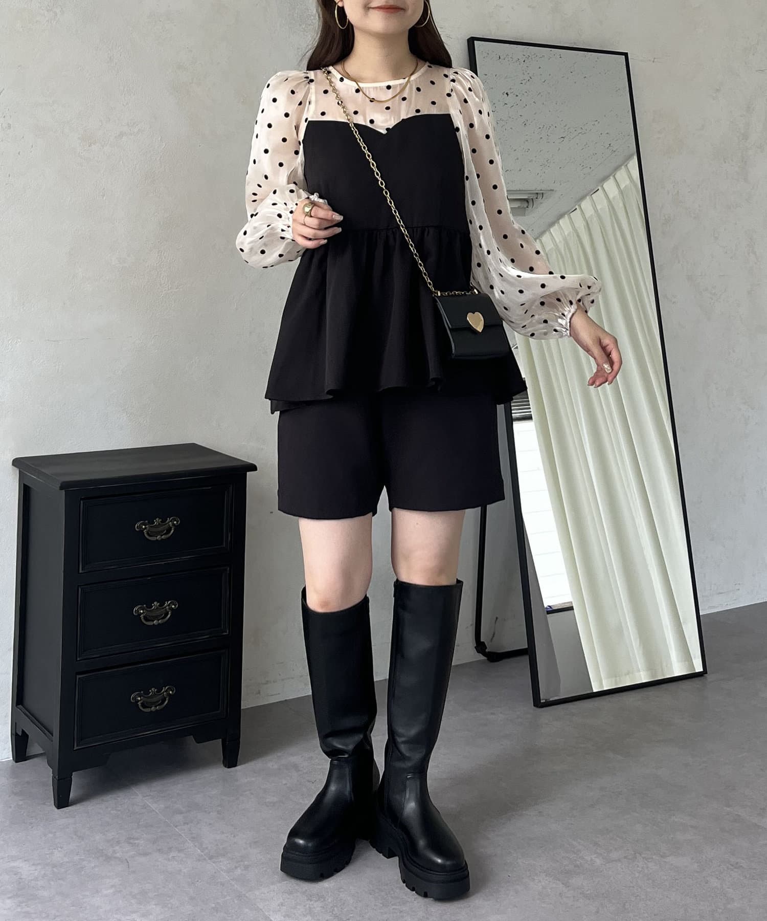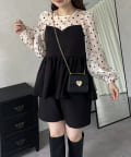 シアードットハートネックビスチェドッキングペプラムブラウス