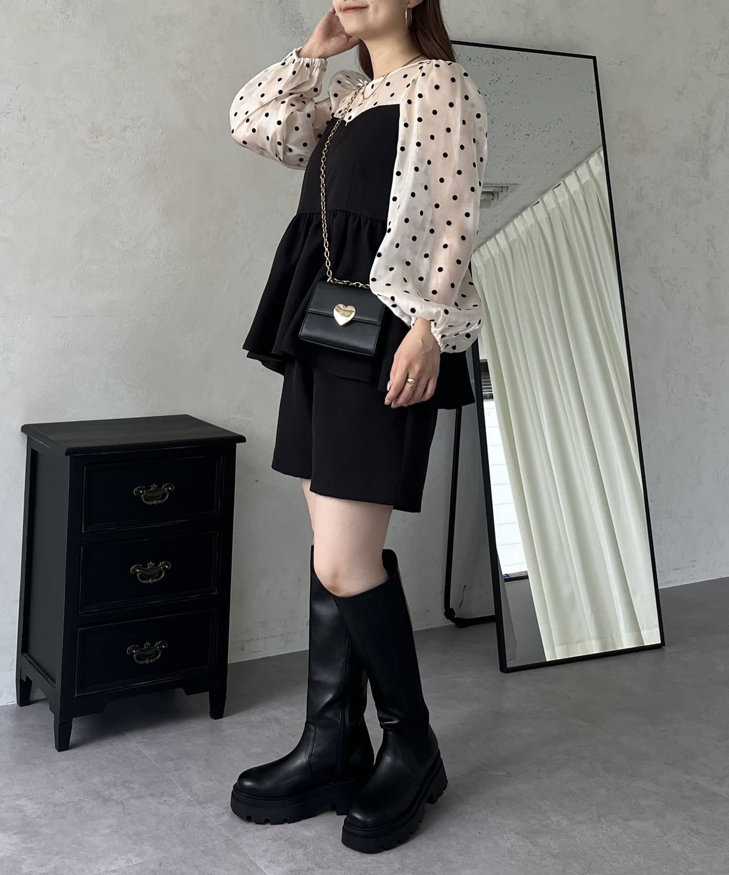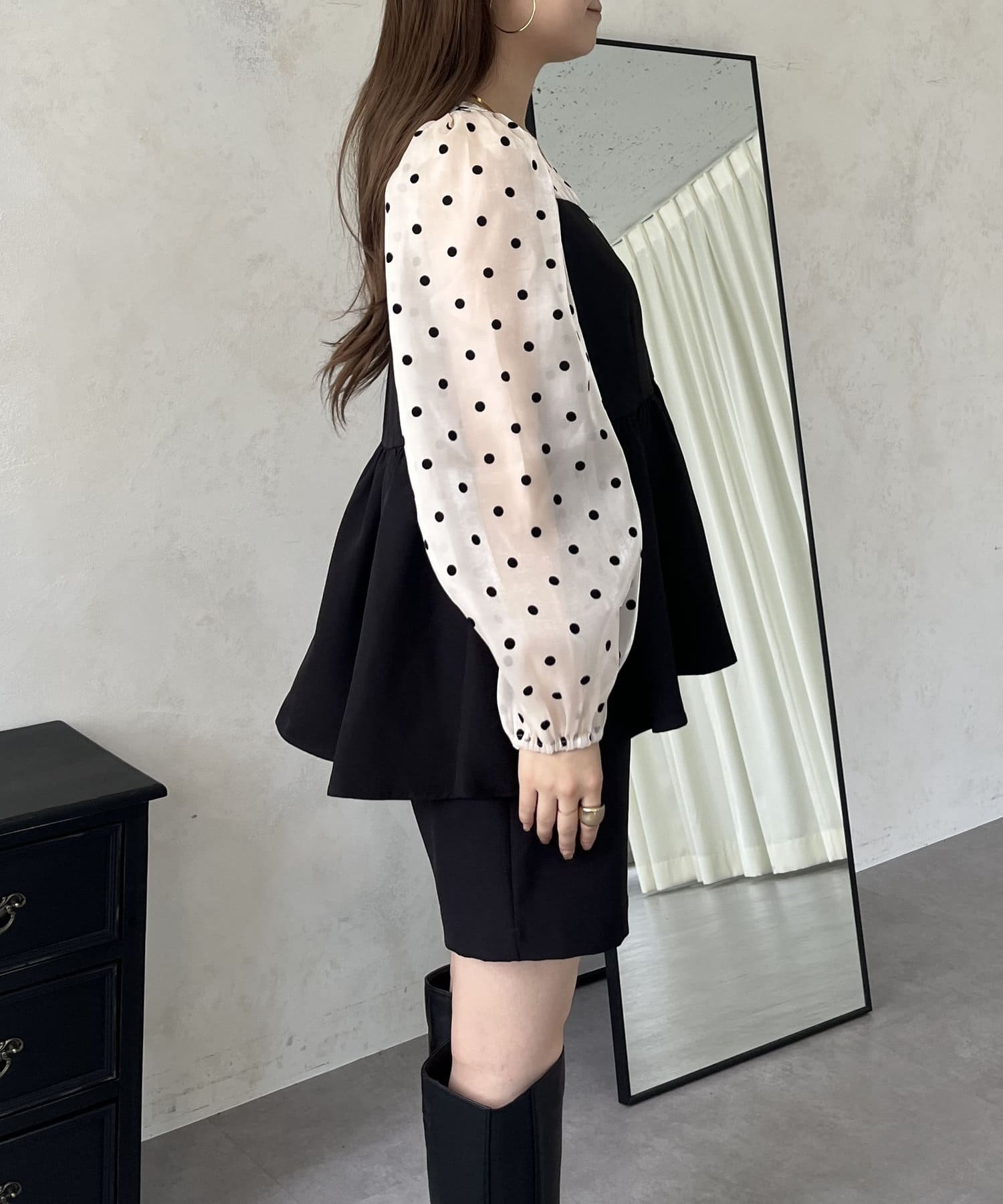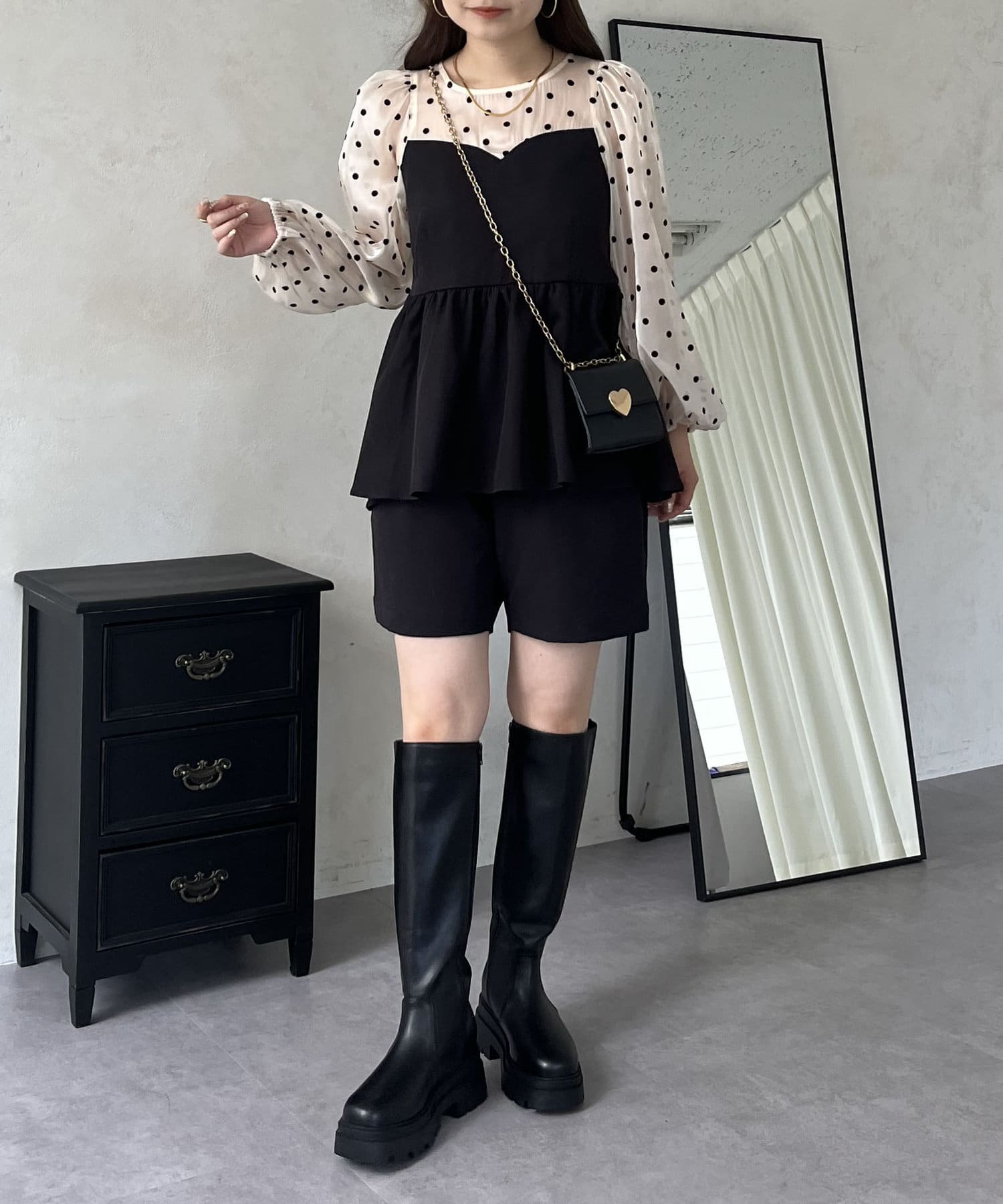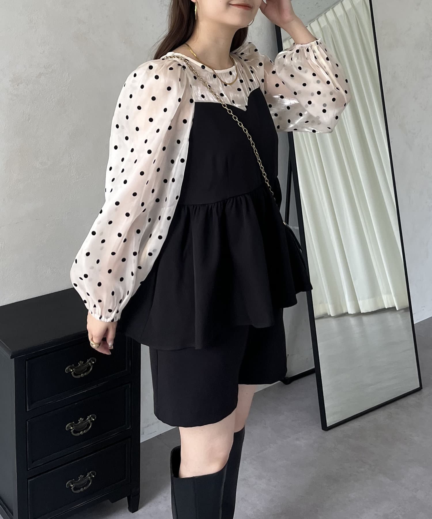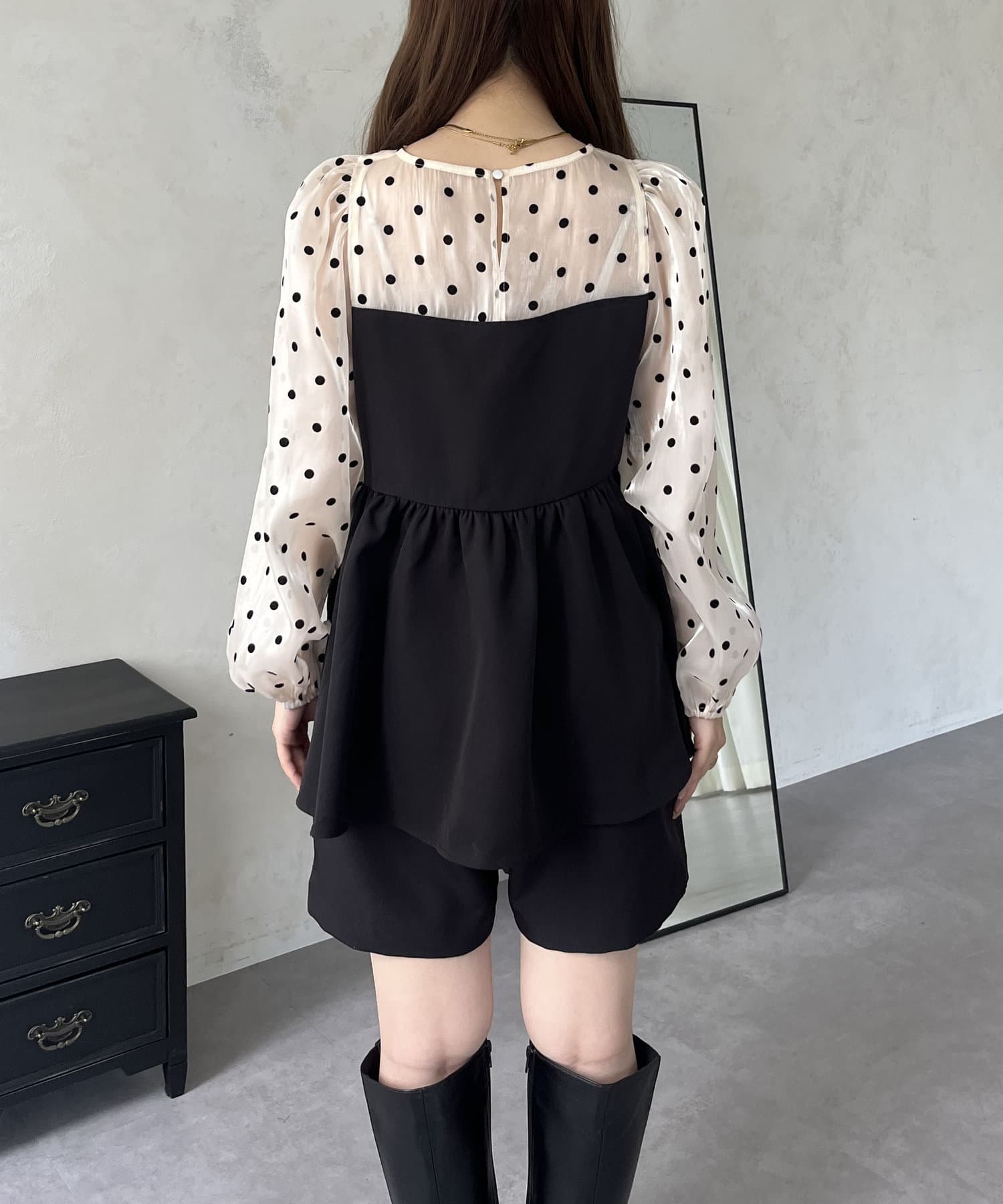 シアードットハートネックビスチェドッキングペプラムブラウス