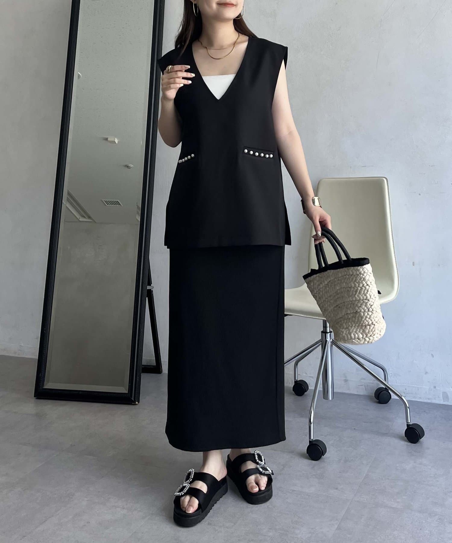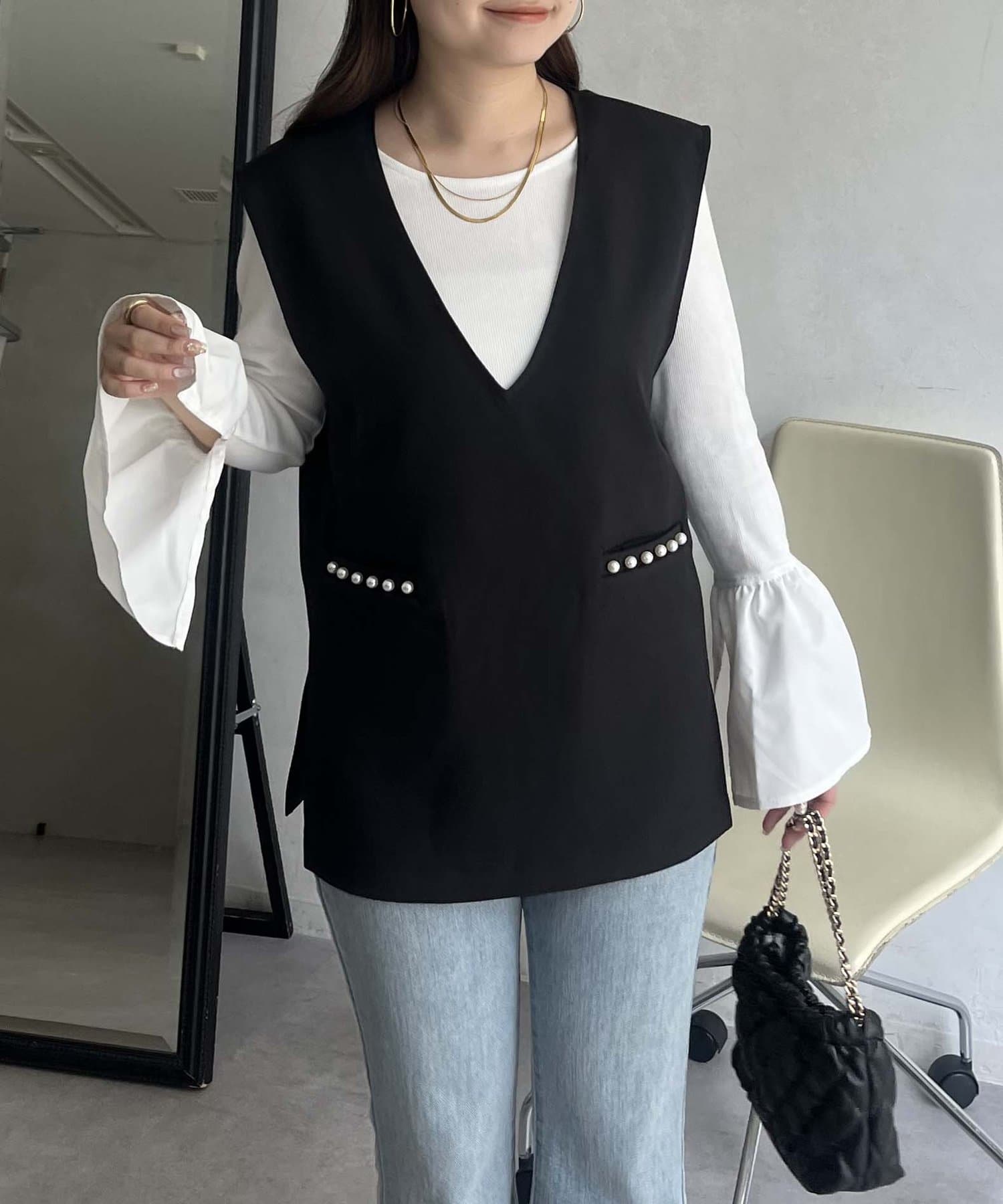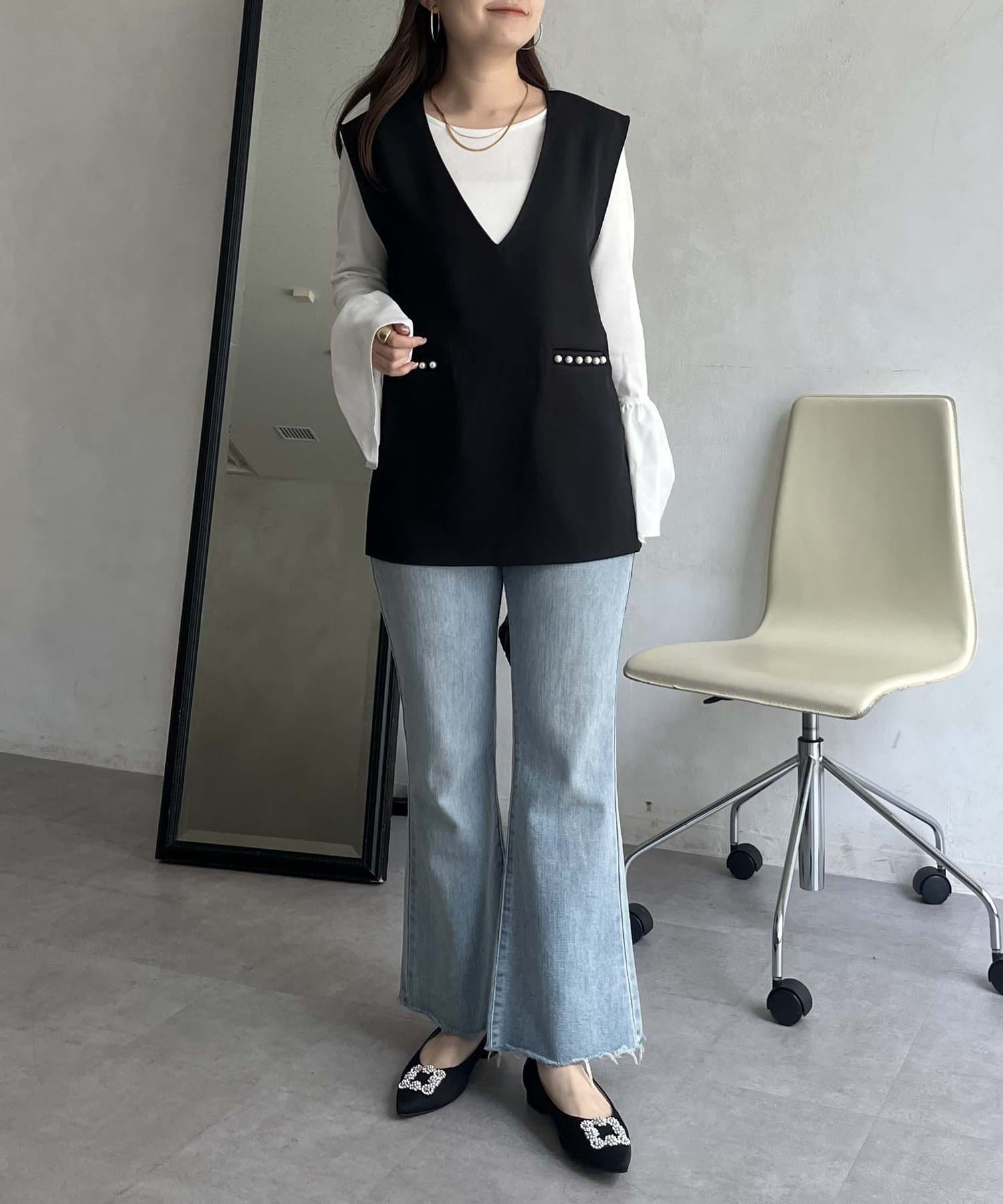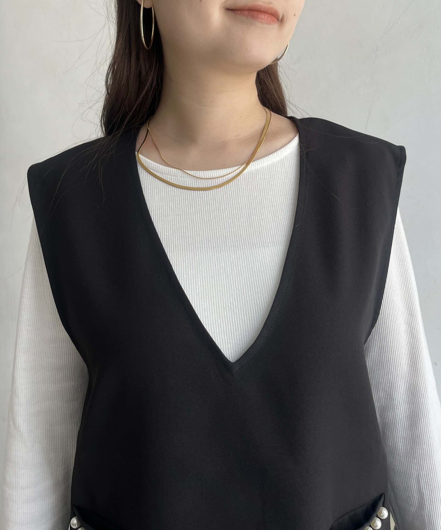 ●首元は深めのVネックで顔回りをすっきりと見せてくれます