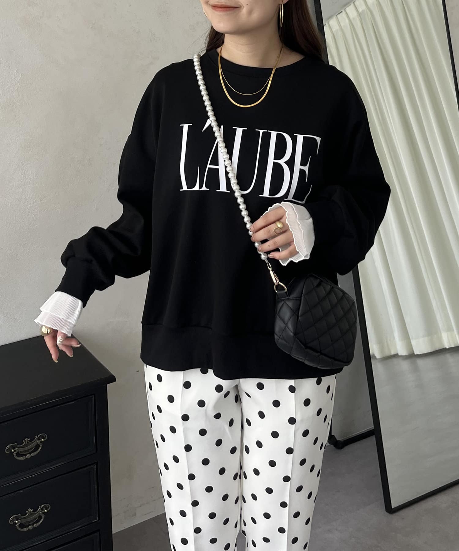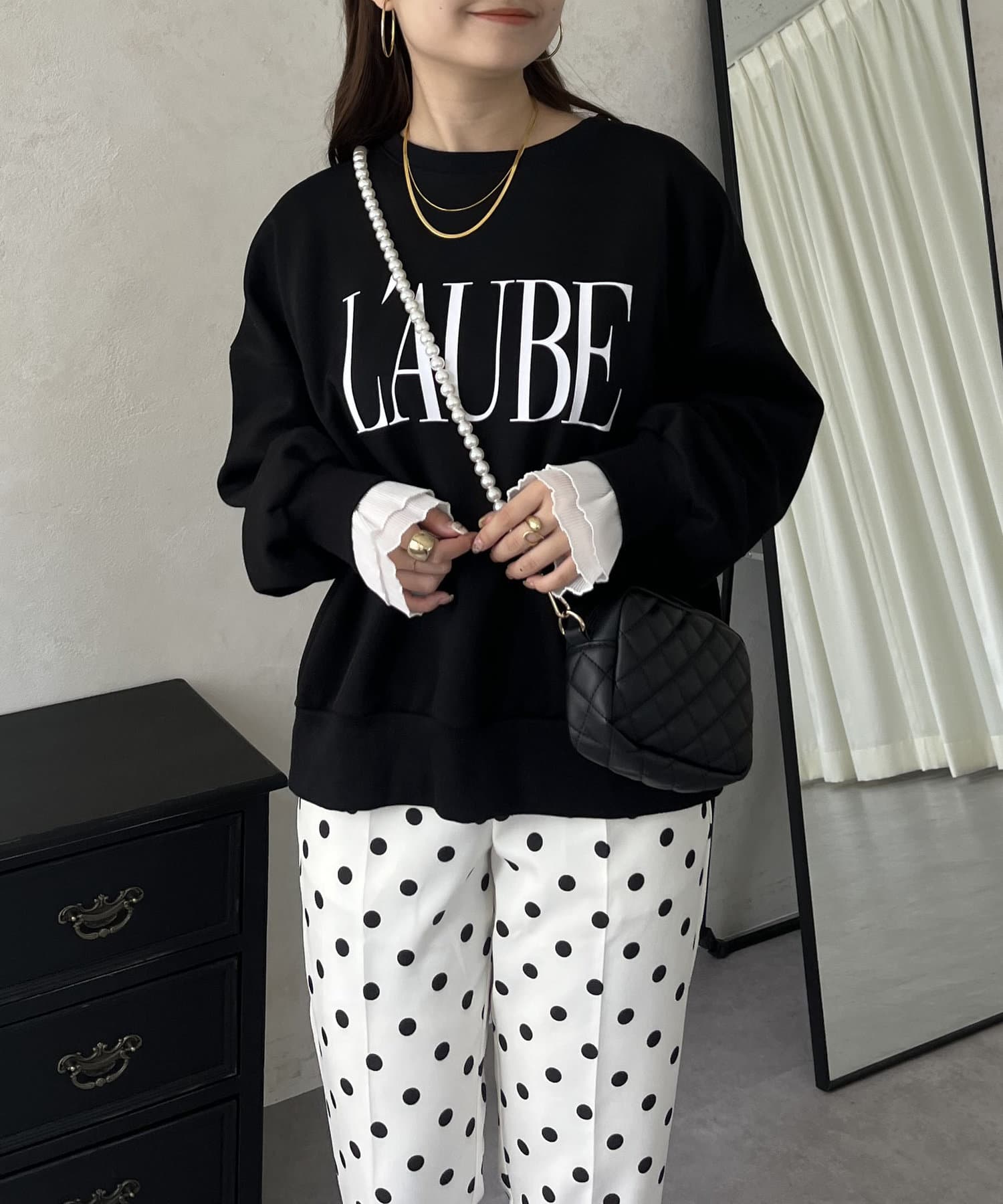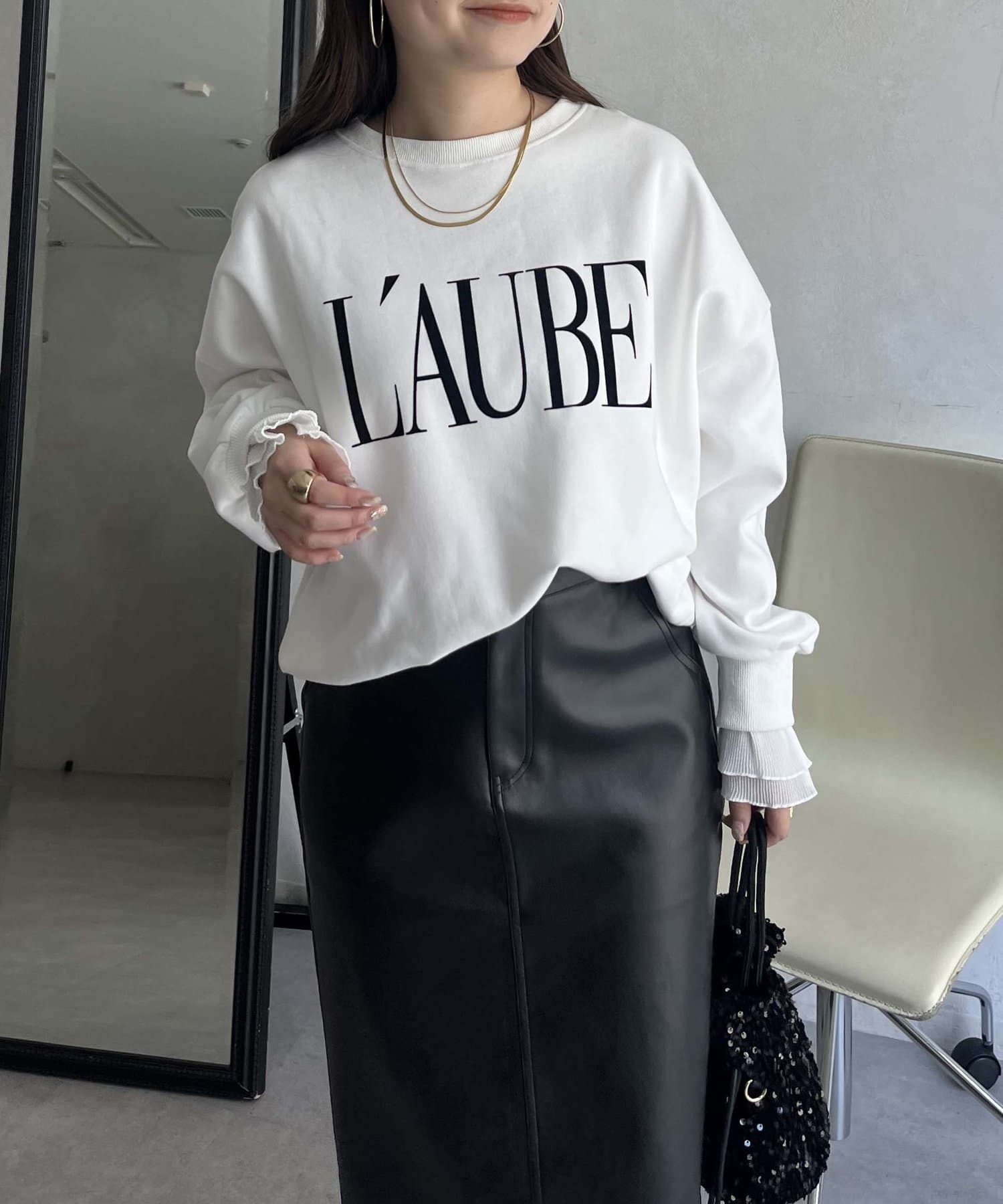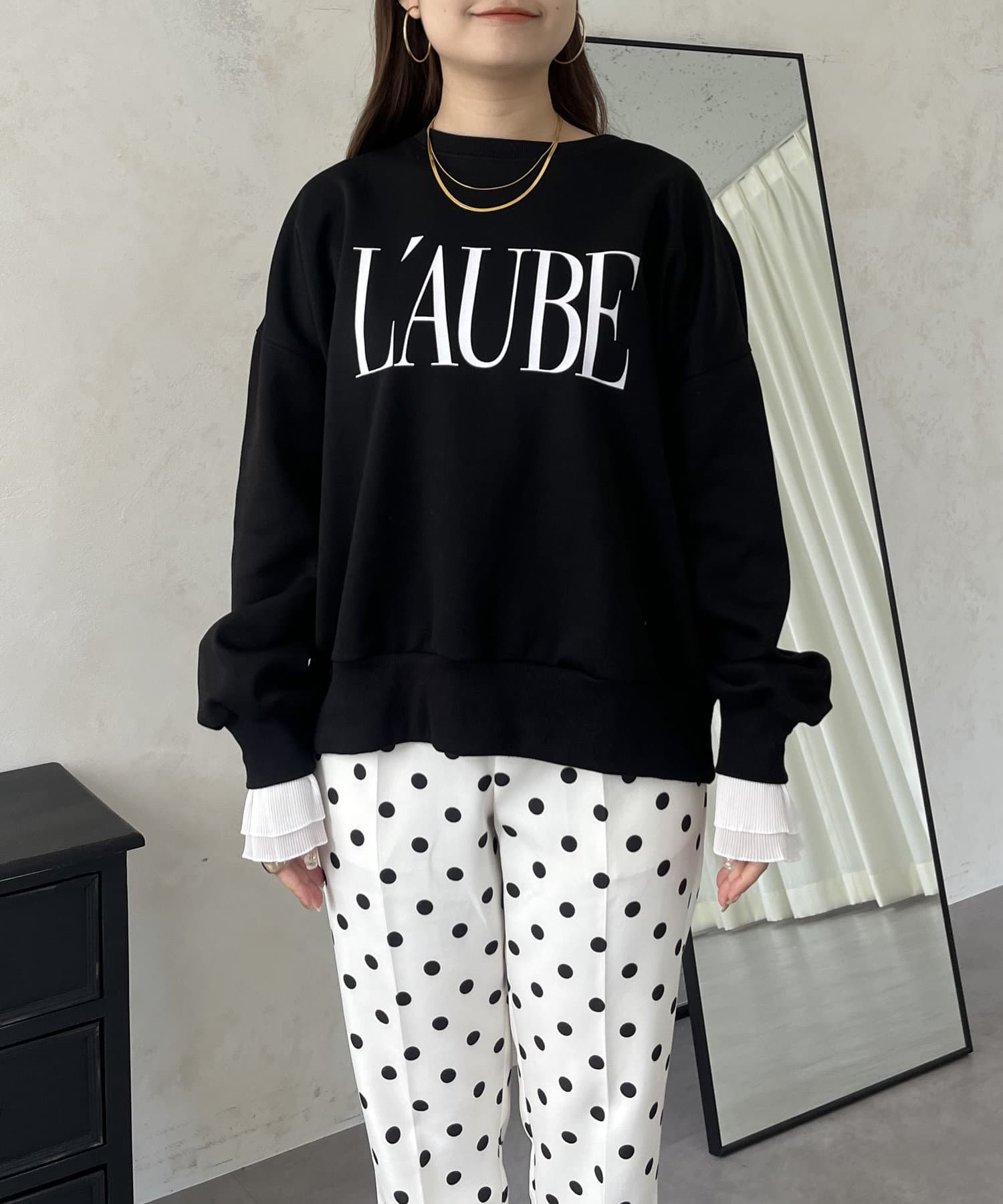 【L'AUBE】プリーツフリルスリーブロゴトップス