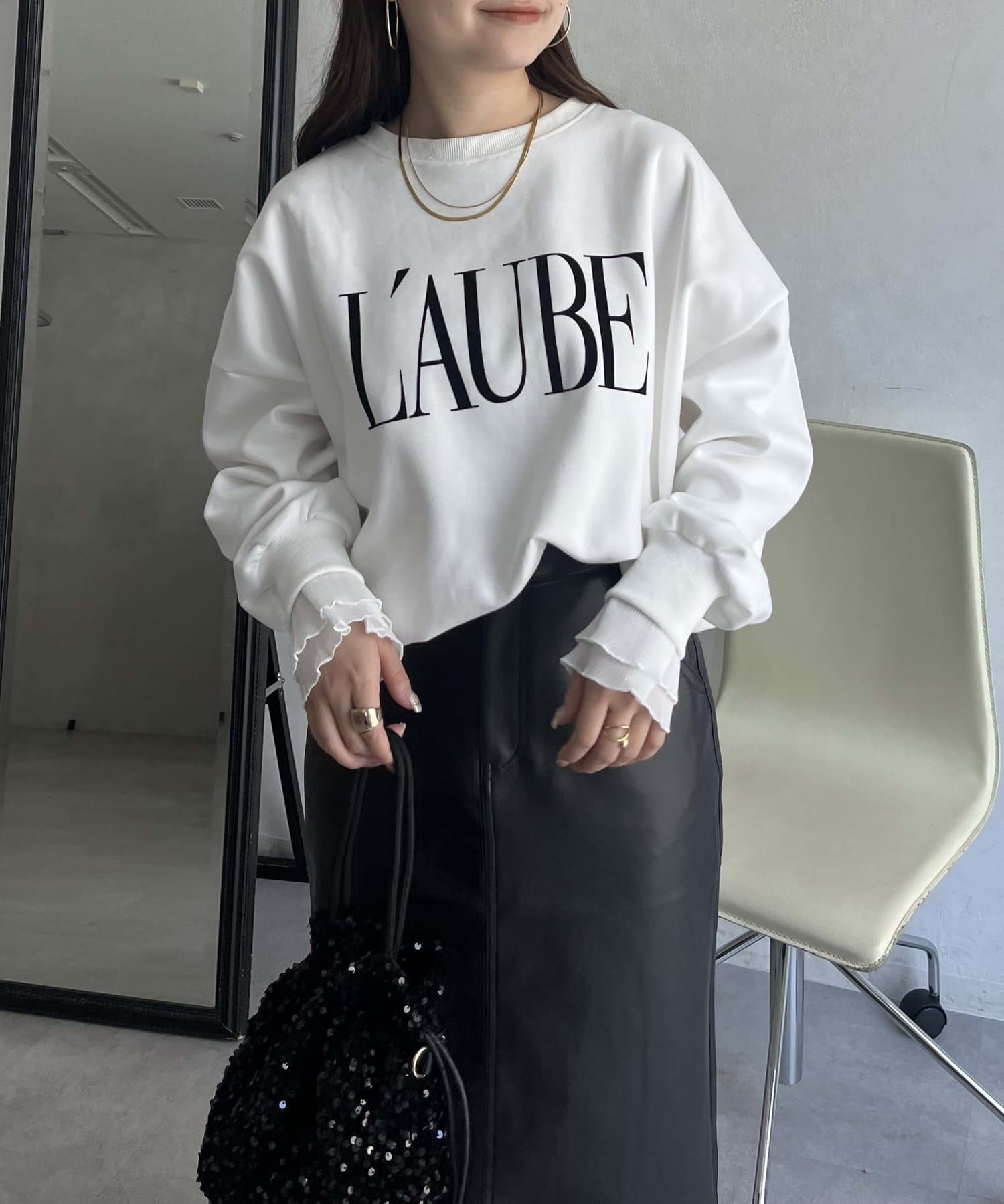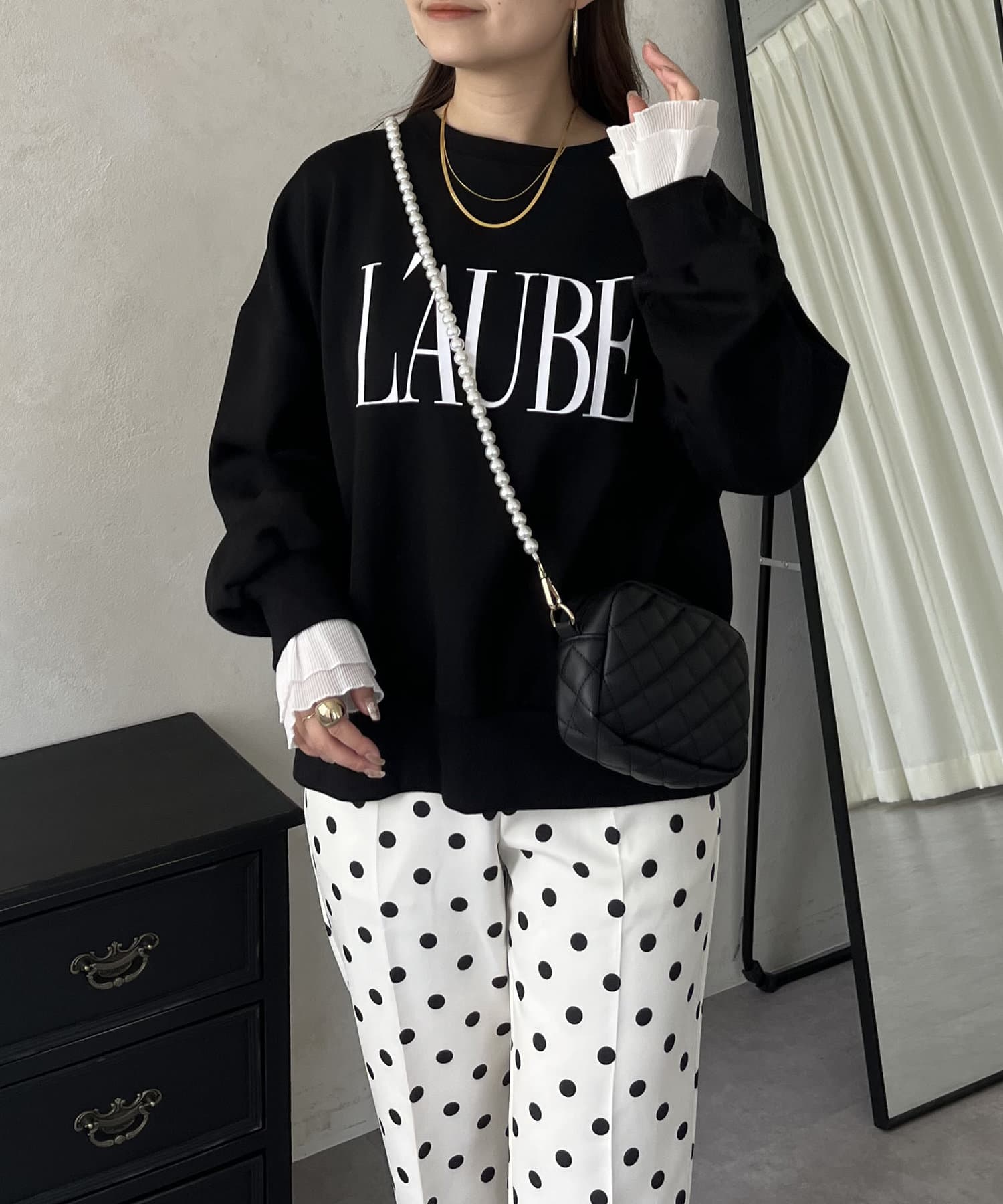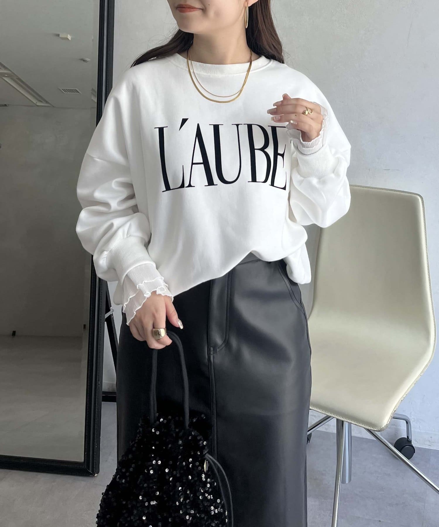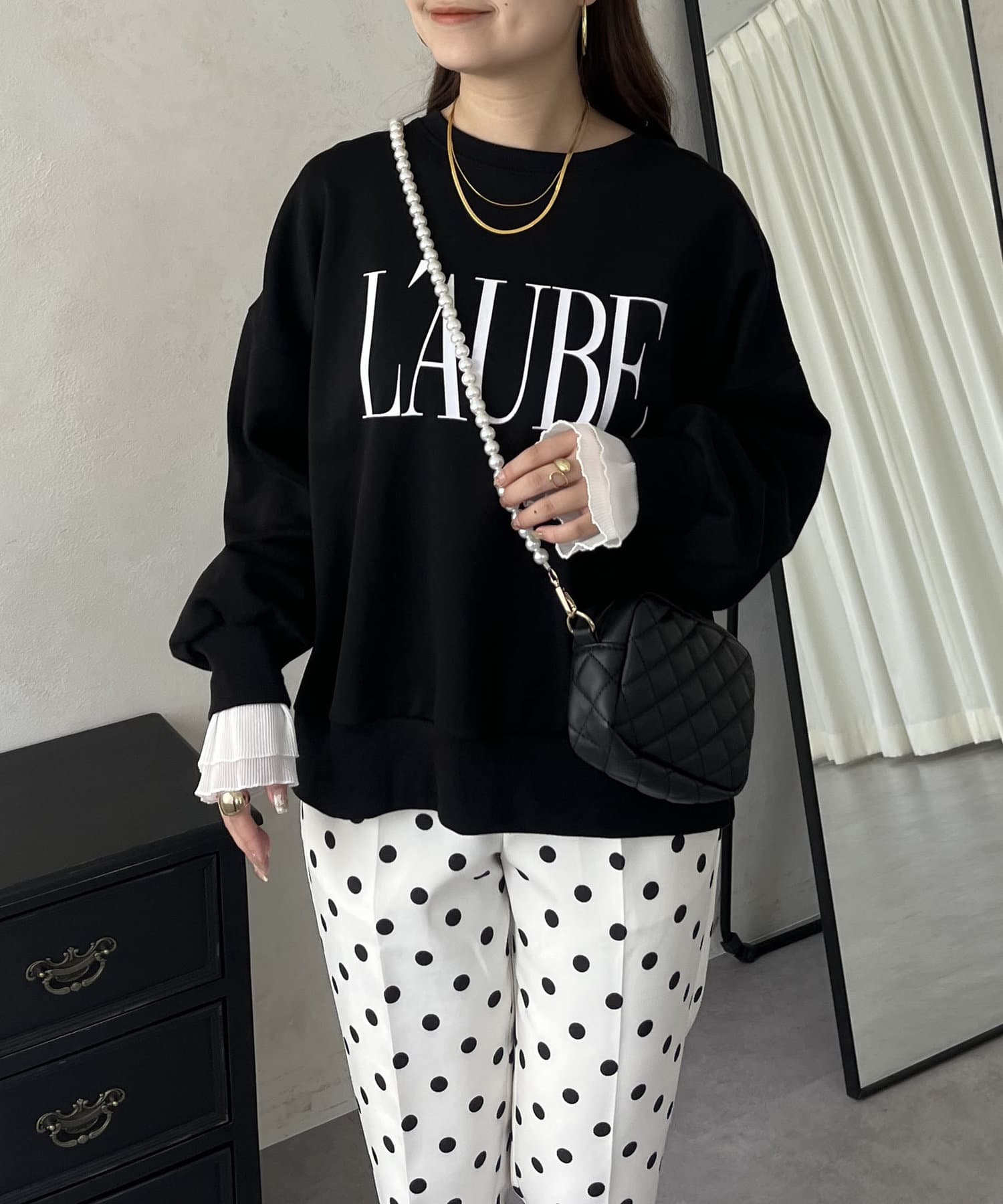 【L'AUBE】プリーツフリルスリーブロゴトップス