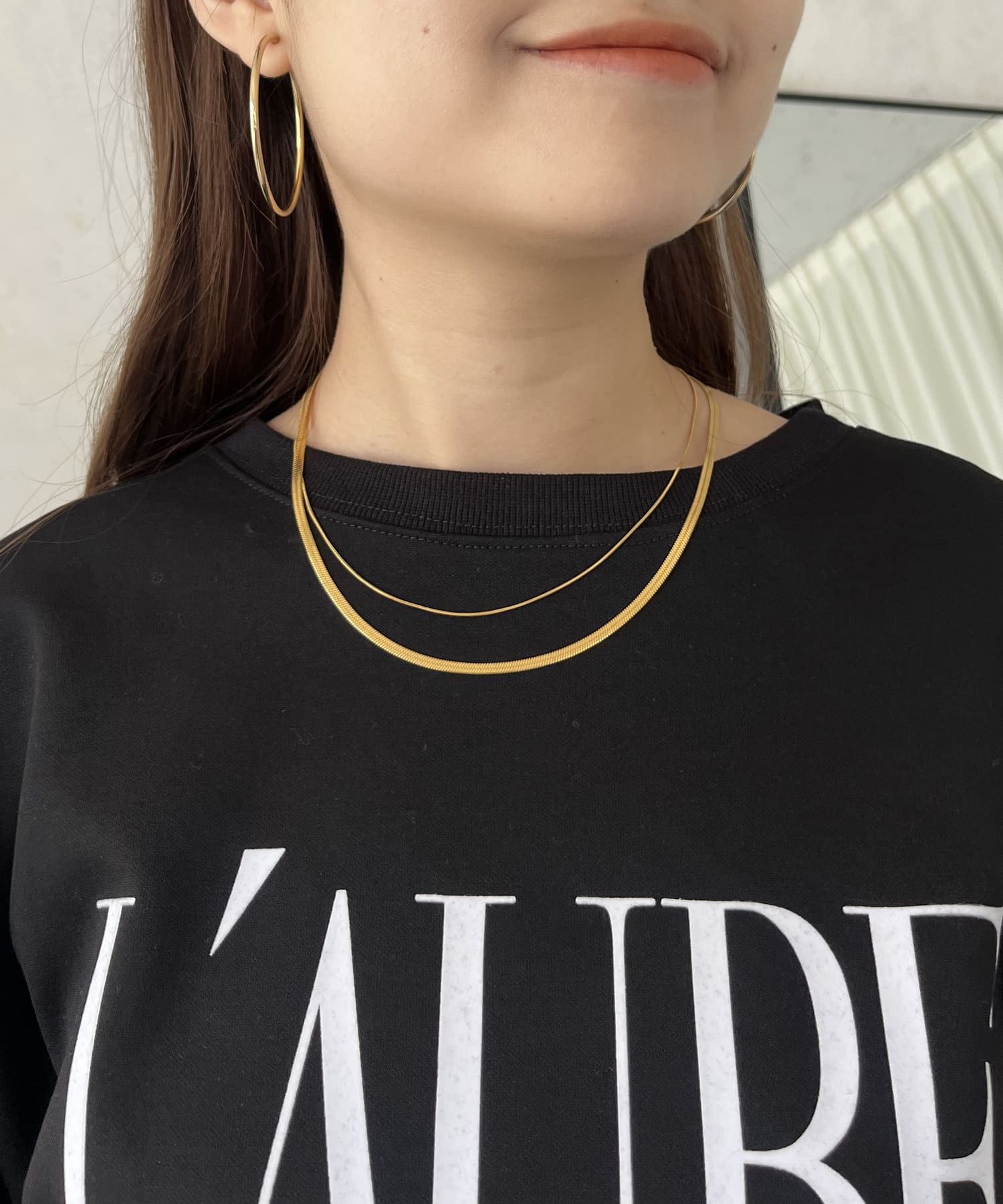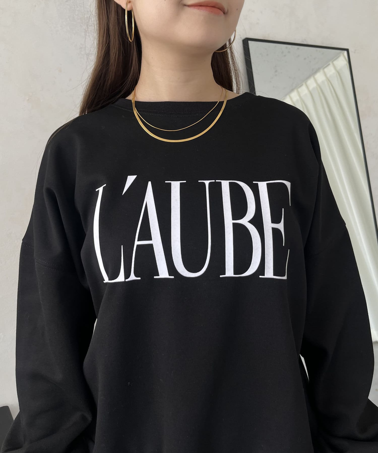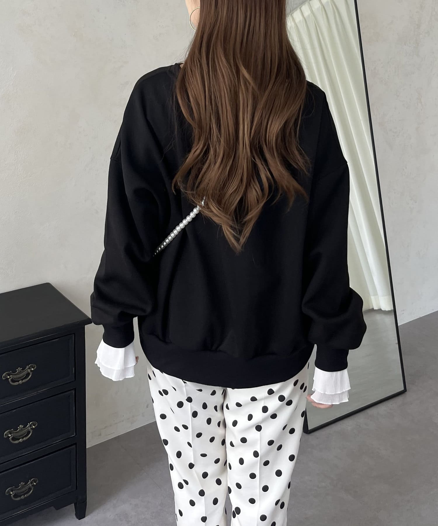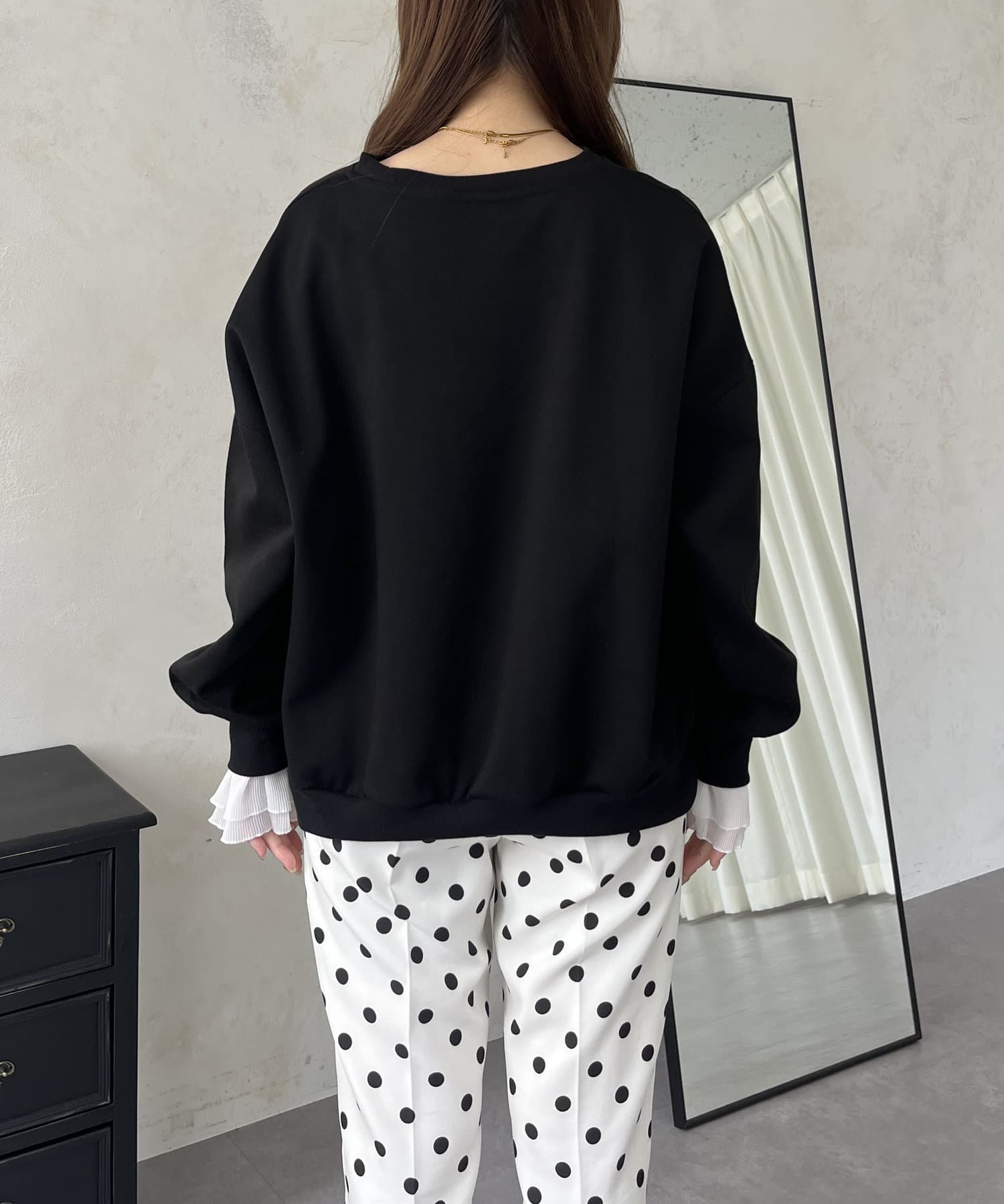 【L'AUBE】プリーツフリルスリーブロゴトップス