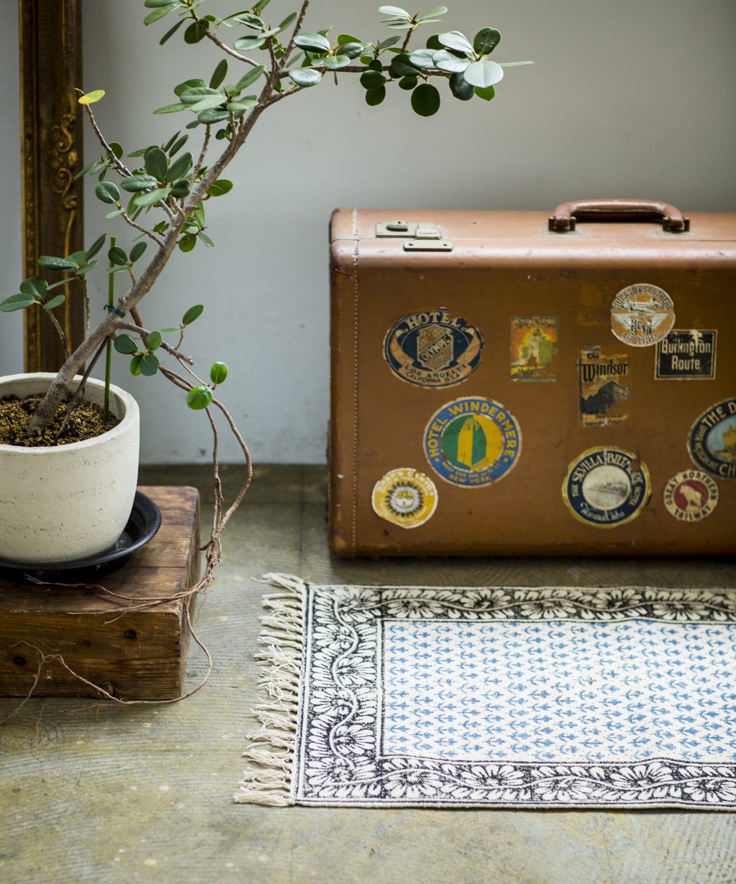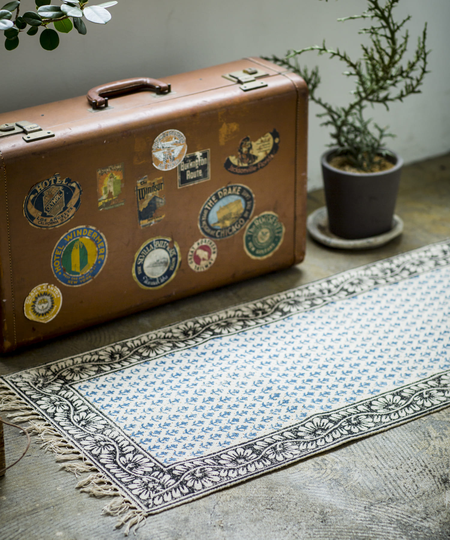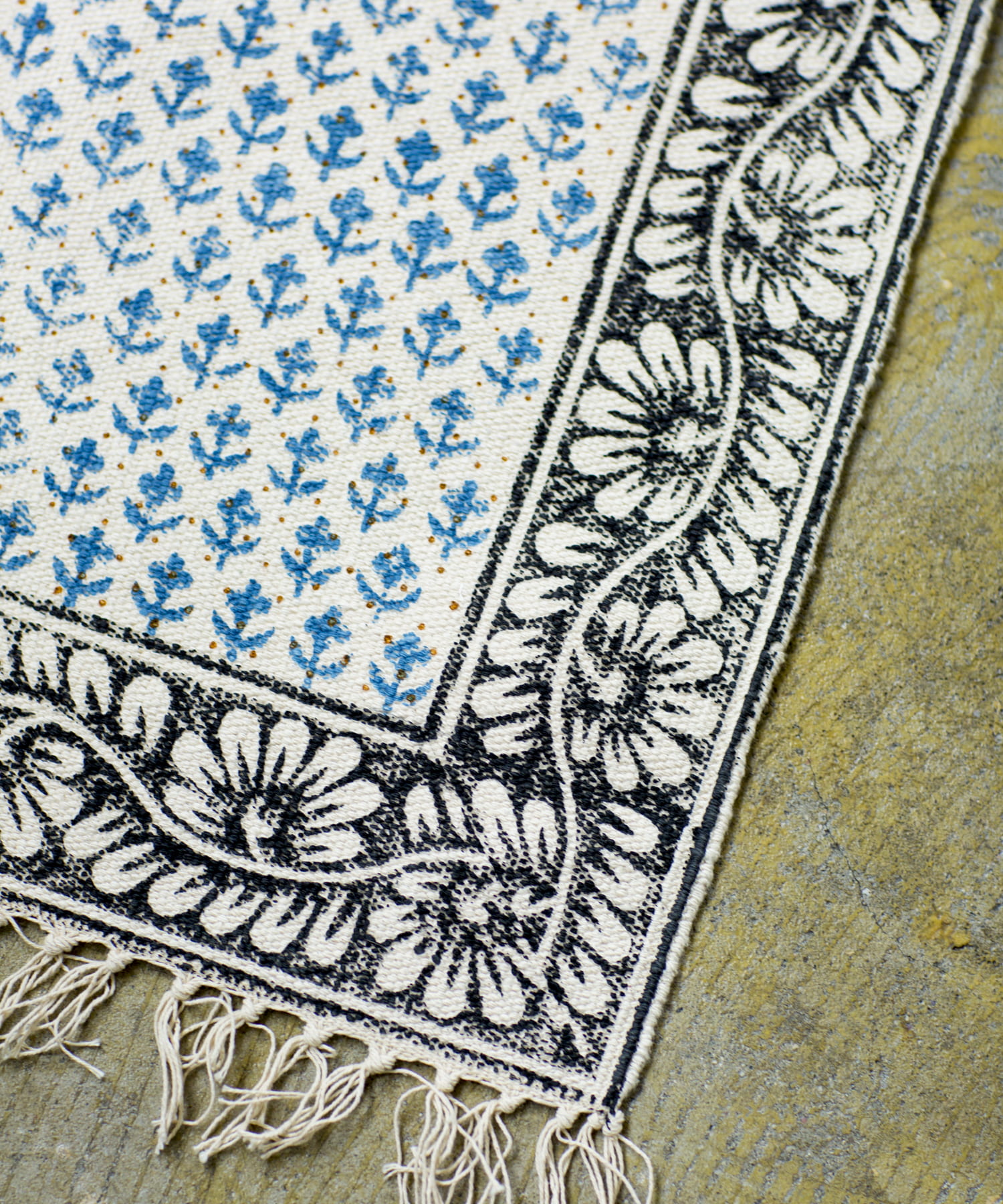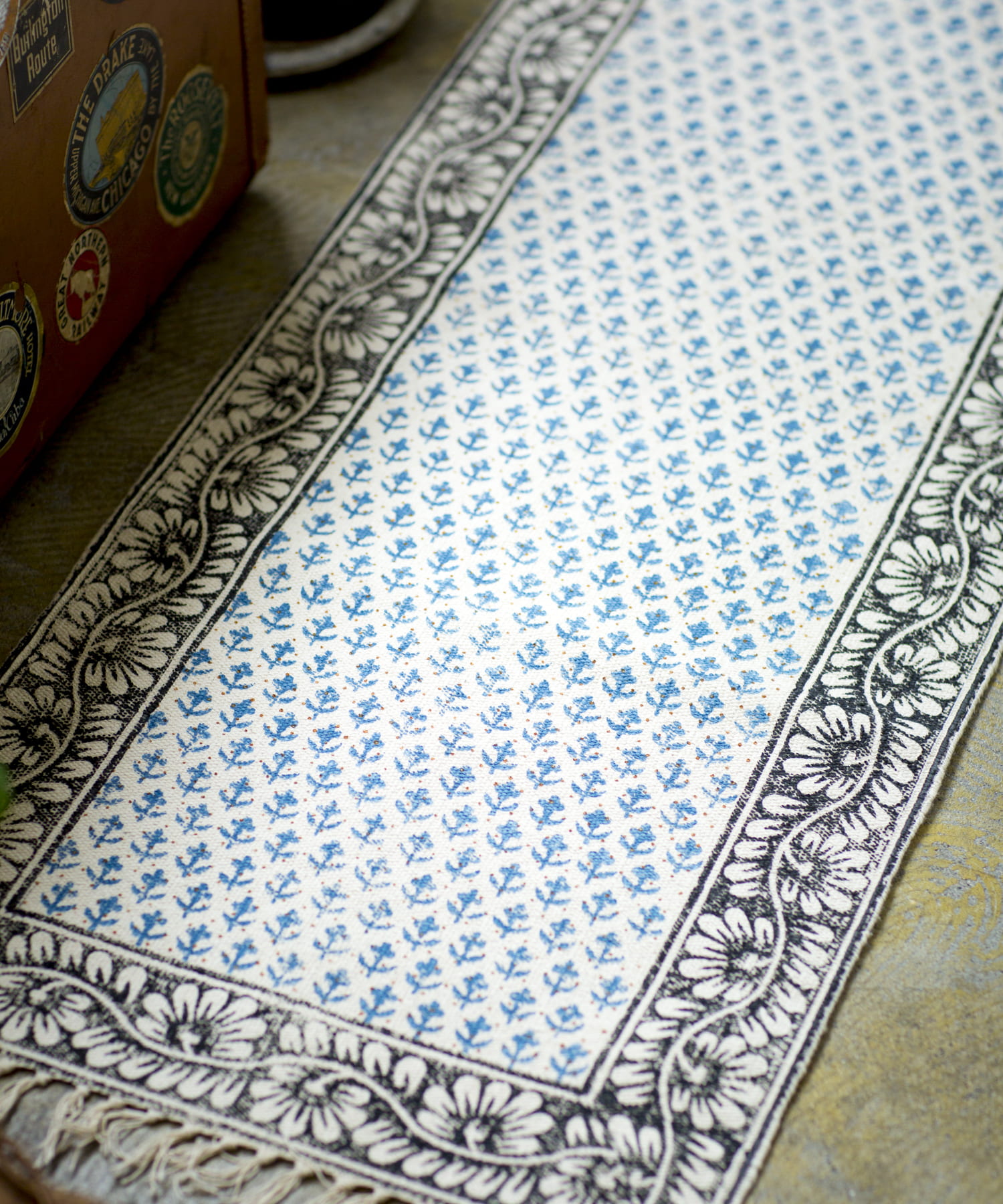 ・手織りのコットンラグマットに、贅沢な全面のブロックプリント