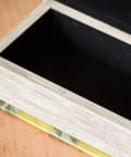 • 側面にはアンティーク洋書のような紙のプリントが印刷されています。