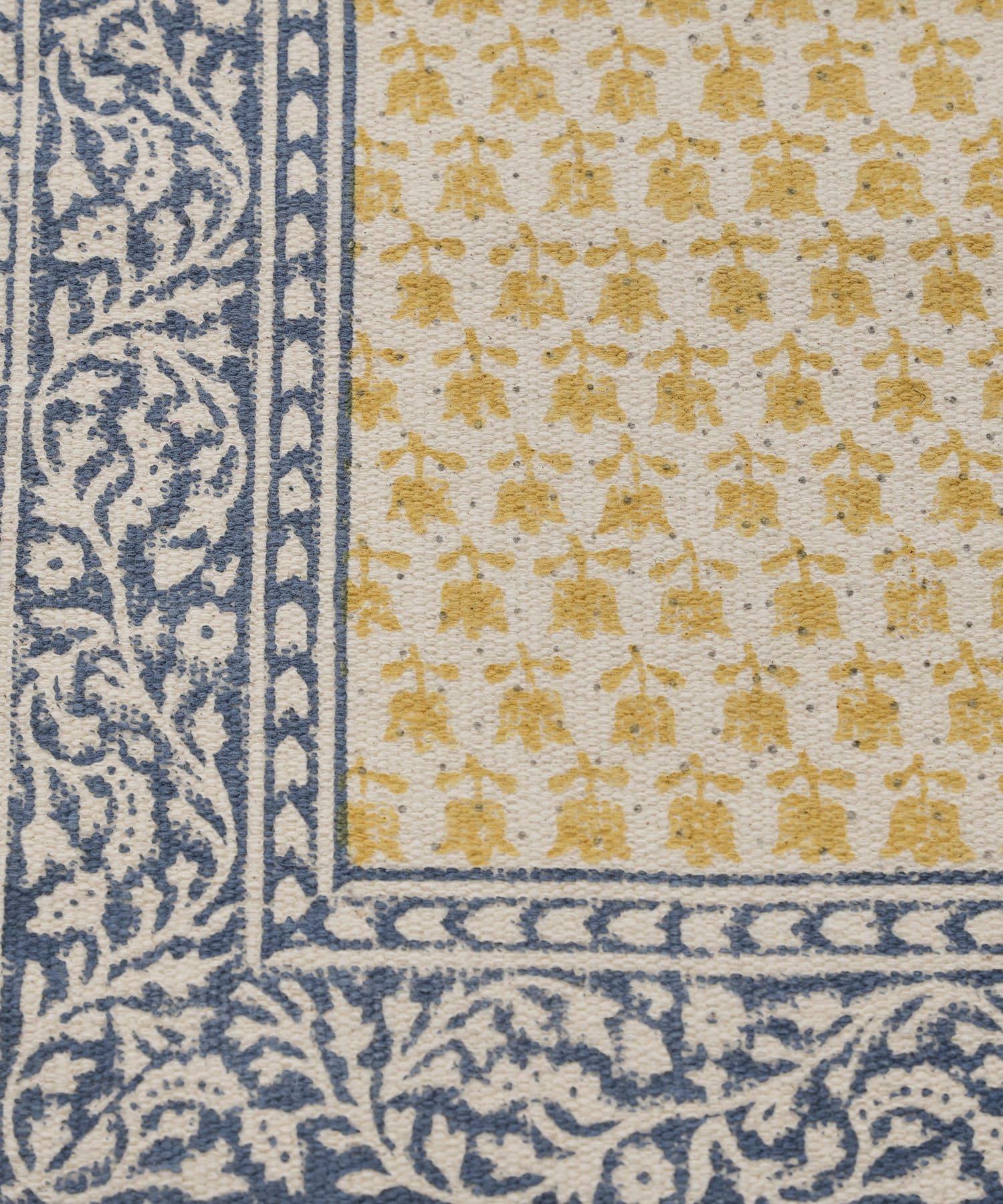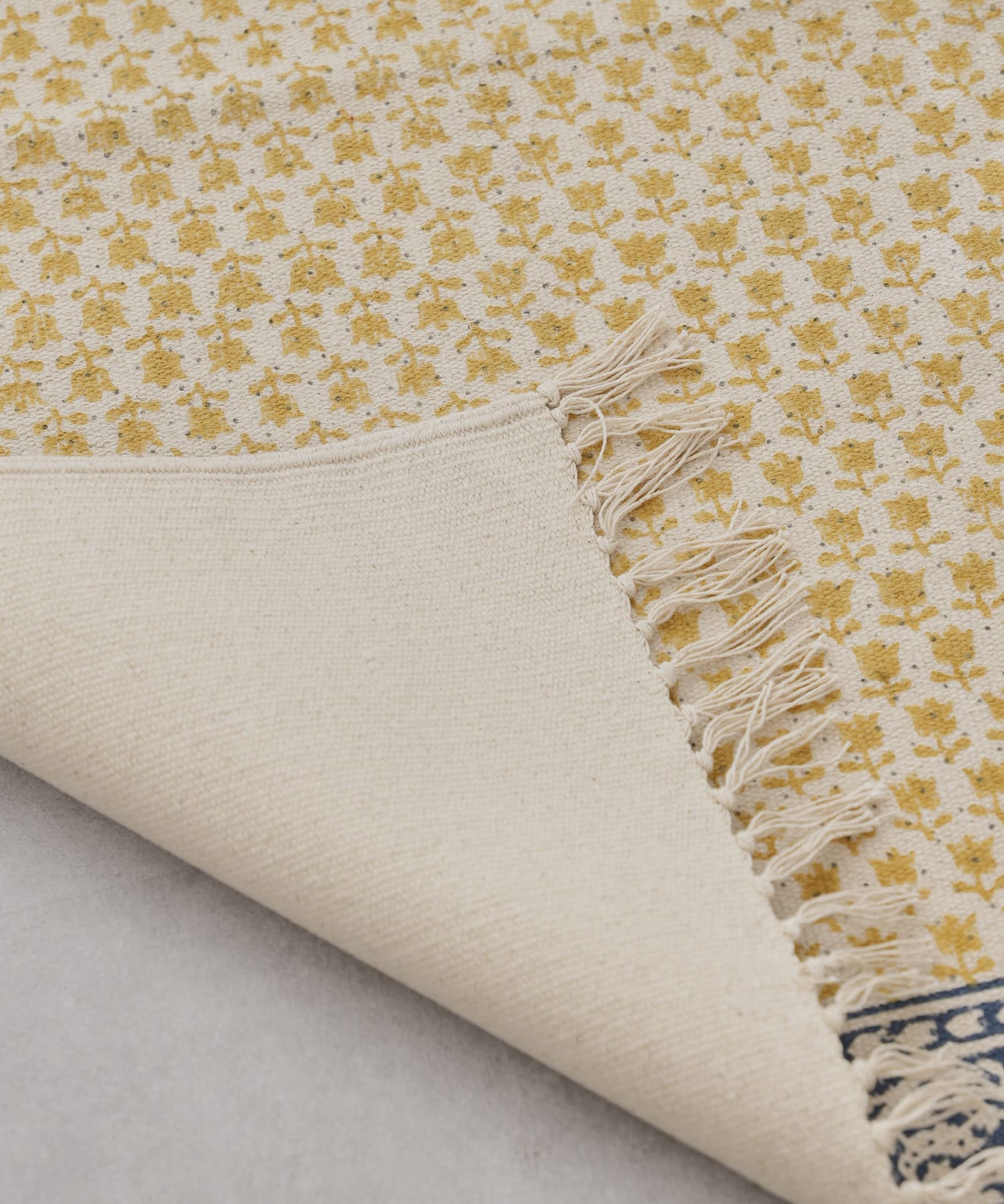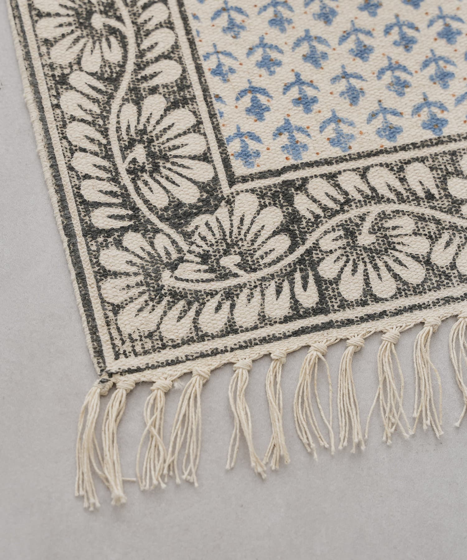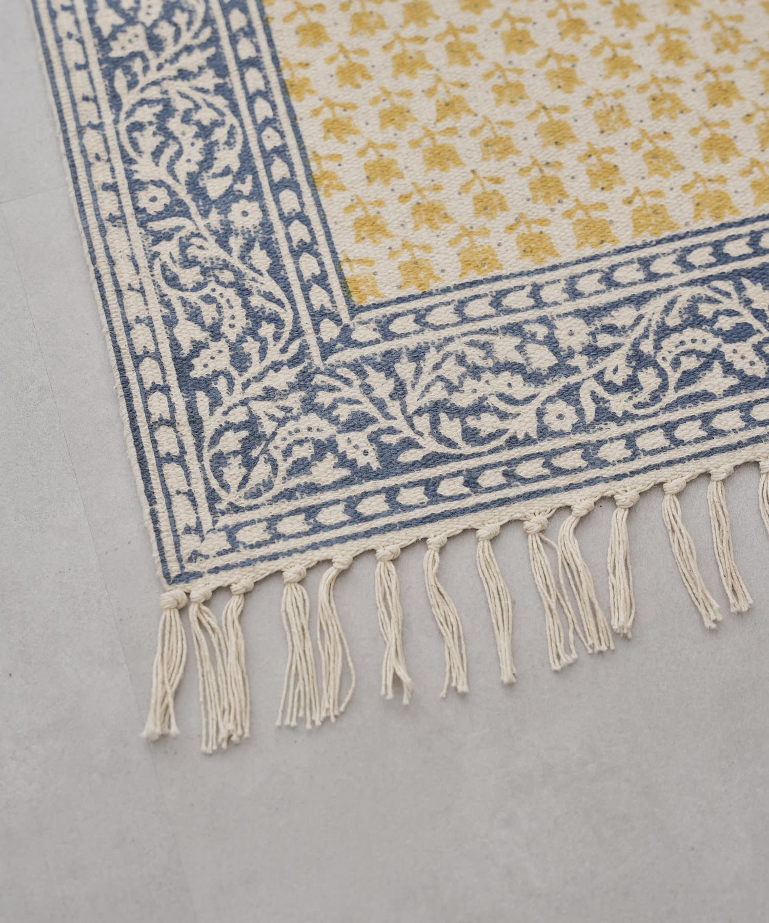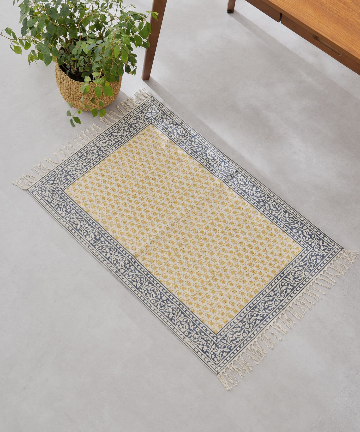 ・手織りのコットンラグマットに、贅沢な全面のブロックプリント