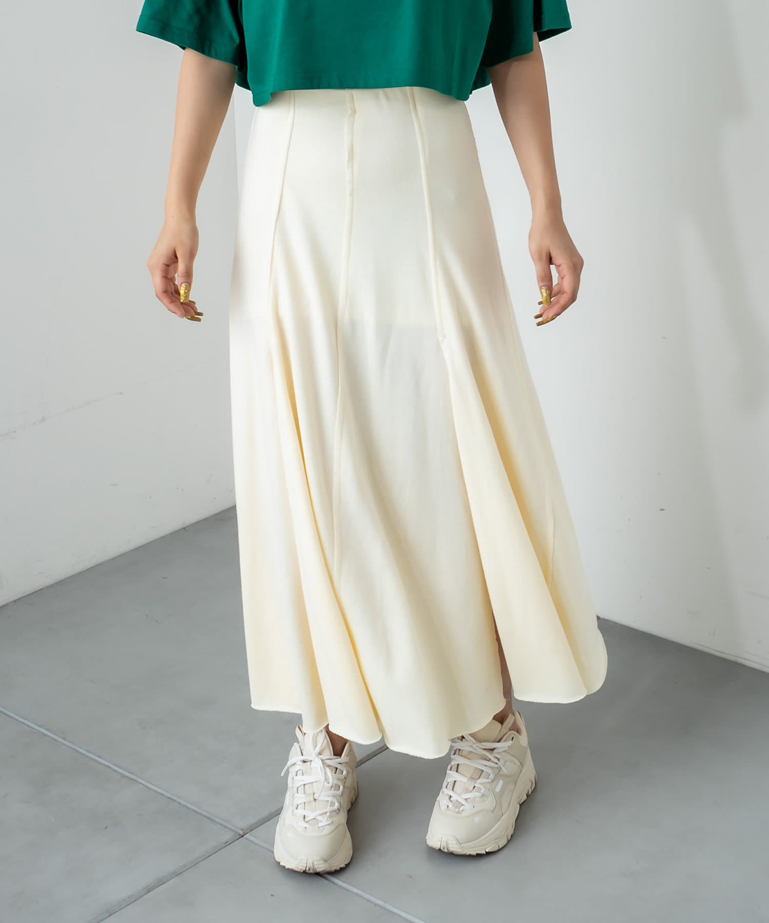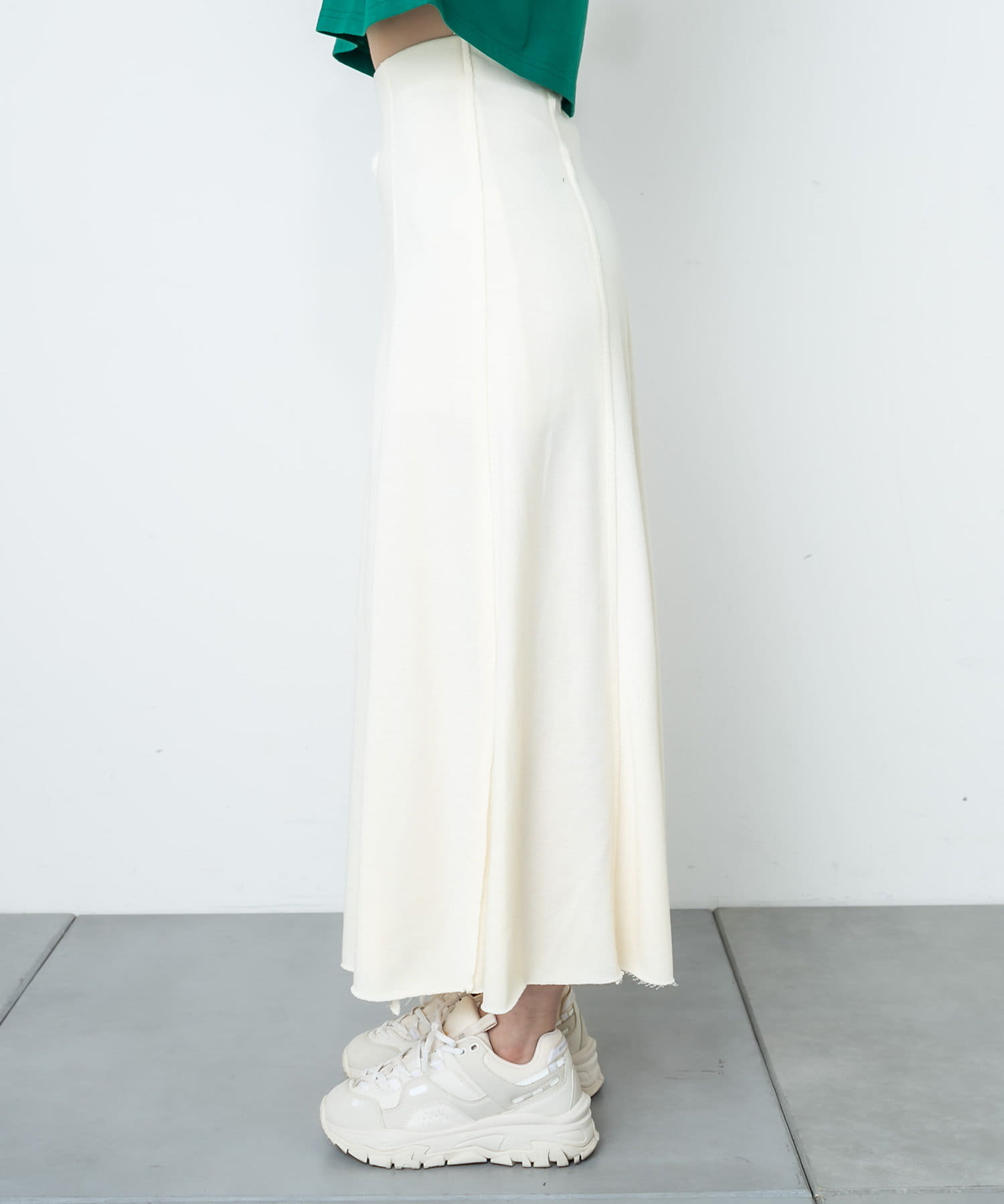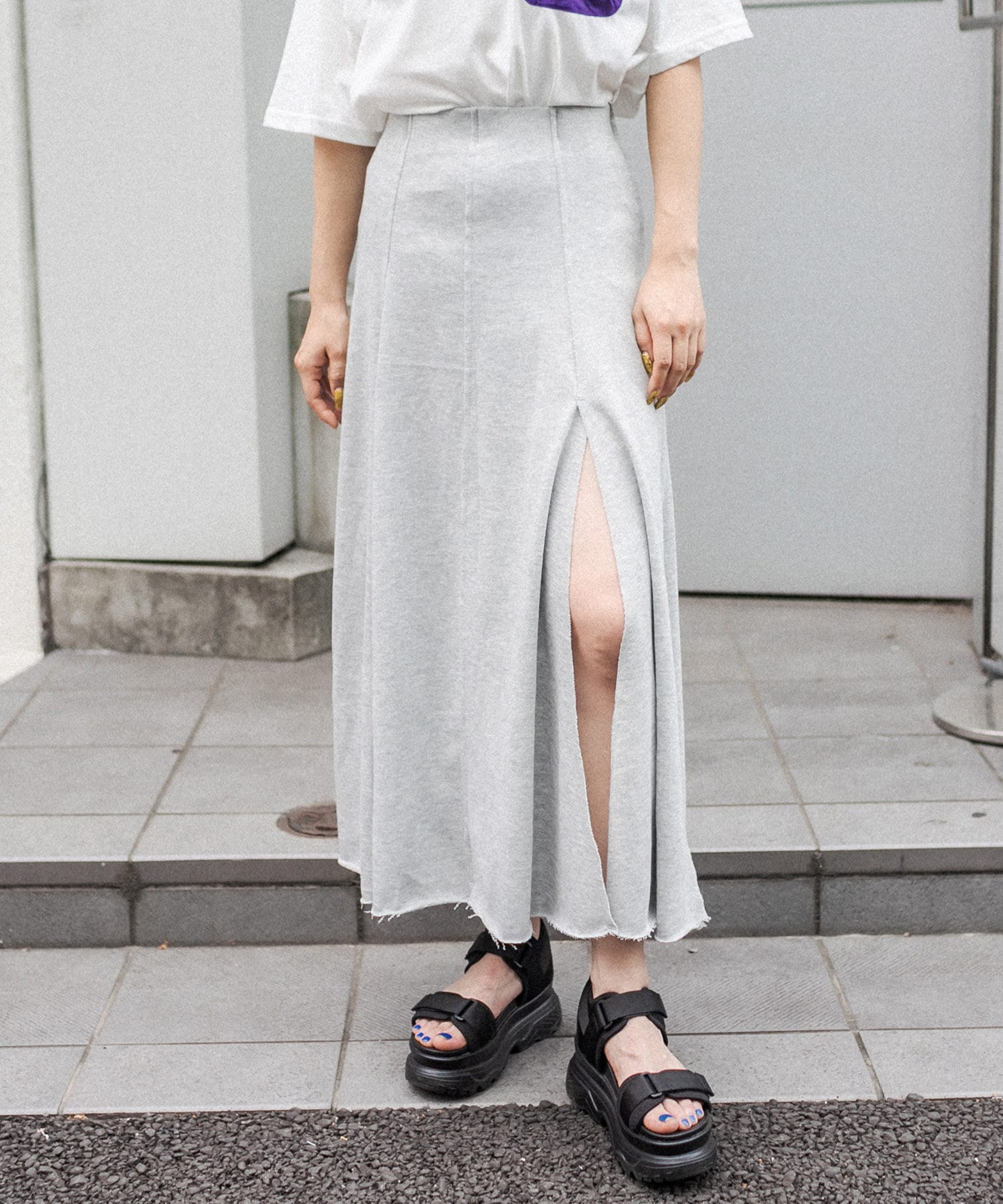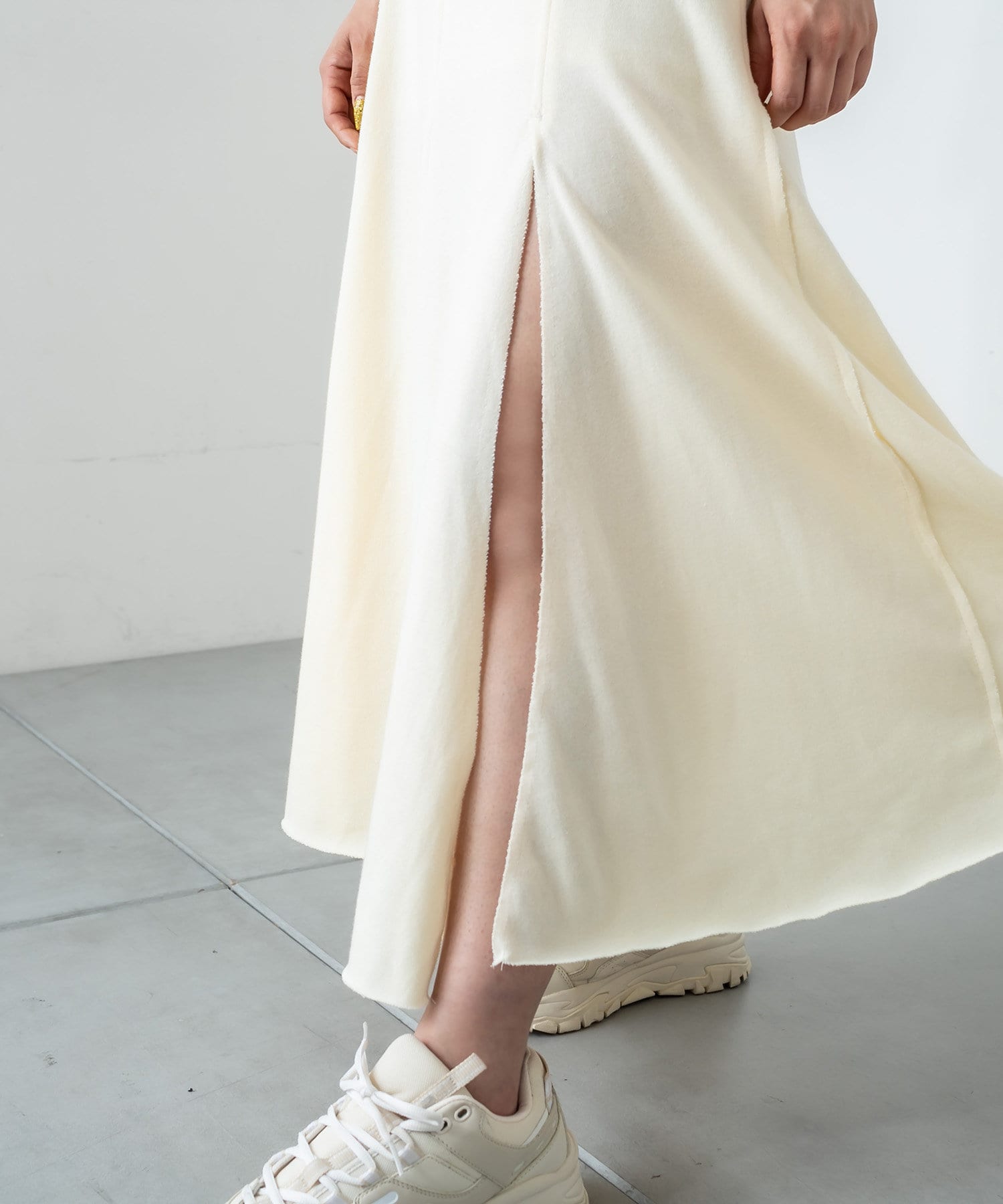 フロントに深く入ったスリットが魅力のハイスリットスカート。
