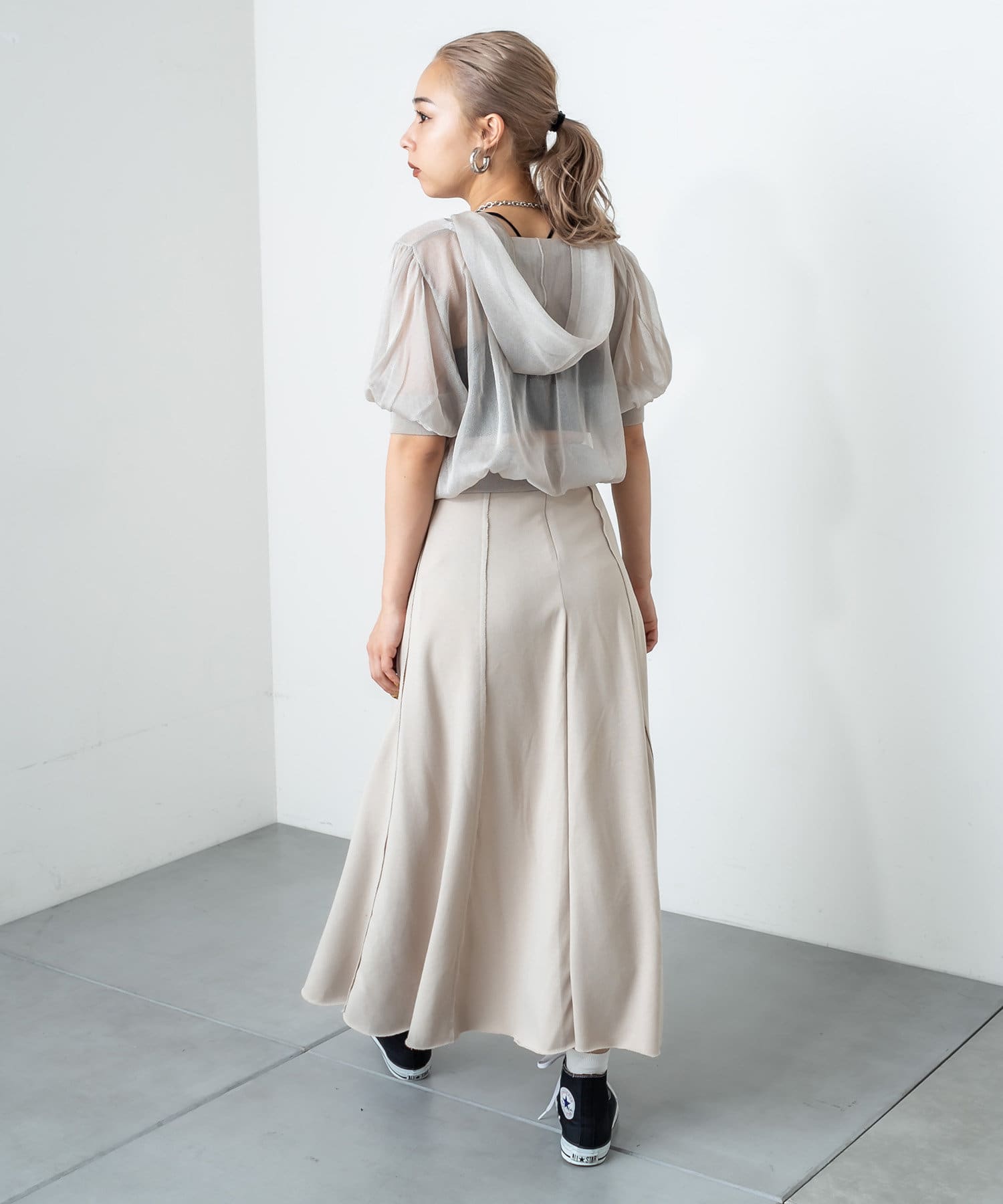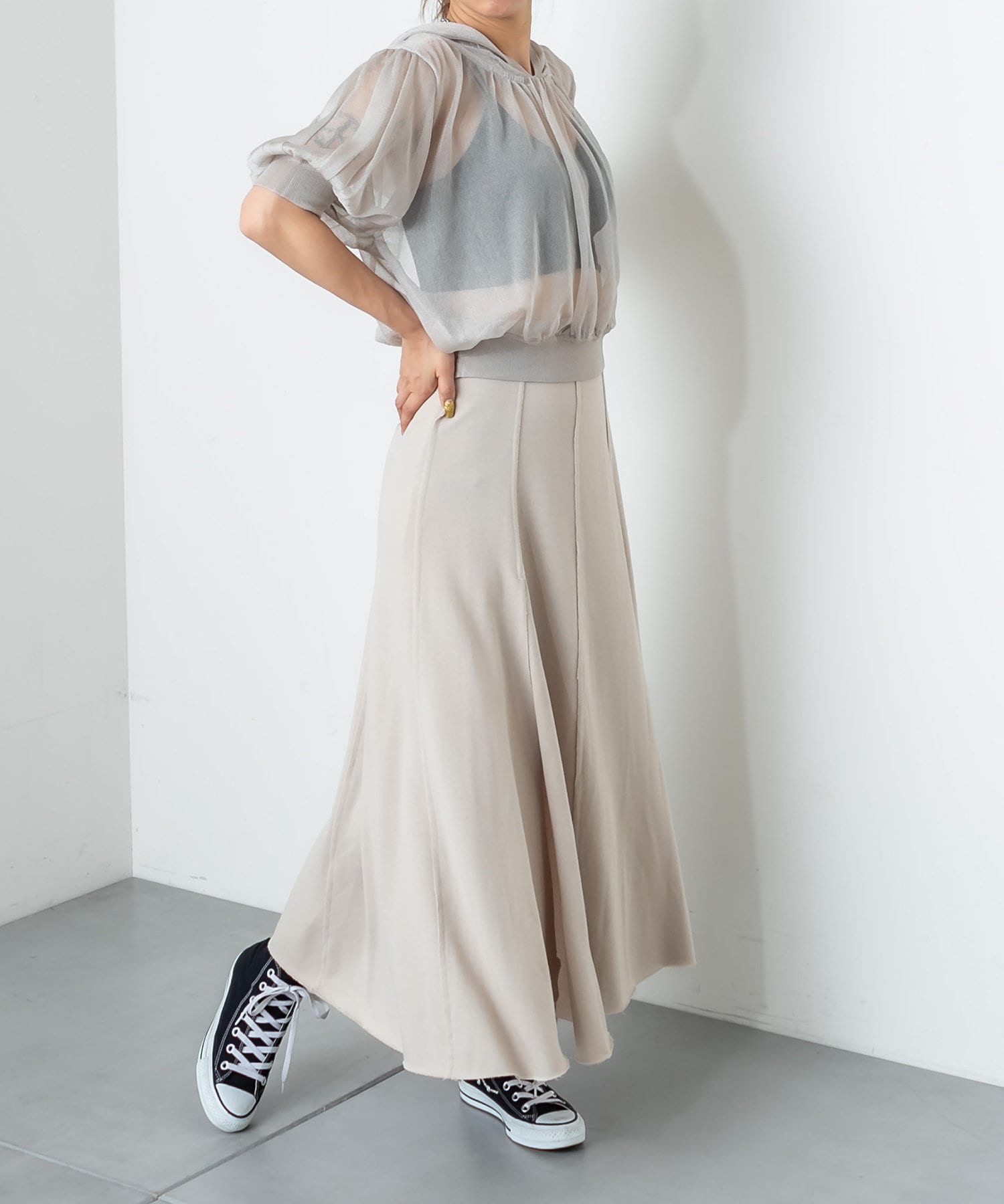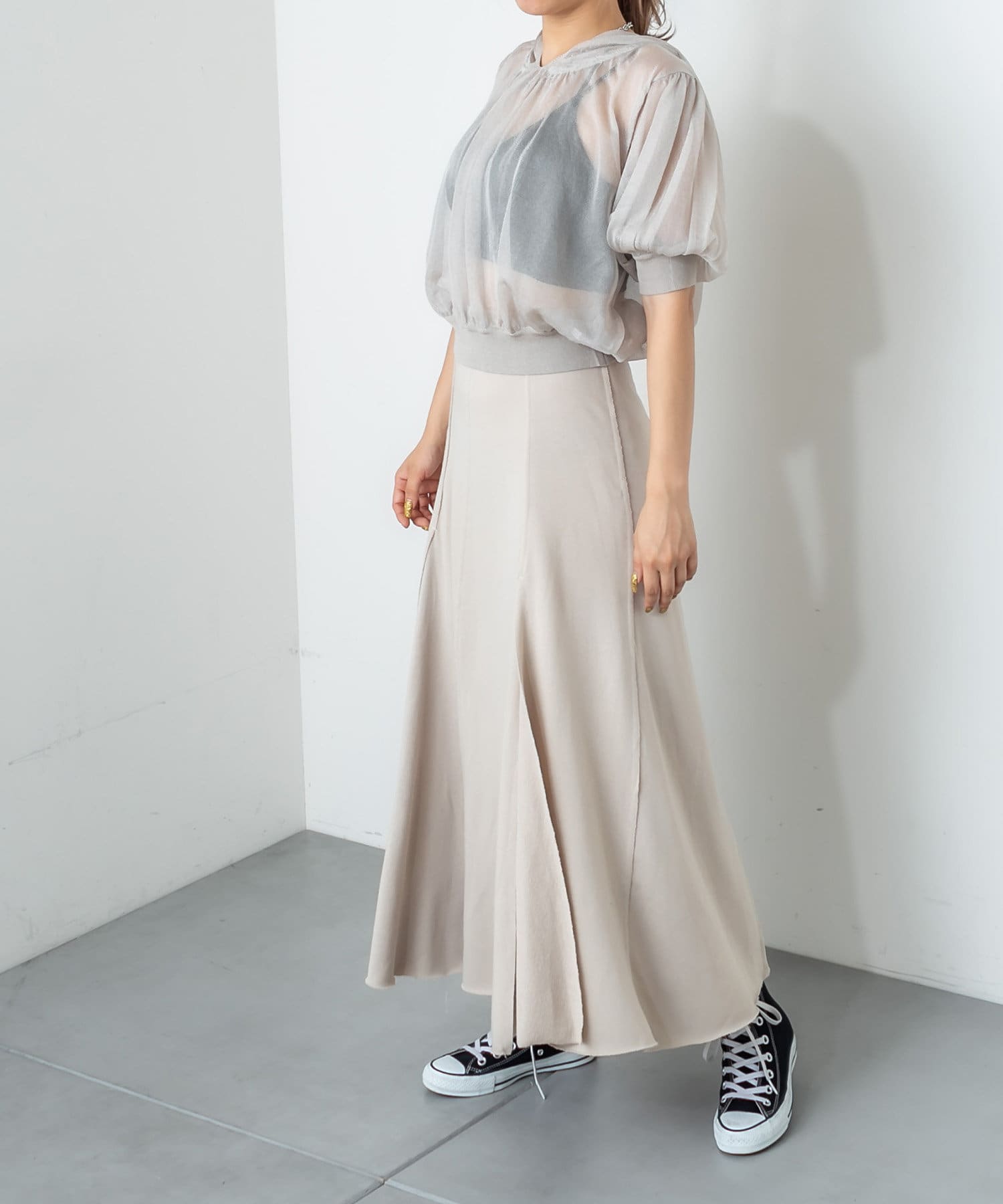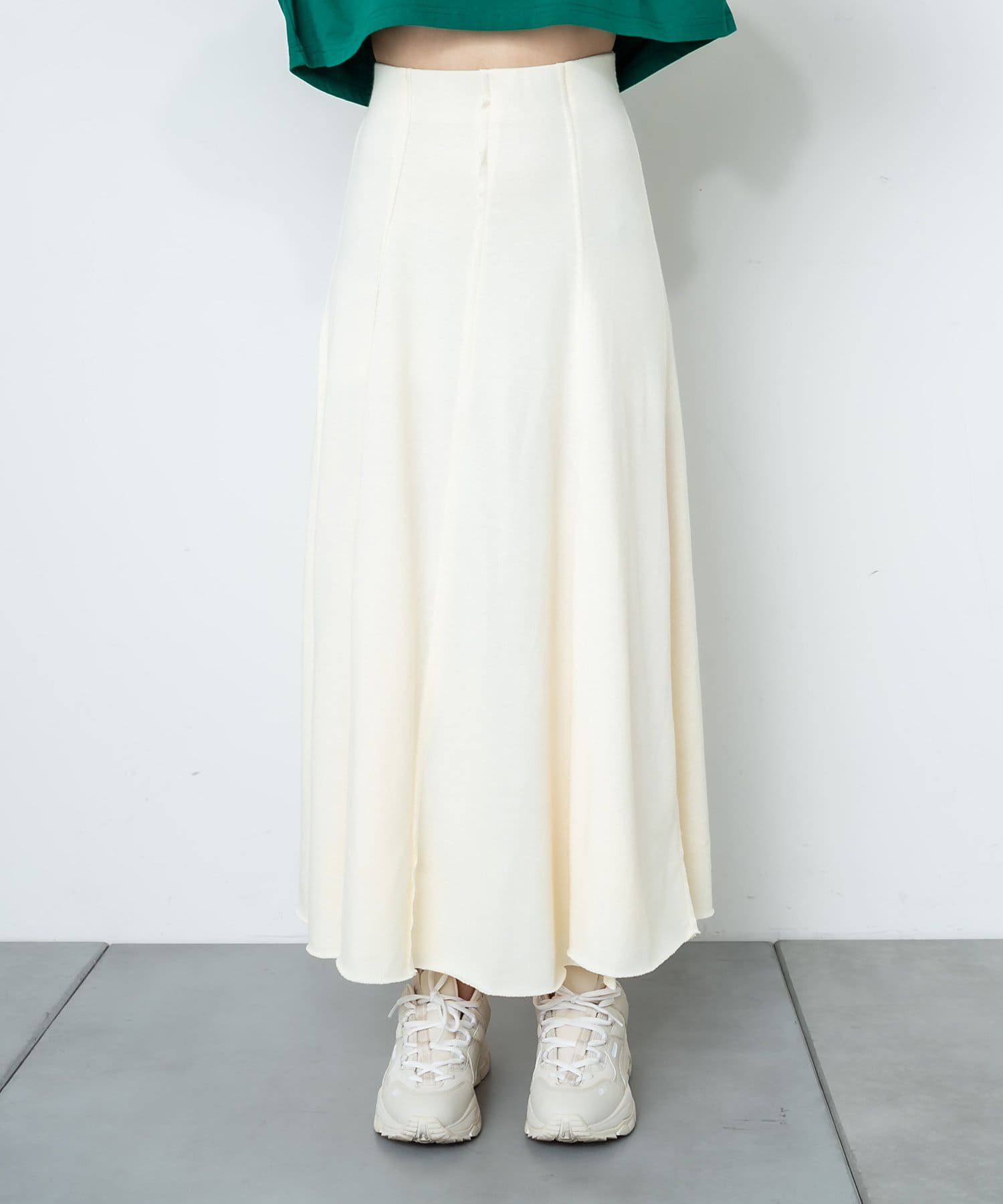 フロントに深く入ったスリットが魅力のハイスリットスカート。