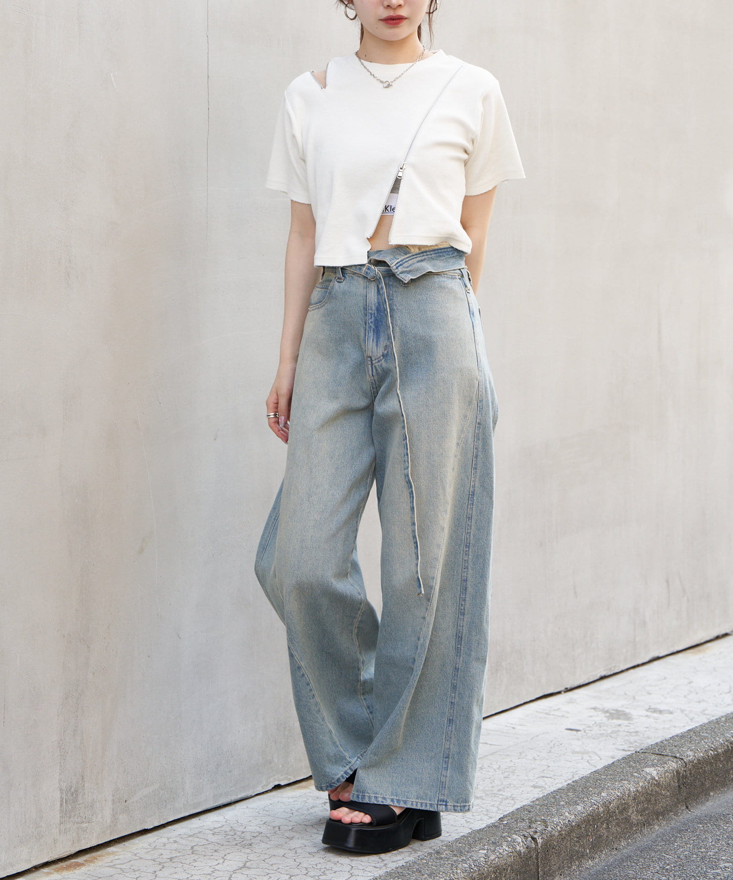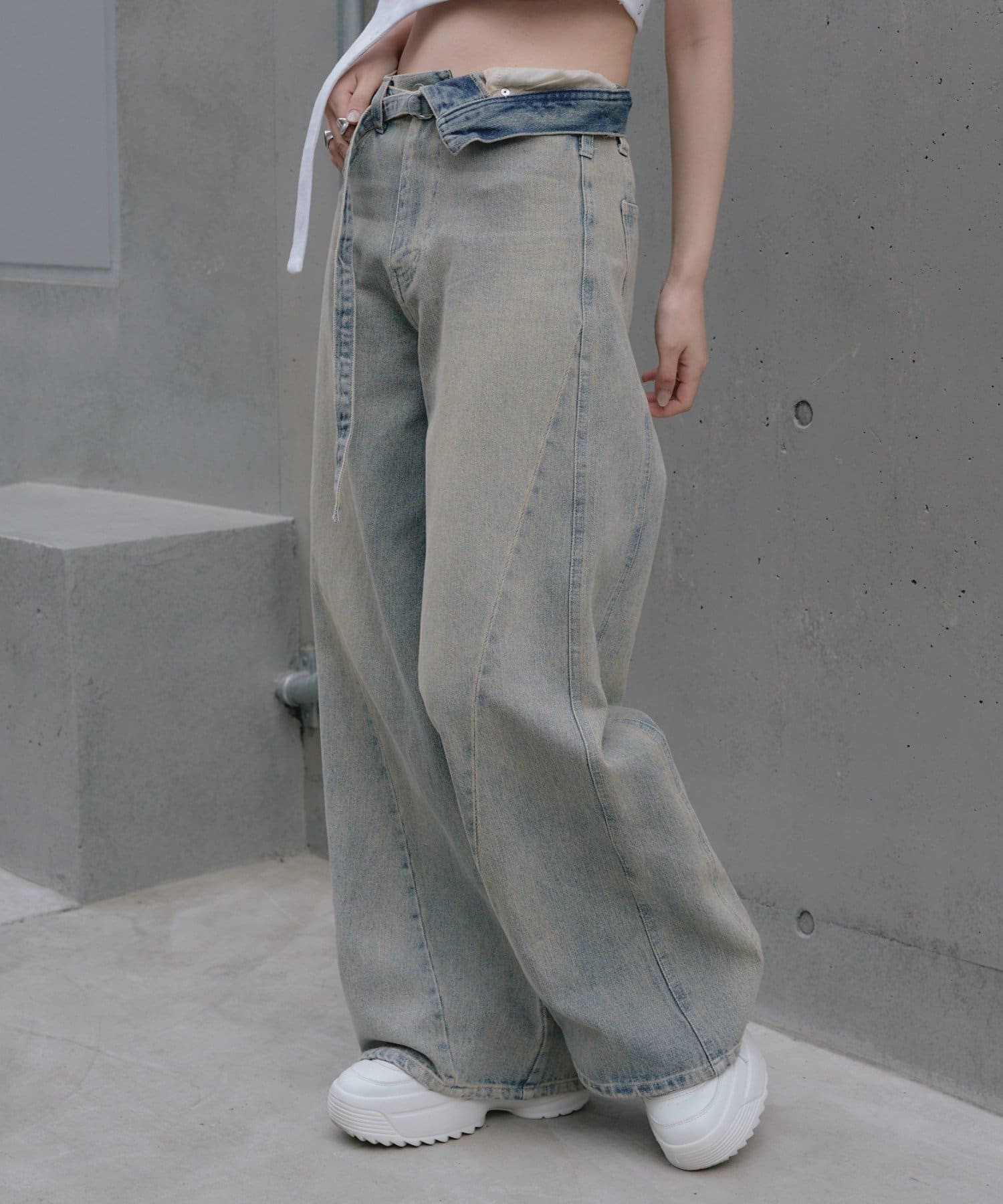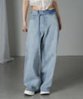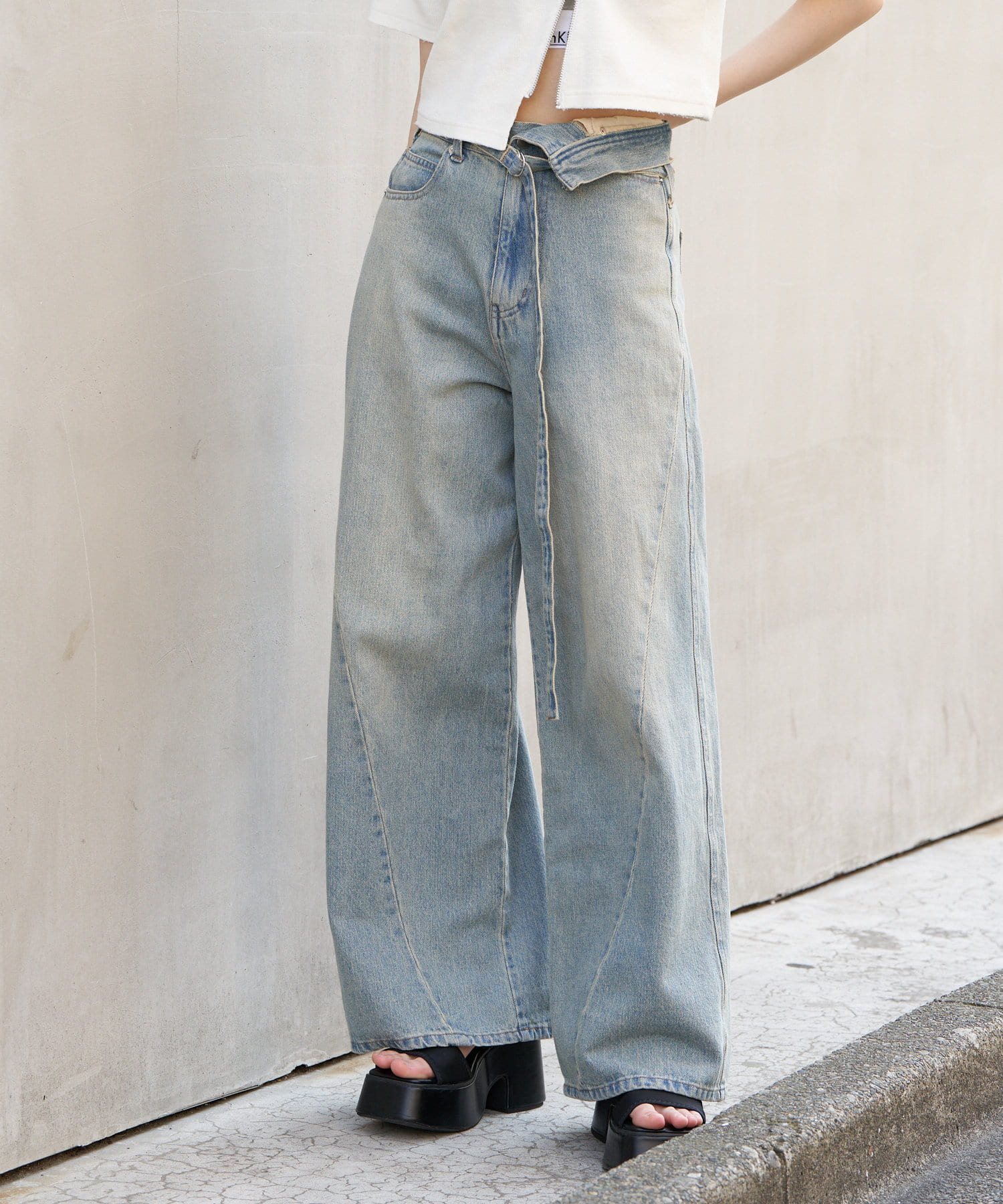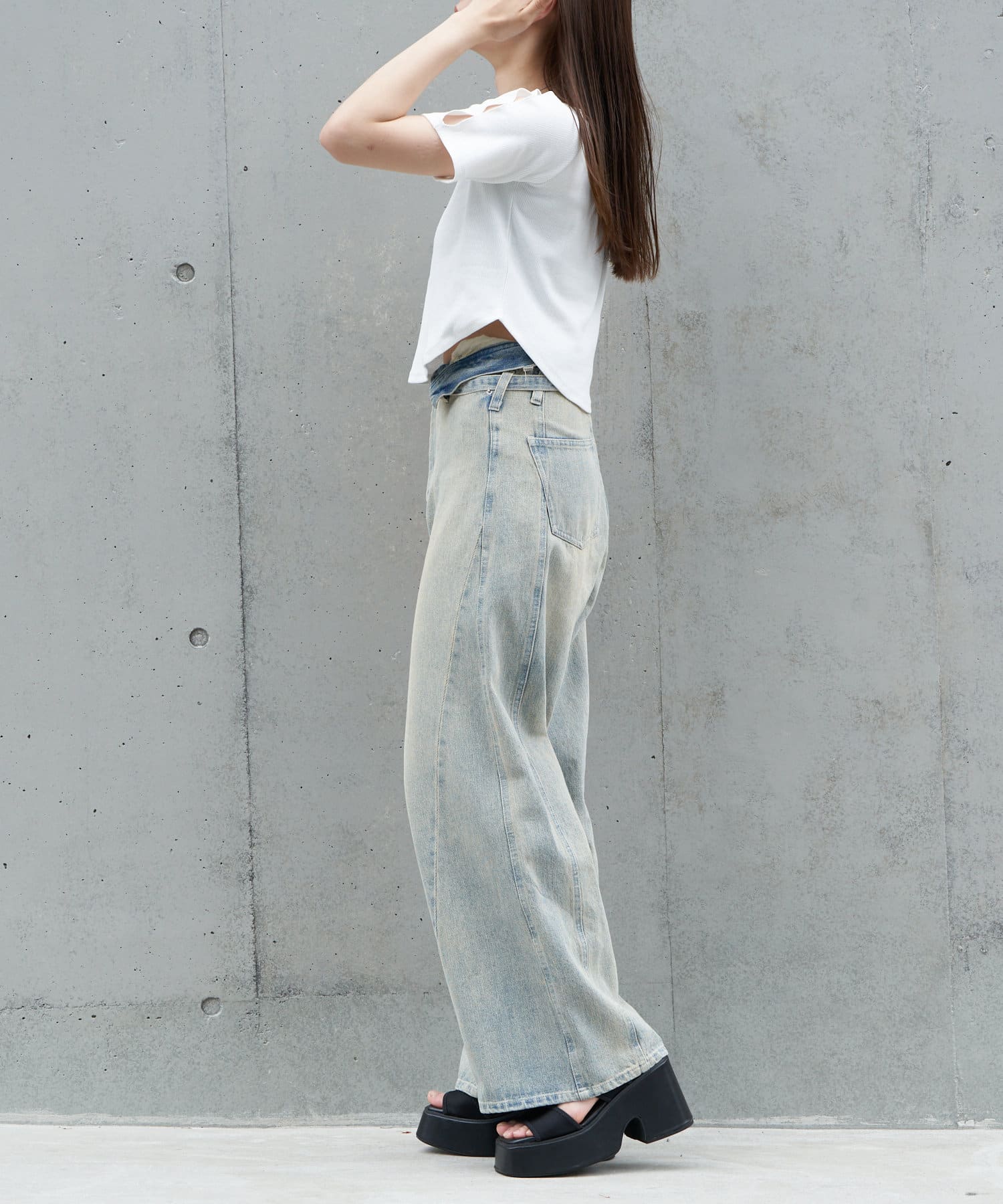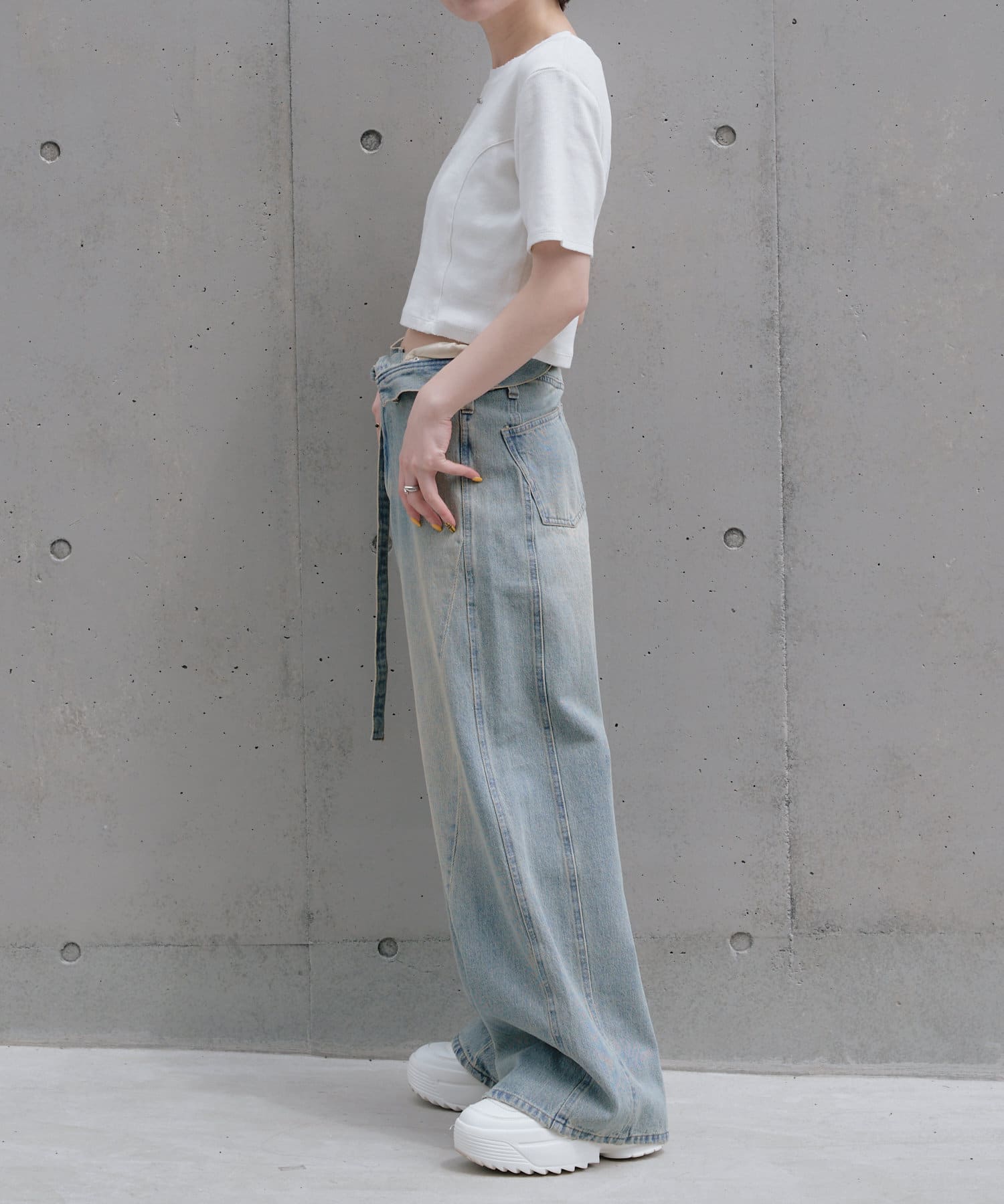 【RAY CASSIN】ウエスト折り返しワイドデニムパンツ