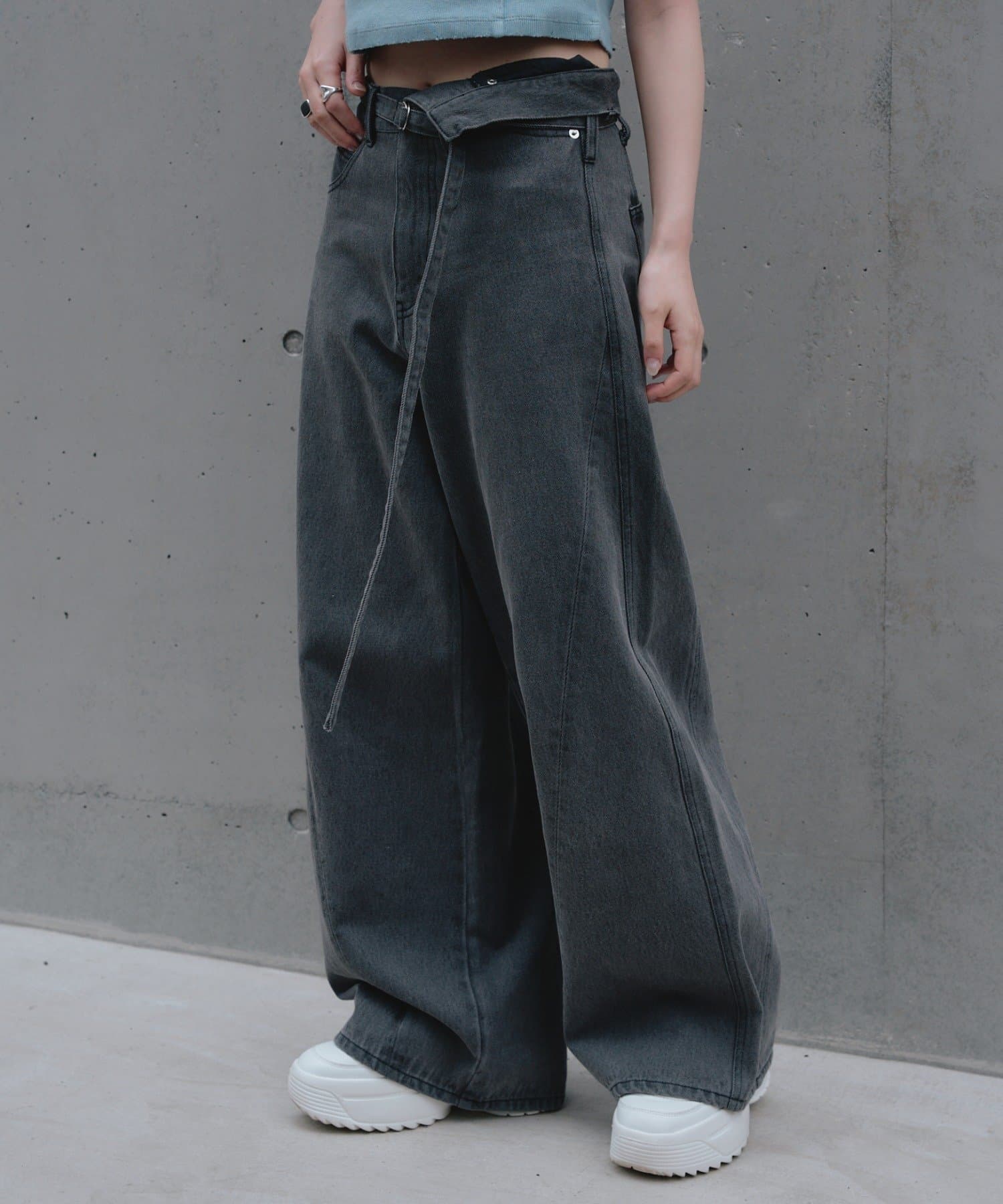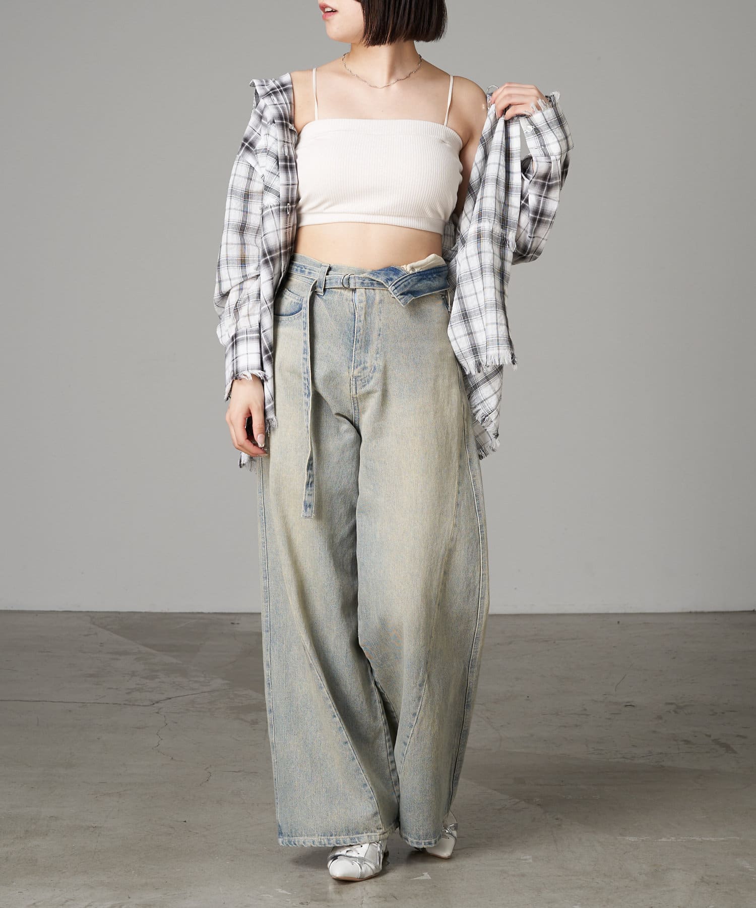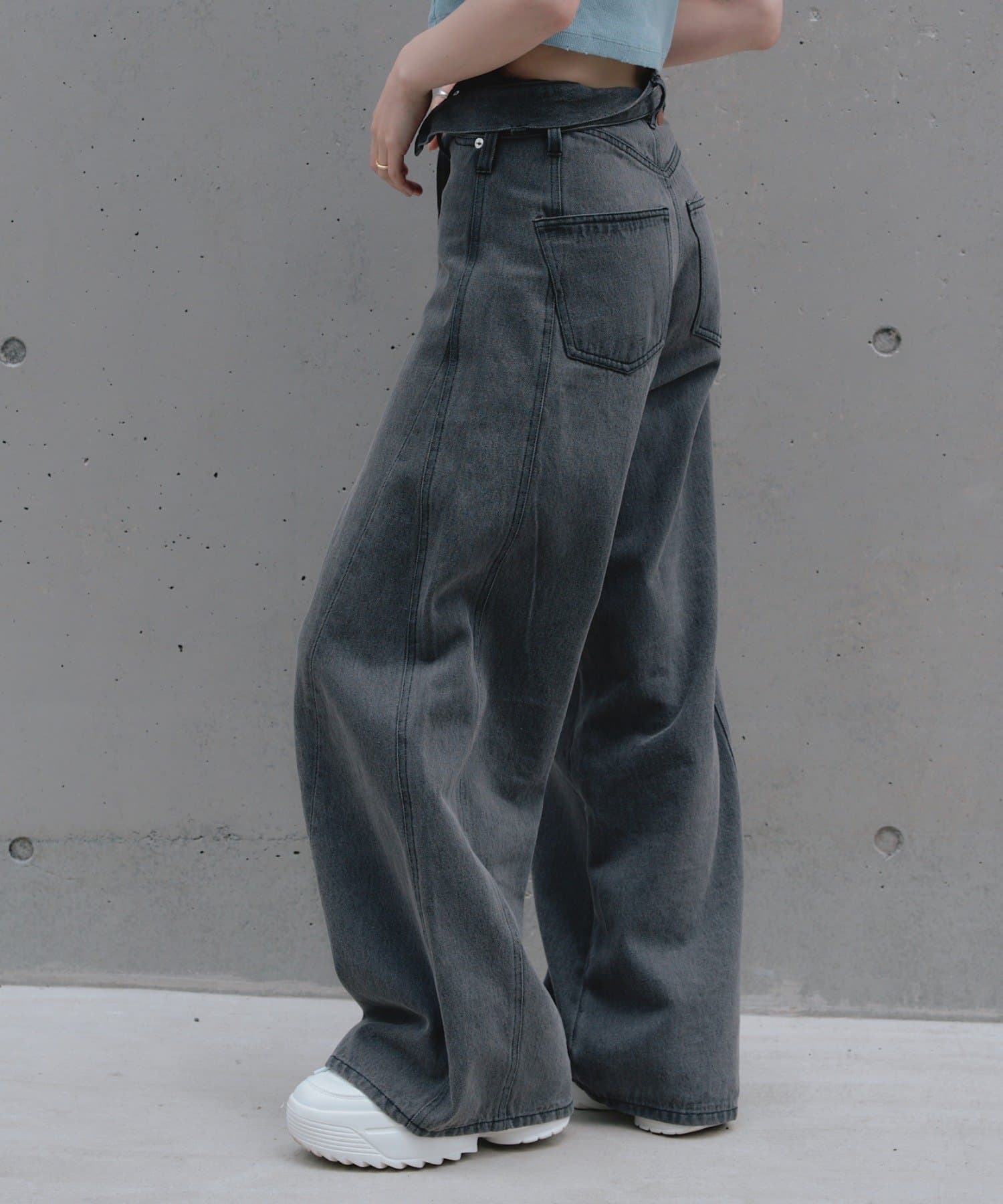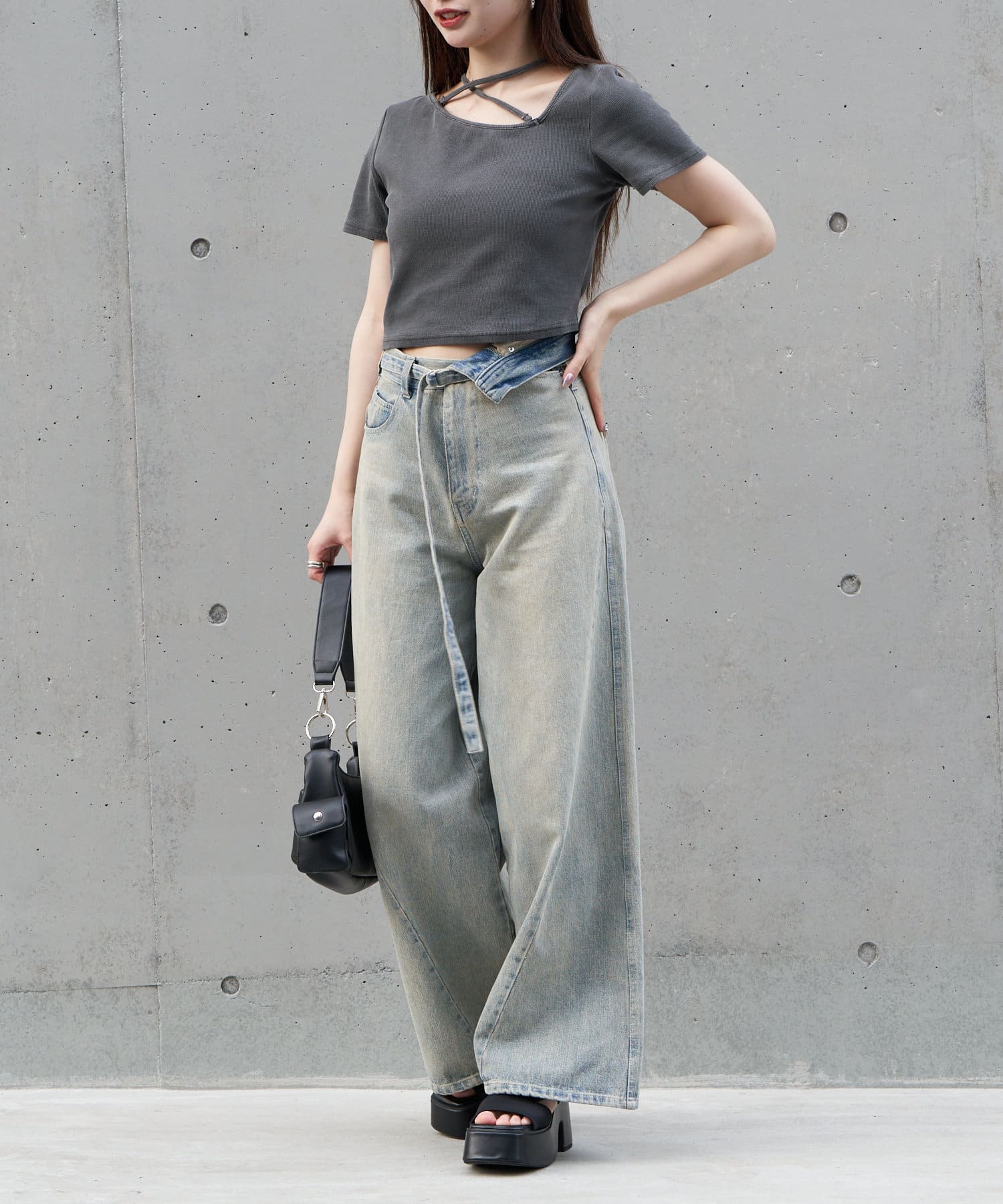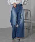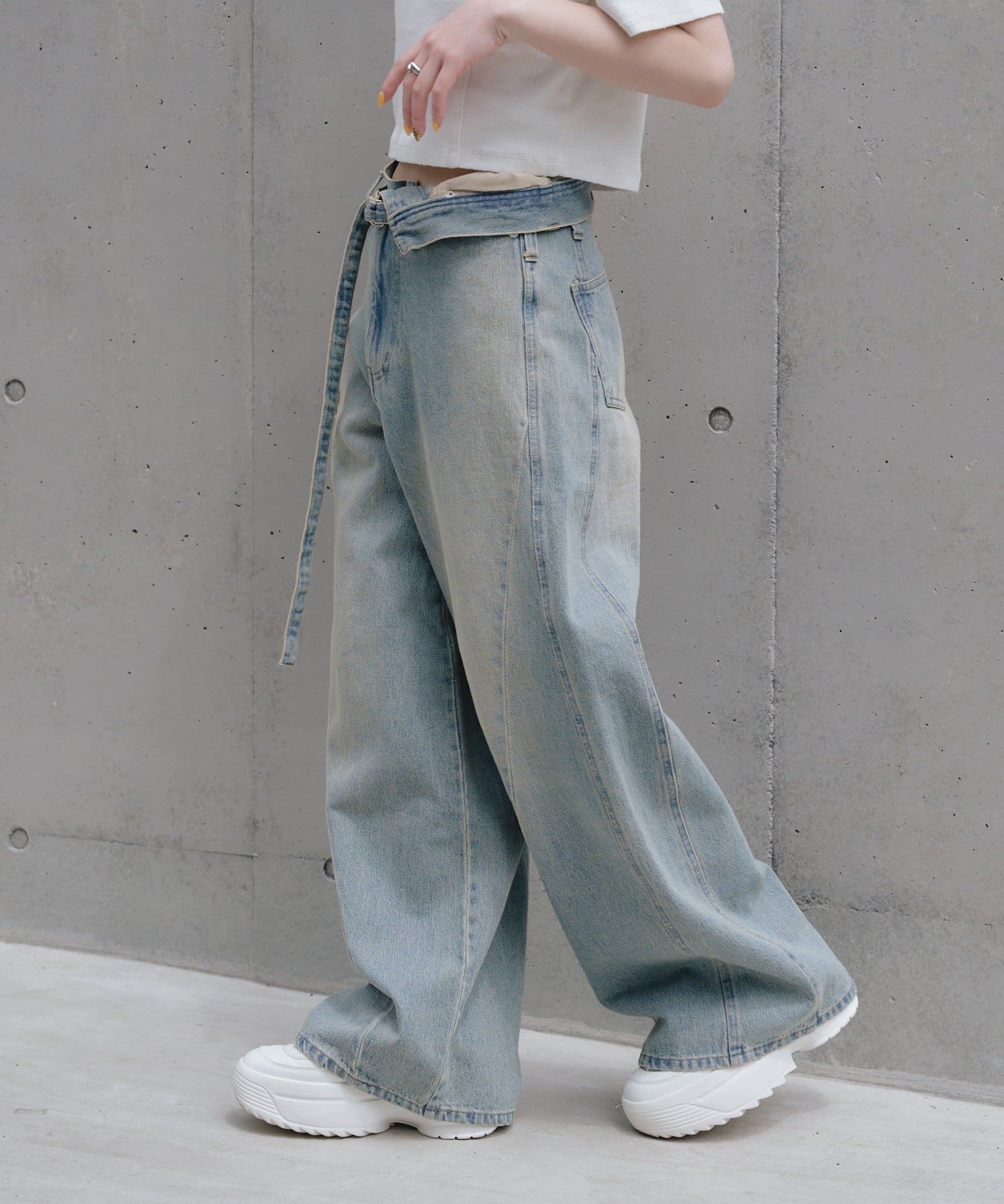 【RAY CASSIN】ウエスト折り返しワイドデニムパンツ