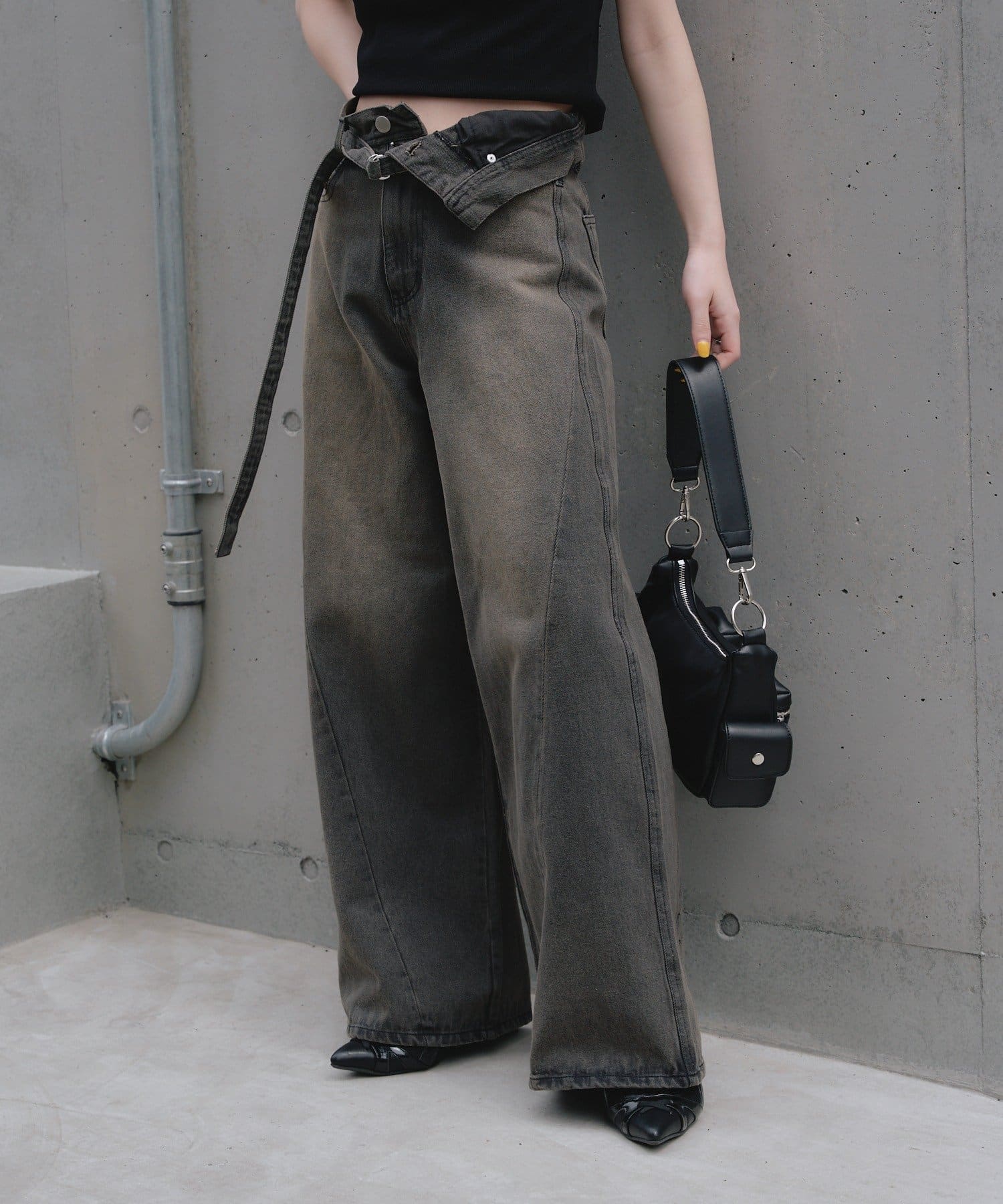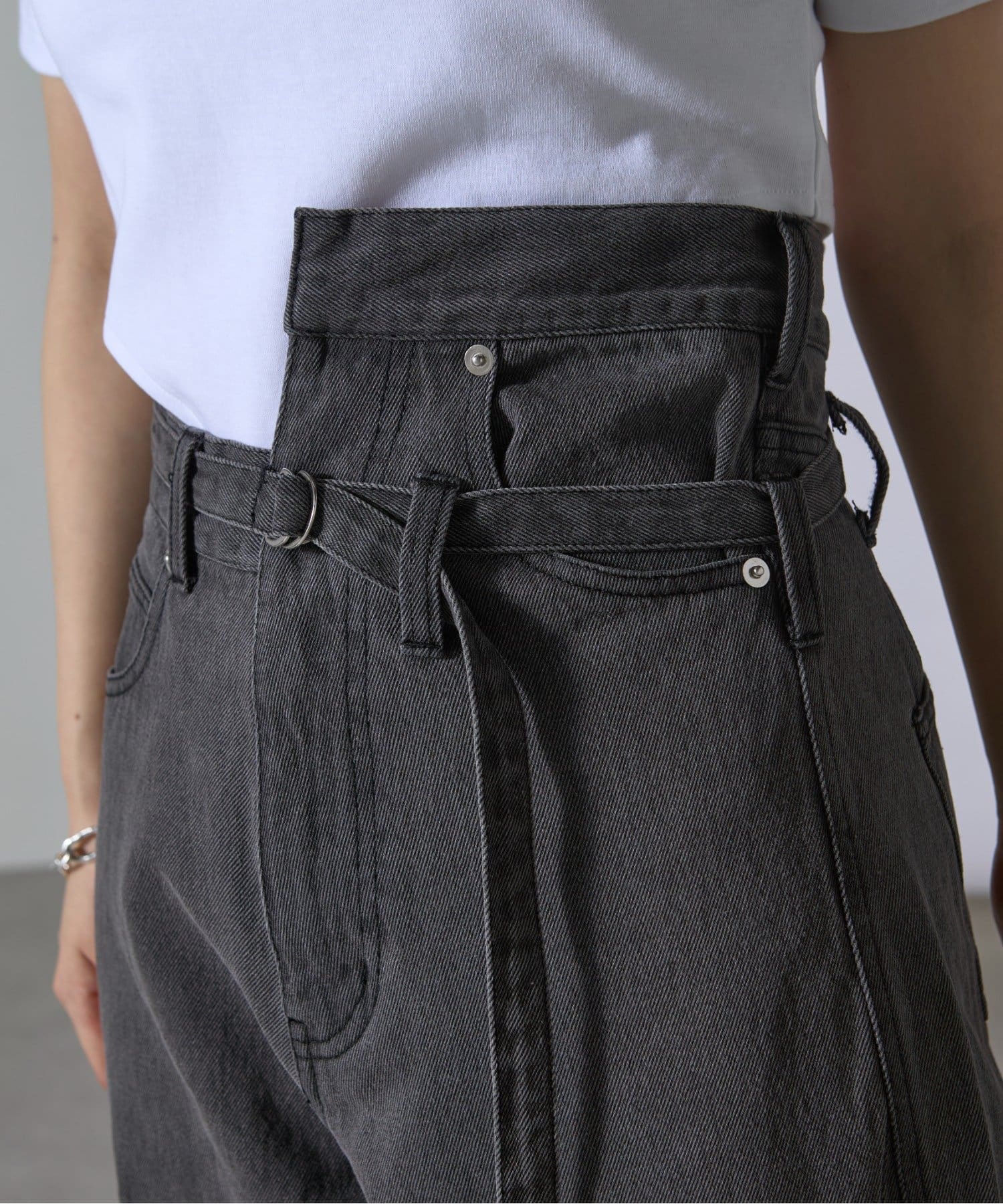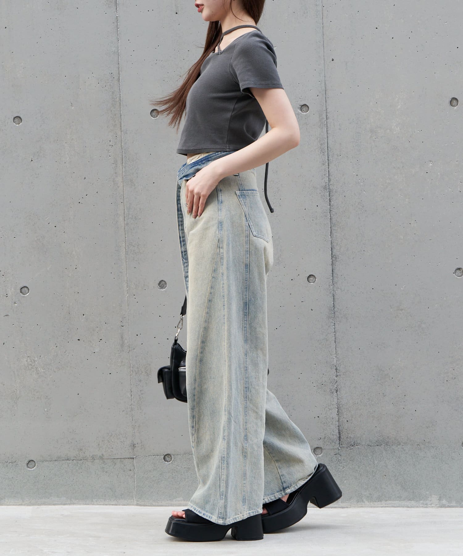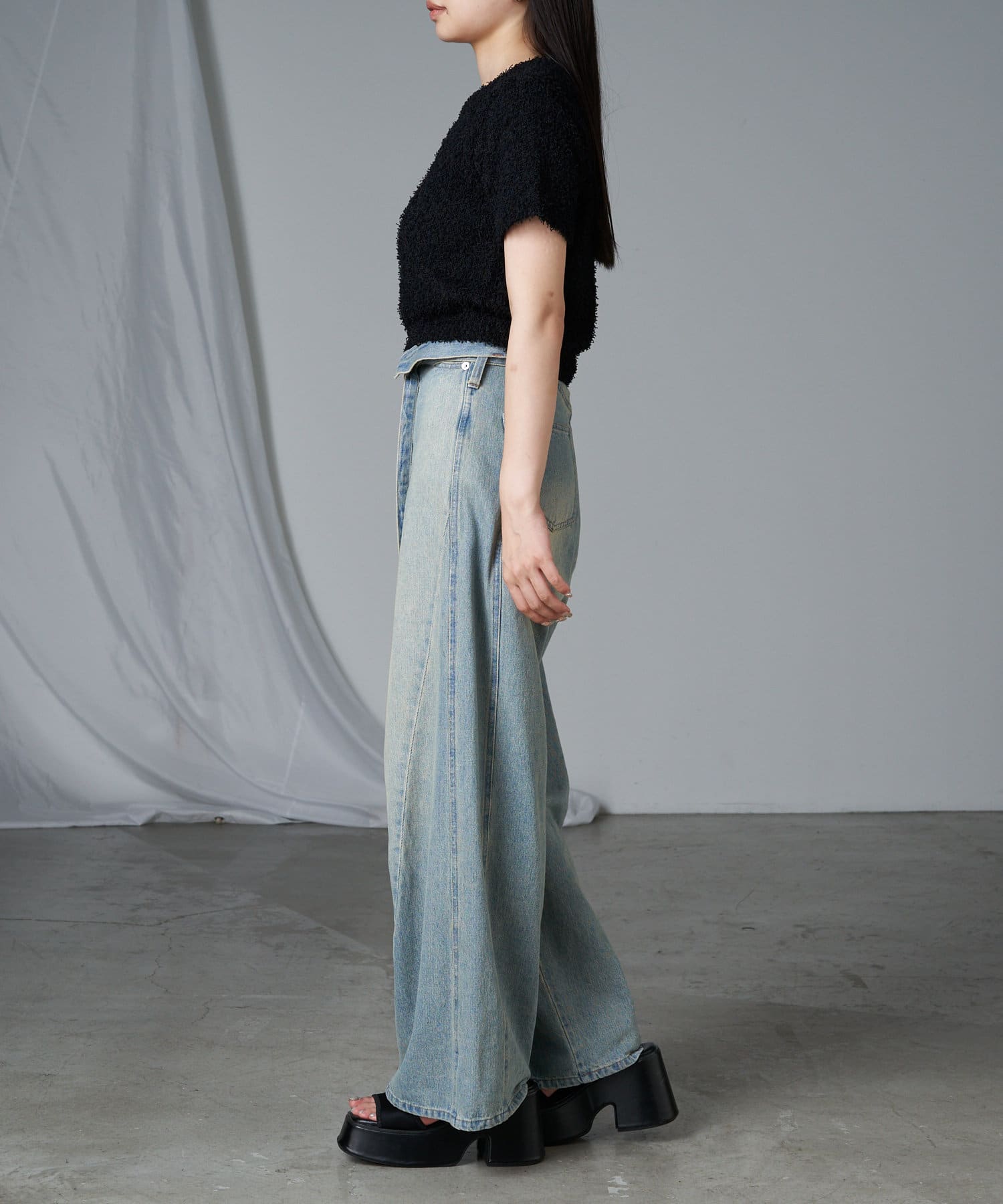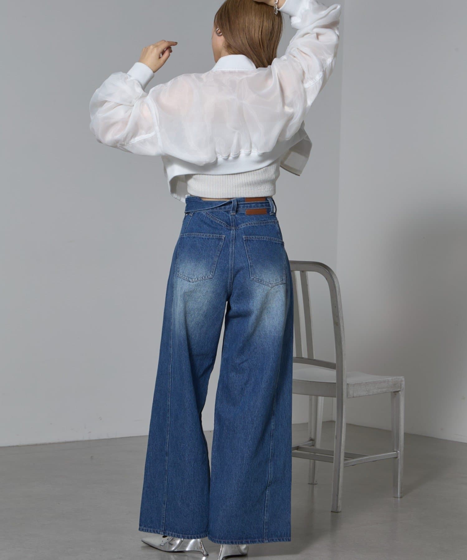 【RAY CASSIN】ウエスト折り返しワイドデニムパンツ