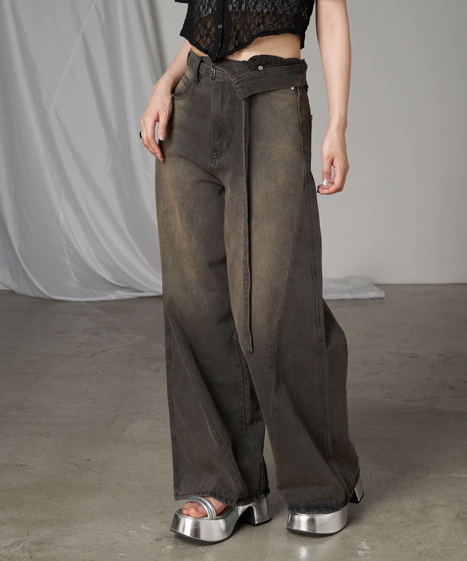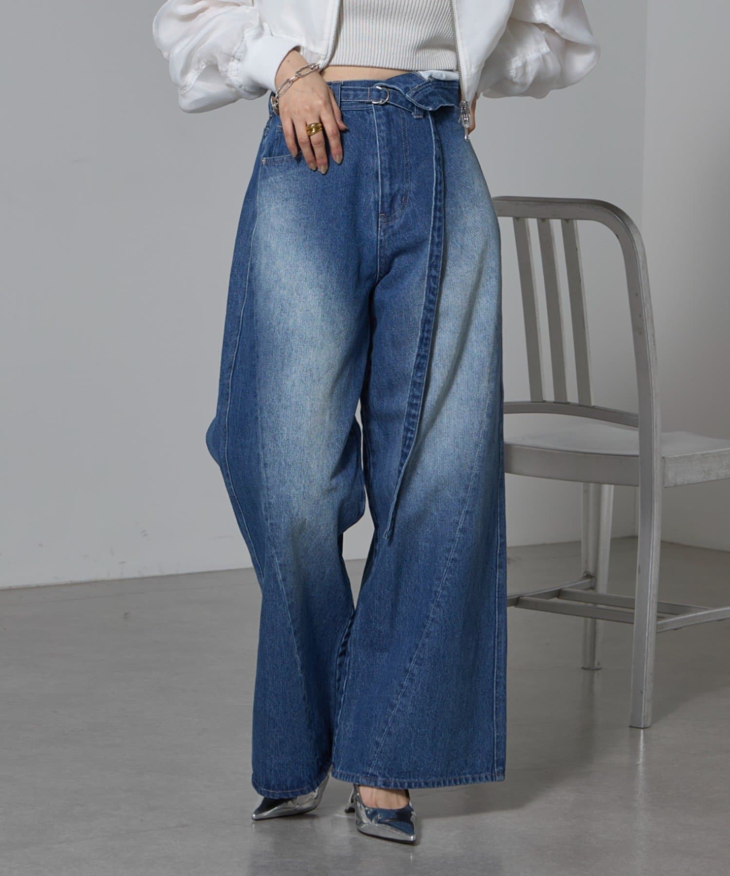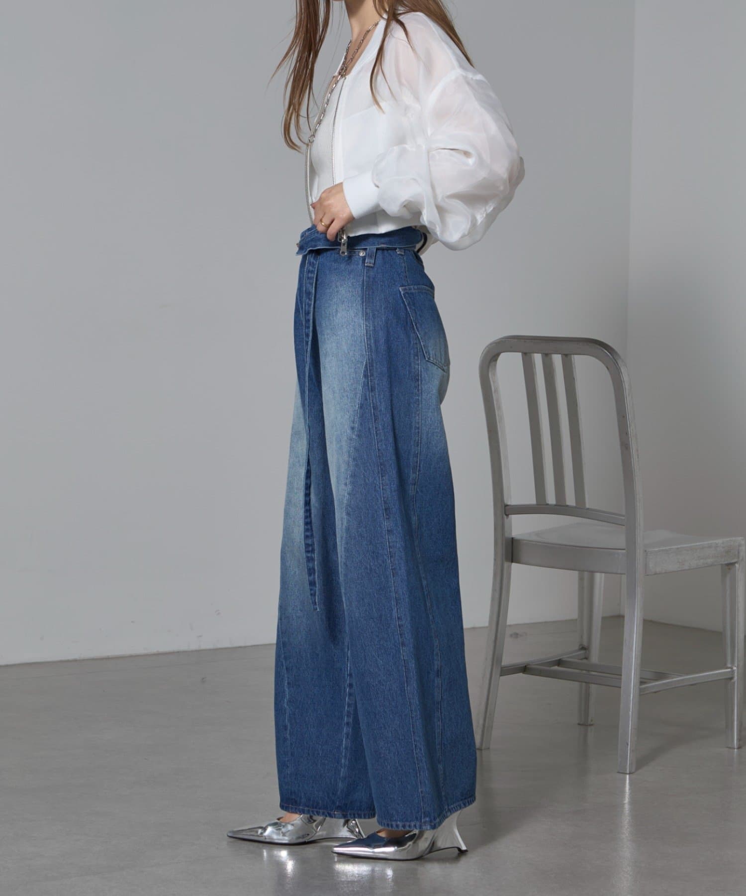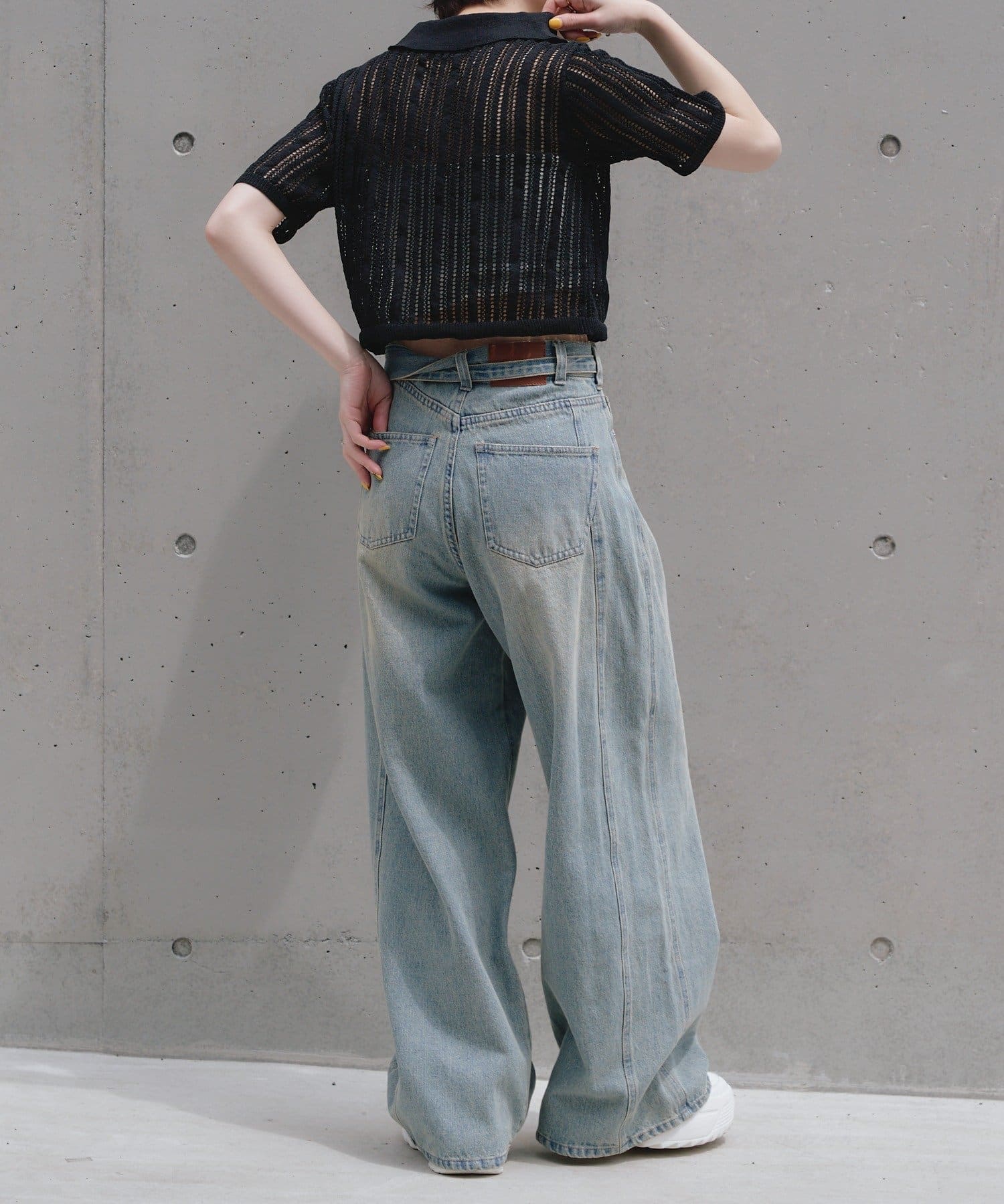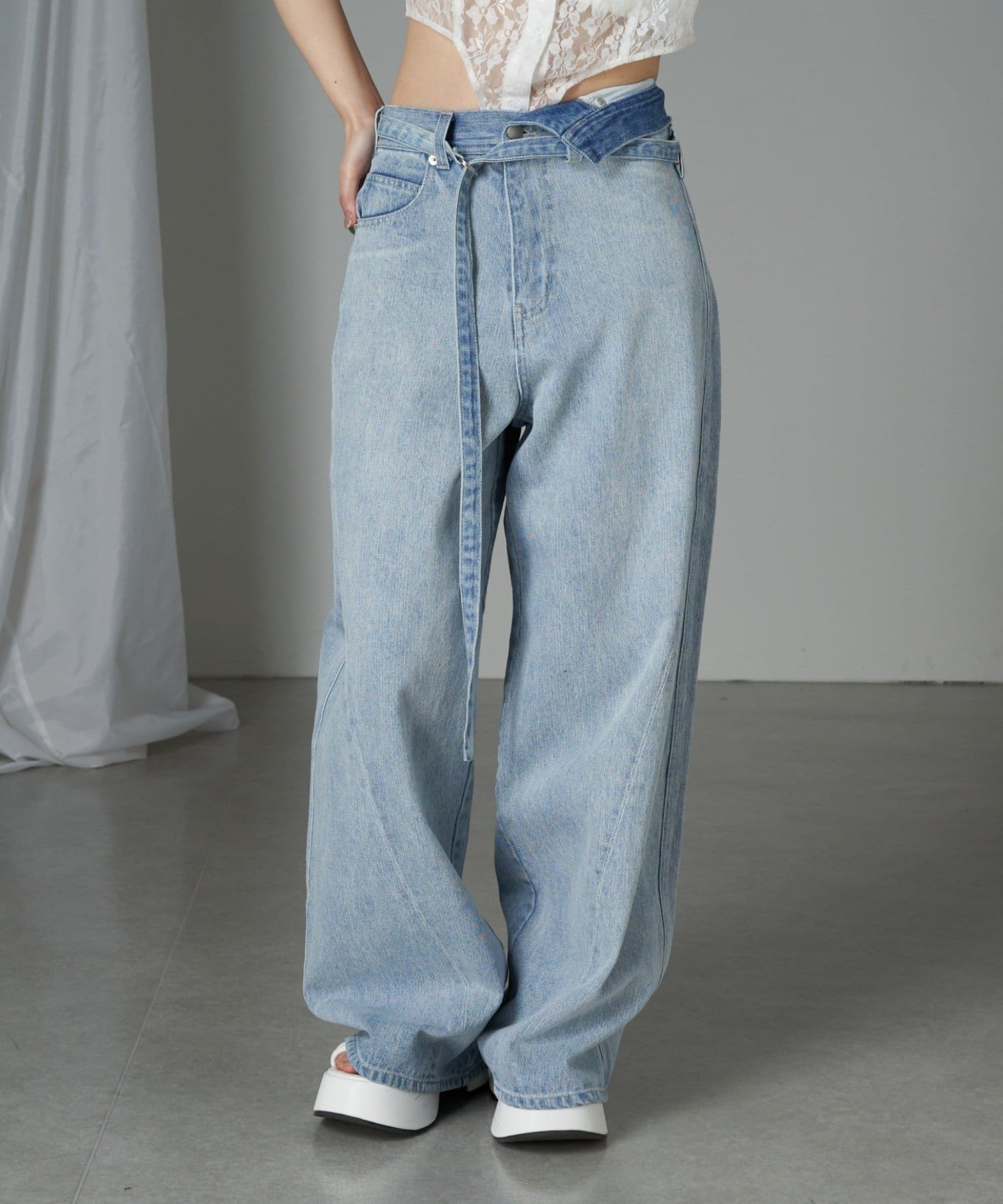 【RAY CASSIN】ウエスト折り返しワイドデニムパンツ
