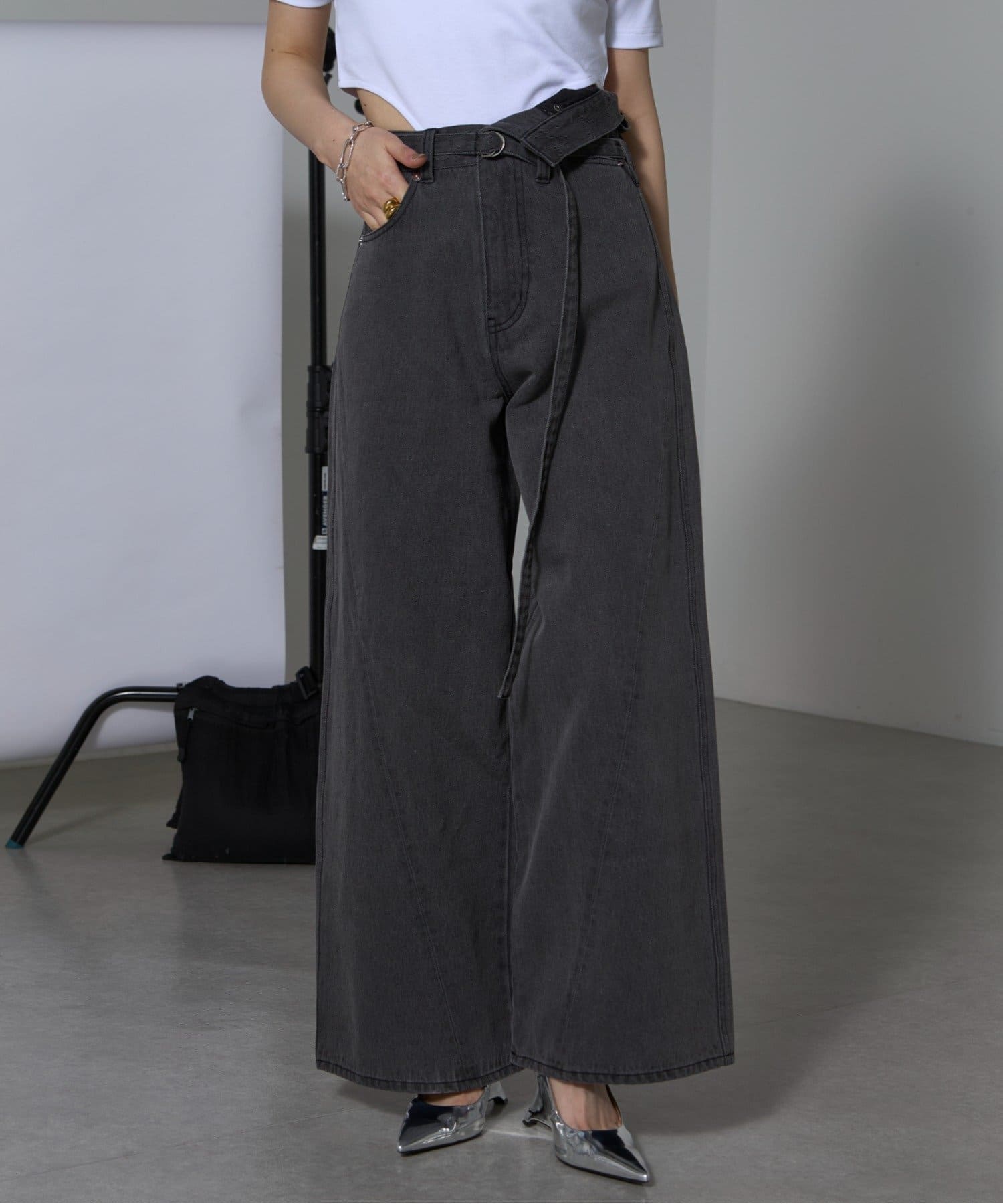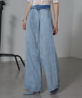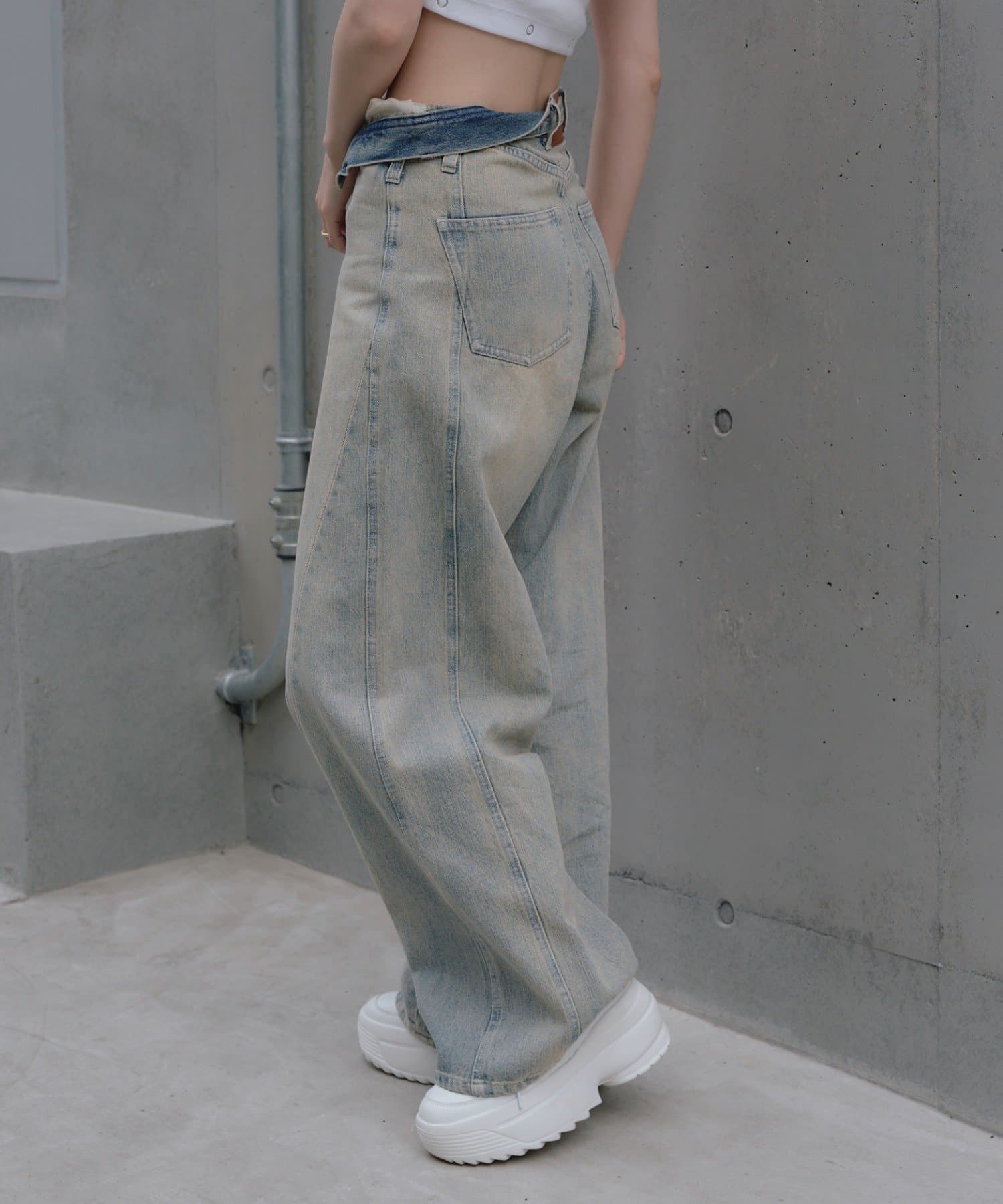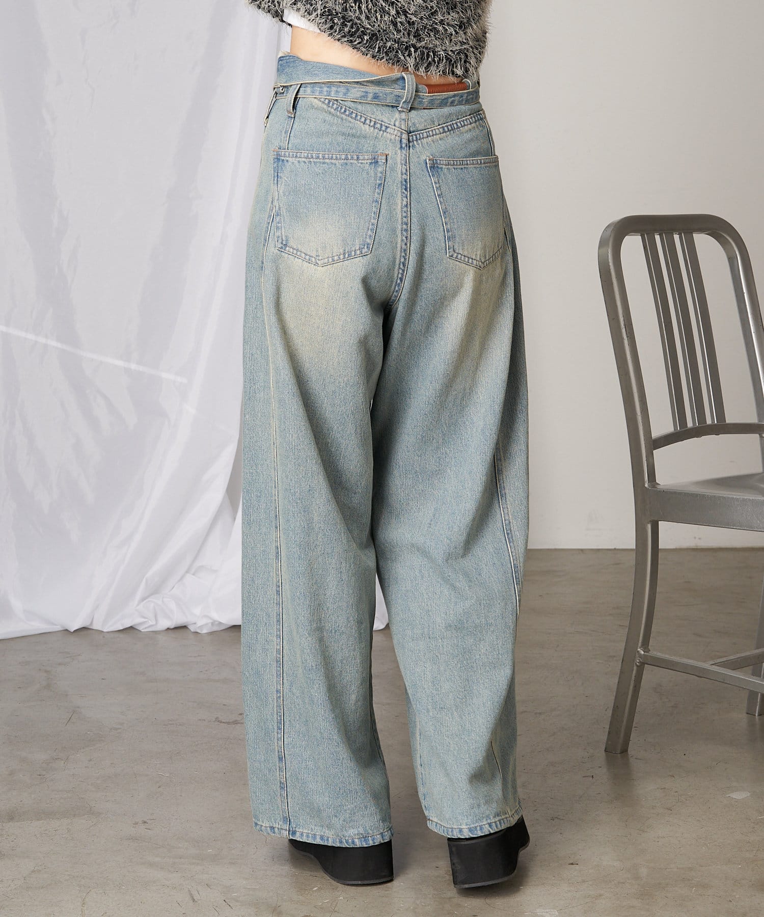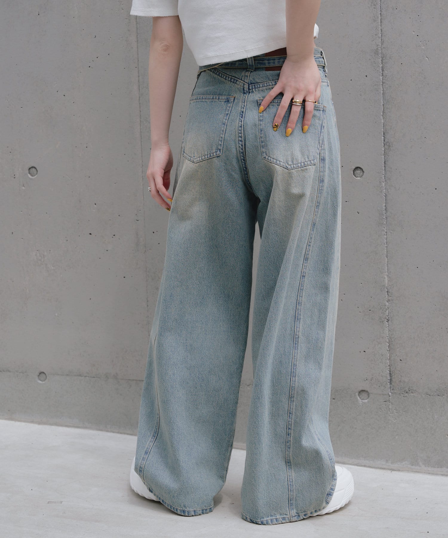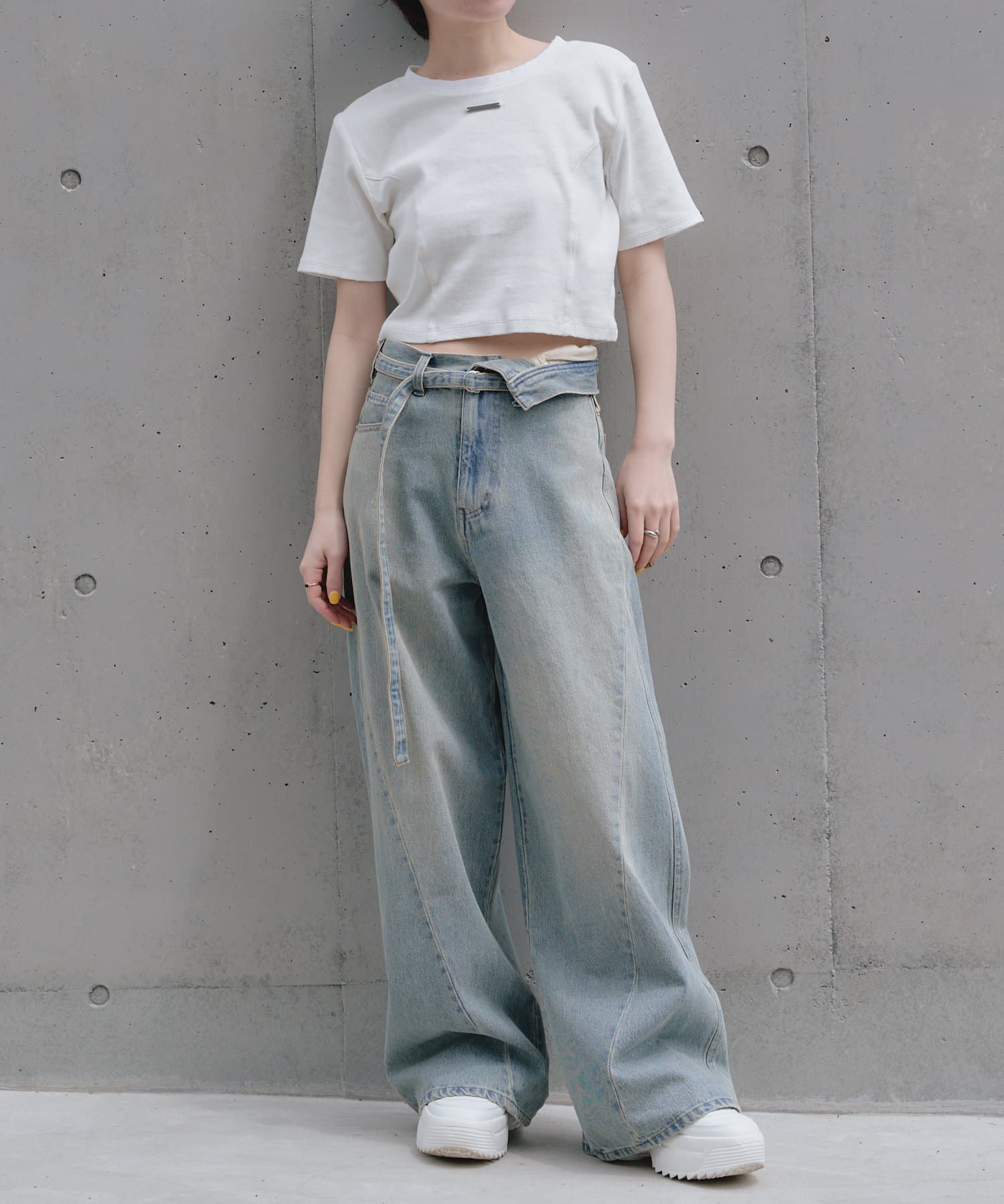 【RAY CASSIN】ウエスト折り返しワイドデニムパンツ