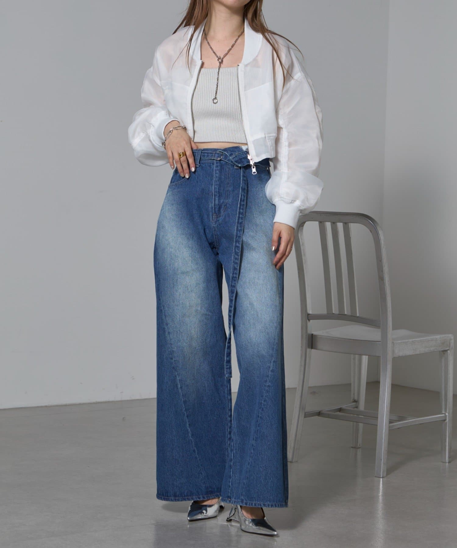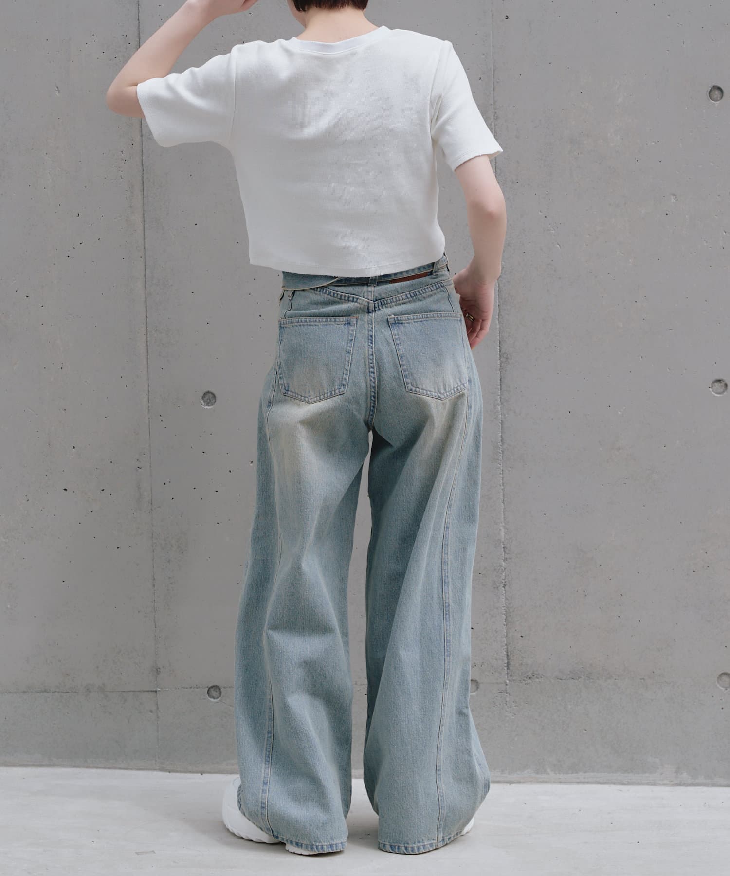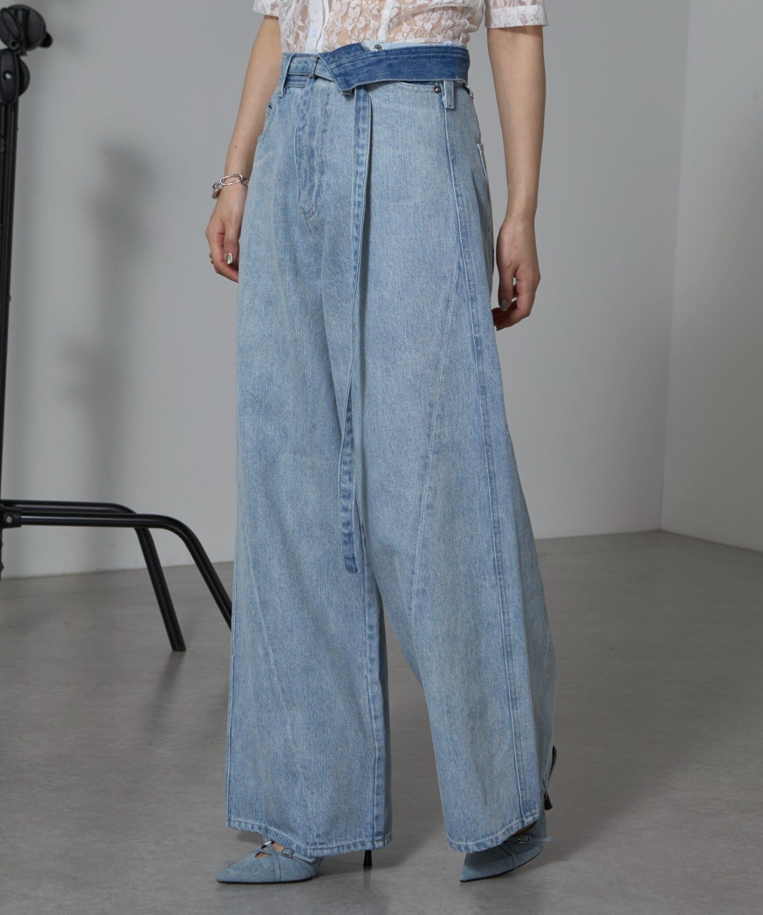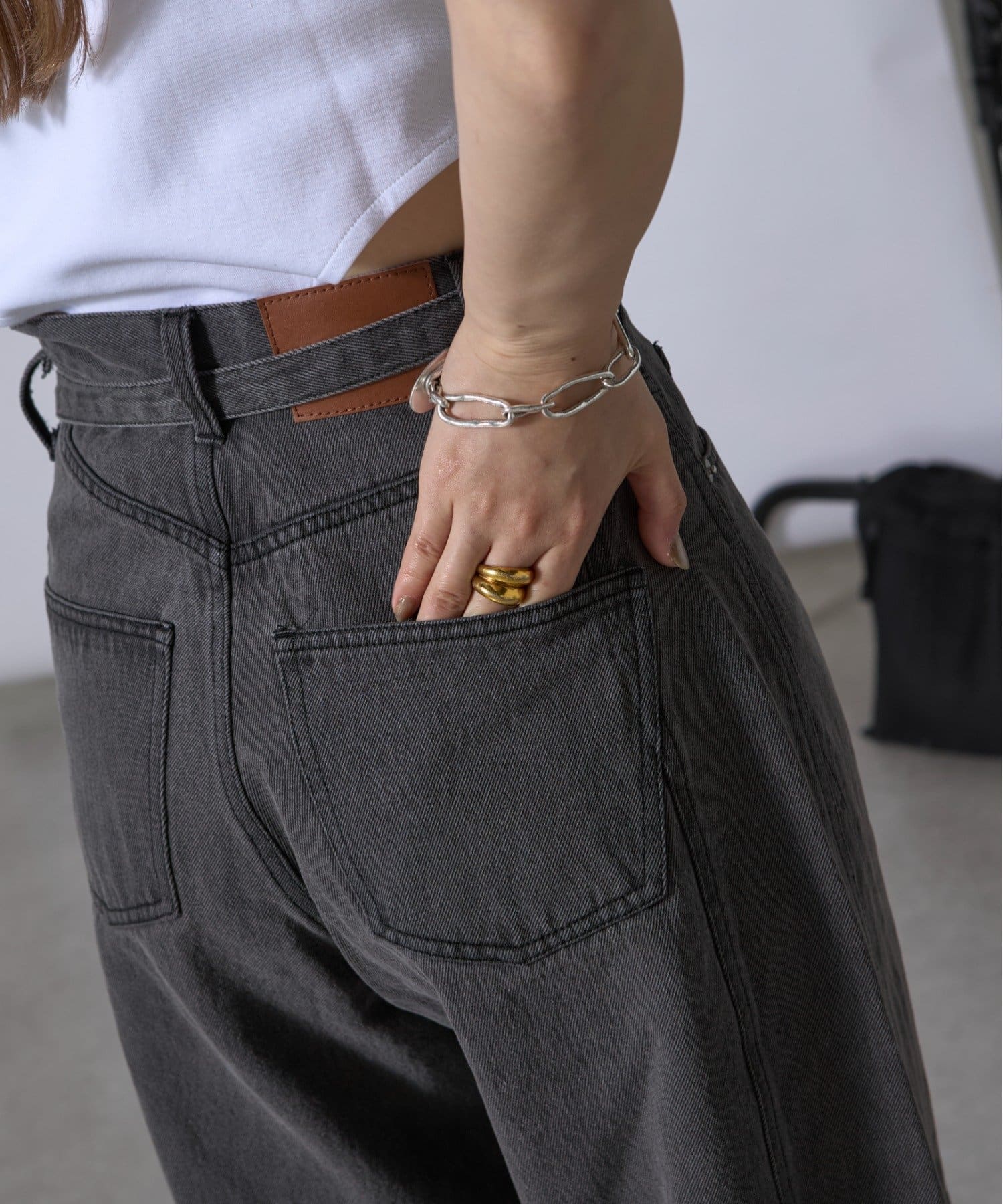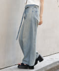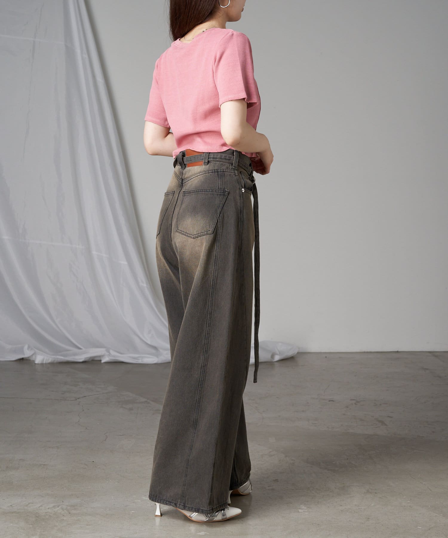 【RAY CASSIN】ウエスト折り返しワイドデニムパンツ