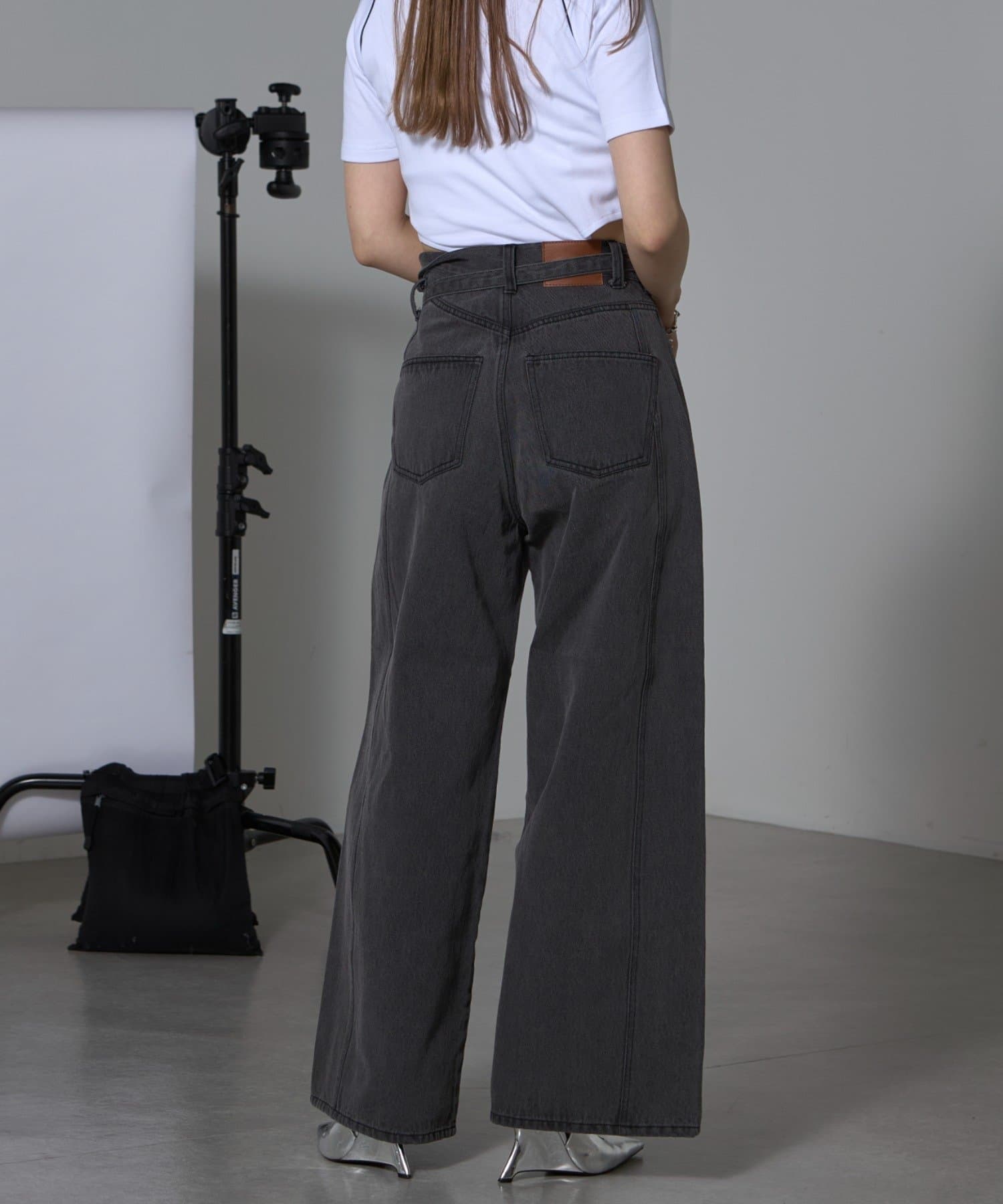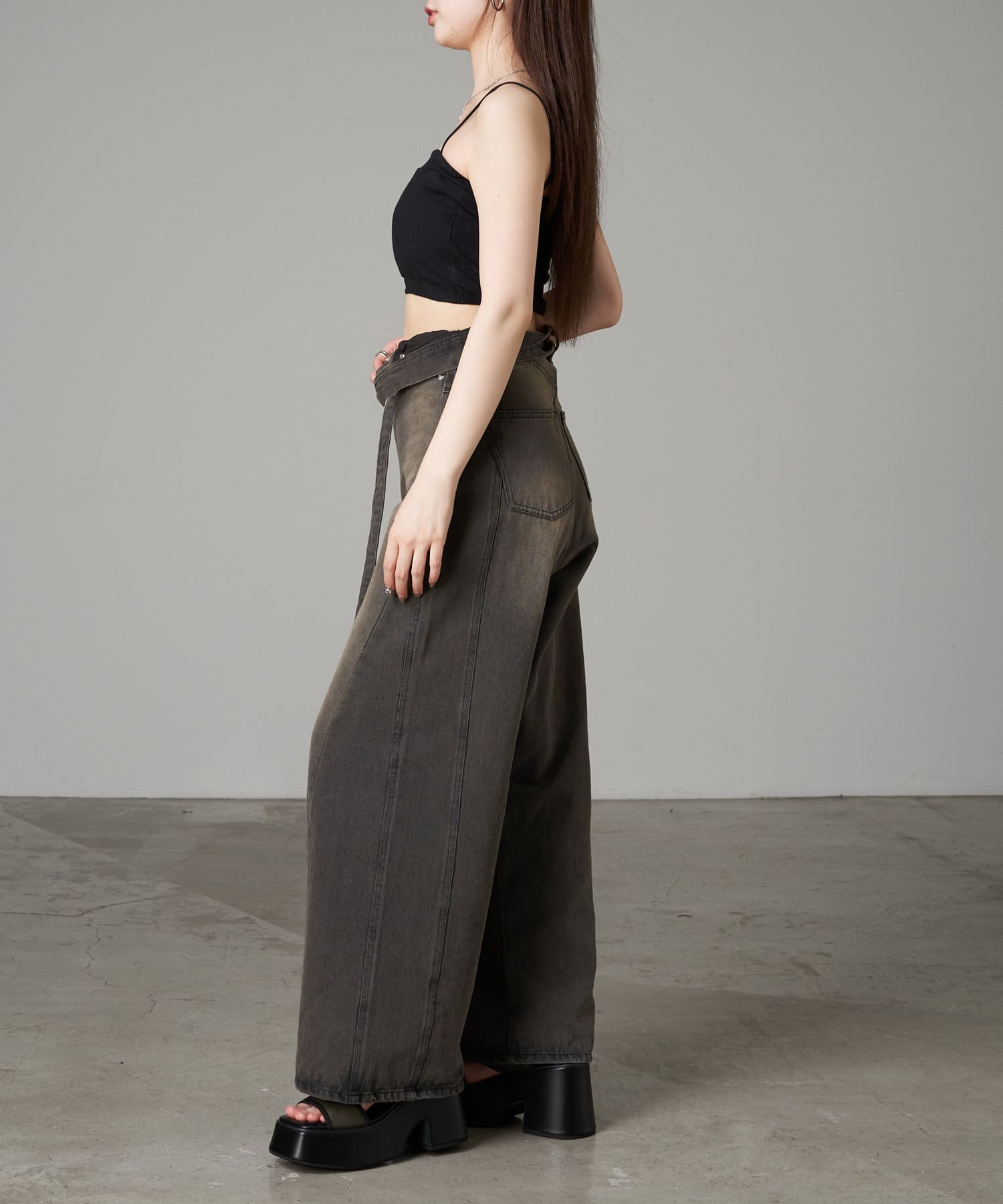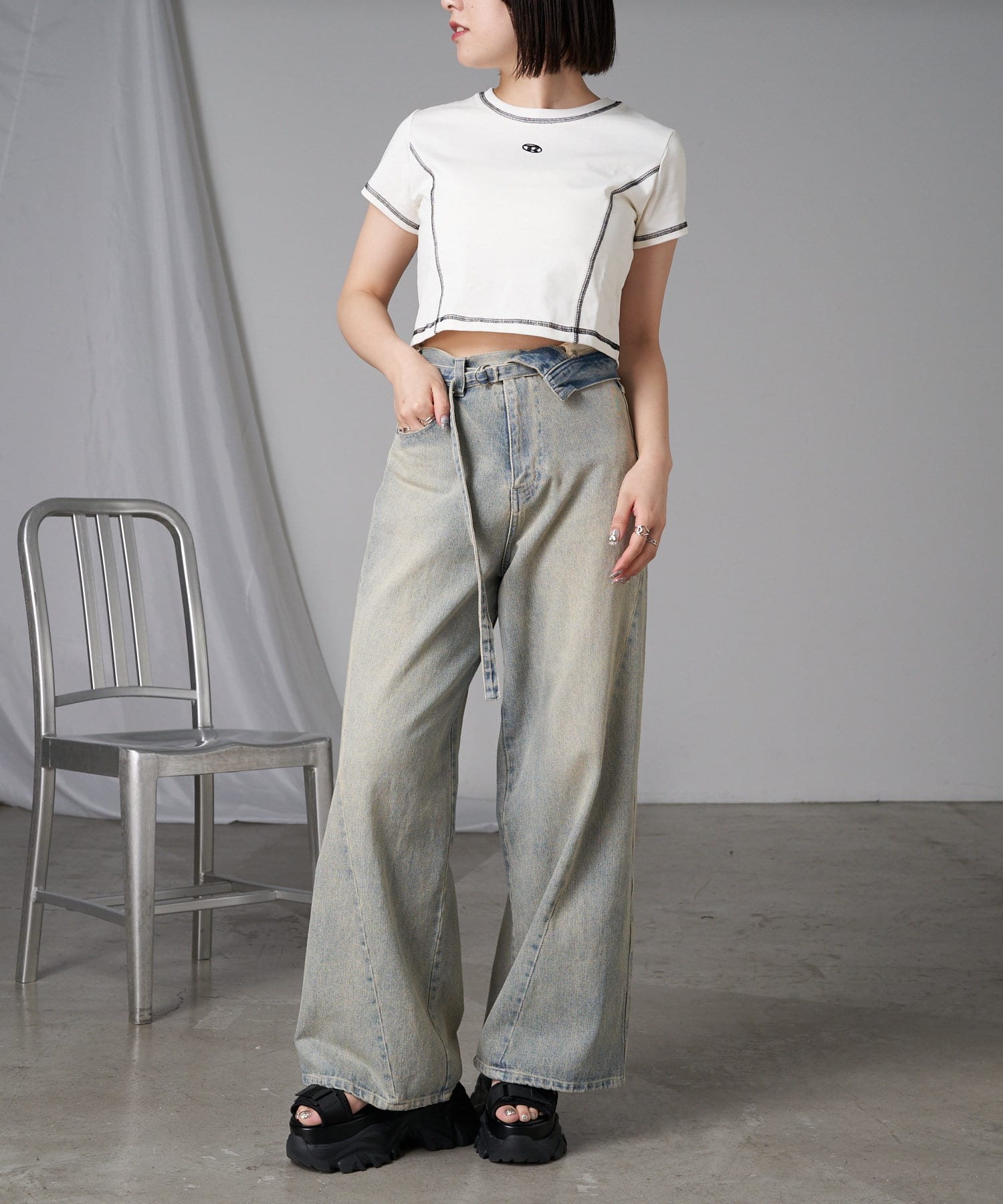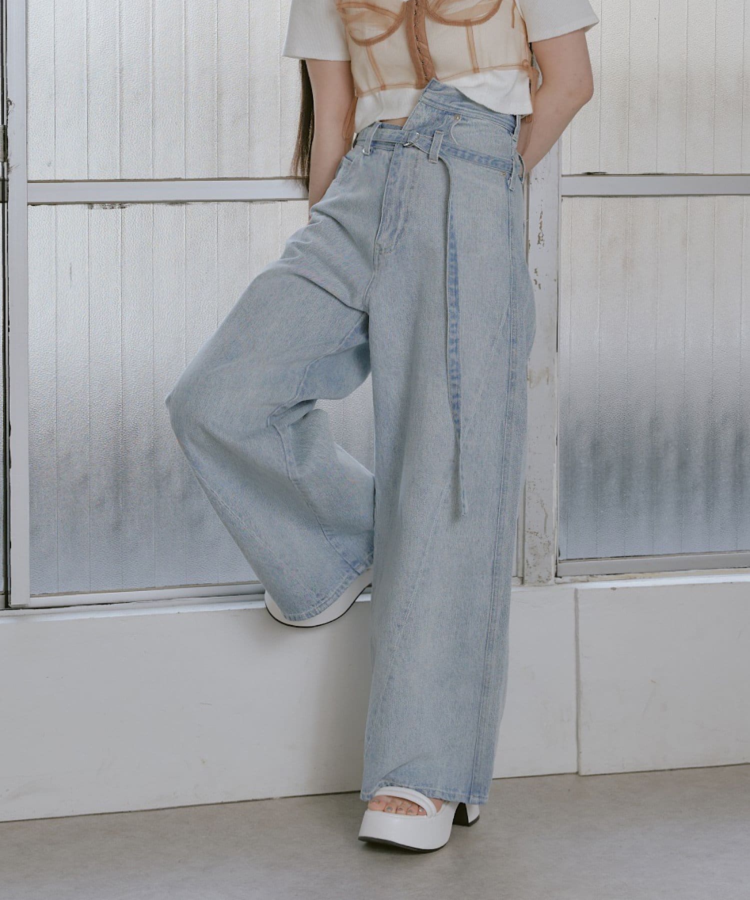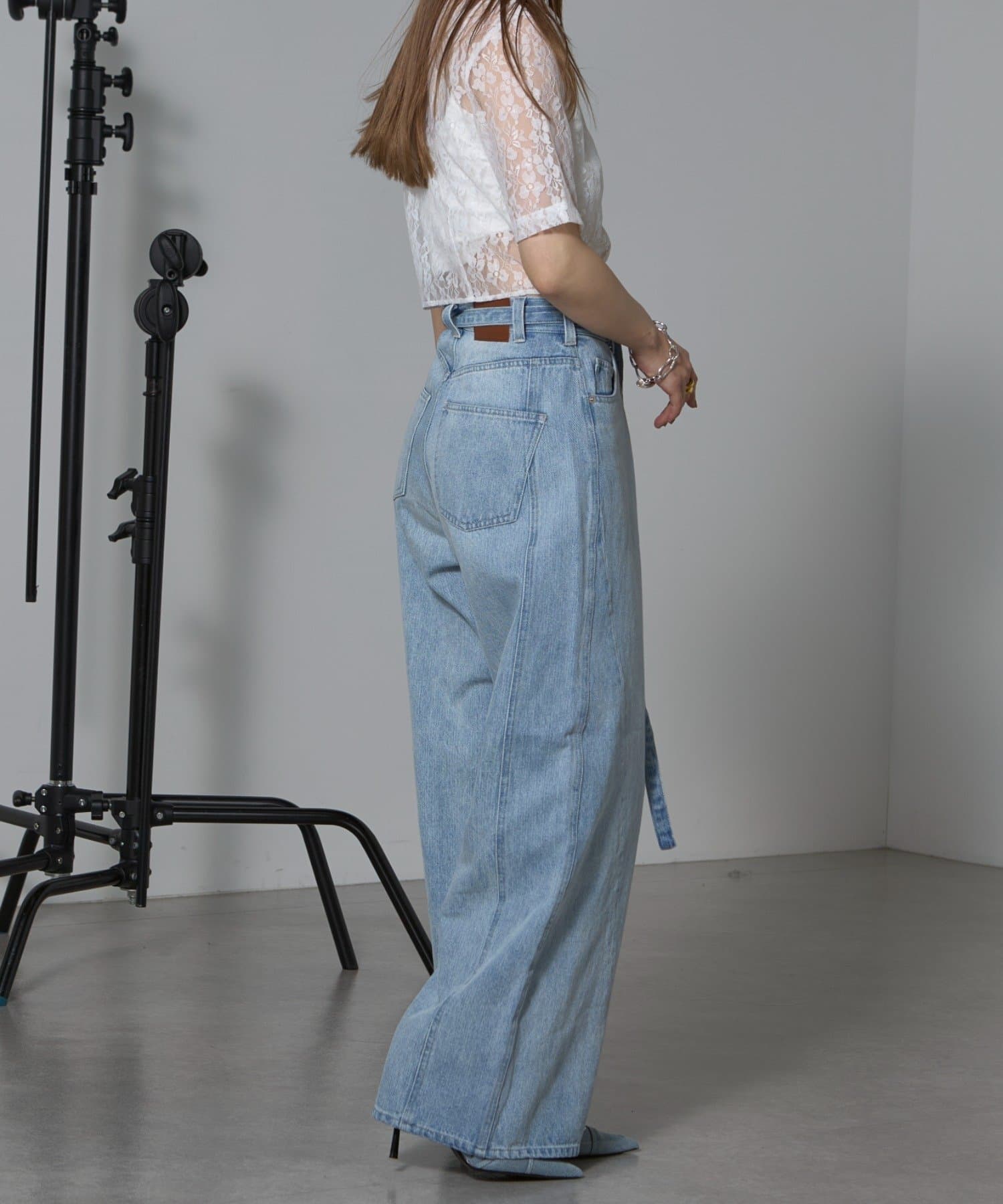 【RAY CASSIN】ウエスト折り返しワイドデニムパンツ