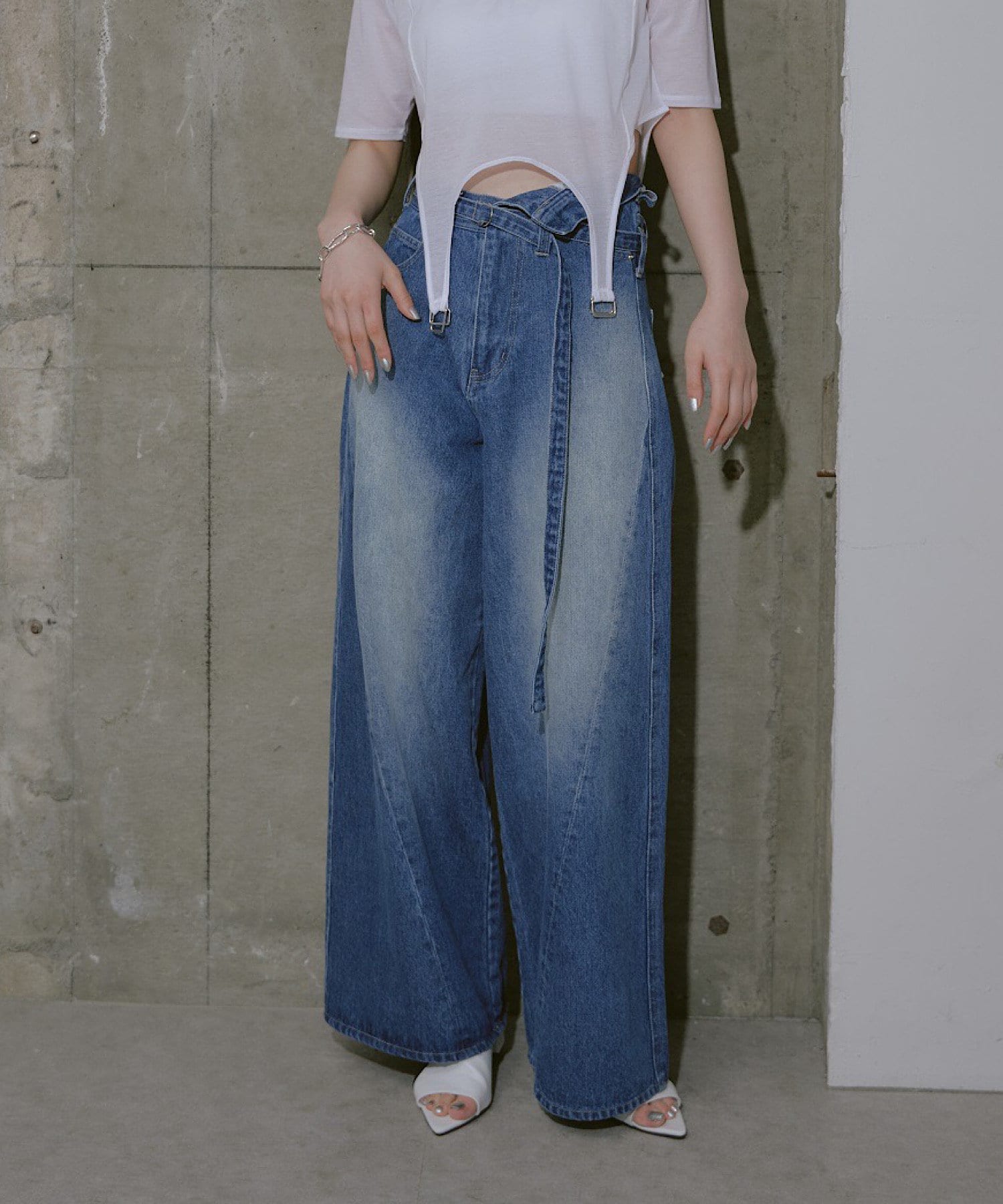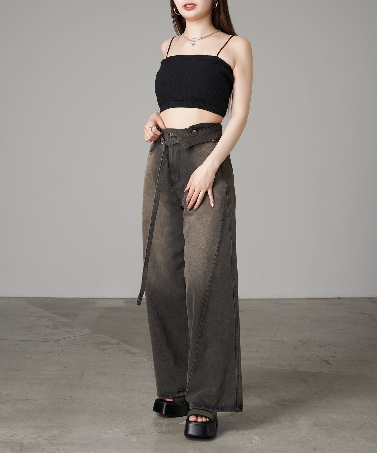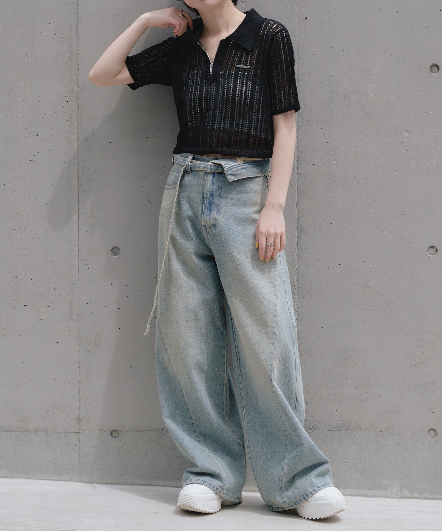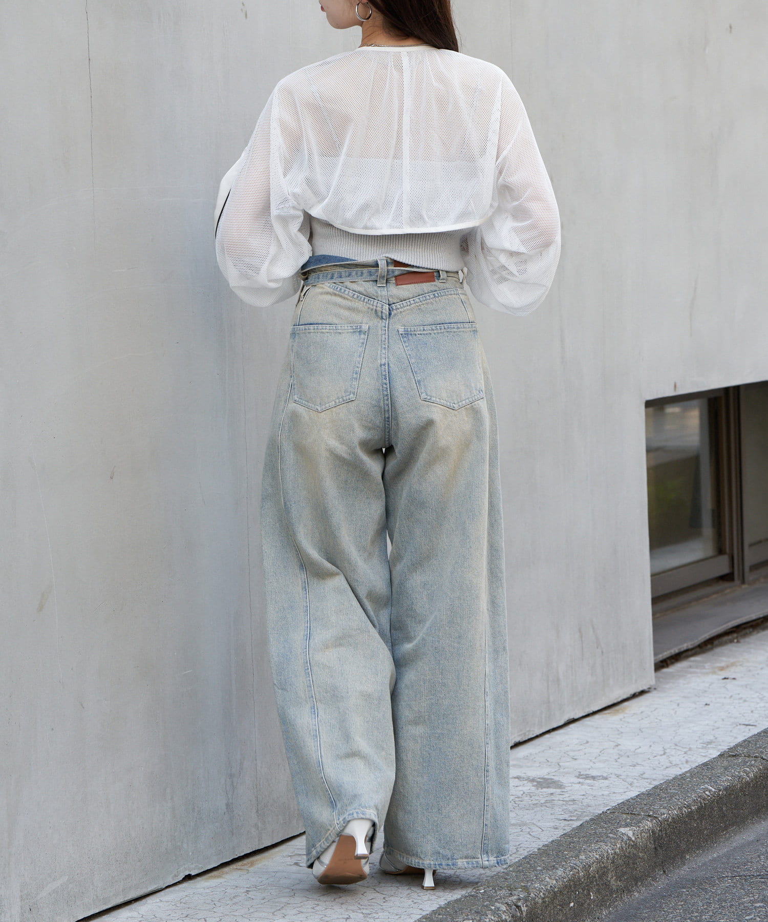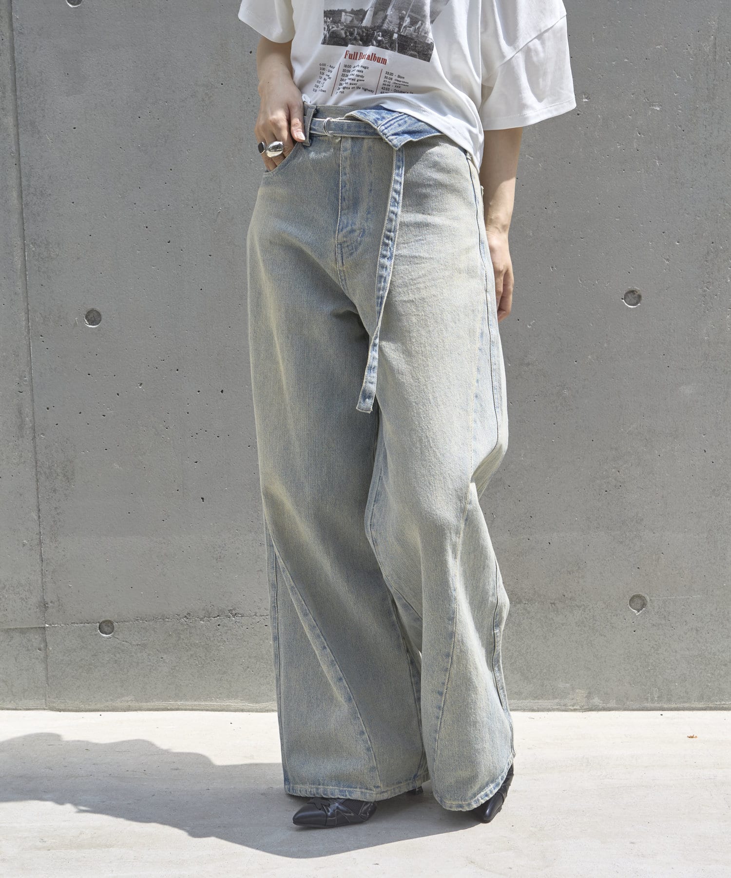 【RAY CASSIN】ウエスト折り返しワイドデニムパンツ