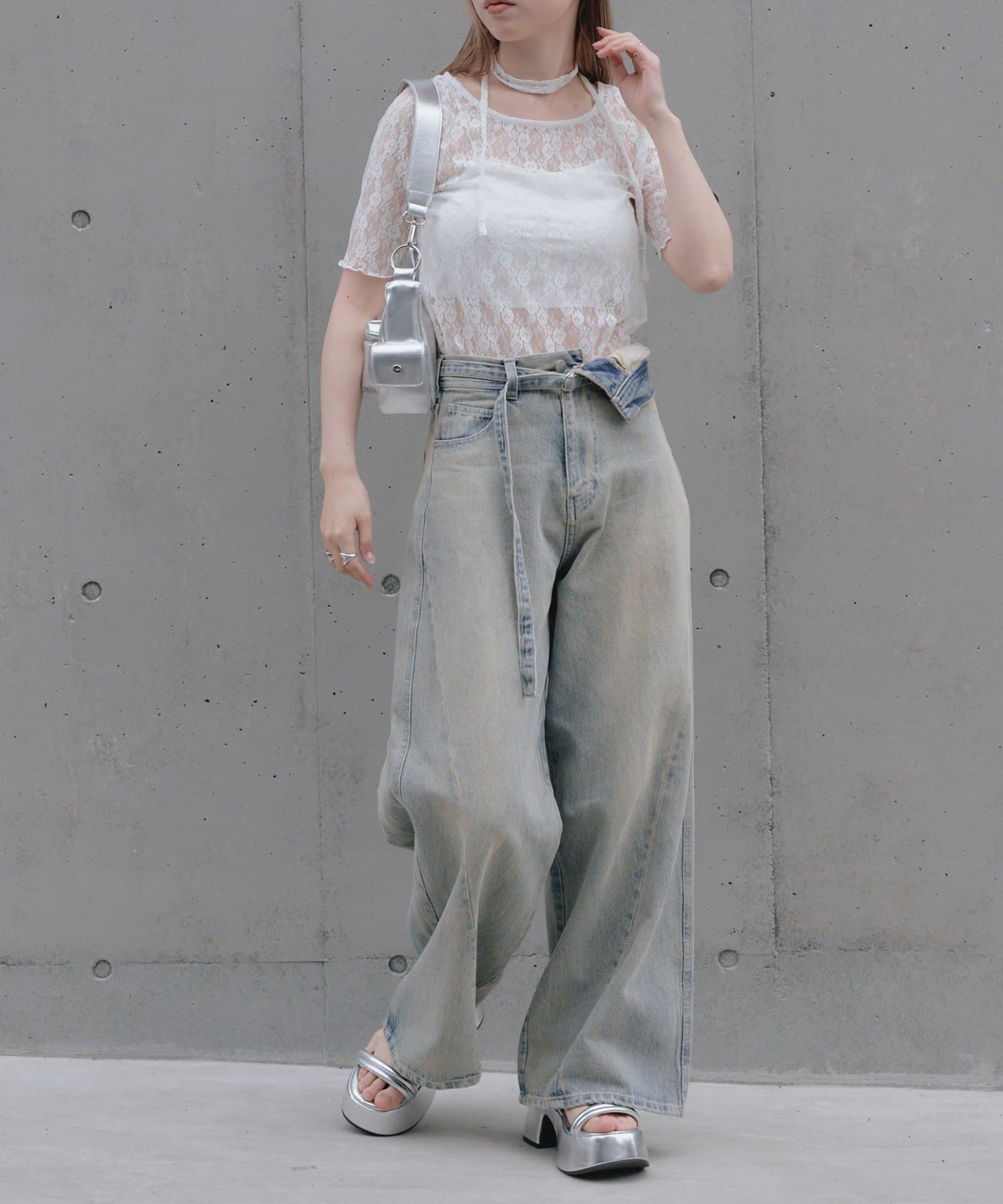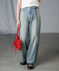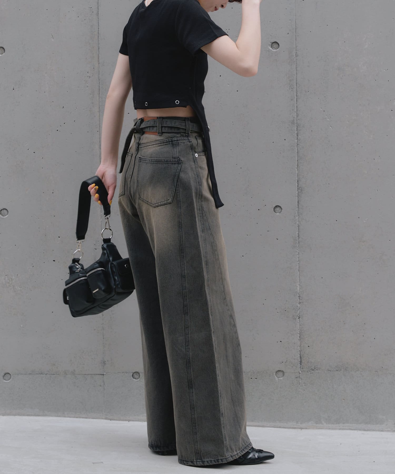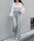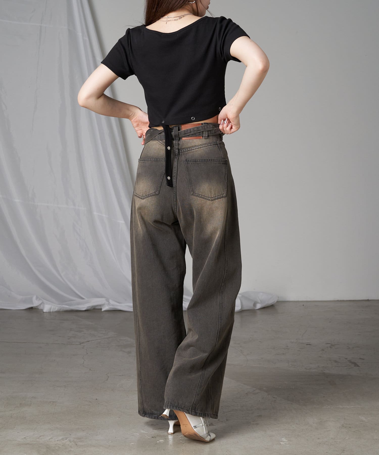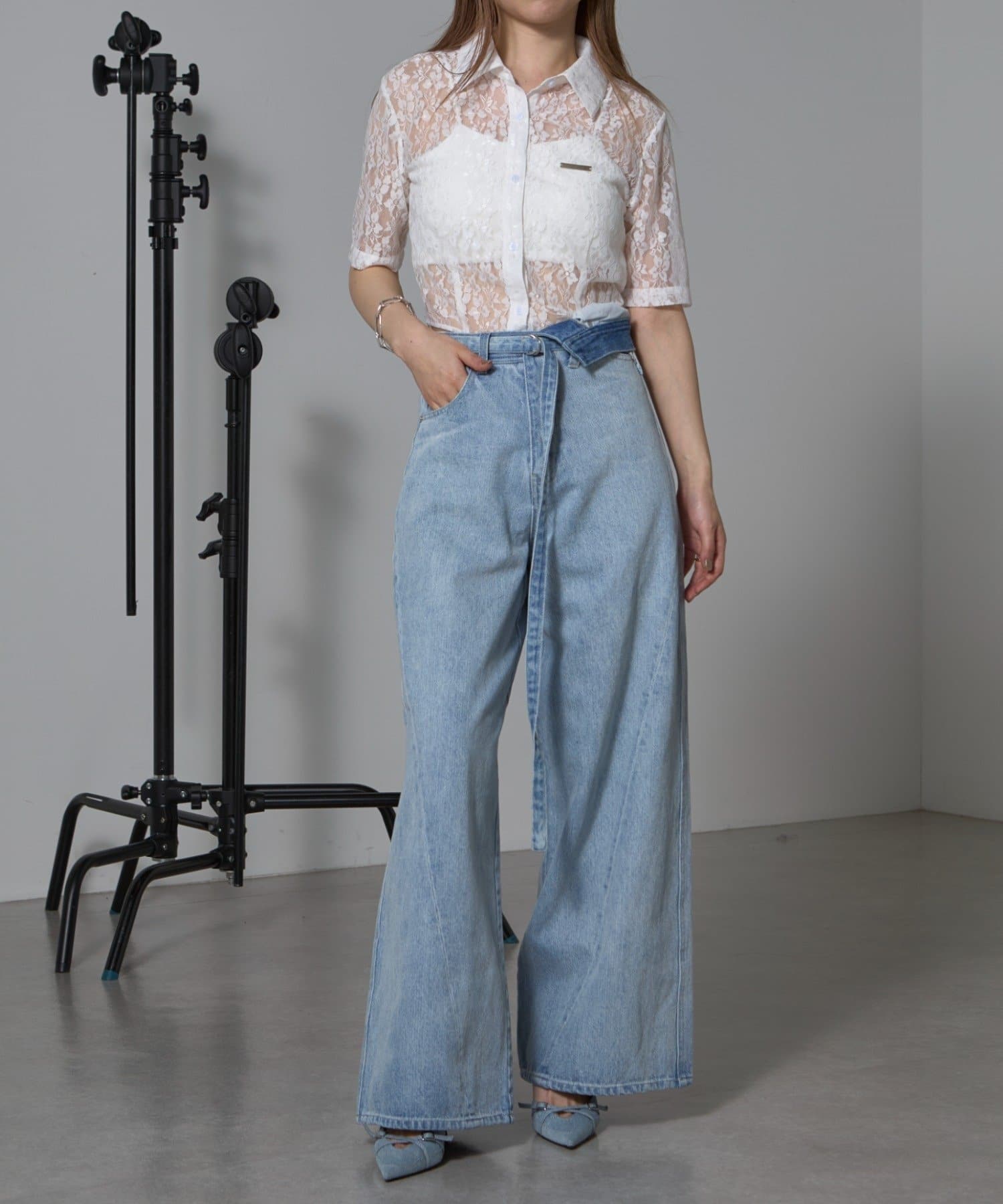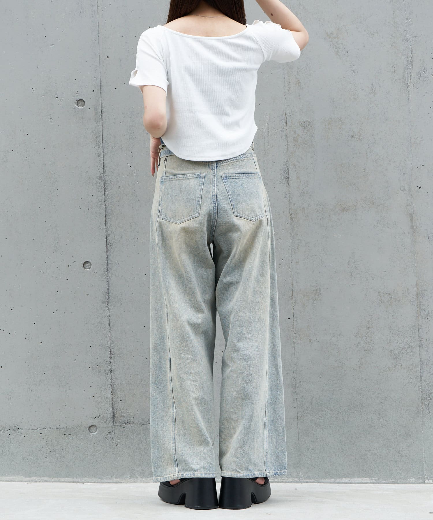 【RAY CASSIN】ウエスト折り返しワイドデニムパンツ