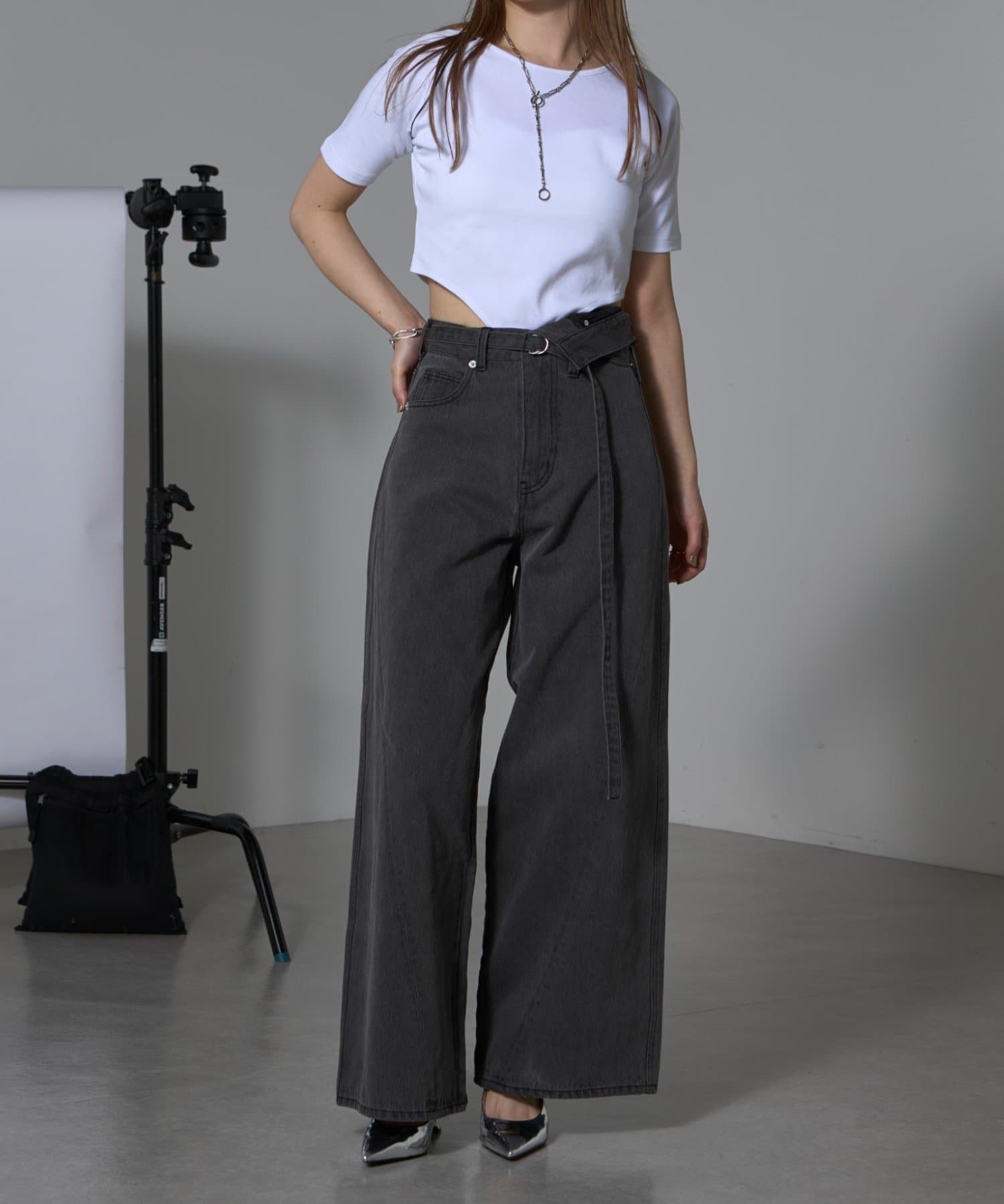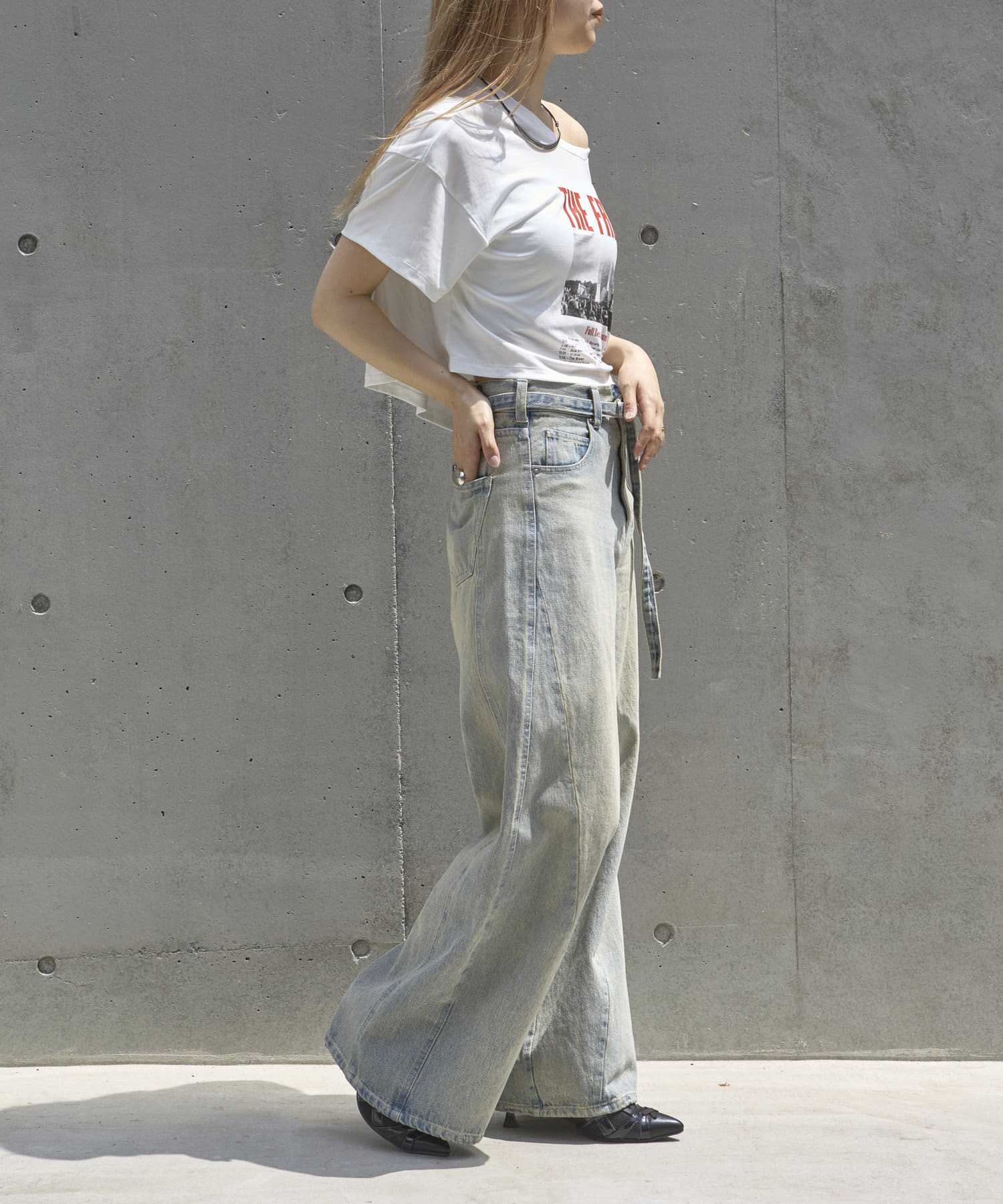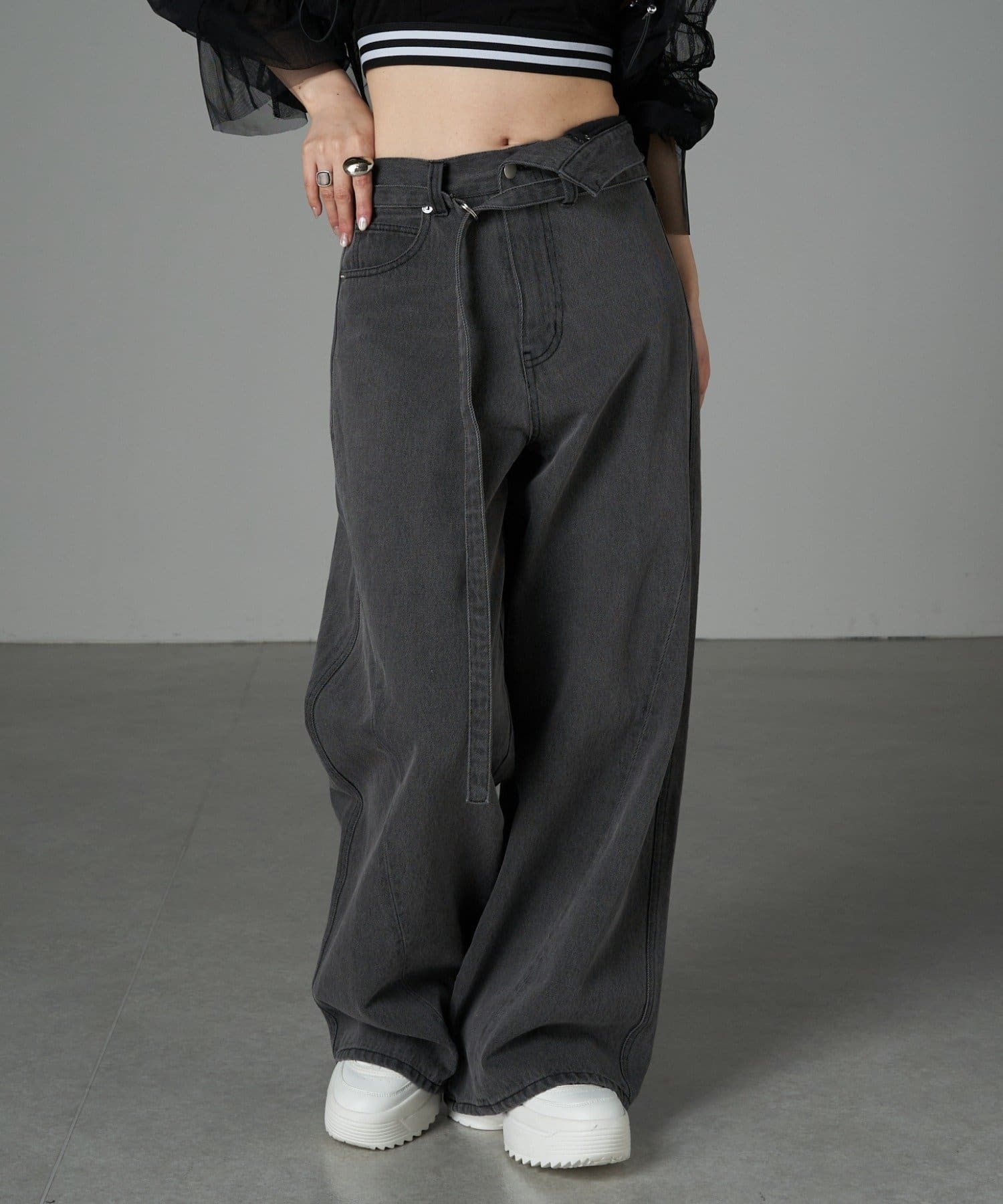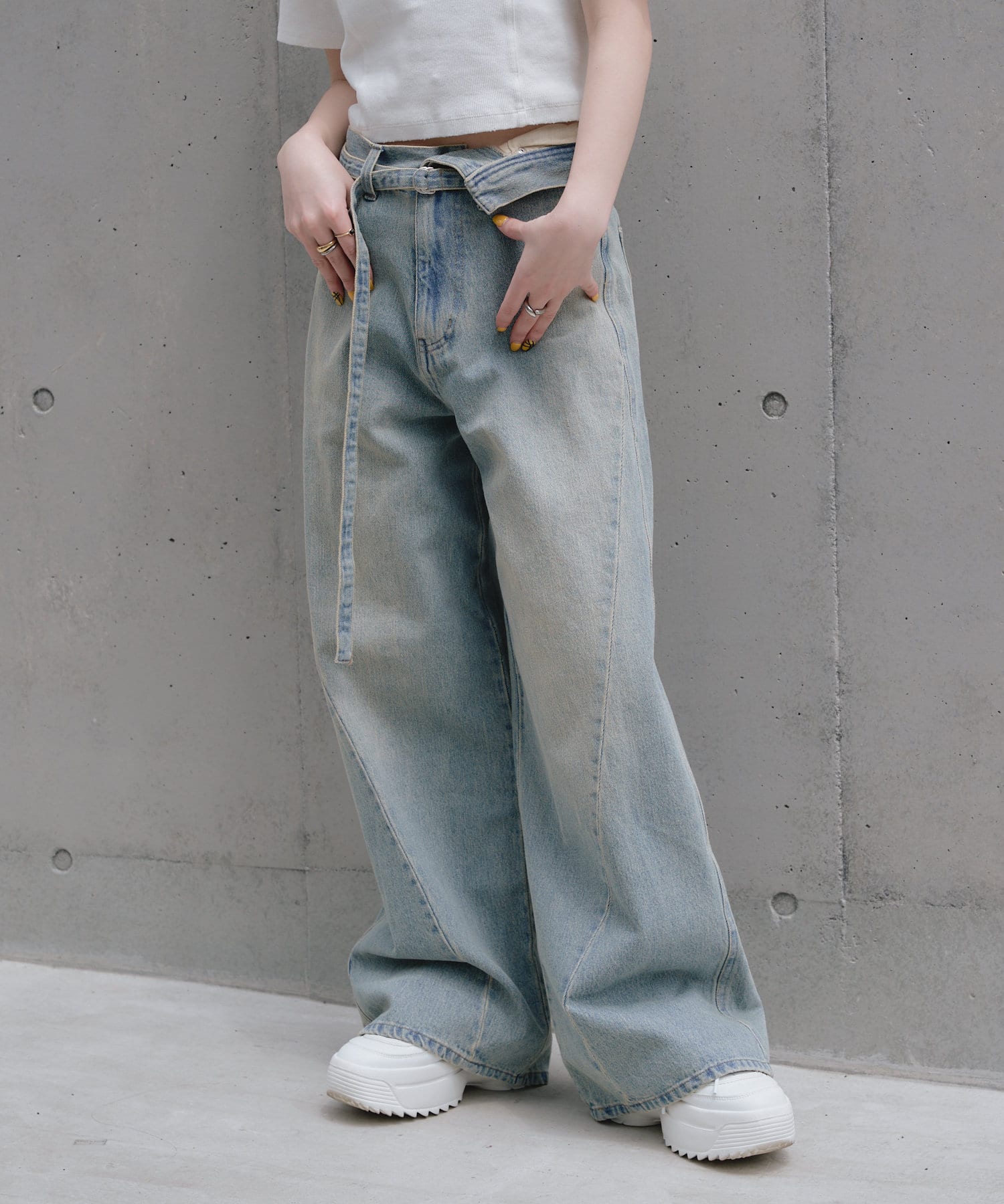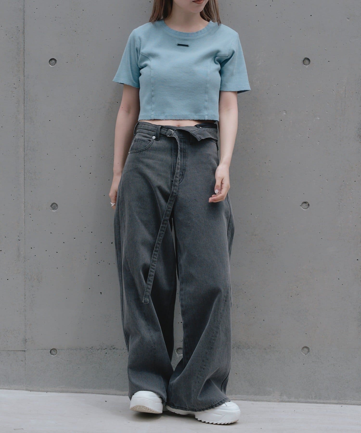 【RAY CASSIN】ウエスト折り返しワイドデニムパンツ