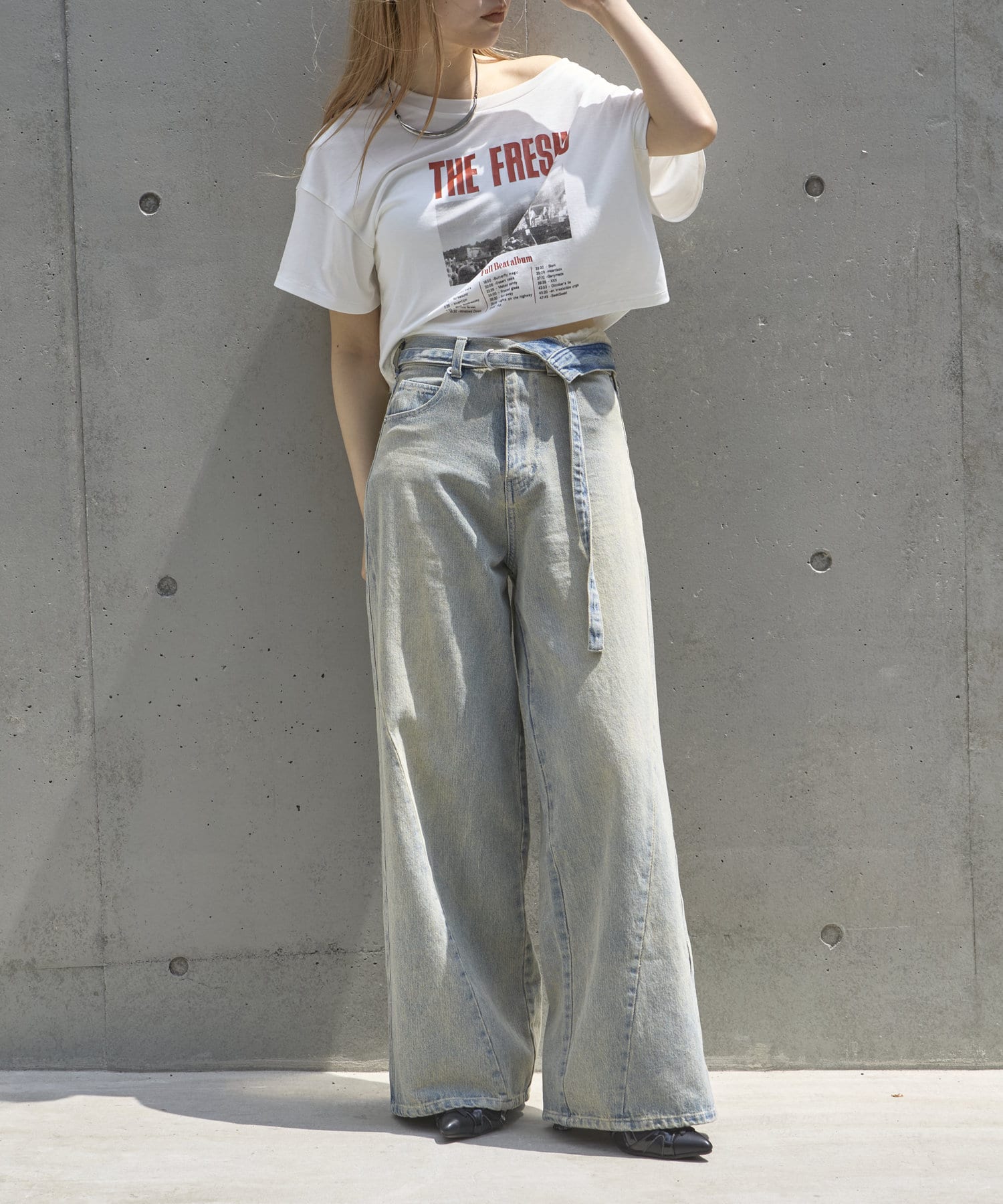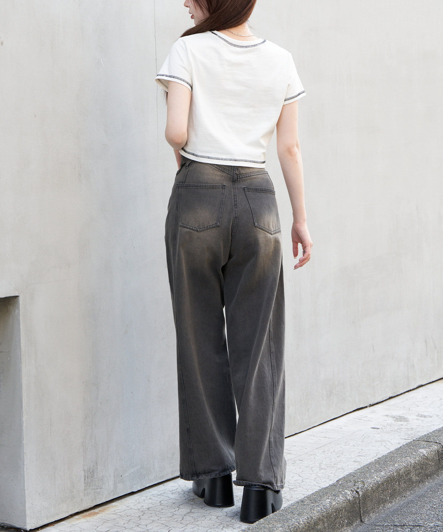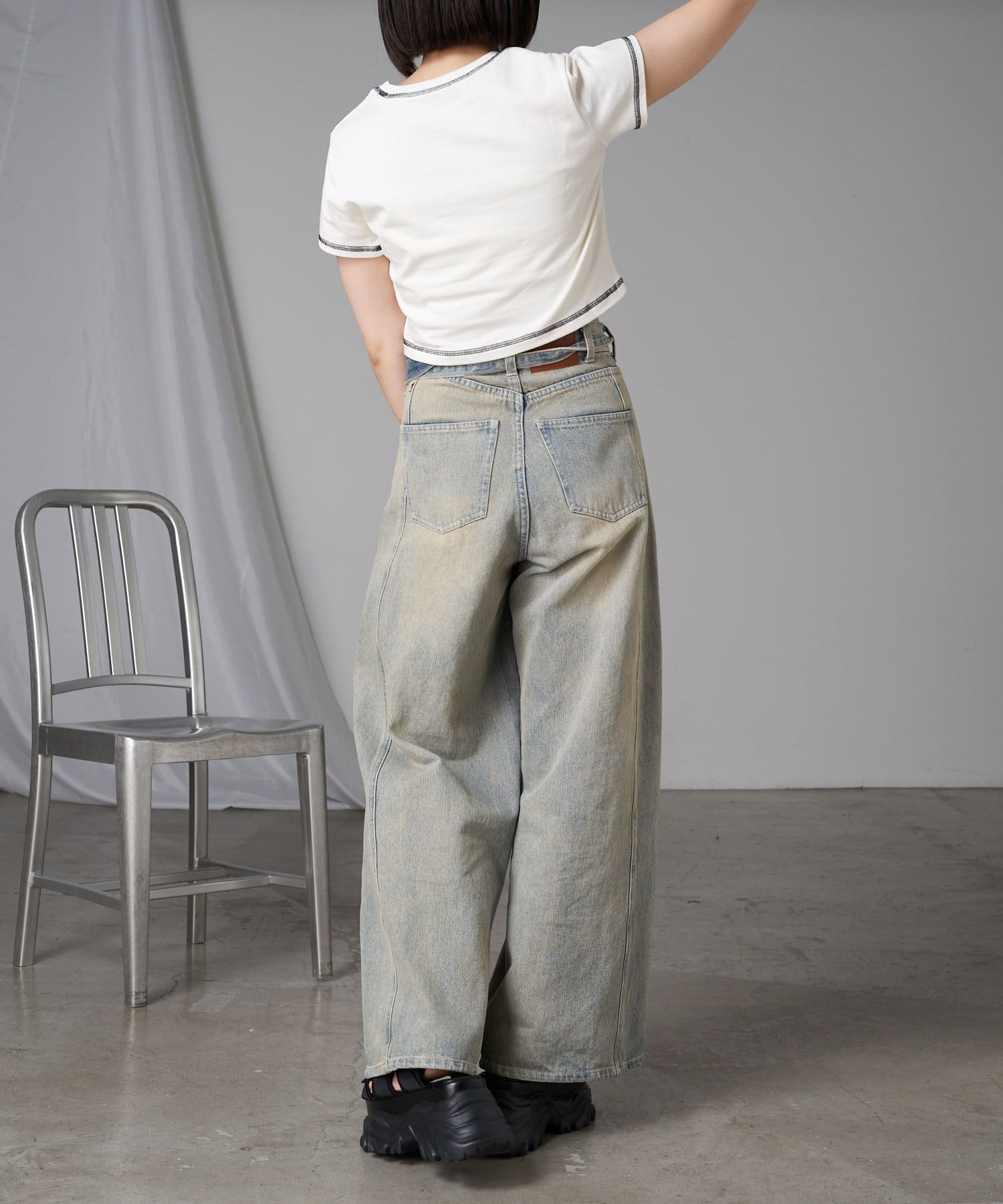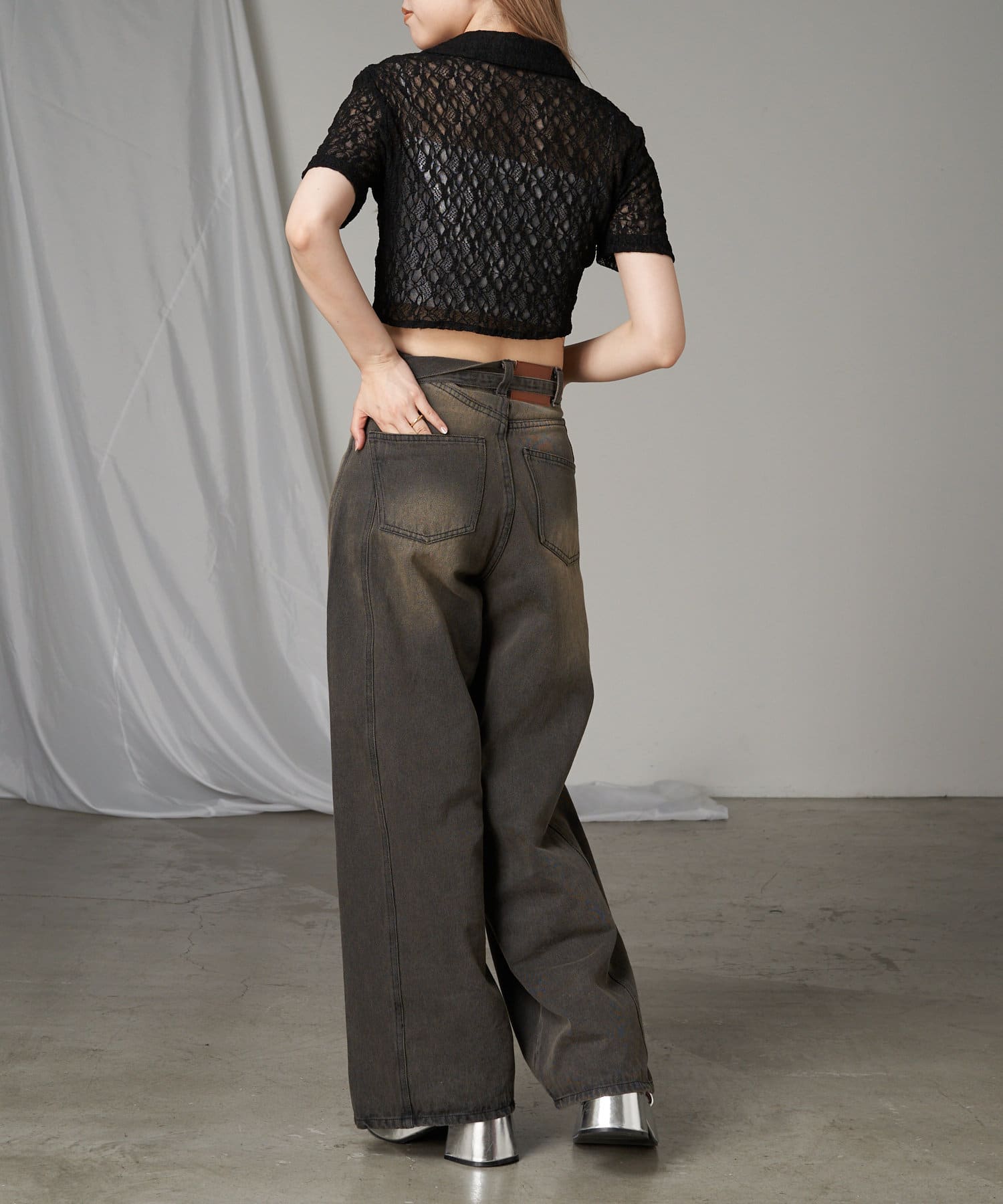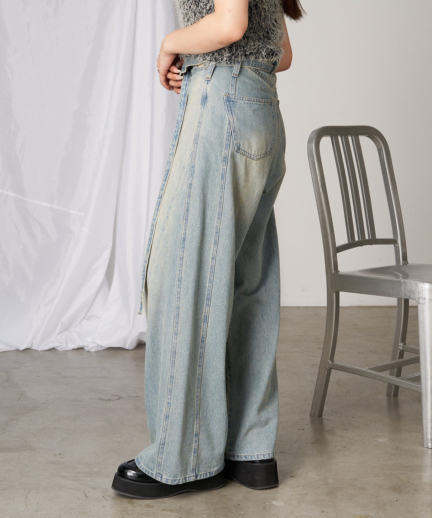 【RAY CASSIN】ウエスト折り返しワイドデニムパンツ